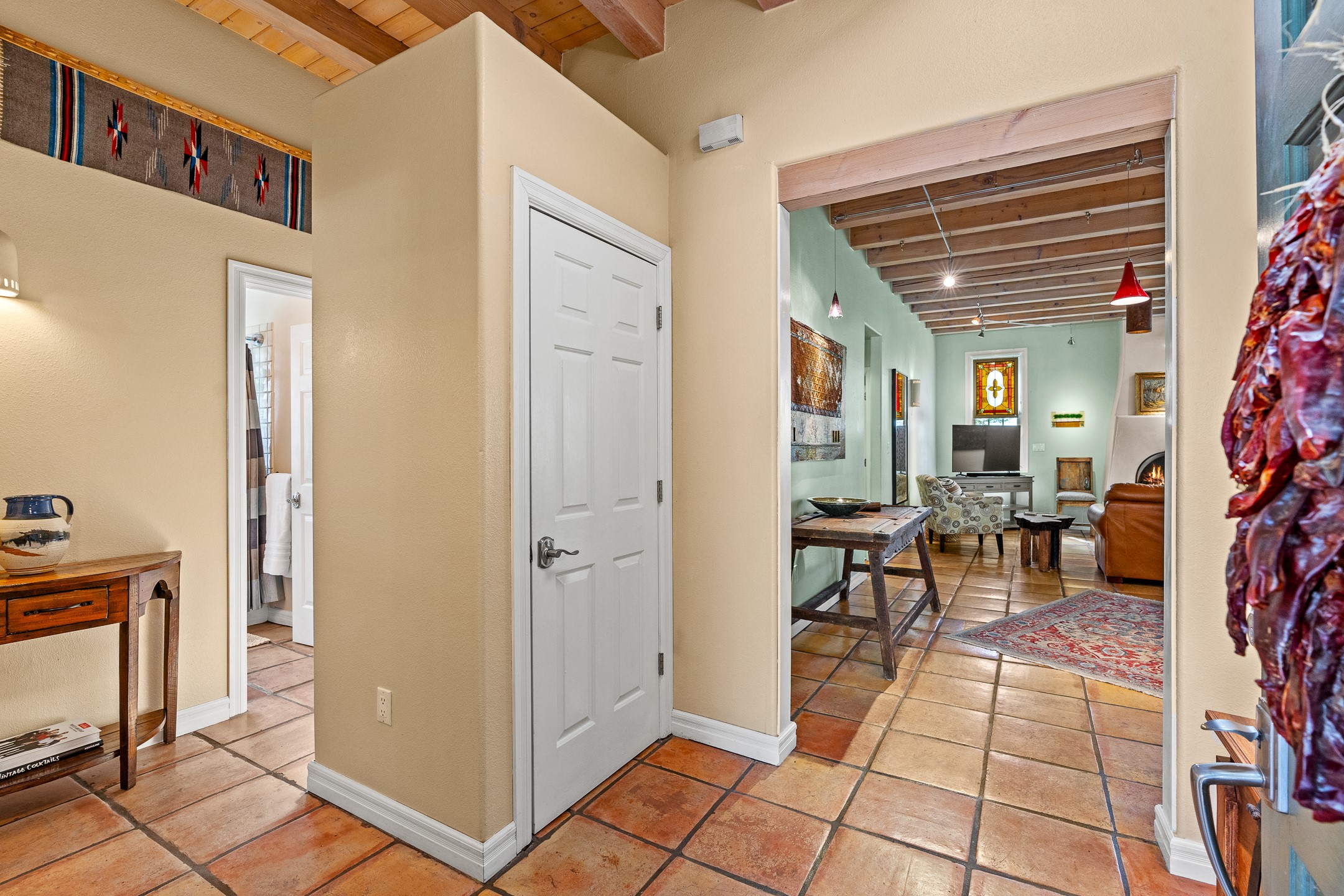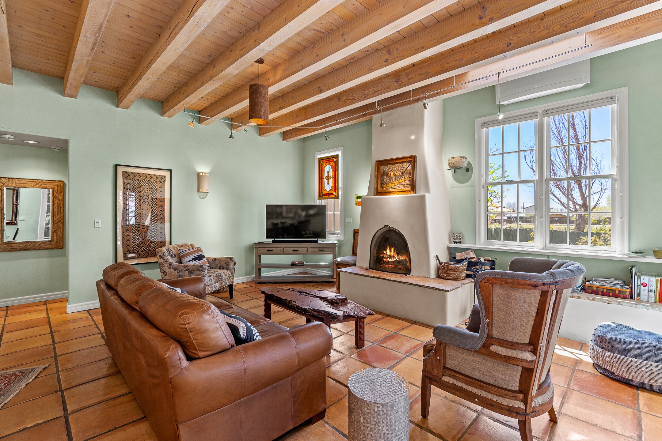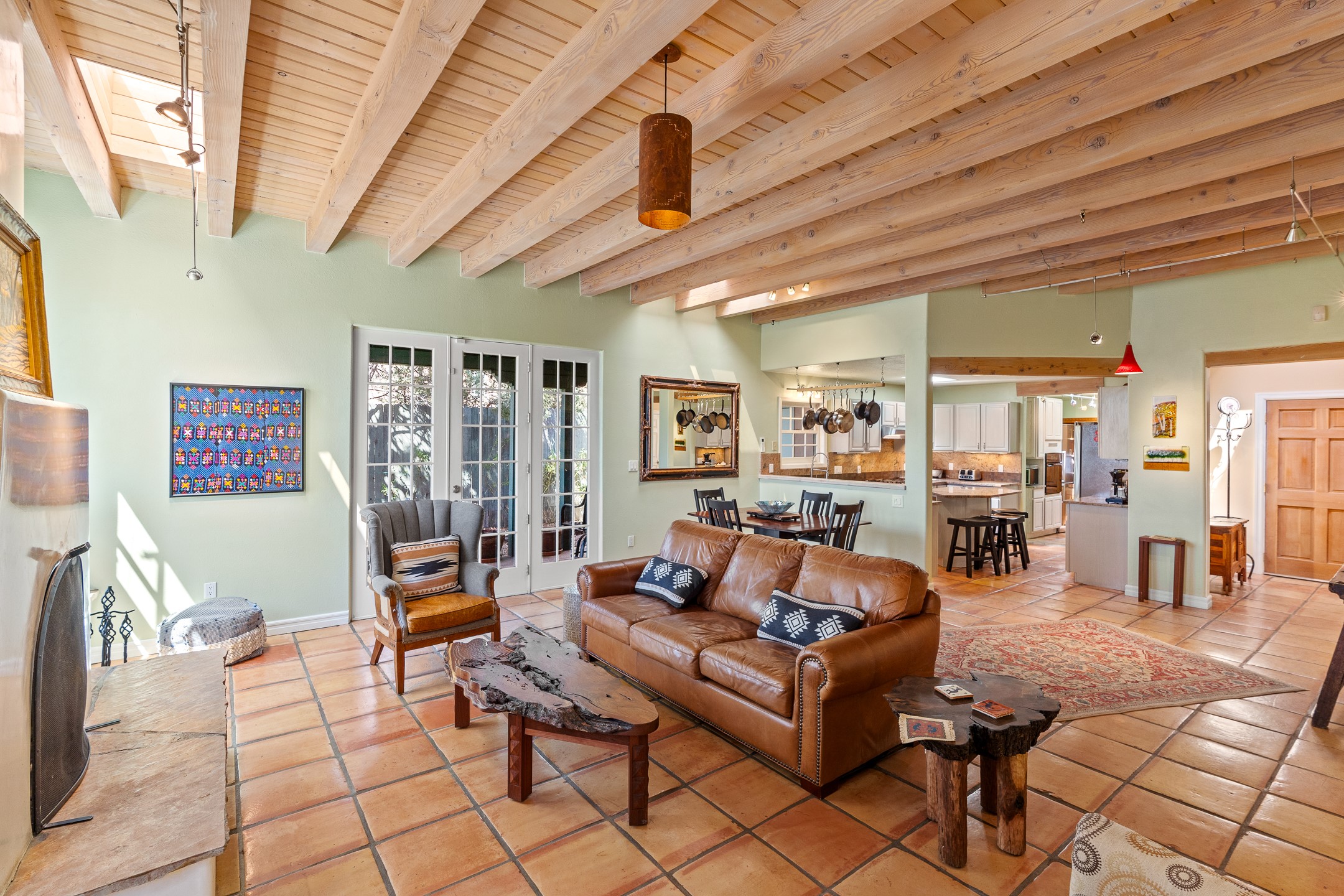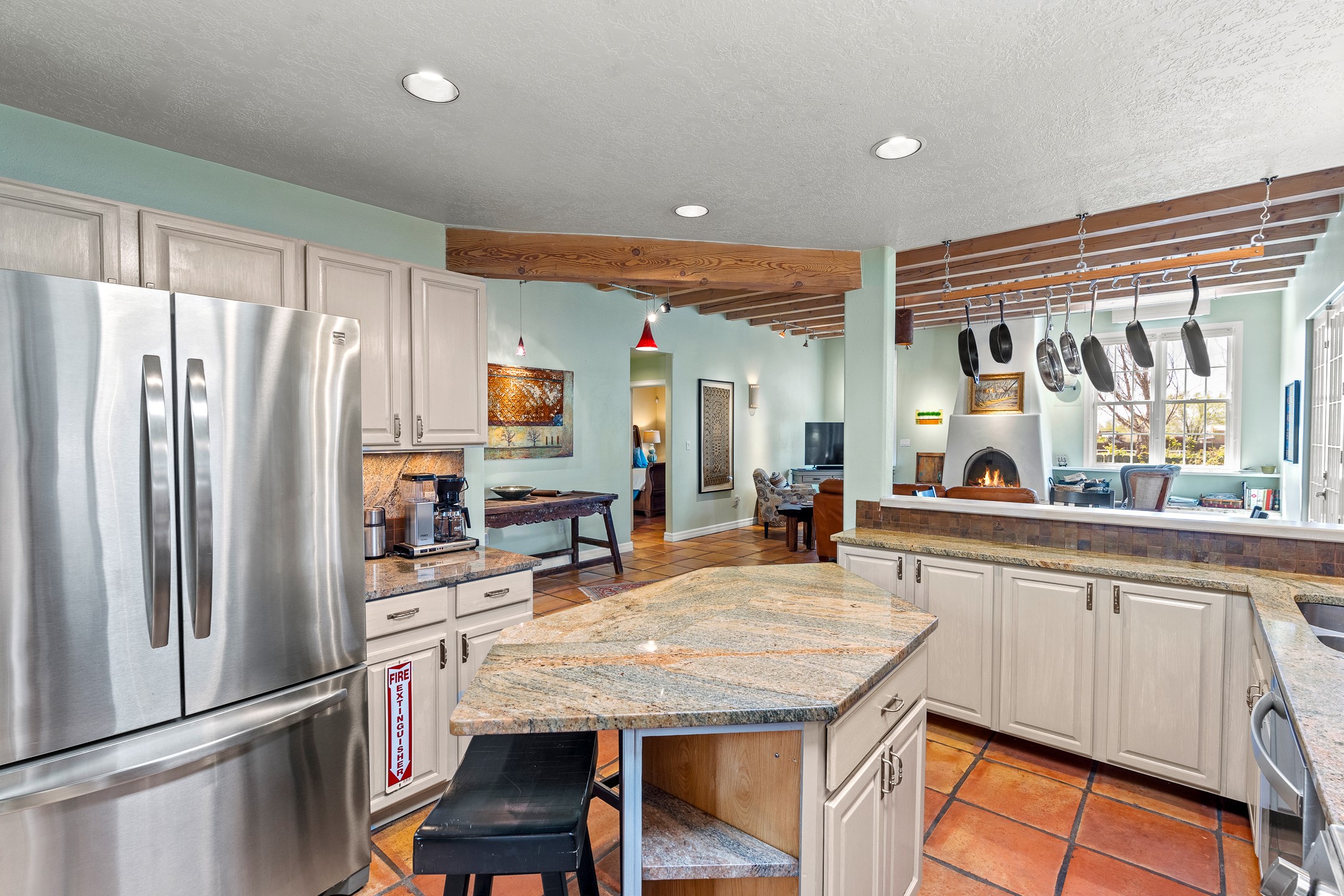 A must-see hidden gem! Tucked away on a peaceful cul-de-sac in the charming Cielo Vista neighborhood, this home blends comfort, style, and sustainability into a warm Southwestern retreat. Surrounded by lush landscaping and private gardens, this beautifully updated 2-bedroom, 2-bath home offers a serene escape just minutes from Santa Fe's historic Plaza, Canyon Road, and the Opera.Inside, you'll find a chef's kitchen with high-end Bosch appliances, custom cabinetry, and a spacious butler's pantry complete with a wet bar, second oven, and full-size fridge--perfect for hosting. The great room features soaring ceilings with exposed vigas, Saltillo tile floors, skylights, and a cozy Kiva fireplace. Both bedrooms are generously sized, including a primary suite with a walk-in closet and en-suite bath. French doors open to a covered patio overlooking a vibrant backyard oasis with a tranquil fountain, bird feeders, and private gate access to a neighborhood park with walking trails, a basketball court, and a community garden.Even better--Casa Carmilita is solar-powered, meaning no electric bill and a greener way to live. Additional features include radiant heat throughout, a brand-new boiler, a full laundry room, off-street parking, and a one-car garage.Casa Carmilita is more than a home--it's your gateway to the Santa Fe lifestyle. Come see it for yourself.