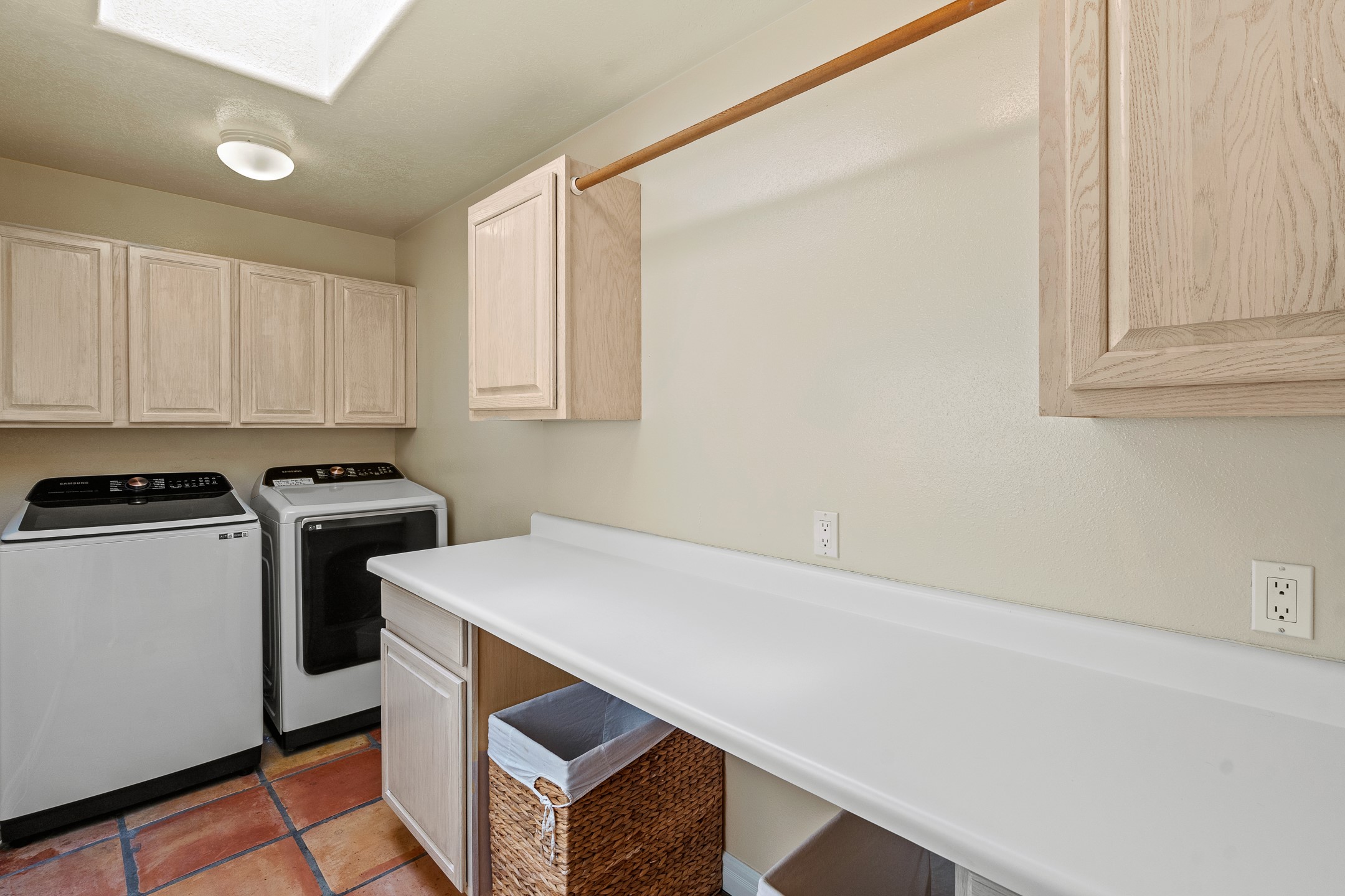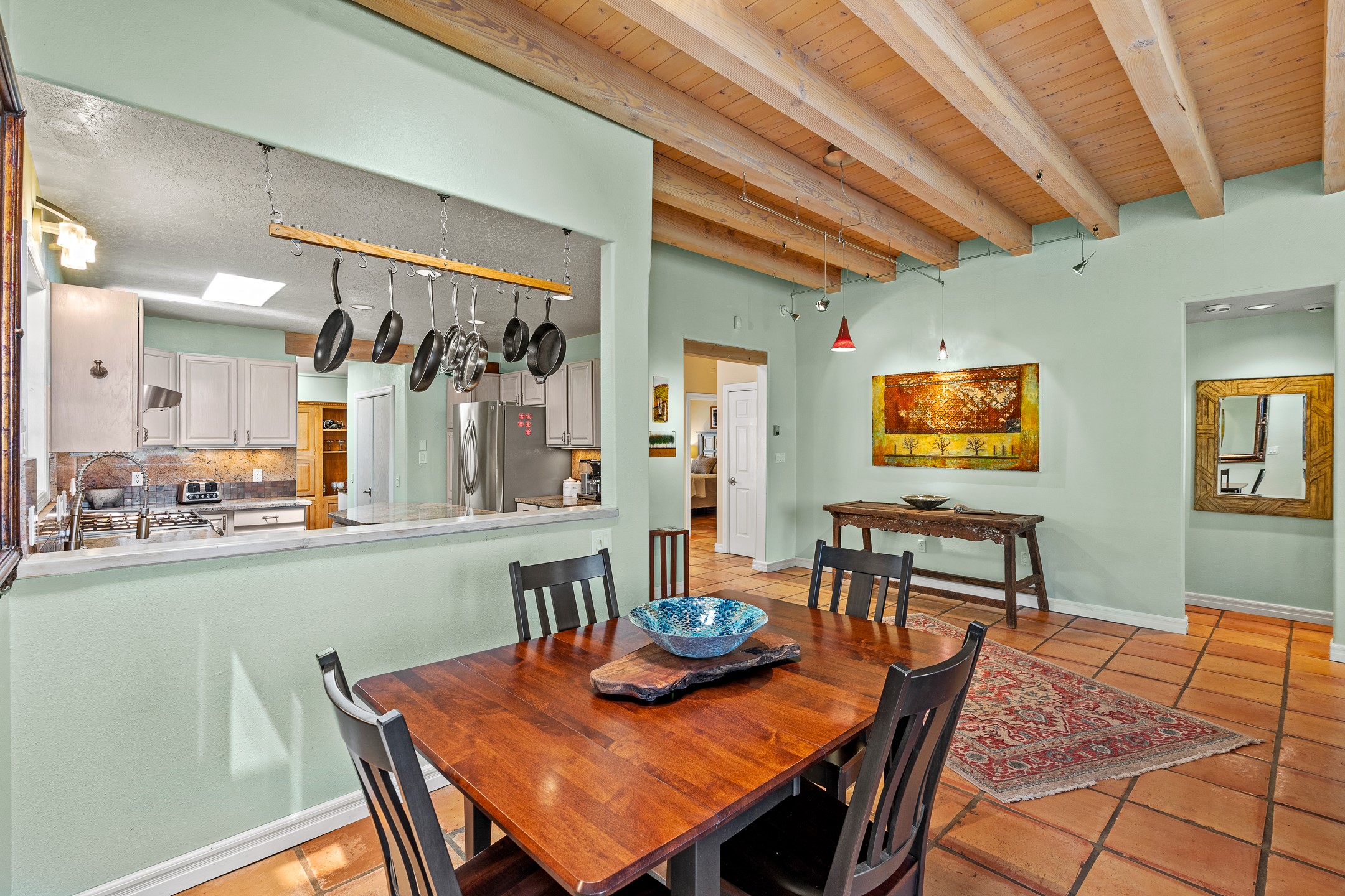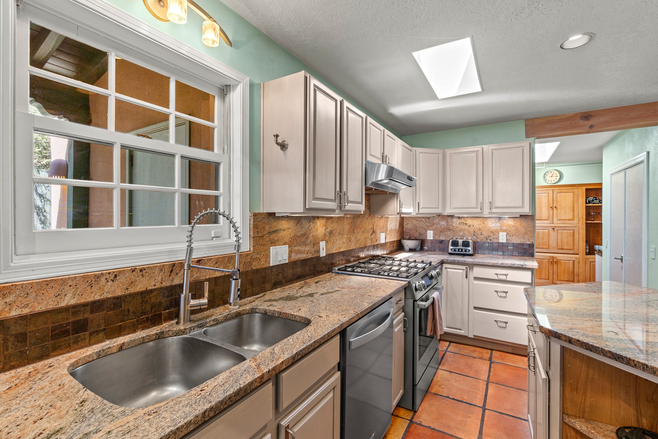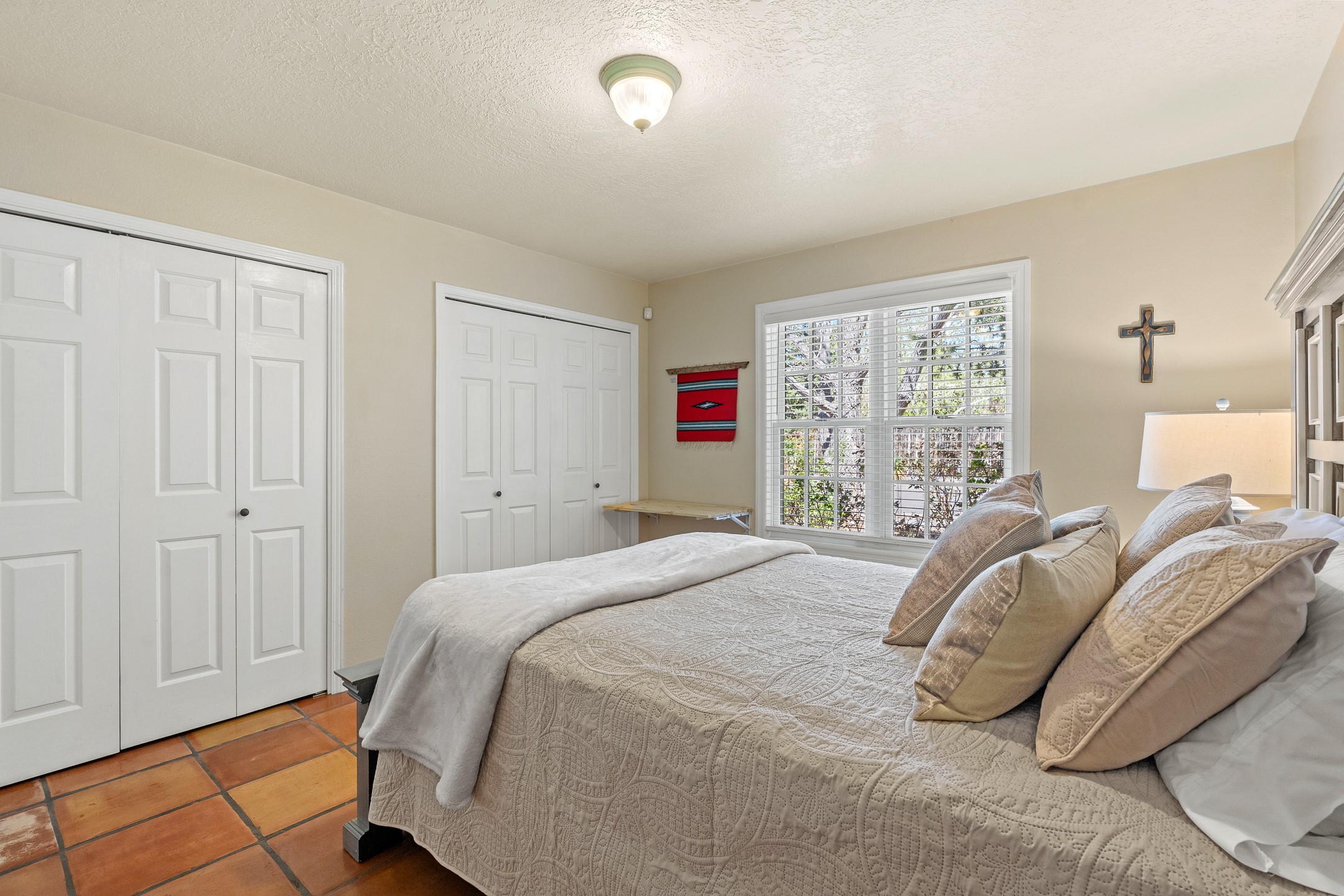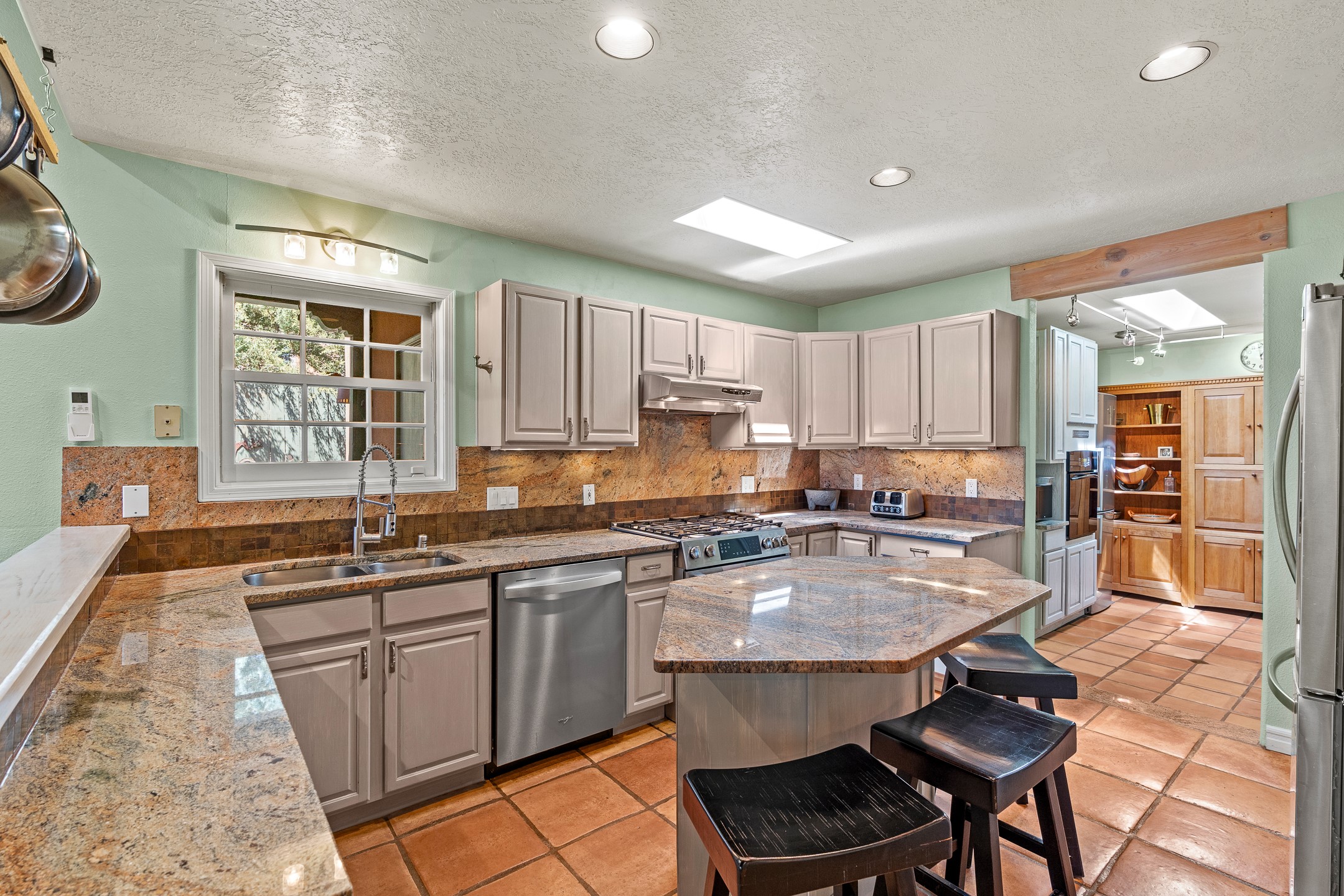 A must-see hidden gem! Tucked away on a peaceful cul-de-sac in the charming Cielo Vista neighborhood, this home blends comfort, style, and sustainability into a warm Southwestern retreat. Surrounded by lush landscaping and private gardens, this beautifully updated 2-bedroom, 2-bath home offers a serene escape just minutes from Santa Fe's historic Plaza, Canyon Road, and the Opera.Inside, you'll find a chef's kitchen with high-end Bosch appliances, custom cabinetry, and a spacious butler's pantry complete with a wet bar, second oven, and full-size fridge--perfect for hosting. The great room features soaring ceilings with exposed vigas, Saltillo tile floors, skylights, and a cozy Kiva fireplace. Both bedrooms are generously sized, including a primary suite with a walk-in closet and en-suite bath. French doors open to a covered patio overlooking a vibrant backyard oasis with a tranquil fountain, bird feeders, and private gate access to a neighborhood park with walking trails, a basketball court, and a community garden.Even better--Casa Carmilita is solar-powered, meaning no electric bill and a greener way to live. Additional features include radiant heat throughout, a brand-new boiler, a full laundry room, off-street parking, and a one-car garage.Casa Carmilita is more than a home--it's your gateway to the Santa Fe lifestyle. Come see it for yourself.