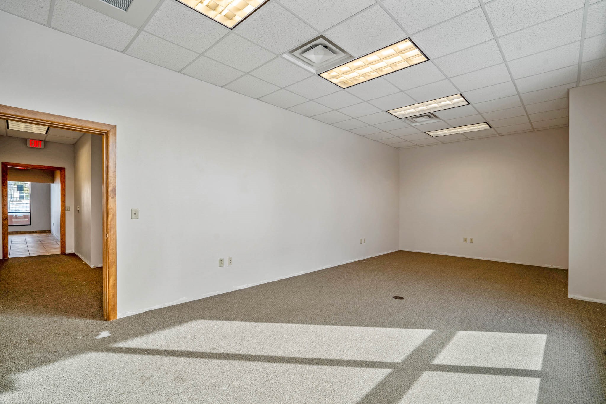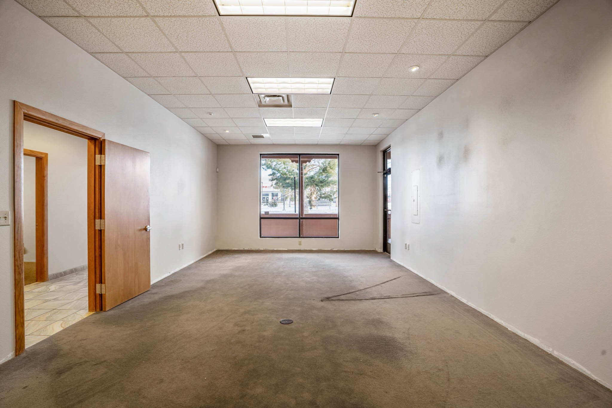 Conveniently located at Plaza Entrada Shopping Center, this office space is perfectly situated in the heart of a bustling retail hub, close to major retailers. The layout features a spacious waiting reception area, five large offices, an open work area, and an oversized conference/training room measuring approximately 31' x 13'. Amenities include a kitchenette, ample storage, and in-suite restrooms. Additionally, the office features a private courtyard with security fencing. The complex offers abundant parking to accommodate a variety of business operations. Perfect for professionals seeking a dynamic and accessible location.