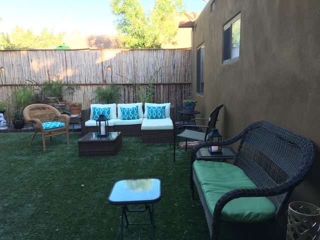 Welcome to this charming 2-bedroom, 1-bath Pueblo-style home, a perfect blend of Southwestern elegance and comfort. Nestled in a tranquil neighborhood, this home offers a welcoming ambiance with its signature adobe-style architecture, complete with a picturesque water fountain at the entrance, setting a peaceful tone right from the start.Inside, the open and airy living space is bathed in natural light, accentuating the rich, rustic charm, highlighted by a wood burning fireplace. French doors lead to a spacious backyard, ideal for relaxing or entertaining. Whether you're enjoying the quiet solitude or hosting family gatherings, this expansive outdoor area offers endless possibilities for creating your own private retreat.The bedrooms are cozy, providing space for personalization. The bathroom features classic details, adding to the home's warmth and character.This home is a true gem, offering not just a place to live, but a lifestyle to enjoy. Come experience the beauty and serenity of this unique property!