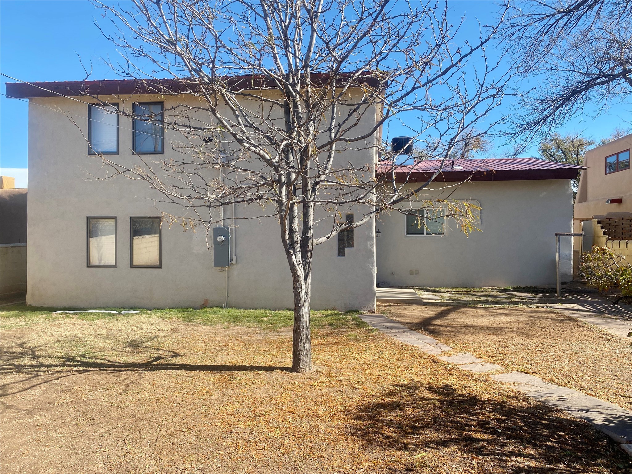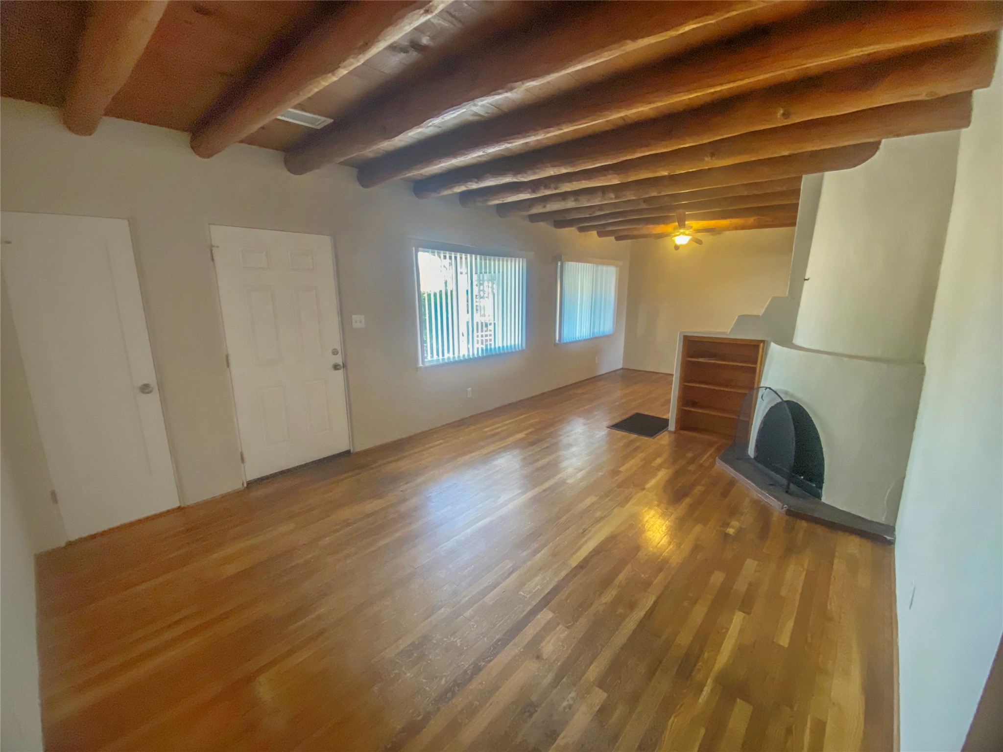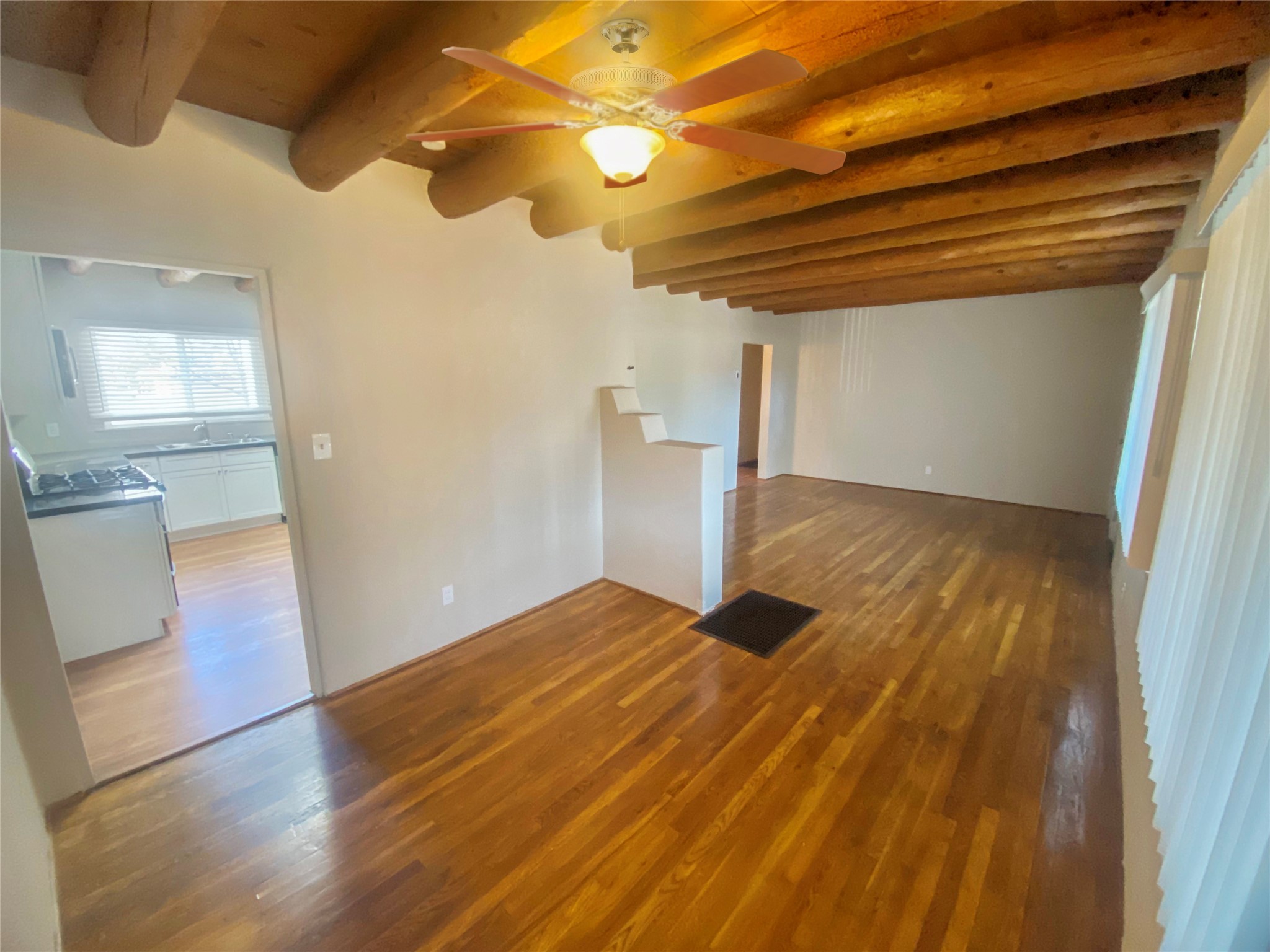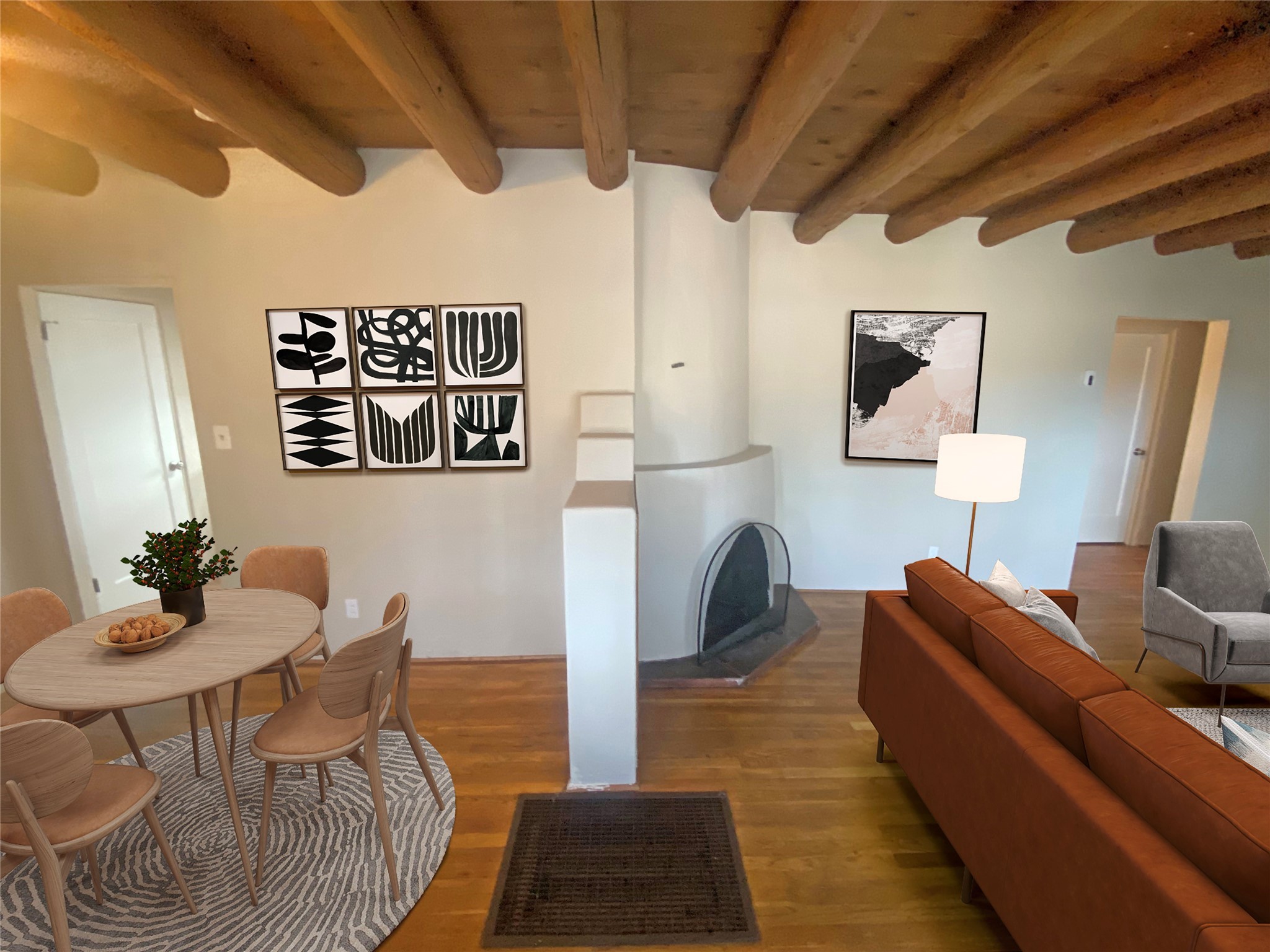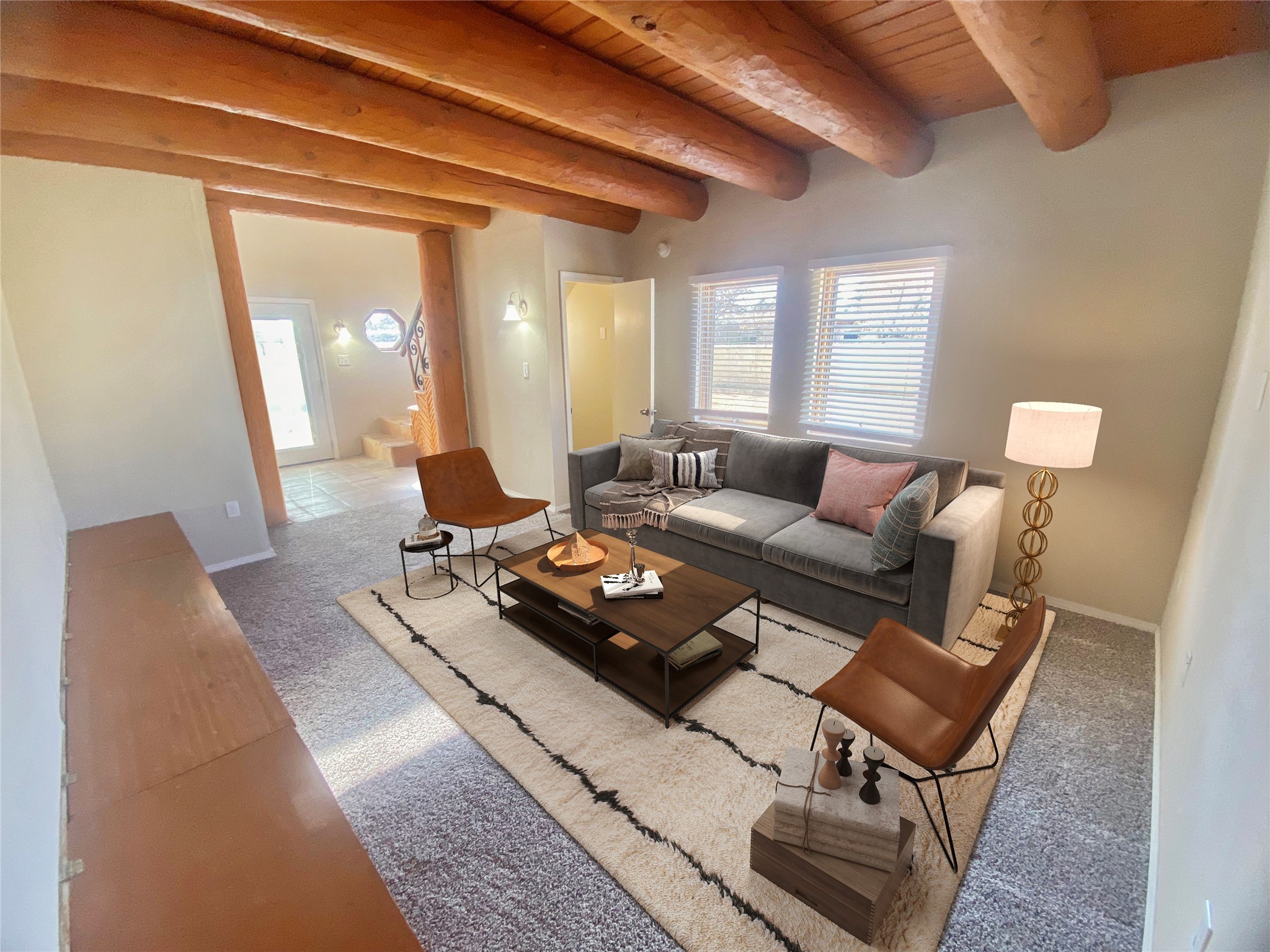 This charming 1.5-story Santa Fe-style home, located in the sought-after Casa Linda Subdivision, offers a blend of classic design and modern comfort. Built in 1949, this 1,958 square-foot residence features 3 spacious bedrooms and 2 bathrooms, making it ideal for families or those seeking extra space. The home's unique character is highlighted by wood vigas, which add rustic appeal, while hardwood floors and Saltillo tile in select areas create a warm, inviting atmosphere throughout the living spaces. The attached garage provides convenience, and the home's well-preserved details reflect its rich architectural history.