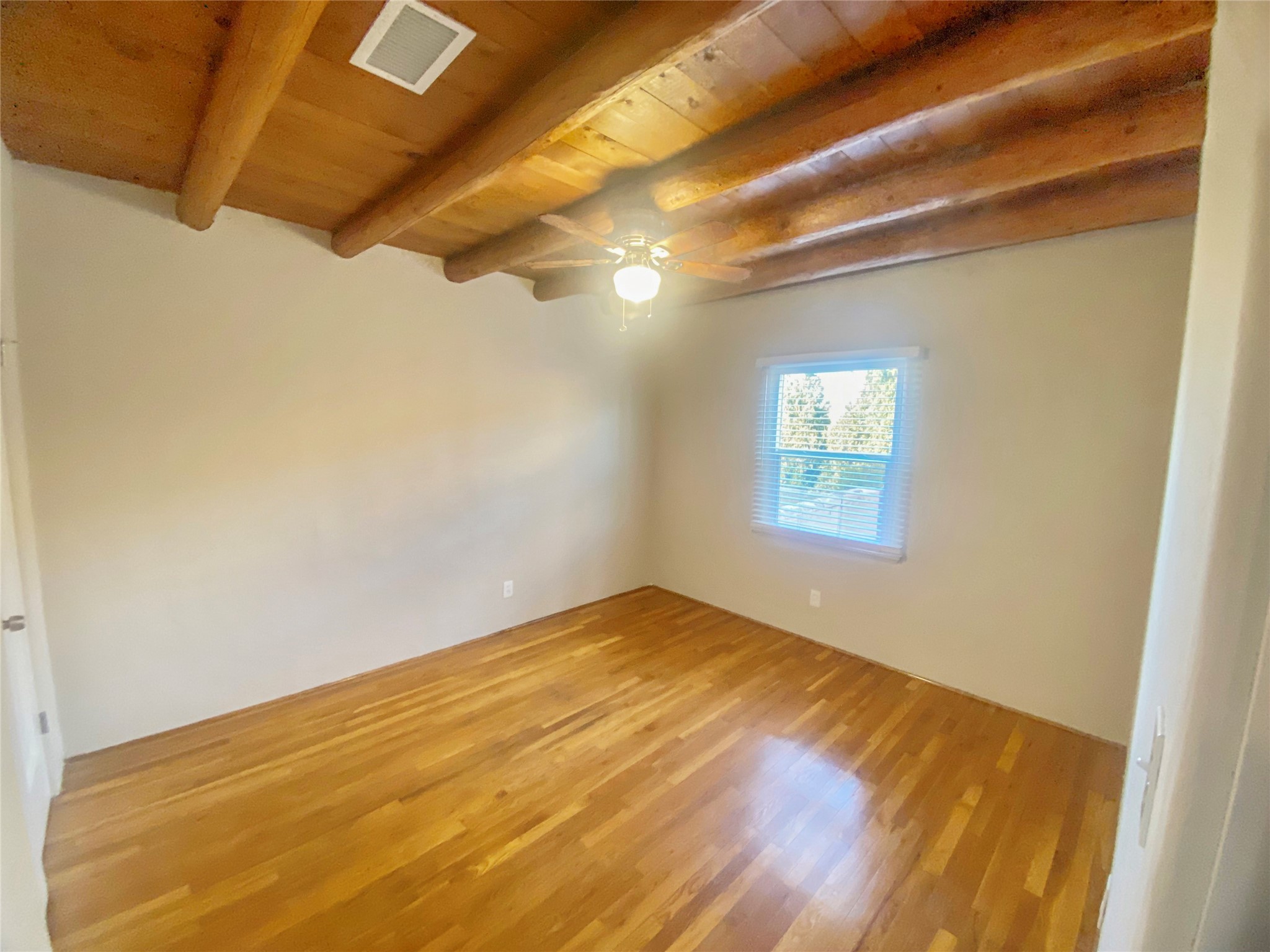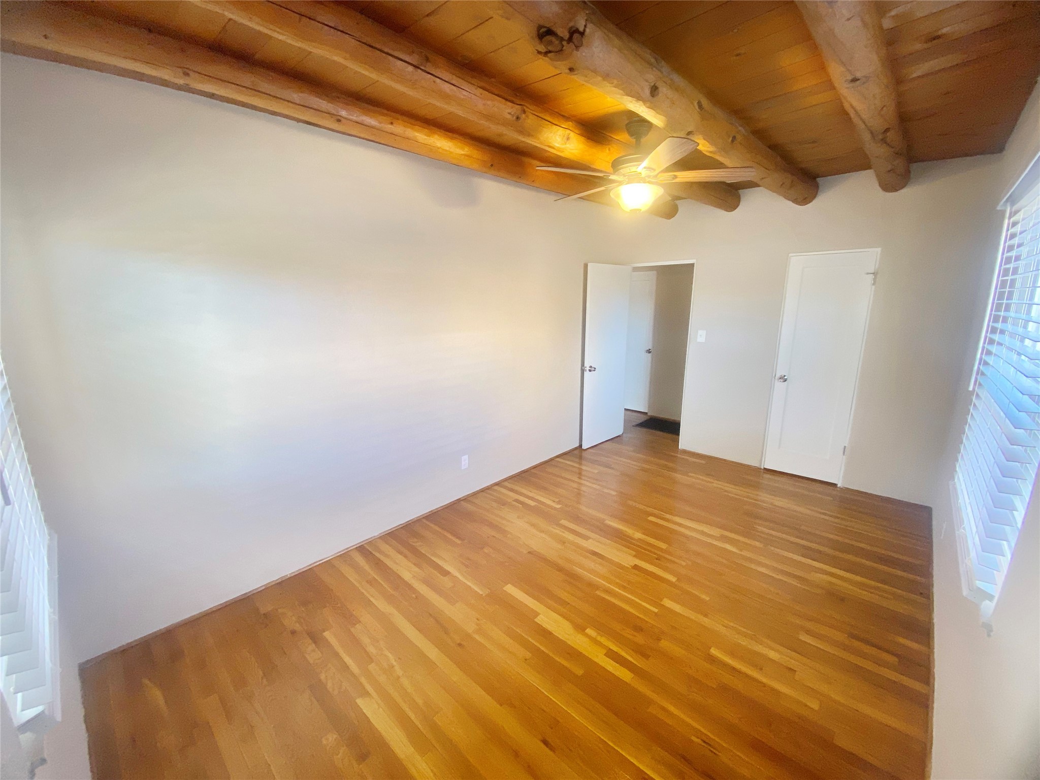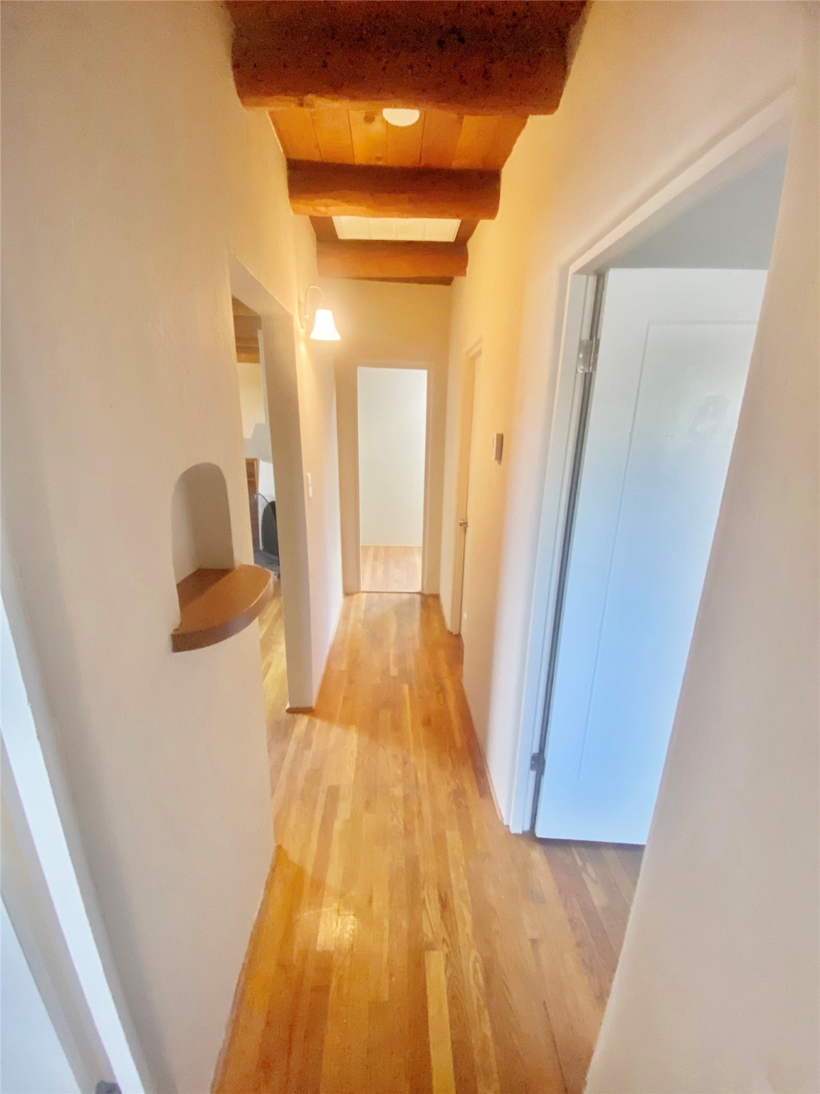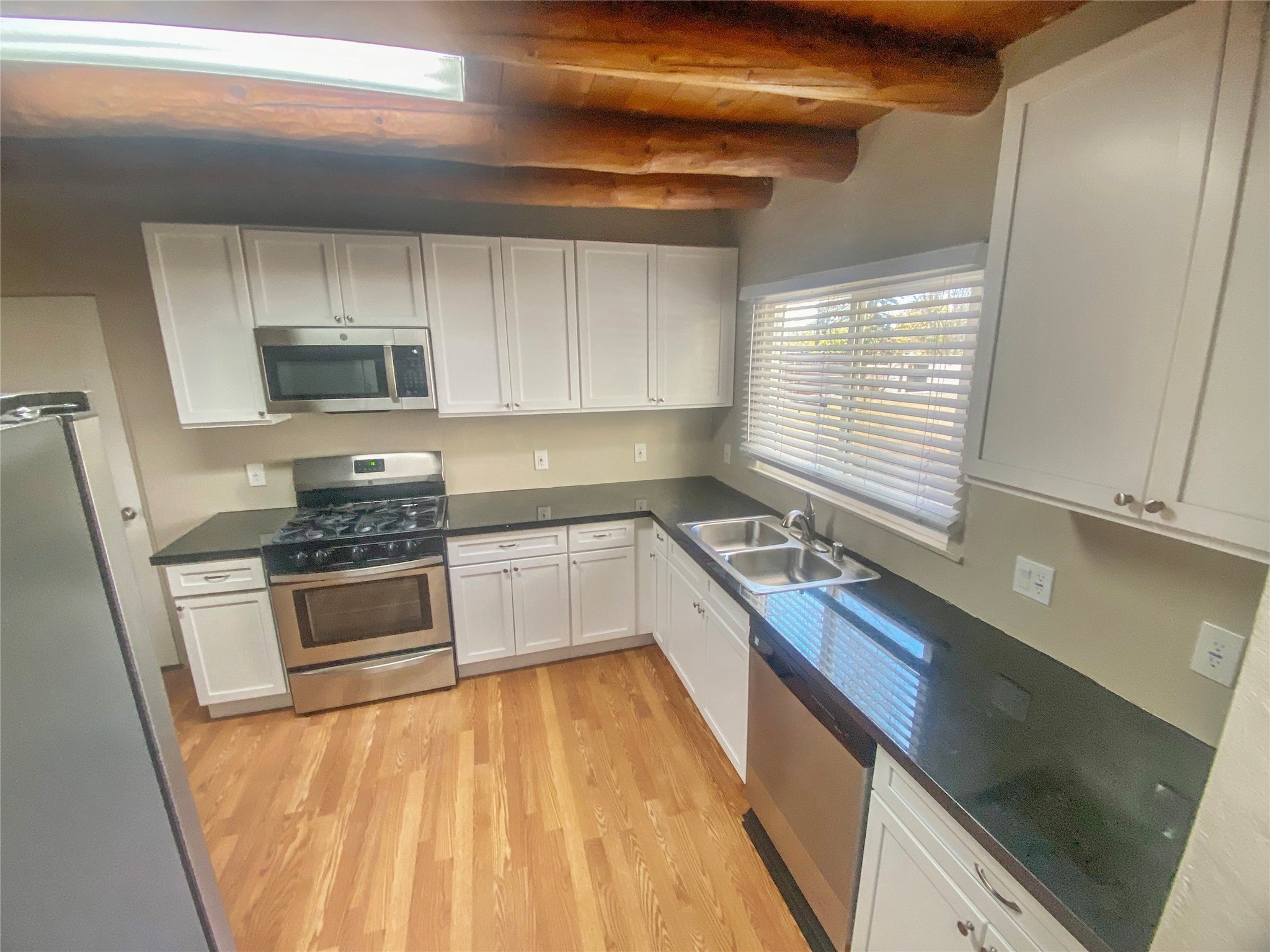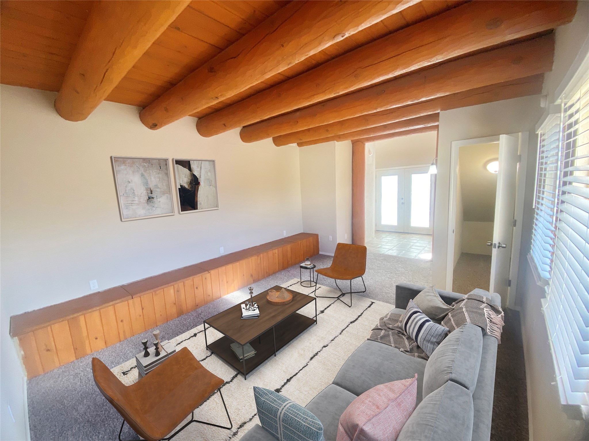 This charming 1.5-story Santa Fe-style home, located in the sought-after Casa Linda Subdivision, offers a blend of classic design and modern comfort. Built in 1949, this 1,958 square-foot residence features 3 spacious bedrooms and 2 bathrooms, making it ideal for families or those seeking extra space. The home's unique character is highlighted by wood vigas, which add rustic appeal, while hardwood floors and Saltillo tile in select areas create a warm, inviting atmosphere throughout the living spaces. The attached garage provides convenience, and the home's well-preserved details reflect its rich architectural history.