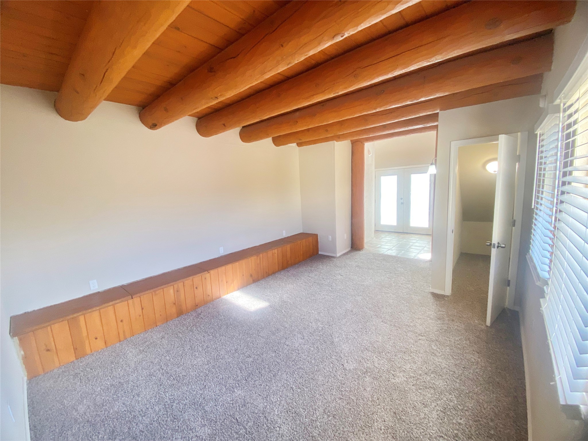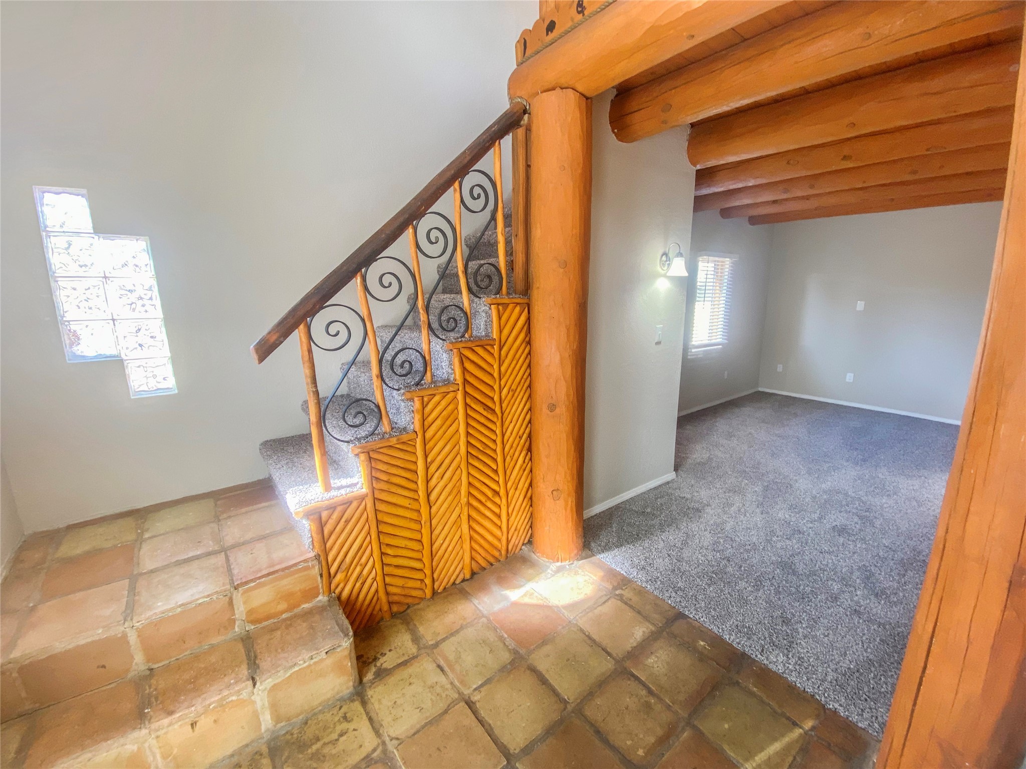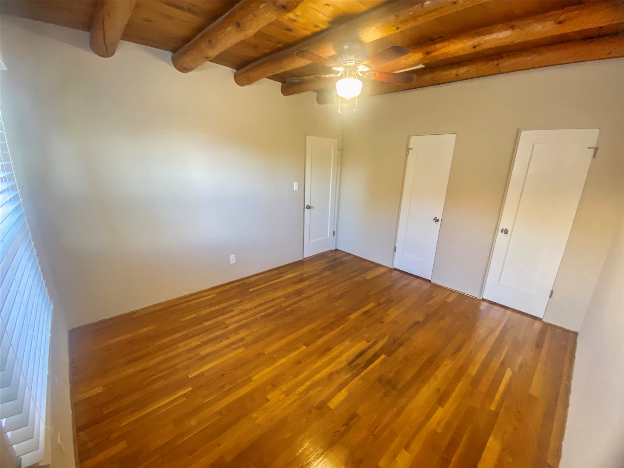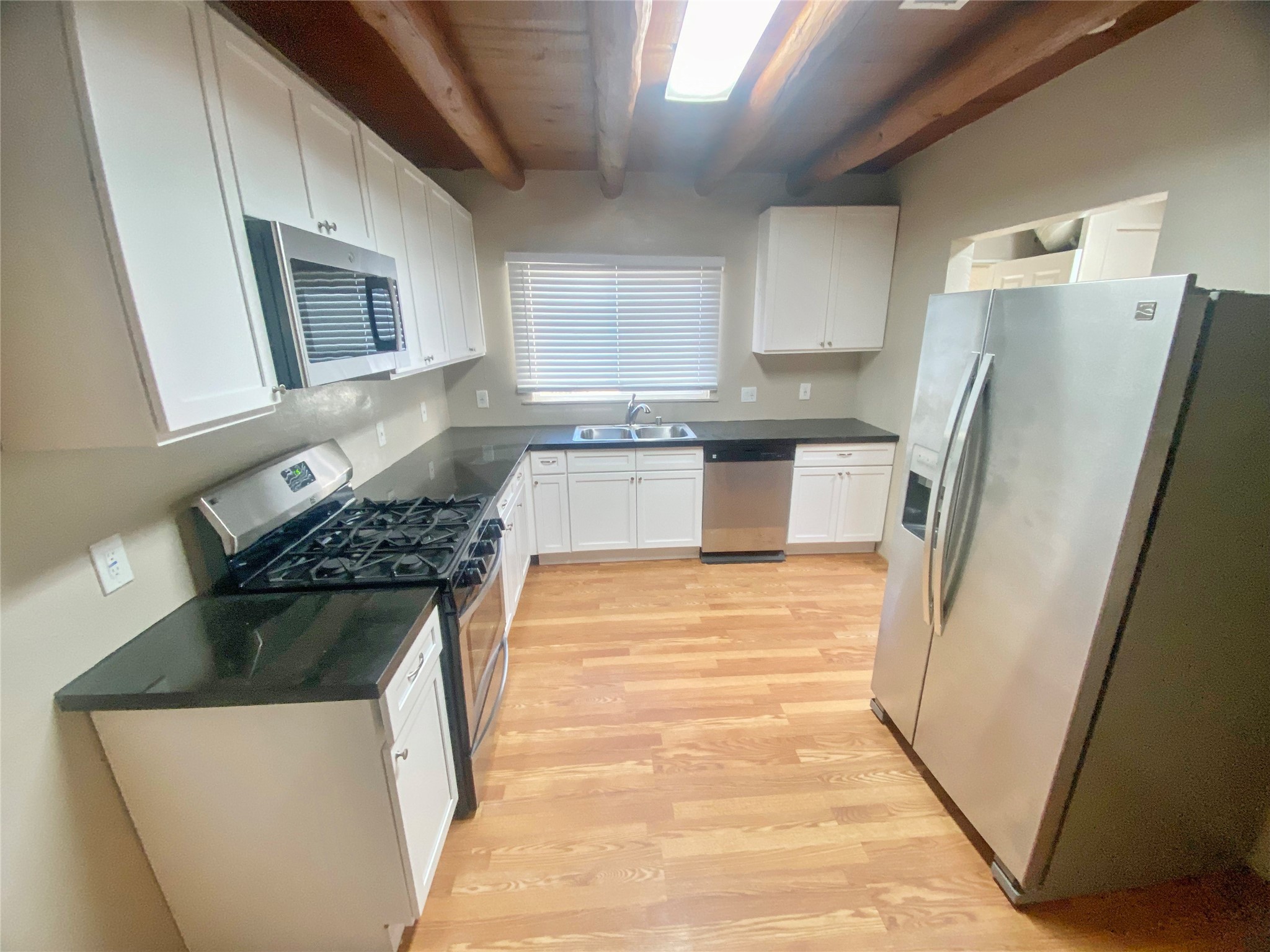 This charming 1.5-story Santa Fe-style home, located in the sought-after Casa Linda Subdivision, offers a blend of classic design and modern comfort. Built in 1949, this 1,958 square-foot residence features 3 spacious bedrooms and 2 bathrooms, making it ideal for families or those seeking extra space. The home's unique character is highlighted by wood vigas, which add rustic appeal, while hardwood floors and Saltillo tile in select areas create a warm, inviting atmosphere throughout the living spaces. The attached garage provides convenience, and the home's well-preserved details reflect its rich architectural history.