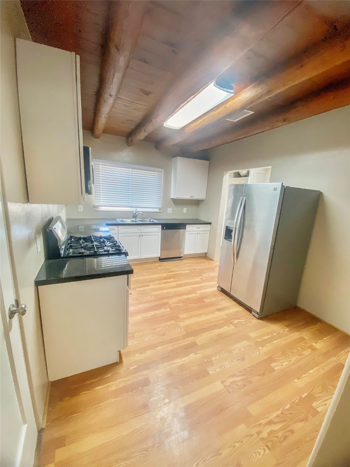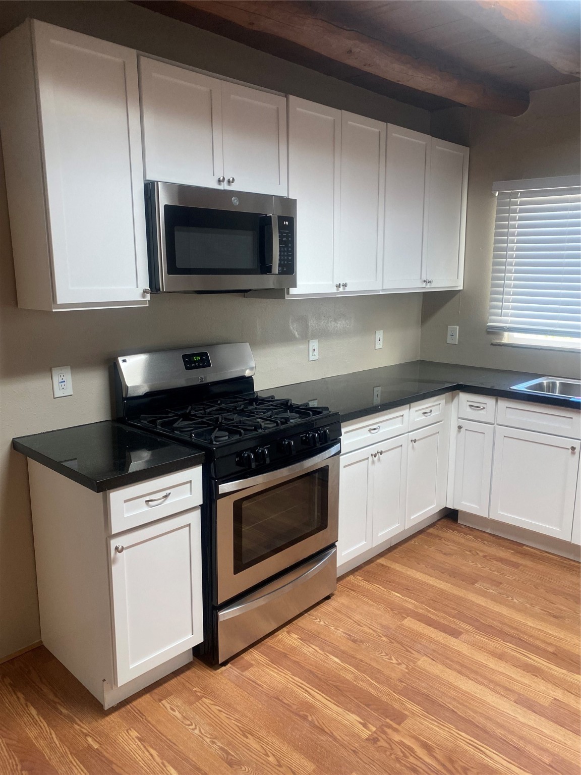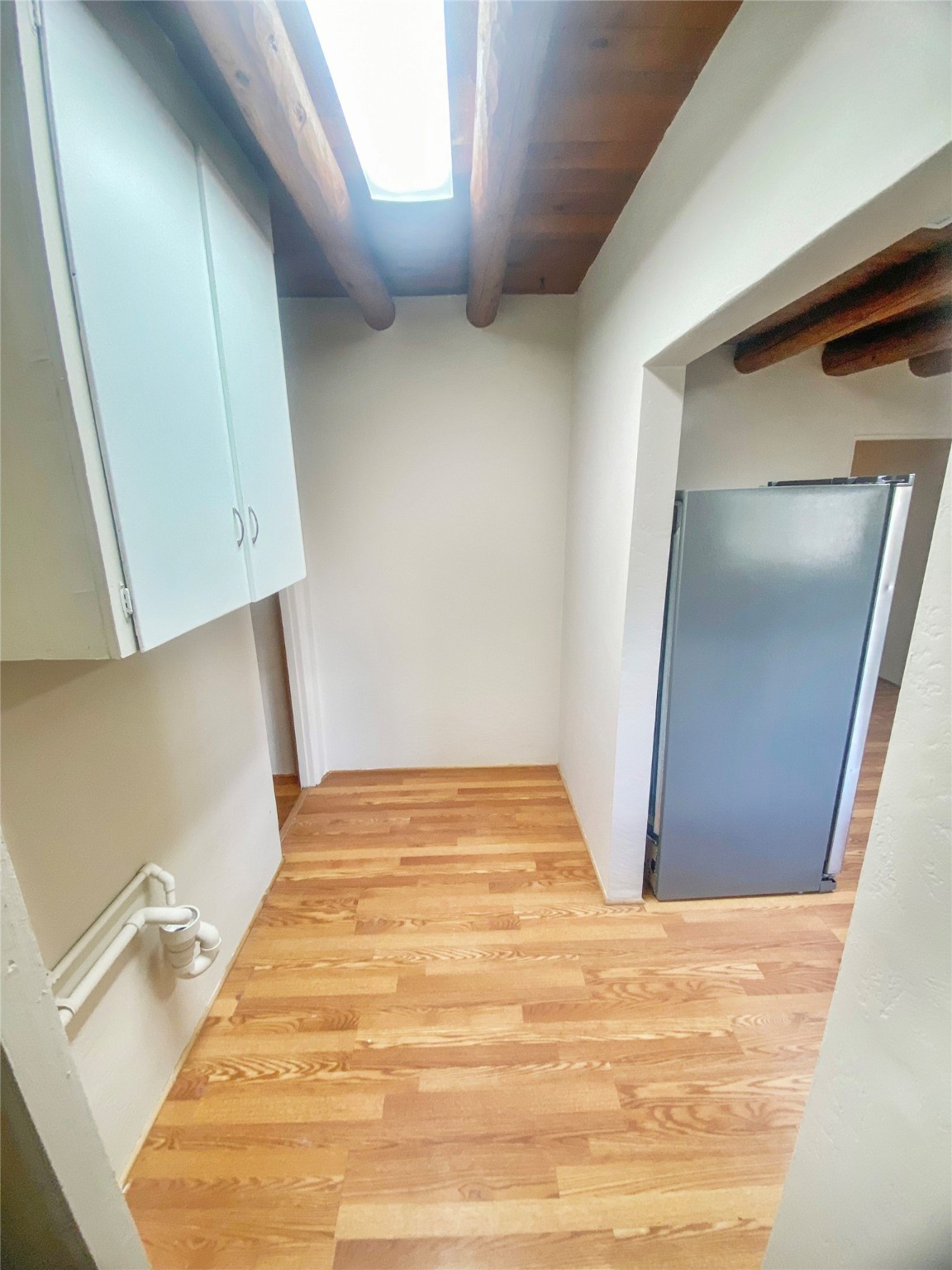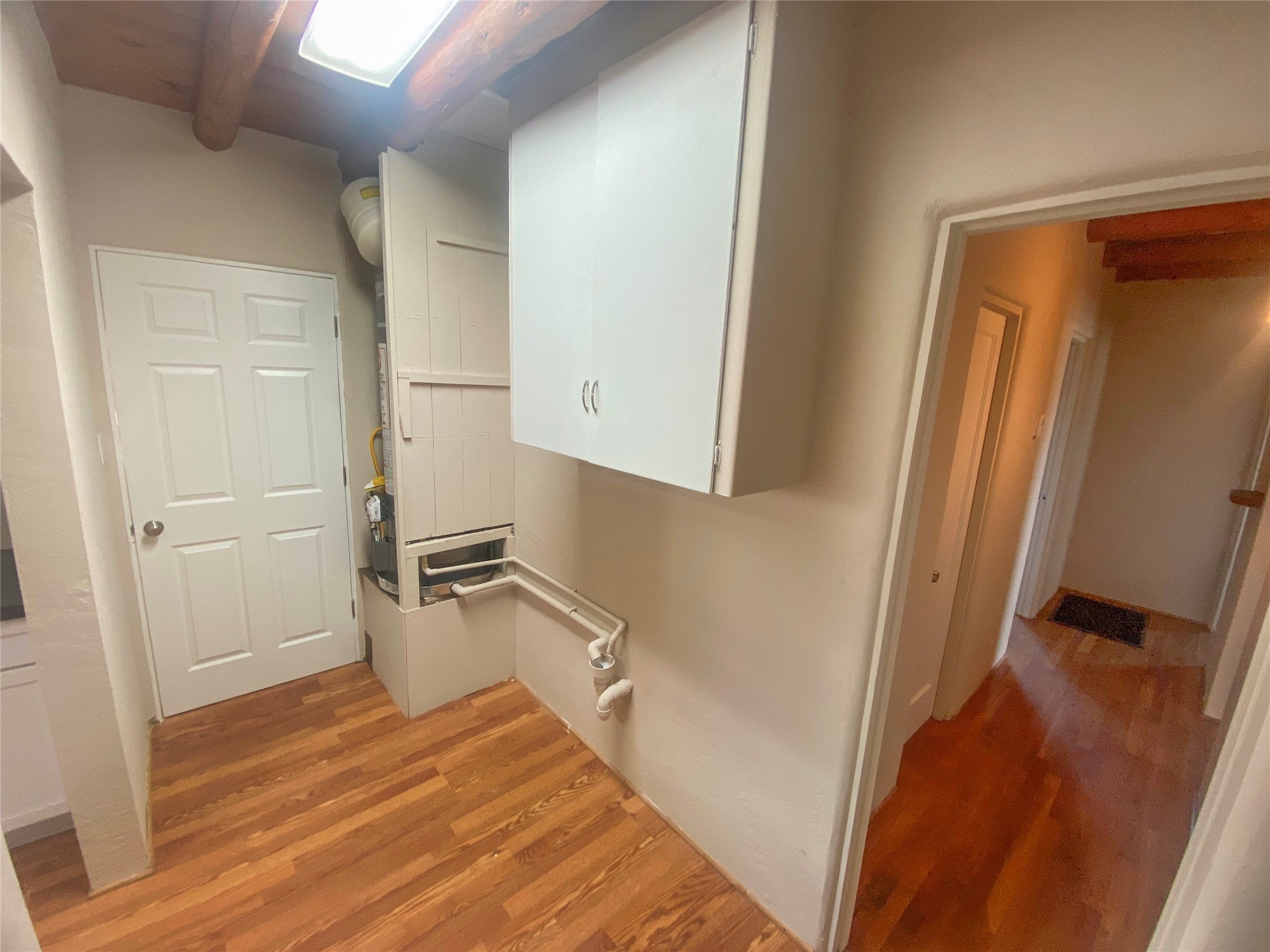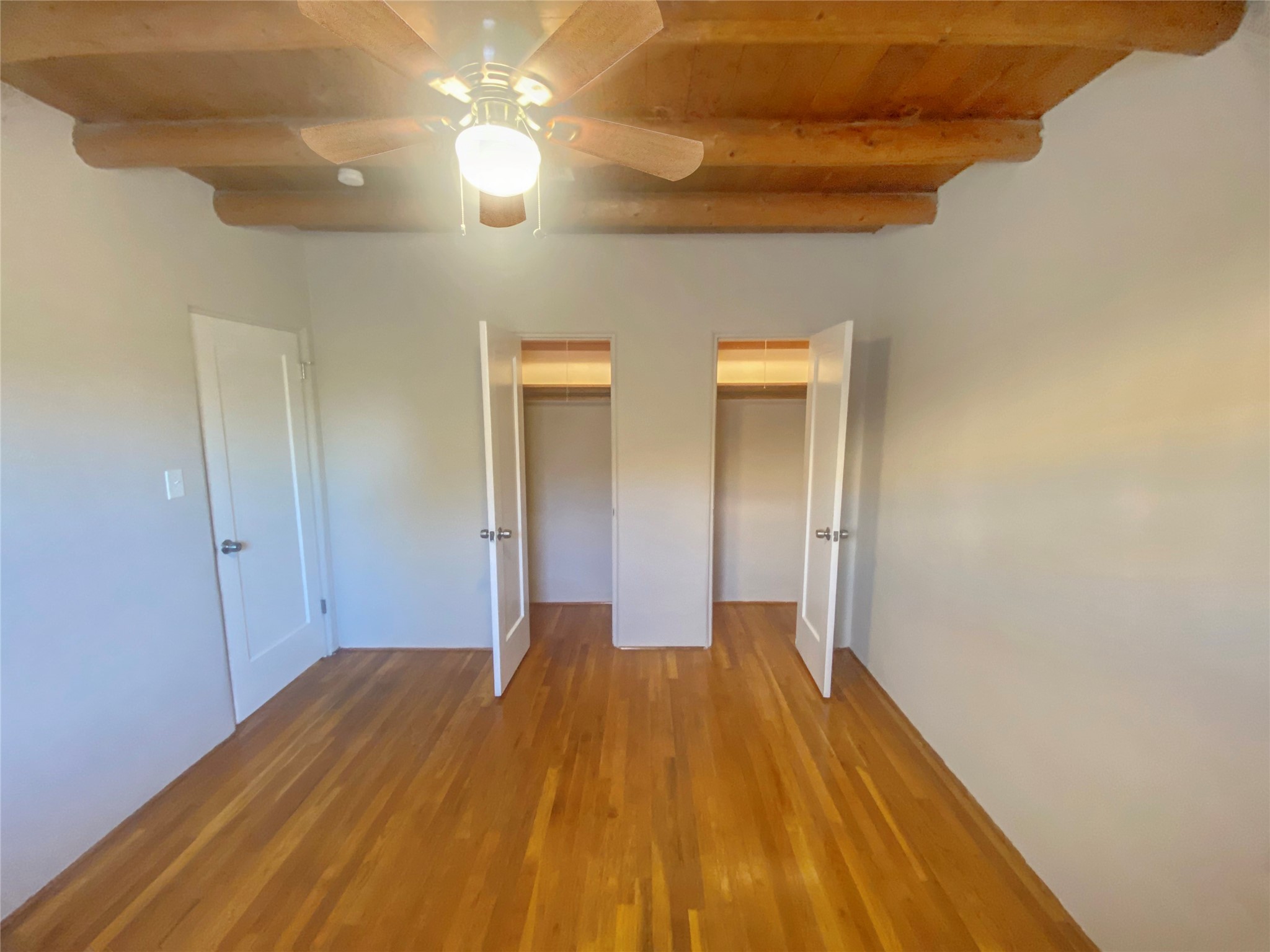 This charming 1.5-story Santa Fe-style home, located in the sought-after Casa Linda Subdivision, offers a blend of classic design and modern comfort. Built in 1949, this 1,958 square-foot residence features 3 spacious bedrooms and 2 bathrooms, making it ideal for families or those seeking extra space. The home's unique character is highlighted by wood vigas, which add rustic appeal, while hardwood floors and Saltillo tile in select areas create a warm, inviting atmosphere throughout the living spaces. The attached garage provides convenience, and the home's well-preserved details reflect its rich architectural history.