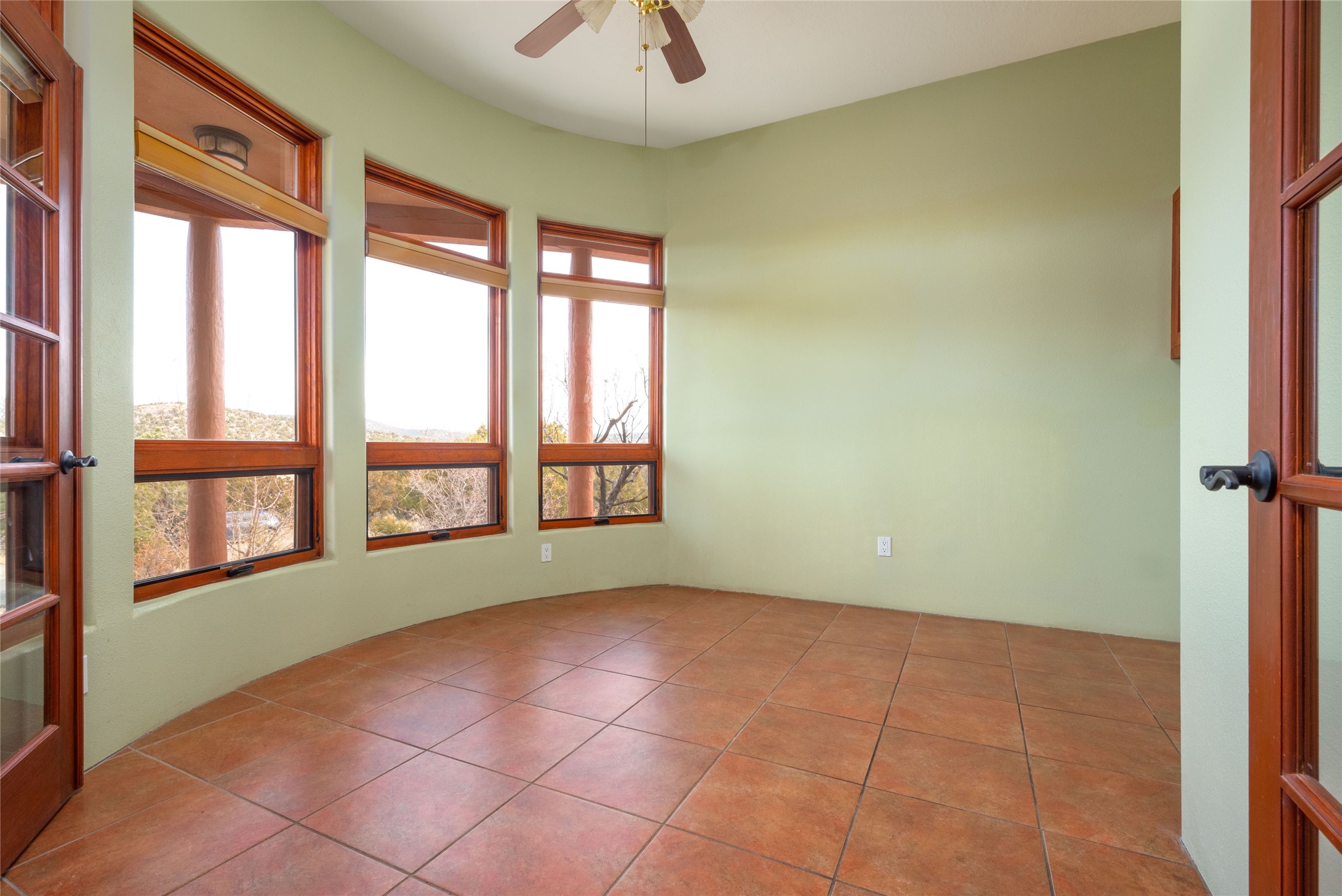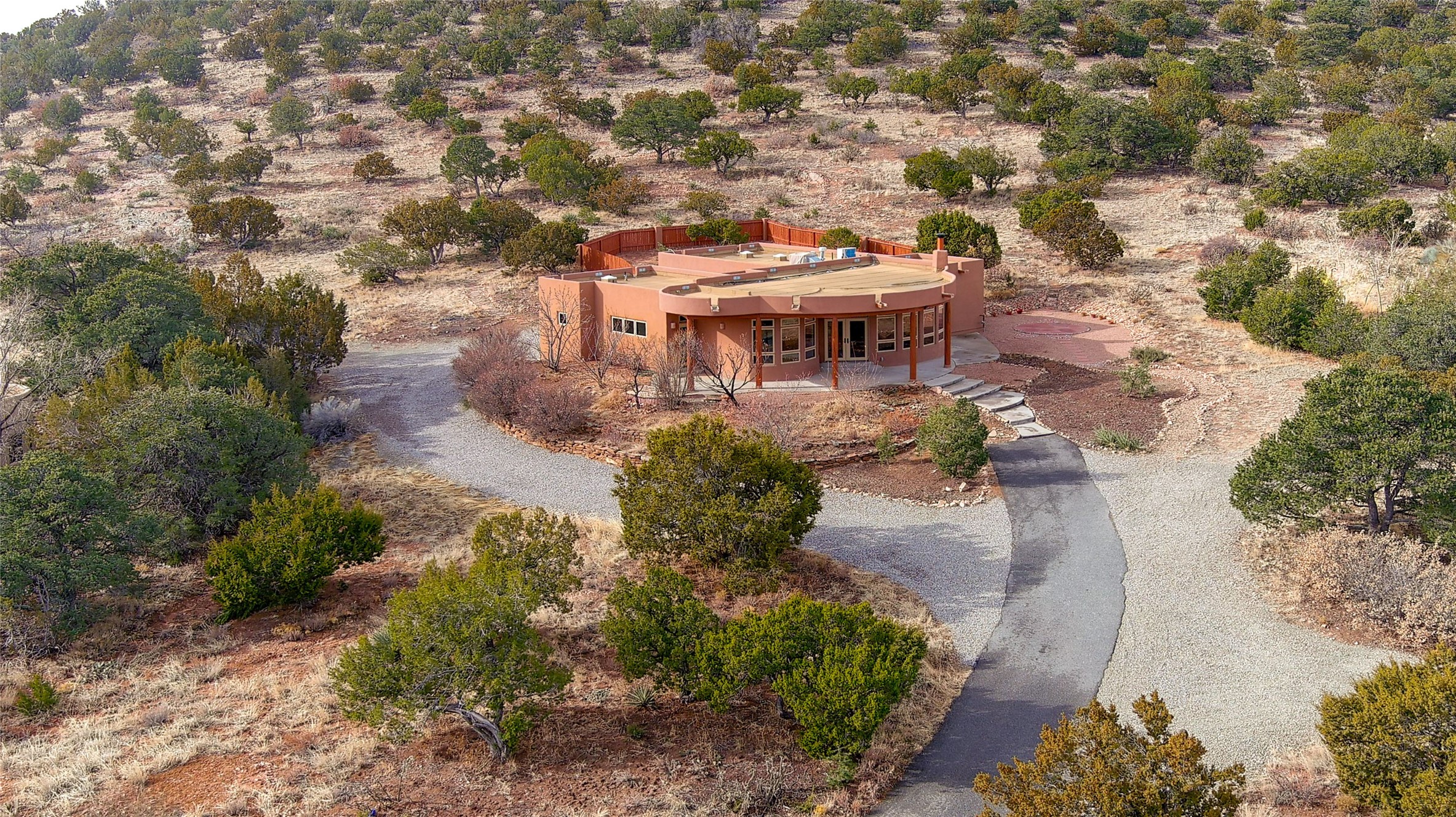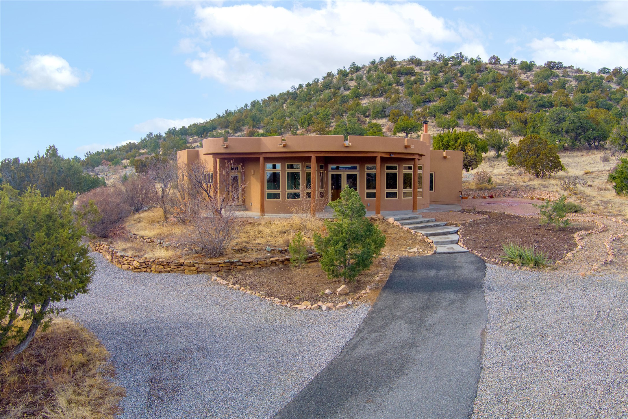 This stunning 2 bedroom, 1 office/bedroom, 2 bath home sits on a premier view lot in the sought after DosGriegos Subdivision, offering breathtaking mountain and foothills views. Designed for privacy,the house is hidden from the street and features a large office, wall of windows, an open floorplan, a plaster kiva fireplace, radial vigas, tile flooring, and solid pine doors. The spaciouskitchen boasts cherry cabinetry and a large walk in pantry. A formal office off of the great roomprovides inspiring views. The oversized garage provides space for hobbies or a workshop andan enclosed dog run/yard adds convenience. With paved roads, community water, fire hydrantsfor lower insurance, and no HOA dues, this high quality 2006 built home offers comfort,seclusion and views. Schedule a showing today!
