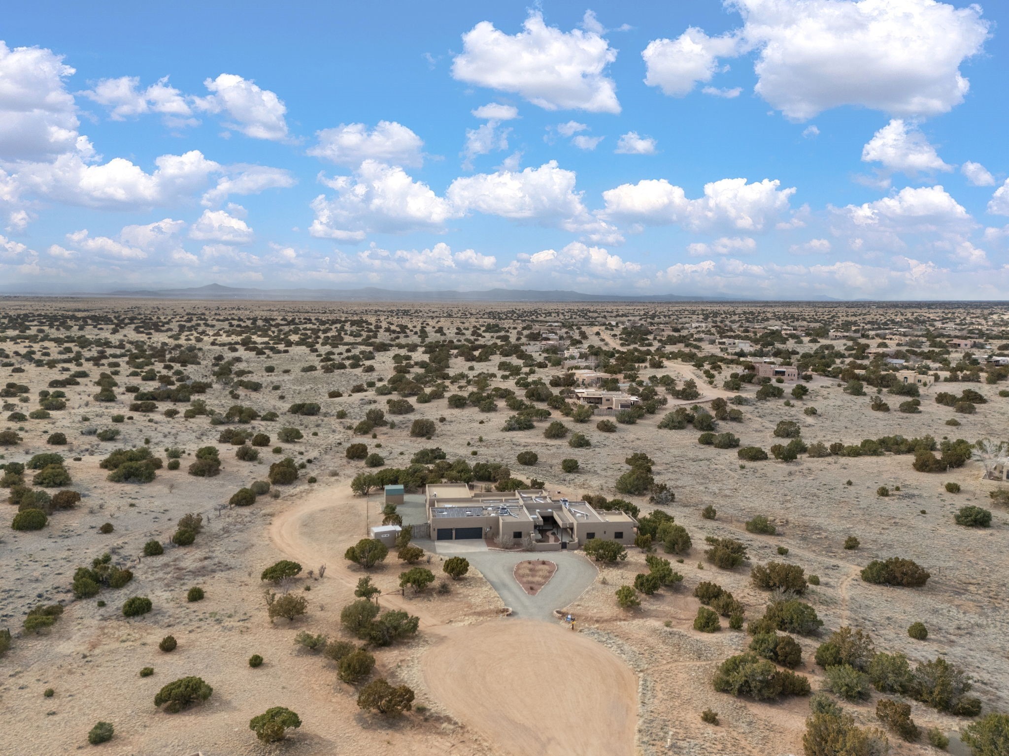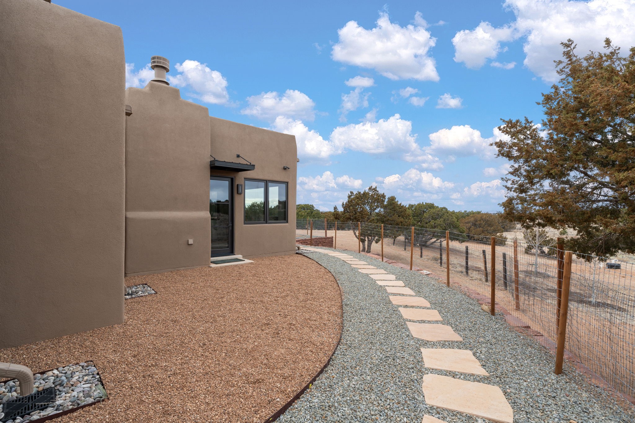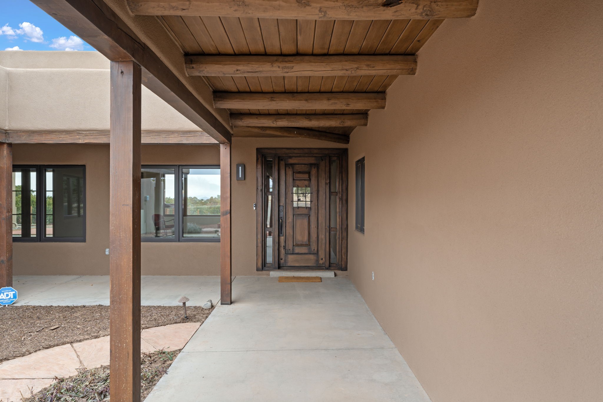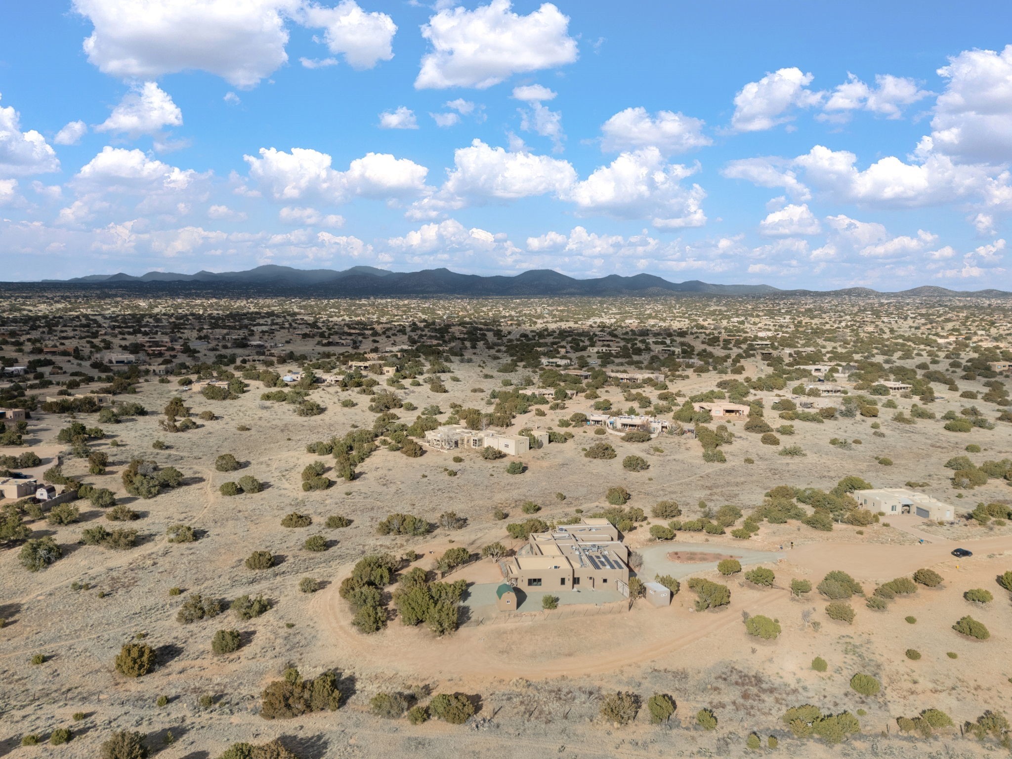 SPECTACULAR ELDORADO ESTATE! Spa living in this extraordinary property with end of the road privacy, mountain views sited on a greenbelt. An endless pool and hot tub have their own room with rain showerhead and room for exercise equipment. In-floor radiant heat with a new HVAC system for back up heating and air conditioning. Generous great room includes dining room and opens to kitchen with Dekton countertops, 2002 stainless appliances, large pantry and an island. Primary wing has library/office with viga ceilings and gas fireplace. Primary bedroom has a private portal and enormous walk-in closet. Primary bath has double sinks, soaking tub and separate shower. Separate guest wing has two bedrooms and a full bath. There is a den/media room off the spa area with a data room for the systems, CAT-6 wifi. Walled front courtyard with covered areas for seating. Fully fenced back yard with large covered portal. California closet systems throughout including kitchen pantry. Solar panels are owned and provide some back up power in the event of an outage.. Large 2.4 acre lot bordering open space with approved RV parking with two areas for hook ups. Proper laundry room with storage and new LG washer/dryer. Approximately 9,000 square feet of fencing. Two sheds, both with electricity. Whole house water filtration. New windows and doors throughout. Three-car finished garage. LIST OF UPGRAGES IN SUPPLEMENTS.