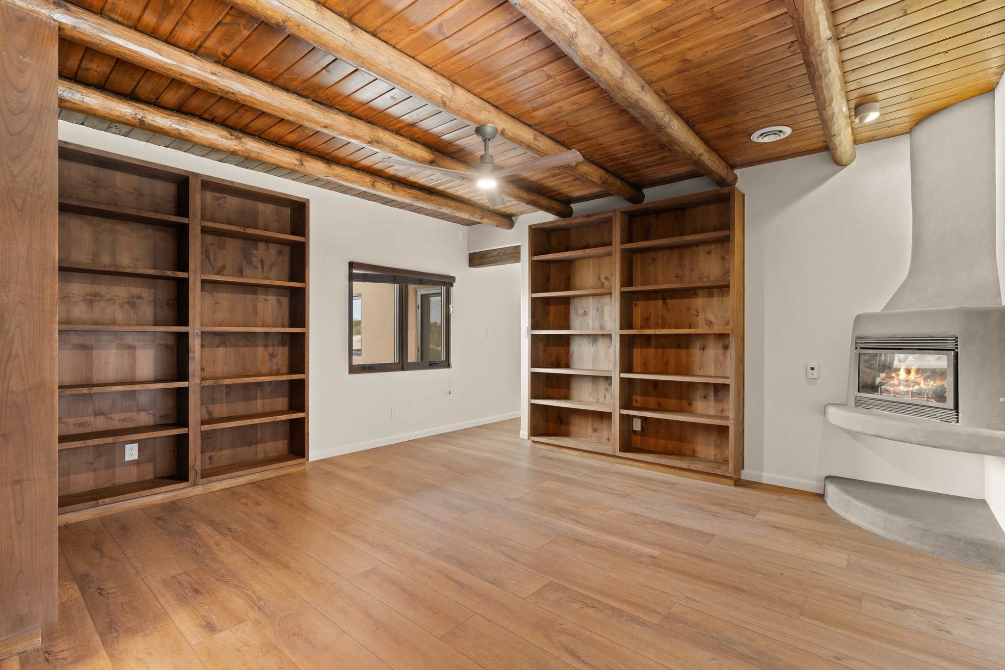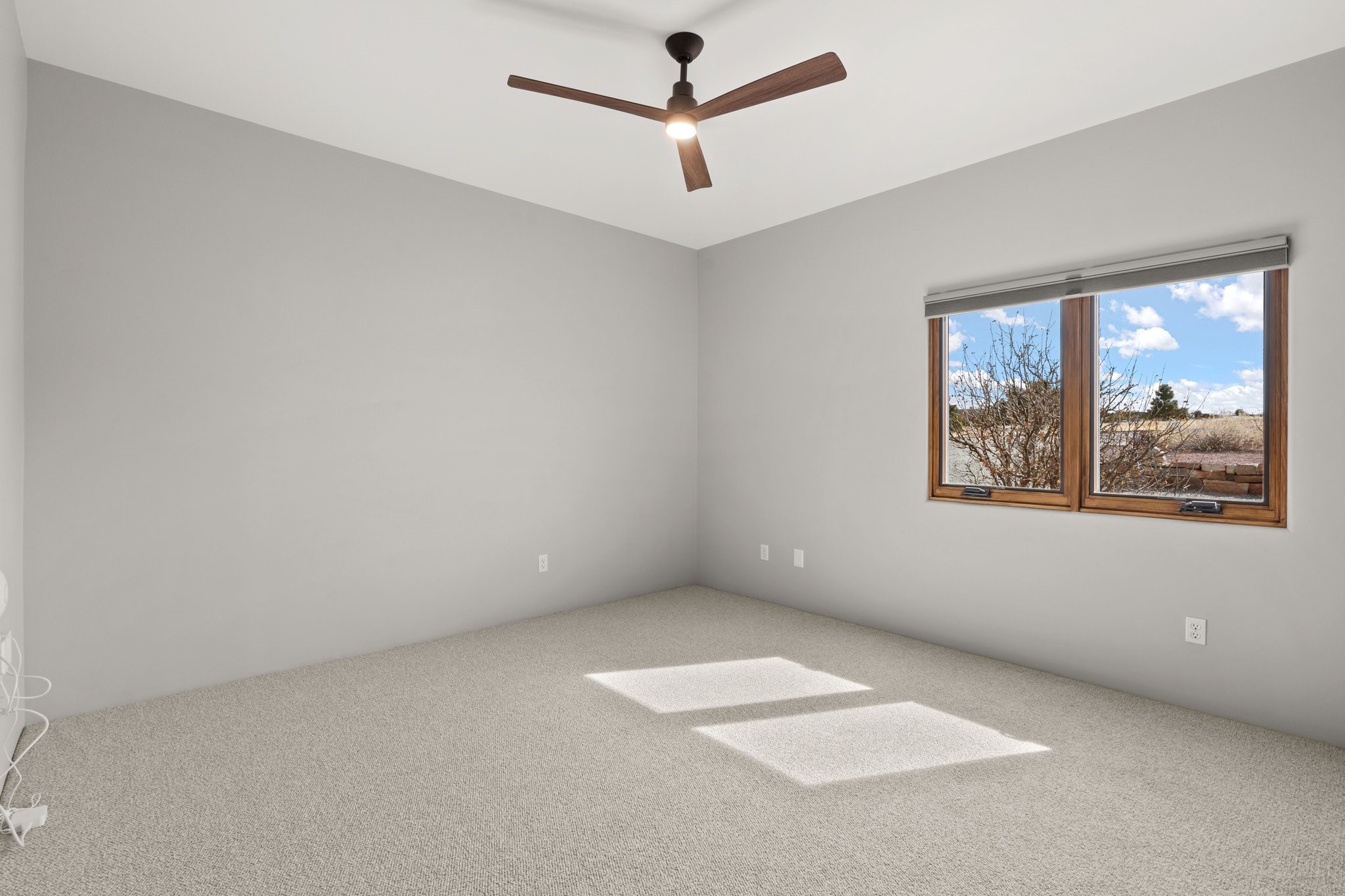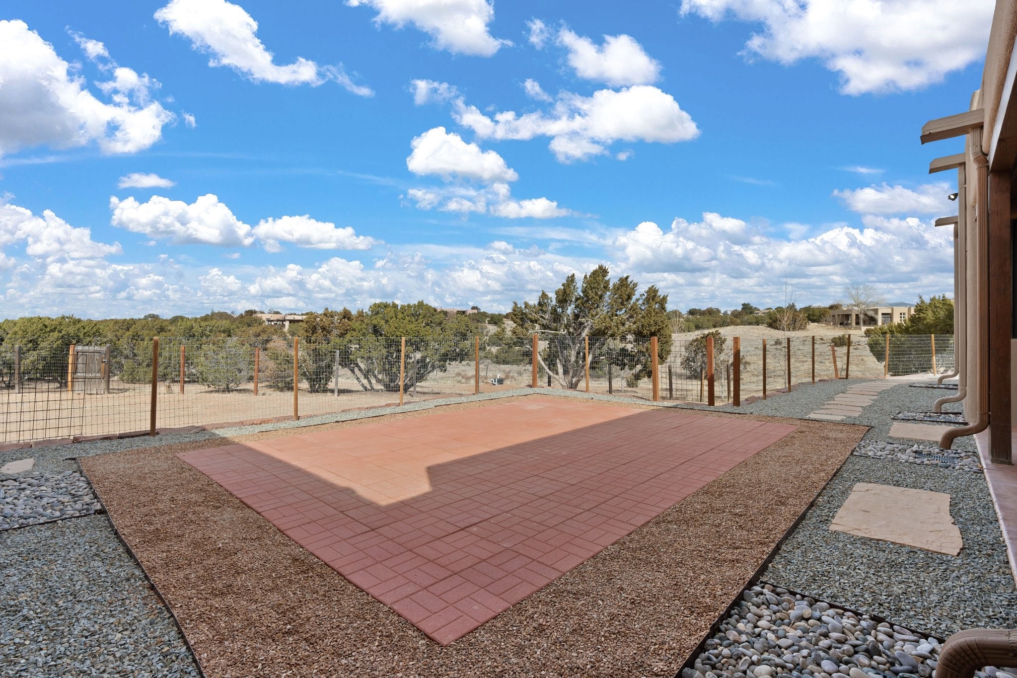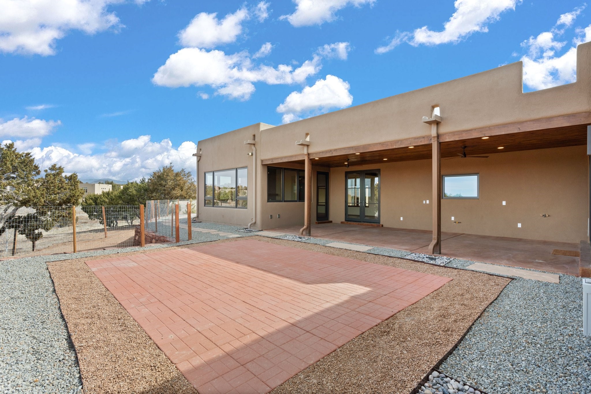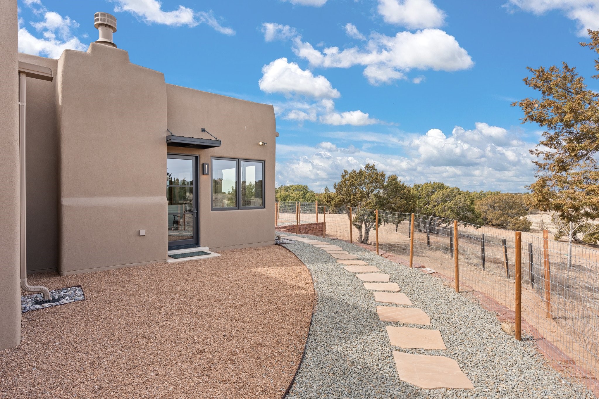 SPECTACULAR ELDORADO ESTATE! Spa living in this extraordinary property with end of the road privacy, mountain views sited on a greenbelt. An endless pool and hot tub have their own room with rain showerhead and room for exercise equipment. In-floor radiant heat with a new HVAC system for back up heating and air conditioning. Generous great room includes dining room and opens to kitchen with Dekton countertops, 2002 stainless appliances, large pantry and an island. Primary wing has library/office with viga ceilings and gas fireplace. Primary bedroom has a private portal and enormous walk-in closet. Primary bath has double sinks, soaking tub and separate shower. Separate guest wing has two bedrooms and a full bath. There is a den/media room off the spa area with a data room for the systems, CAT-6 wifi. Walled front courtyard with covered areas for seating. Fully fenced back yard with large covered portal. California closet systems throughout including kitchen pantry. Solar panels are owned and provide some back up power in the event of an outage.. Large 2.4 acre lot bordering open space with approved RV parking with two areas for hook ups. Proper laundry room with storage and new LG washer/dryer. Approximately 9,000 square feet of fencing. Two sheds, both with electricity. Whole house water filtration. New windows and doors throughout. Three-car finished garage. LIST OF UPGRAGES IN SUPPLEMENTS.