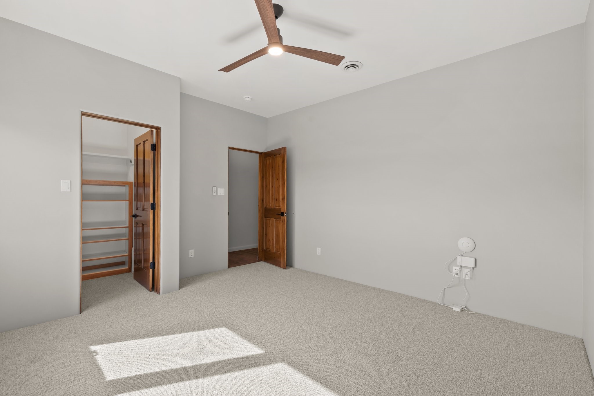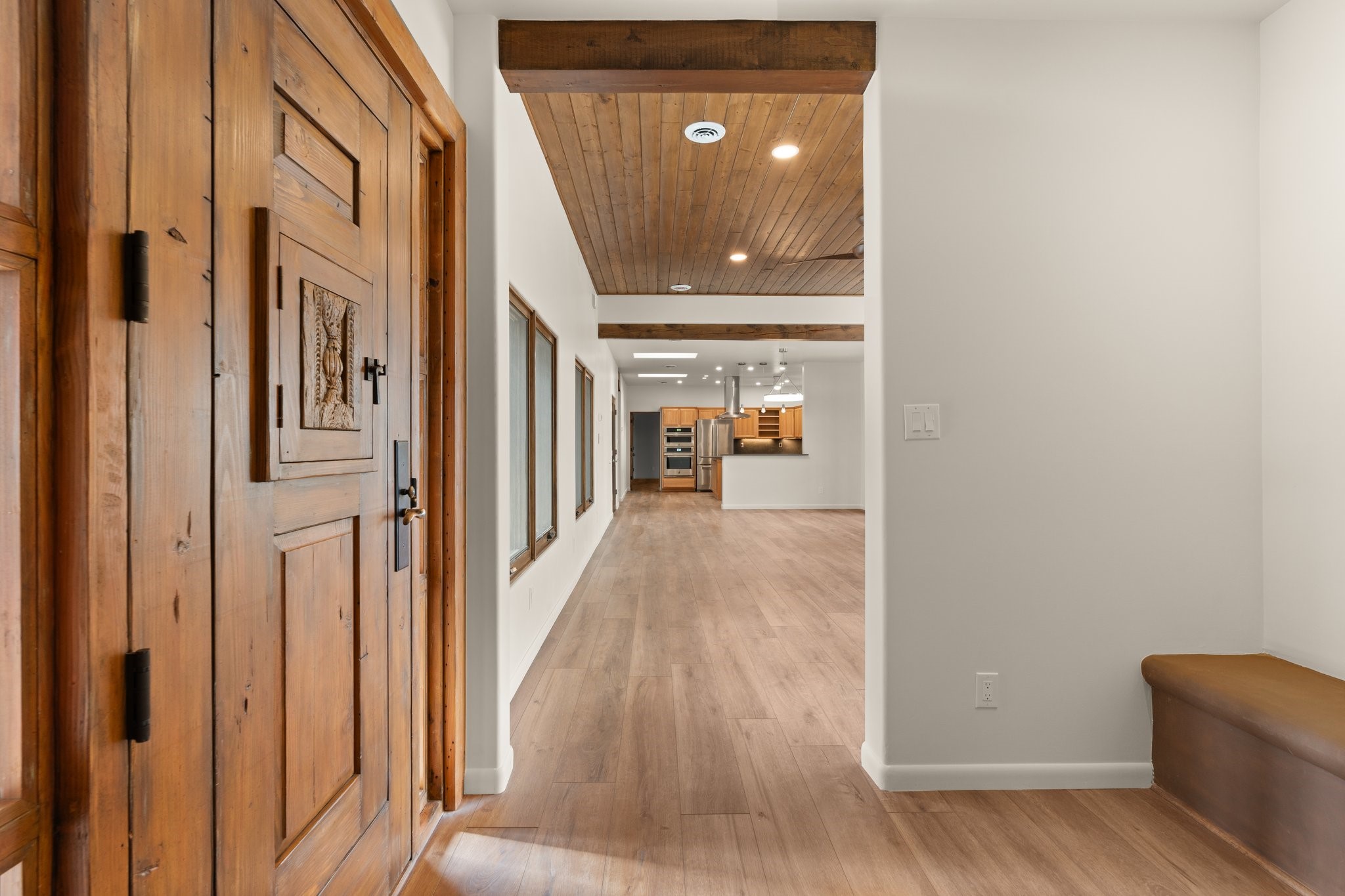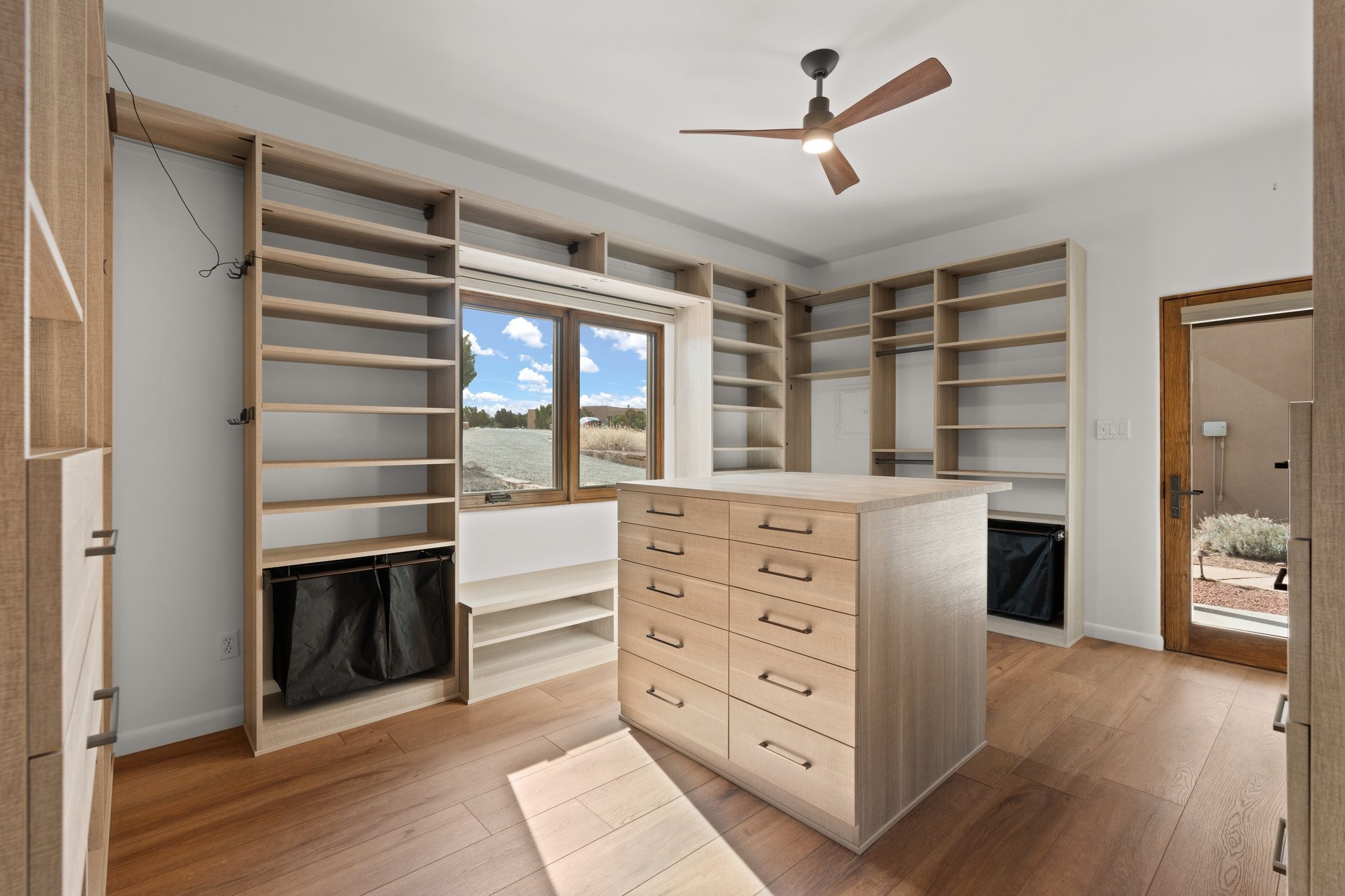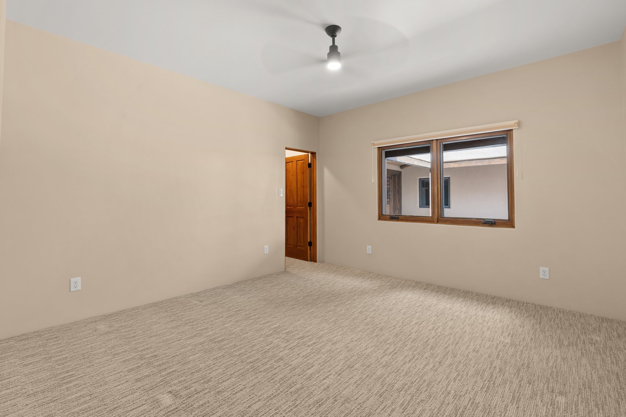 SPECTACULAR ELDORADO ESTATE! Spa living in this extraordinary property with end of the road privacy, mountain views sited on a greenbelt. An endless pool and hot tub have their own room with rain showerhead and room for exercise equipment. In-floor radiant heat with a new HVAC system for back up heating and air conditioning. Generous great room includes dining room and opens to kitchen with Dekton countertops, 2002 stainless appliances, large pantry and an island. Primary wing has library/office with viga ceilings and gas fireplace. Primary bedroom has a private portal and enormous walk-in closet. Primary bath has double sinks, soaking tub and separate shower. Separate guest wing has two bedrooms and a full bath. There is a den/media room off the spa area with a data room for the systems, CAT-6 wifi. Walled front courtyard with covered areas for seating. Fully fenced back yard with large covered portal. California closet systems throughout including kitchen pantry. Solar panels are owned and provide some back up power in the event of an outage.. Large 2.4 acre lot bordering open space with approved RV parking with two areas for hook ups. Proper laundry room with storage and new LG washer/dryer. Approximately 9,000 square feet of fencing. Two sheds, both with electricity. Whole house water filtration. New windows and doors throughout. Three-car finished garage. LIST OF UPGRAGES IN SUPPLEMENTS.