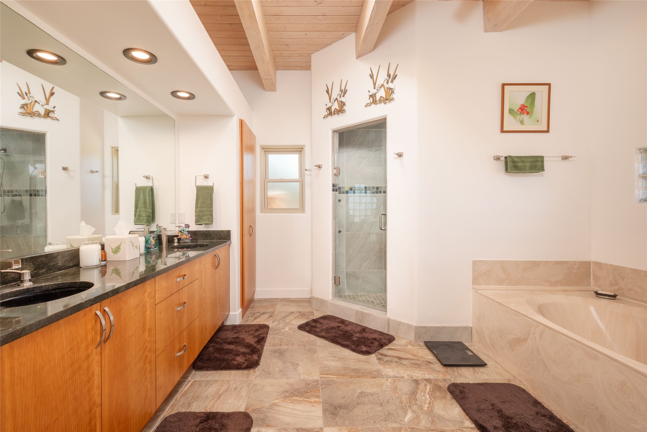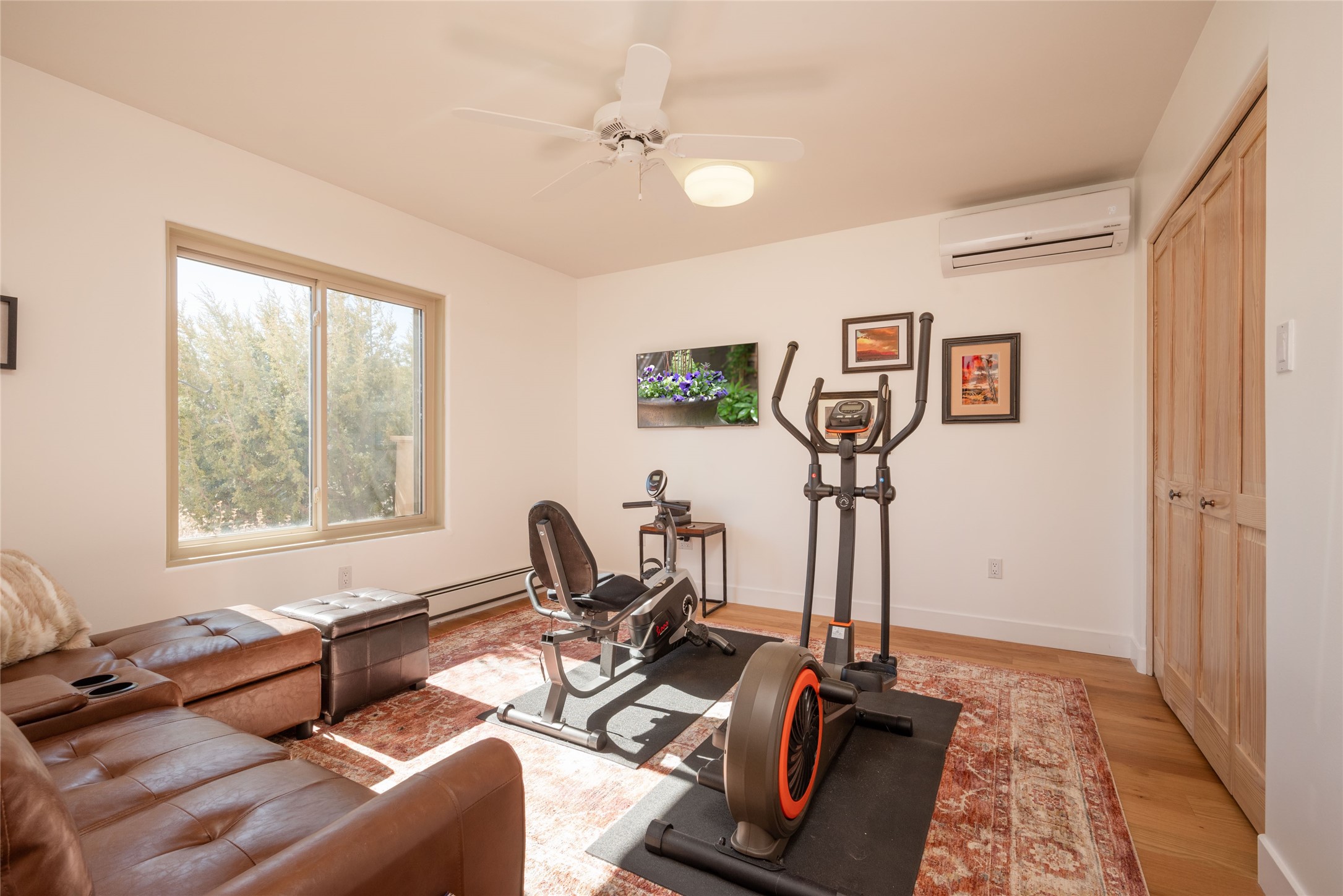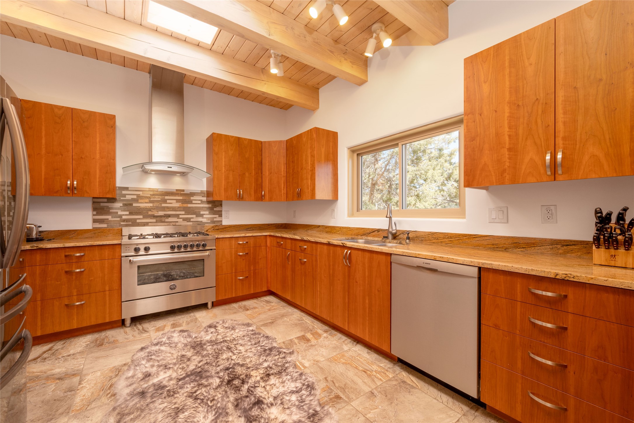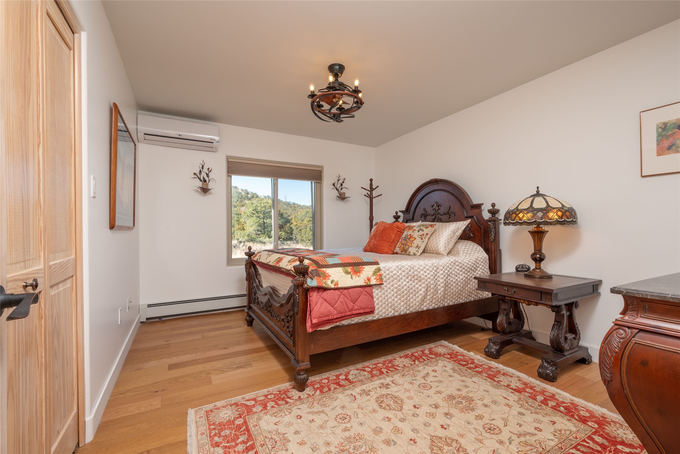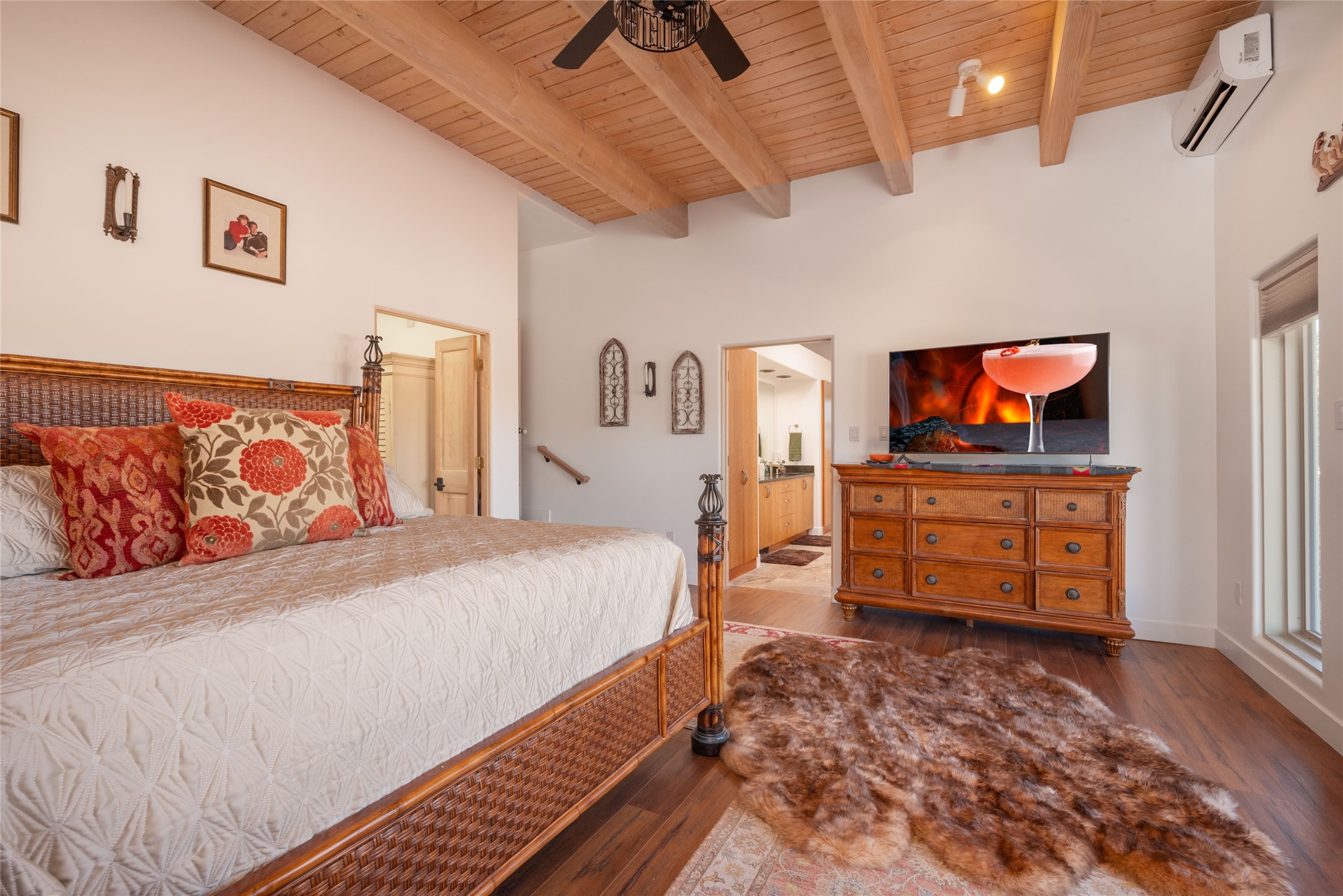 Relaxed southwest elegance in a parklike setting best describes this Dos Griegos home. The hacienda-style floor plan with spacious light-filled living areas is ideal for entertaining or quiet repose. Enclosed courtyards both front and rear offer unrivaled exterior living spaces to enjoy mountain views, starry nights and dramatic New Mexico skies from the private 3+ acre property. Traditional kiva-style fireplaces adorn the living room and primary suite. A spacious and light-filled bonus room with wet-bar and min-frig is ideal for a den, office, studio or media room. The kitchen is a dream featuring expansive granite counters, abundant solid wood cabinetry and top-quality appliances including a Bertazzoni gas range from Italia. The home has been extensively updated both inside and out, from new stucco, windows, landscaping, entry and patio doors to gorgeous bathroom restyling, hardware and fixture upgrades, appliances, and on and on. A complete summary of improvements is available. The home also includes a photovoltaic solar power system providing most if not all of the home's electrical needs. Dos Griegos is located only about 15 minutes from the vibrant and historic City of Santa Fe. Nearby shopping, dining and recreation options are within minutes of the property. This is a special home on a wonderful parcel in a coveted location, the triple crown!