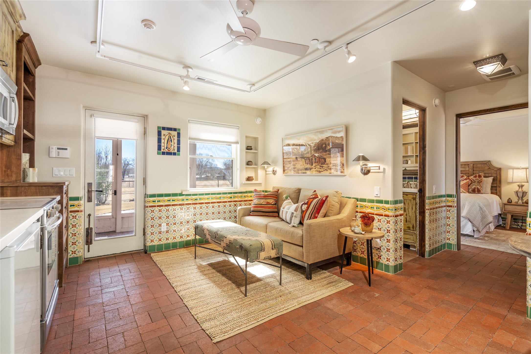 A Northern New Mexico RetreatNestled between Espaola and Abiqui, just 50 minutes from the Santa Fe Plaza and 10 miles from Abiqui, this extraordinary 55-acre estate along the Rio Chama offers a rare blend of privacy, natural beauty, and refined living. With valuable water and irrigation rights, lush pastures, and exclusive private fishing, this retreat is ideal for those seeking both tranquility and adventure.The 3,600 sq. ft. main residence is a sanctuary of comfort and sophistication, featuring two bedrooms, two full baths, and two half baths. Designed for elevated entertaining, the home boasts two full kitchens, a butler's kitchen, large pantry, and expansive living spaces that seamlessly connect to the breathtaking landscape. High ceilings, large windows, and an abundance of natural light enhance the home's airy elegance, while custom finishes reflect the charm of the Southwest. A separate 1,080 sq. ft. 1 bed, 1 bath caretaker's home provides private accommodations for staff or guests.Perfect for equestrian and ranching pursuits, the estate includes a large barn, 8 horse stall barn with a foaling stall, a horse track, and extensive storage buildings. Scenic trails wind through the property, leading to the serene Rio Chama, where you can enjoy exclusive private fishing along your own stretch of riverfront. A tranquil pond, native cottonwoods, and panoramic views create an atmosphere of pure serenity.Beyond its natural beauty, this estate offers limitless potential--whether as a working ranch, equestrian haven, artist's retreat, or luxurious private getaway. Gated for security and privacy, it provides a peaceful yet accessible escape within reach of Northern New Mexico's cultural and outdoor offerings.Experience the perfect balance of luxury, nature, and adventure--where the Rio Chama's gentle waters call you home. For Drone Video go to https://youtu.be/KvkiFsoOq5w