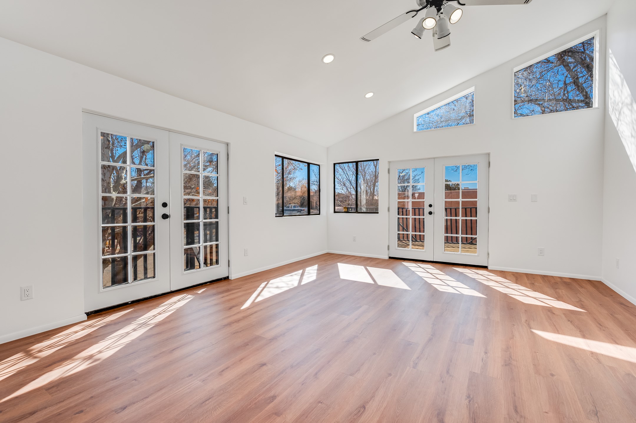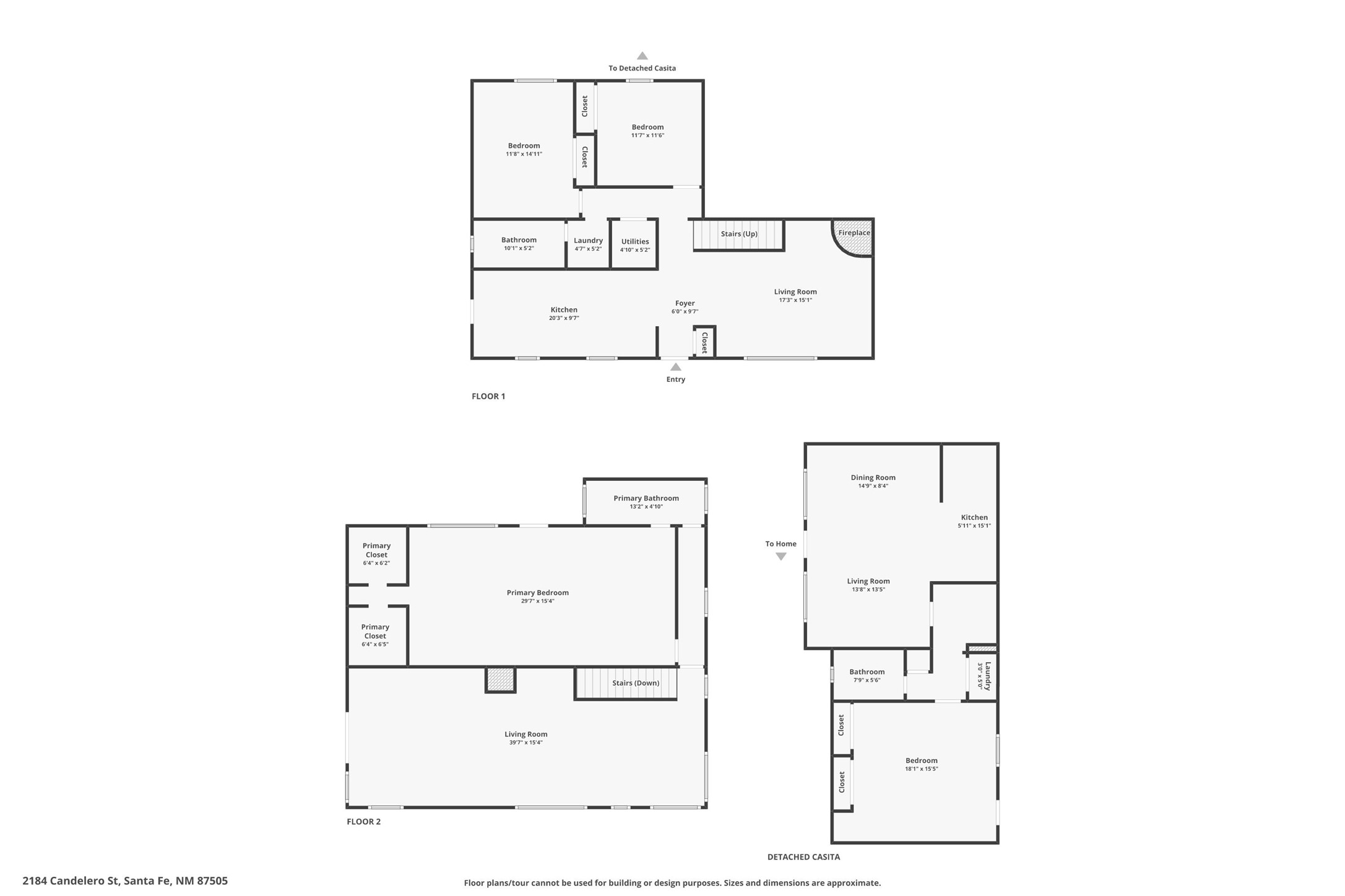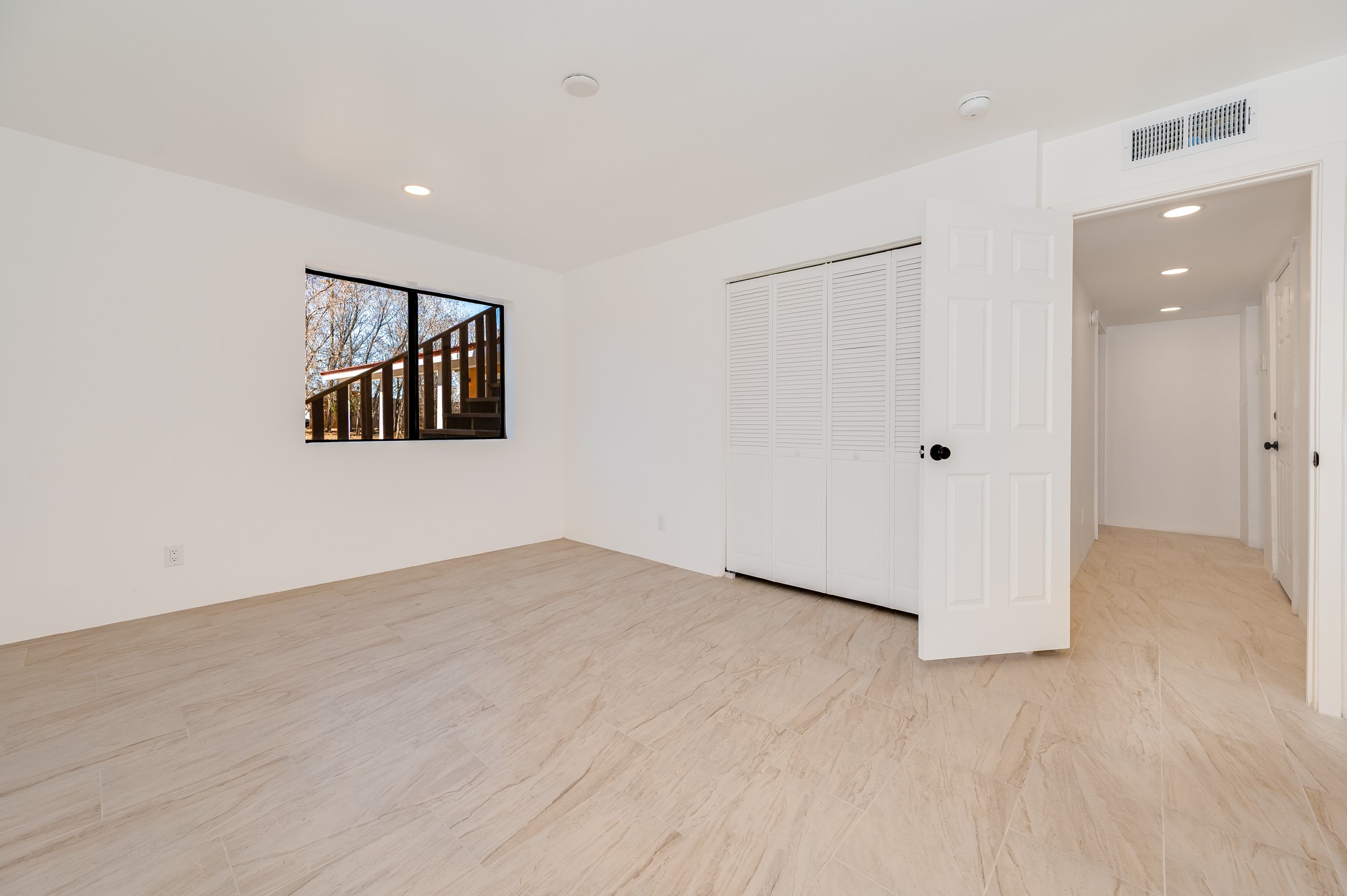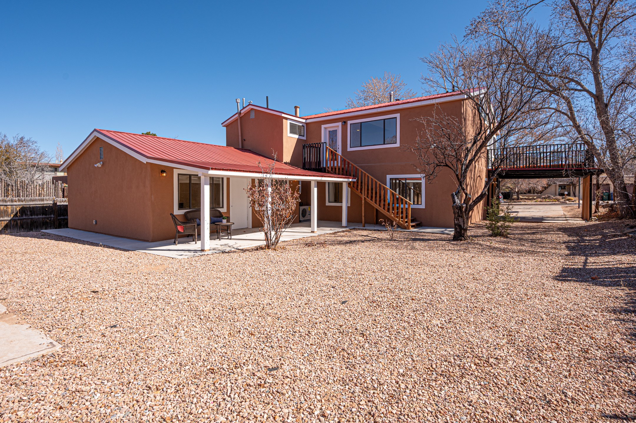 This beautifully renovated 2-level home covers 2,672 square feet of artful design and practicality. Offering an adaptable layout that can be tailored as two or three units, the entire home has been updated with recessed lighting, new kitchens complete with stainless appliances, new bathrooms, and gorgeous tile flooring. With many more features to love, including A/C, kiva fireplace, large balcony, a huge backyard and carport, this stellar property is in a prime location for commuters and ready for move-in! The main home offers two bedrooms on the main level. Upstairs, a spacious and light filled suite with secondary living area also has a separate private entry that can easily double as a light-filled studio or in-law suite, while the attached guest house presents another passive income opportunity. This established neighborhood with no HOA is ideal for commuters, a stones throw from shops, and central to everything Santa Fe has to offer.