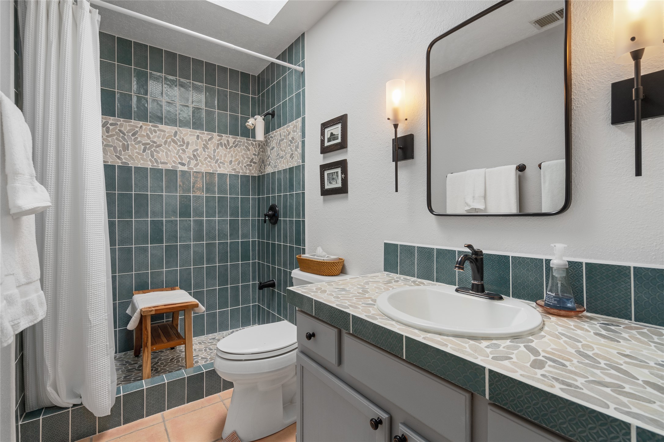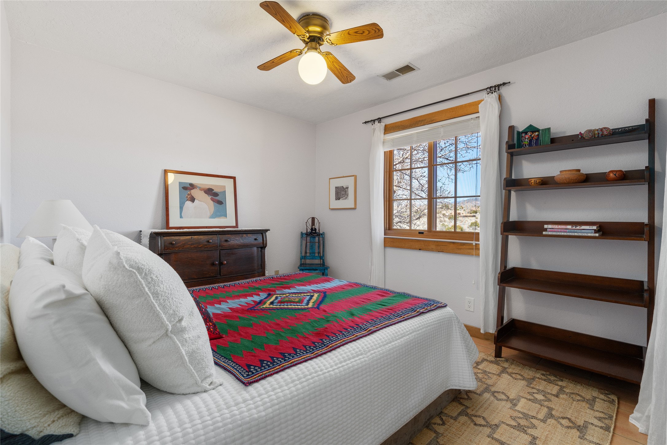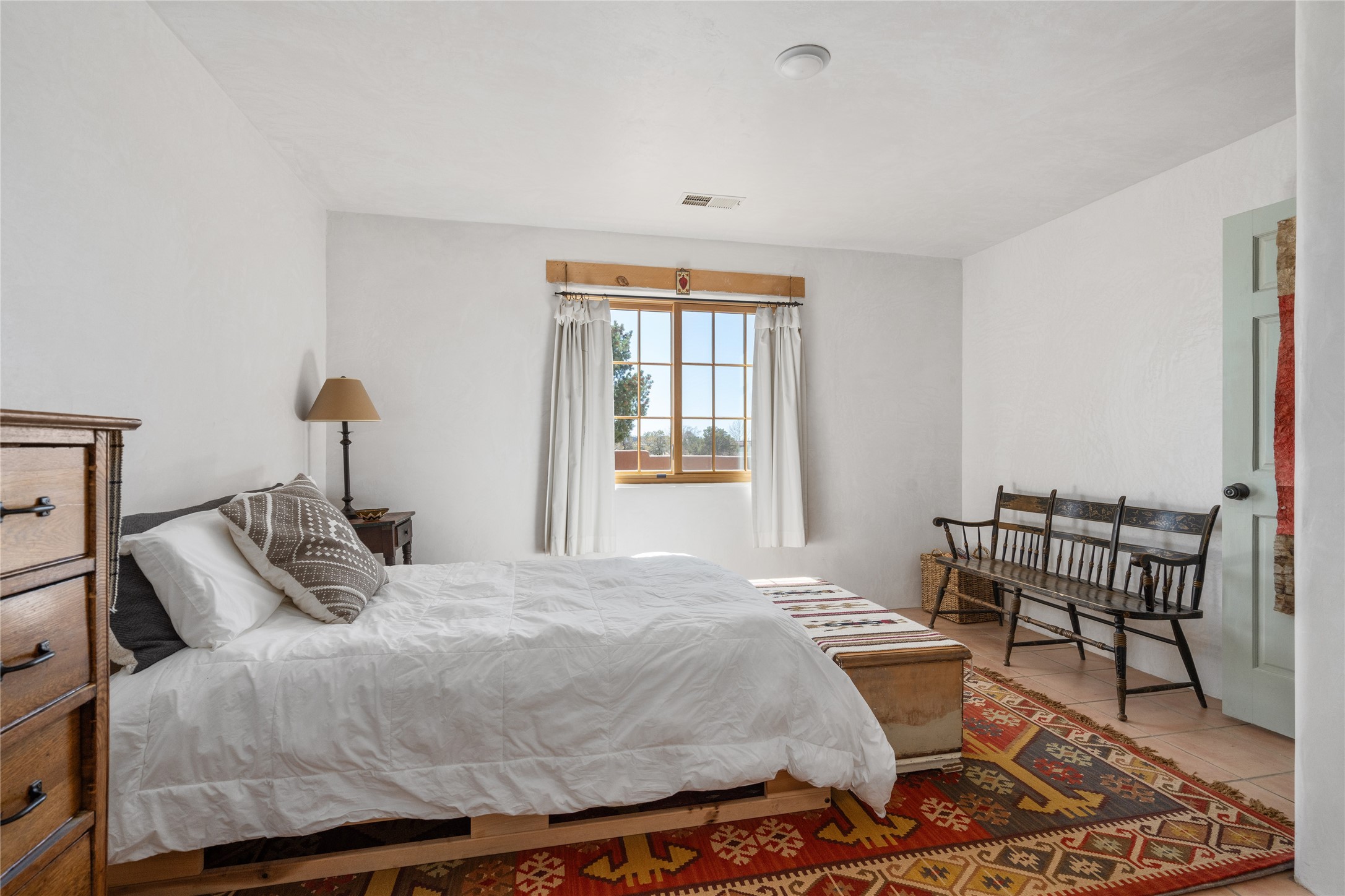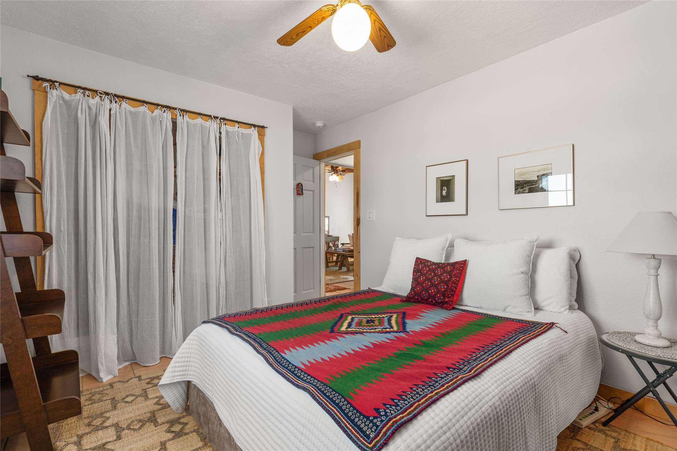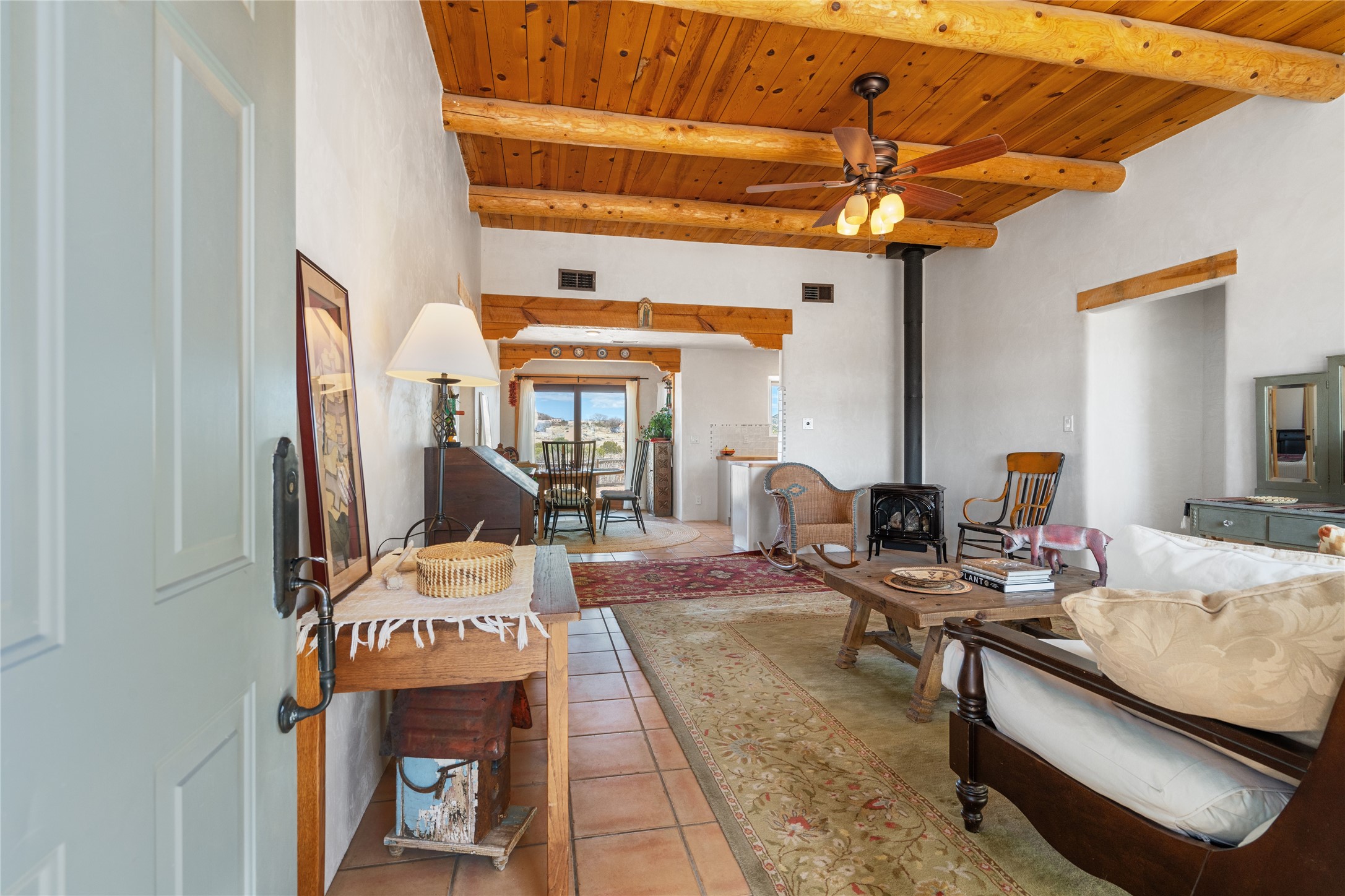 This unique jewel box home at 11 Bosque Loop offers serenity, natural beauty, abundant wildlife, and convenience in one of Santa Fe's most desirable locations. Sited on 1.24 acres on an arroyo green space, the house has been lovingly renovated with design, character, and quality in mind: natural materials and finishes, and hand-crafted traditional features such as high ceiling vigas, door and window lintels, rough sawn beams, corbels, Spanish tile, and diamond plaster walls that reflect abundant sunlight.The split floor plan offers an open living and dining area with views of the Sangre de Christo mountains. The primary suite is separated from the two guest bedrooms. Enjoy year-round comfort from the passive solar siting with forced air heating and air conditioning.The airy kitchen and both full bathrooms have been fully renovated with new Spanish tile, fixtures, and appliances.Step outside and savor the big skies, abundant birdsong, and vibrant landscape. A walled courtyard contains raised garden beds, trees, and plenty of room for your flowering pots. Coyote fencing offers privacy in the backyard.Eldorado community has many amenities. Extensive hike/bike trails, access to the Santa Fe Rail Trail, nearby shopping and service complexes, a gym and day care center, hardware store, cafes and restaurants, and a county library are all within a 5-minute drive.With its gorgeous setting and thoughtful renovation, this turn-key home invites you to experience the best of Santa Fe's relaxing lifestyle, full of beauty and tranquility. Schedule a showing today!