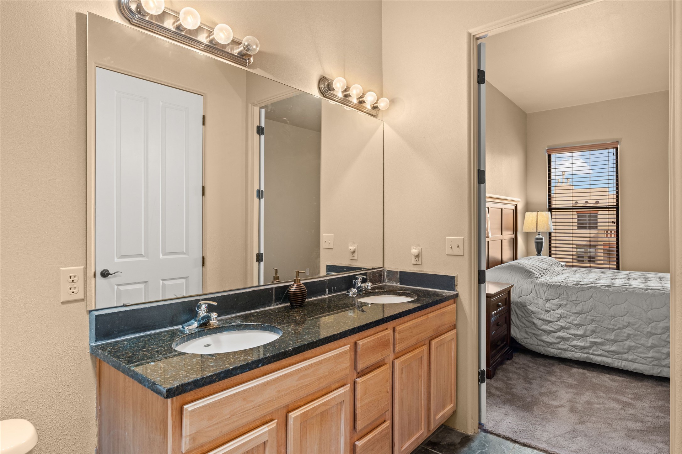 2-bedroom, 2-bath condo in the well-maintained enclave of The Alameda Condos. Single level, no interior steps property that perfectly combines modern comfort with an inviting atmosphere. This unit features high ceilings adorned with traditional vigas, enhancing the spacious feel of the living area. The gas fireplace adds a touch of warmth, making it an ideal spot for relaxation or entertaining guests. Step outside onto your private balcony, where you can enjoy fresh air. The Alameda Condos community offers a variety of amenities that elevate your lifestyle. Enjoy the convenience of an elevator, take a refreshing dip in the pool, work up a sweat in the fitness center, or unwind in the clubhouse. Located approximately 5 miles southwest of the Historic Plaza, this prime location offers easy access to the vibrant culture that the area has to offer. Plus, with the Chavez Community Center, restaurants, shopping, and entertainment just half a mile away, you'll have everything you need right at your fingertips.