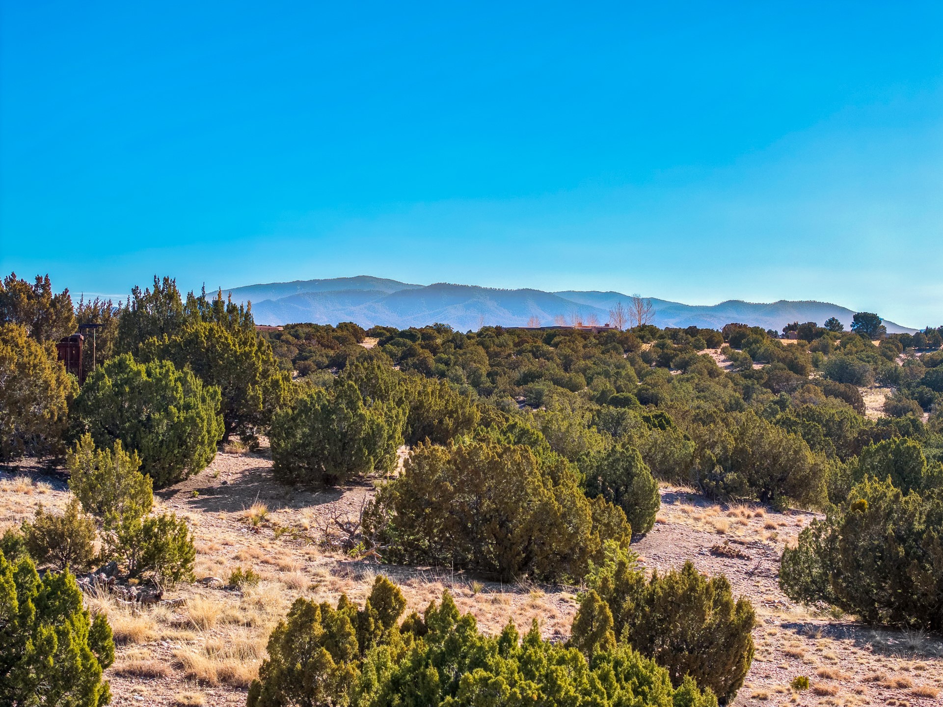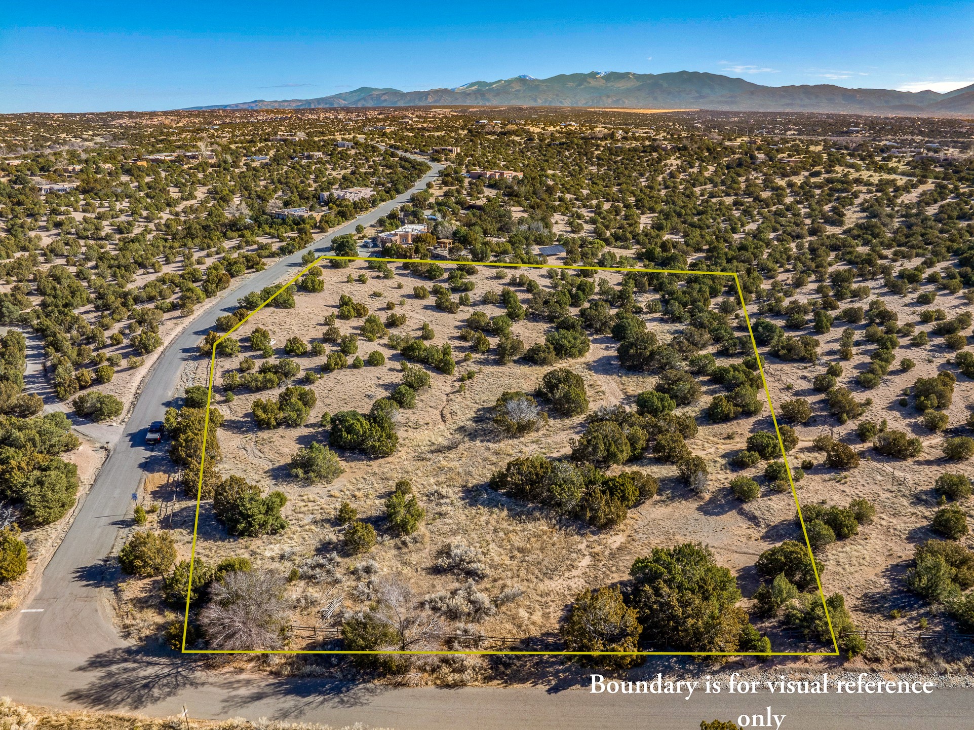 3.62 acres just minutes from town in desirable Puesta Del Sol. This attractive lot features views of the Sangre de Cristo's, Sandias, and Jemez Mountains. Gentling sloping corner lot with potential build sites perched well above an arroyo, on paved roads, with underground power and natural gas available. 11 minutes to Santa Fe Place Mall, 15 minutes to the plaza, and near the 599, this acreage is convenient to wherever you want to go. Perfect for the buyer who wants some space without getting too far out.