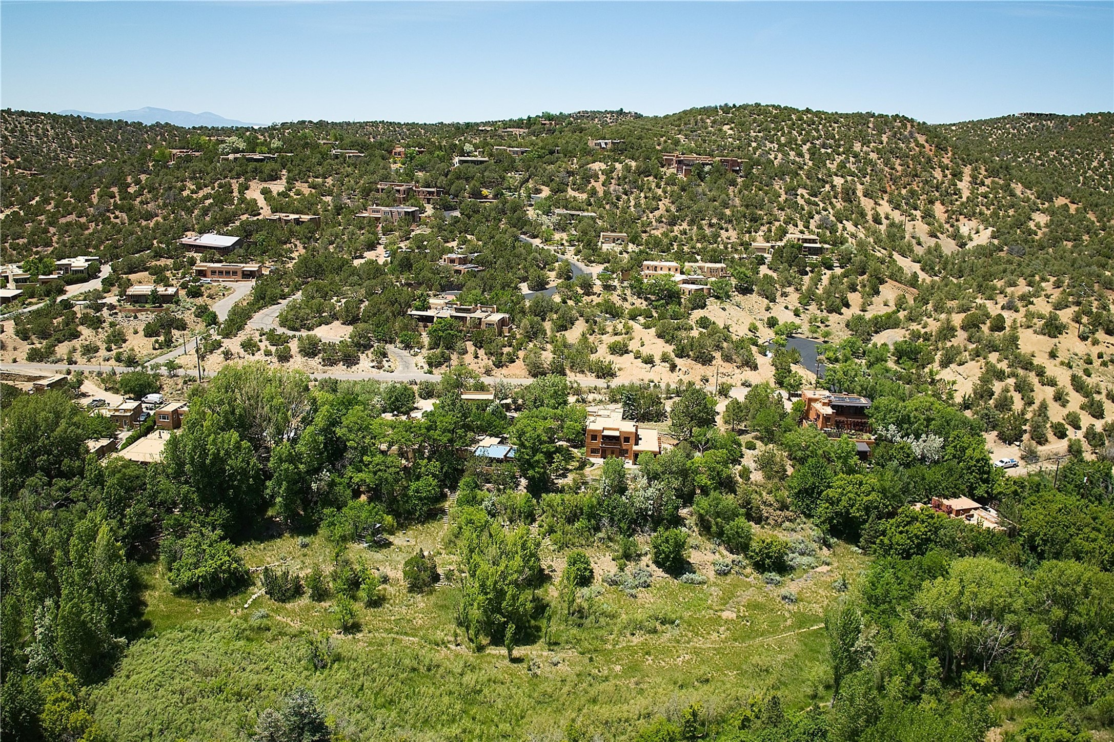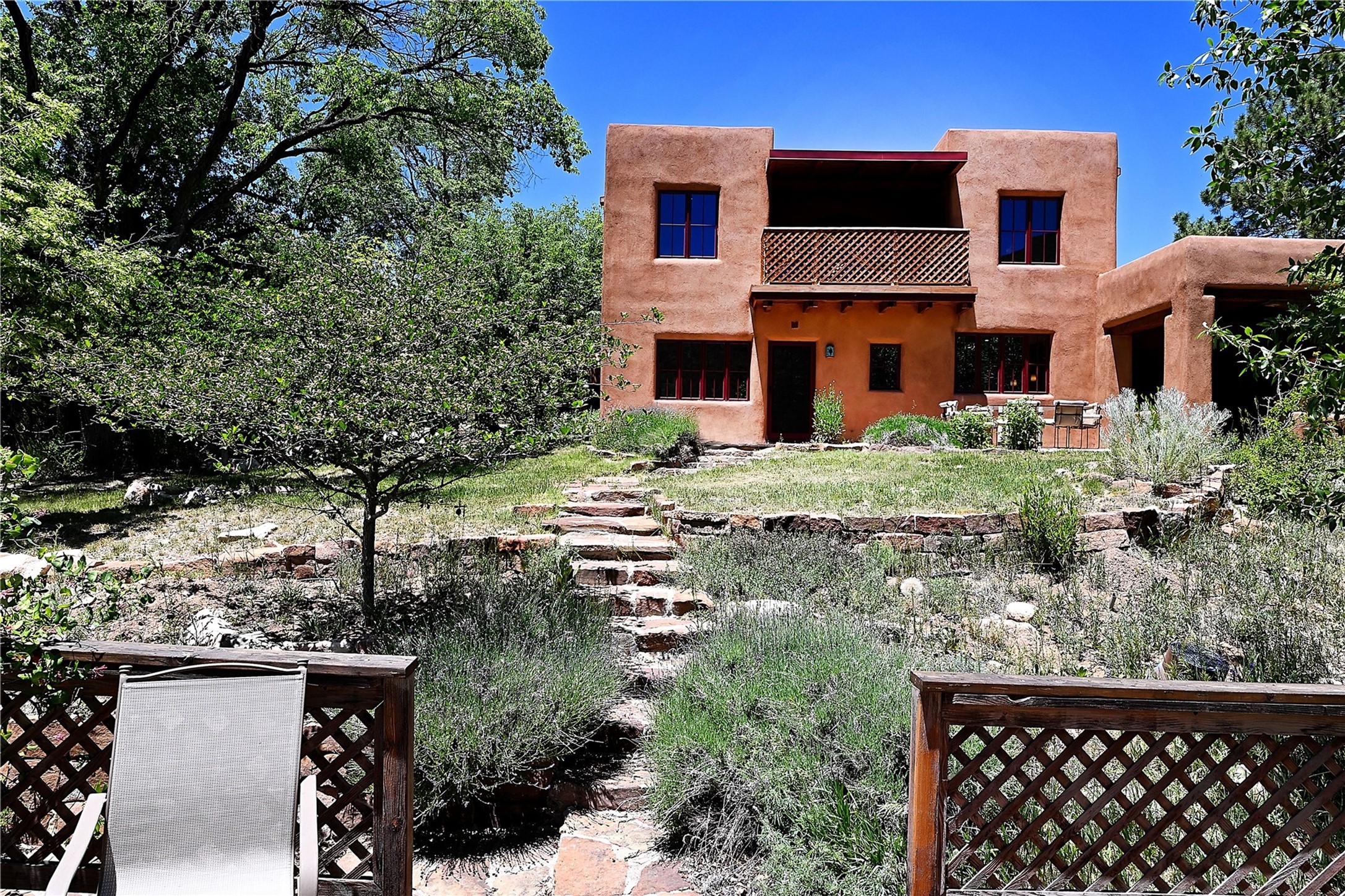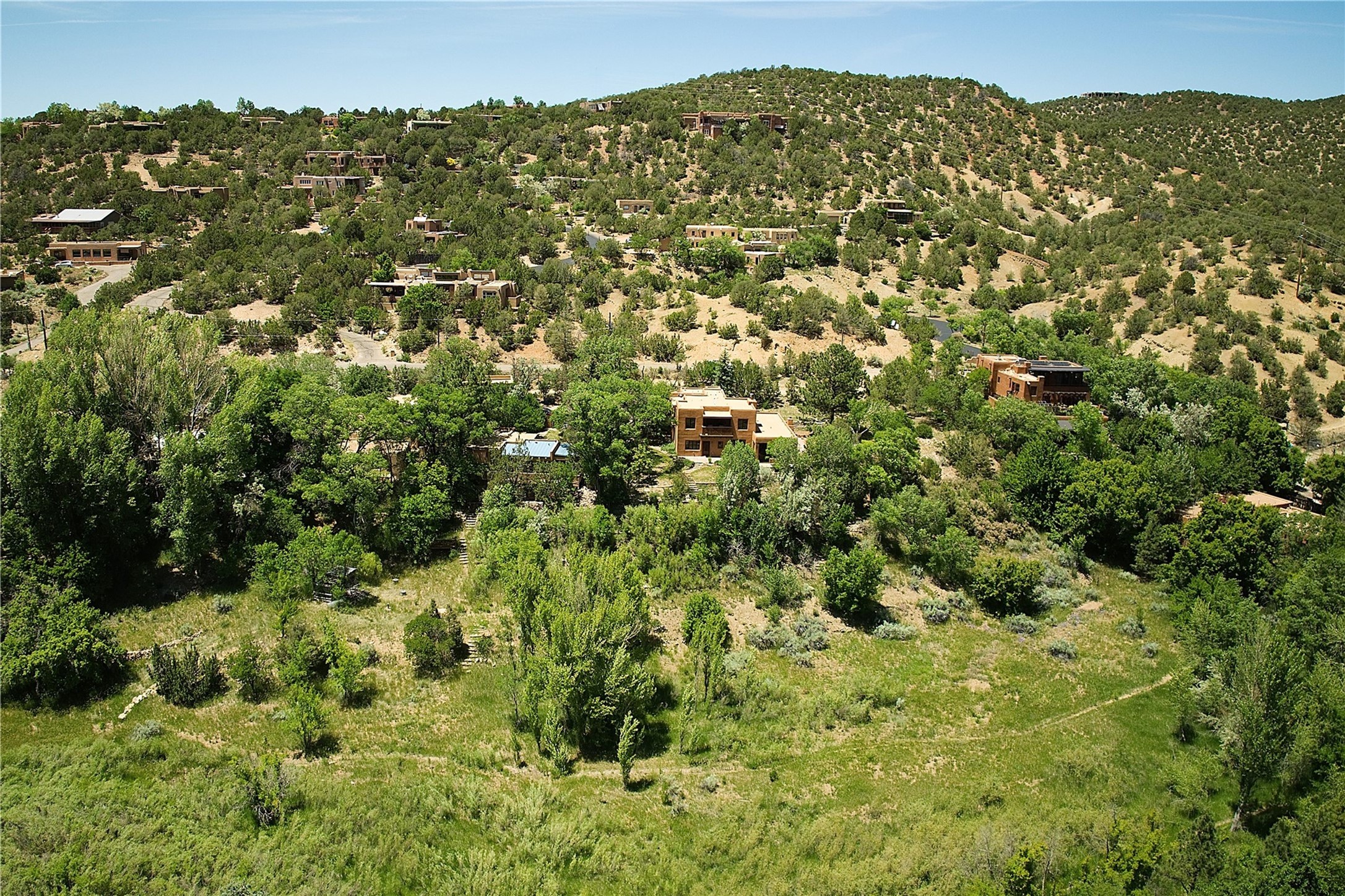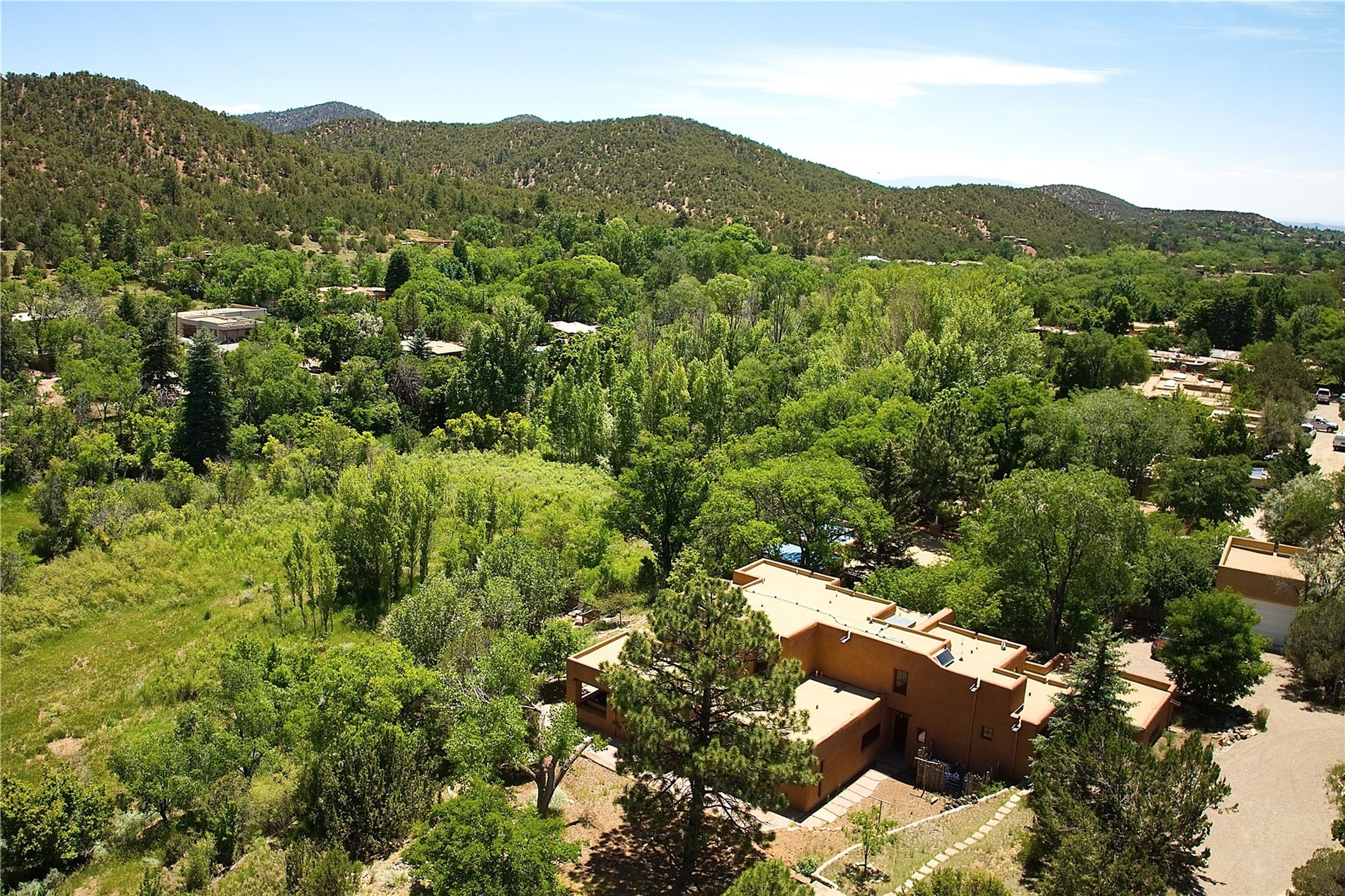 1678cerrogordo.com Welcome to a rare and enchanting retreat tucked away in the heart of Santa Fe's Historic Eastside--where riverfront serenity, natural beauty, and timeless adobe architecture come together perfectly. Set on 2.738 acres across two separately deeded parcels, this one-of-a-kind offering includes a spacious 4,000 sq. ft. home and an adjacent .738-acre wooded lot, offering endless possibilities for expansion, privacy, or simply room to breathe. The residence is surrounded by open meadows, mature shade and fruit trees, and lush cottonwoods, with the Santa Fe River gracefully lining the southern edge and the acequia flowing beside the home, adding a soothing soundtrack to this natural sanctuary. Inside, the home features three bedrooms, each with en-suite baths, including a primary suite with a steam sauna, a gourmet kitchen, and wood-burning fireplaces on both levels. The open-concept floor plan is filled with natural light and offers ample wall space--perfect for showcasing art. The upper level can serve as a luxurious primary suite or private guest quarters, complete with its own living and dining spaces, a grand arched picture window, and balcony with views of Picacho Peak in the Sangre de Cristo foothills. Outside, you'll discover a landscape alive with native flora, wildflowers, and birdsong. The adjacent .738-acre lot is a canvas for your imagination--build a future guesthouse, artist studio, or keep it as a peaceful spot to garden, paint, or simply unwind. Direct access to National Forest trails lies just outside the garden gate, yet you're only minutes from Canyon Road and the historic Santa Fe Plaza--a rare blend of seclusion and accessibility. Opportunities to own a riverfront property in Santa Fe are incredibly rare. This is more than a home--it's a retreat, a sanctuary, and an extraordinary chance to own a truly special piece of Santa Fe.