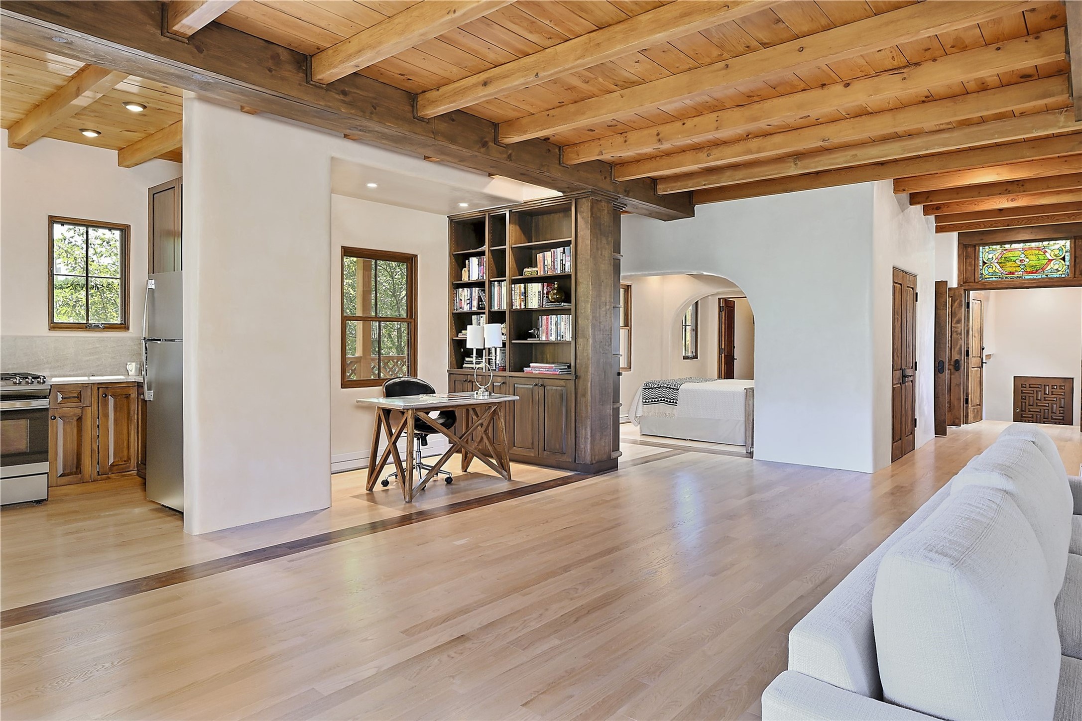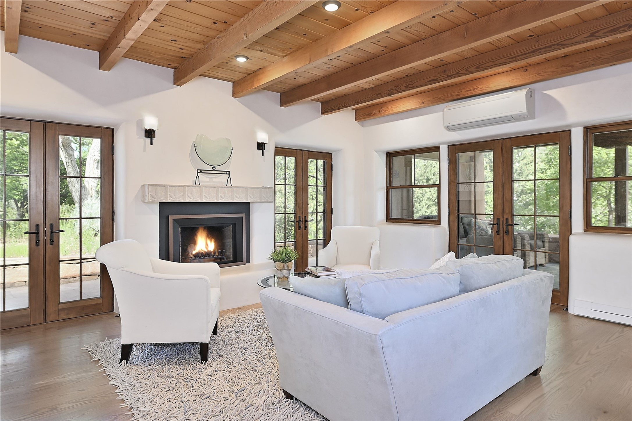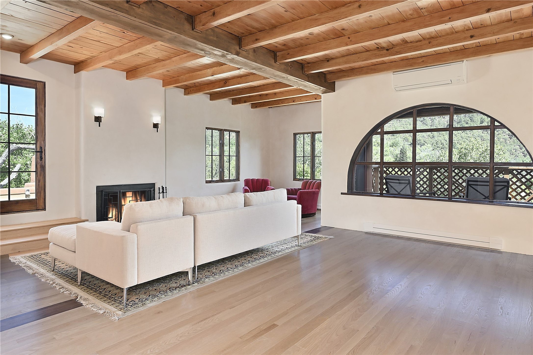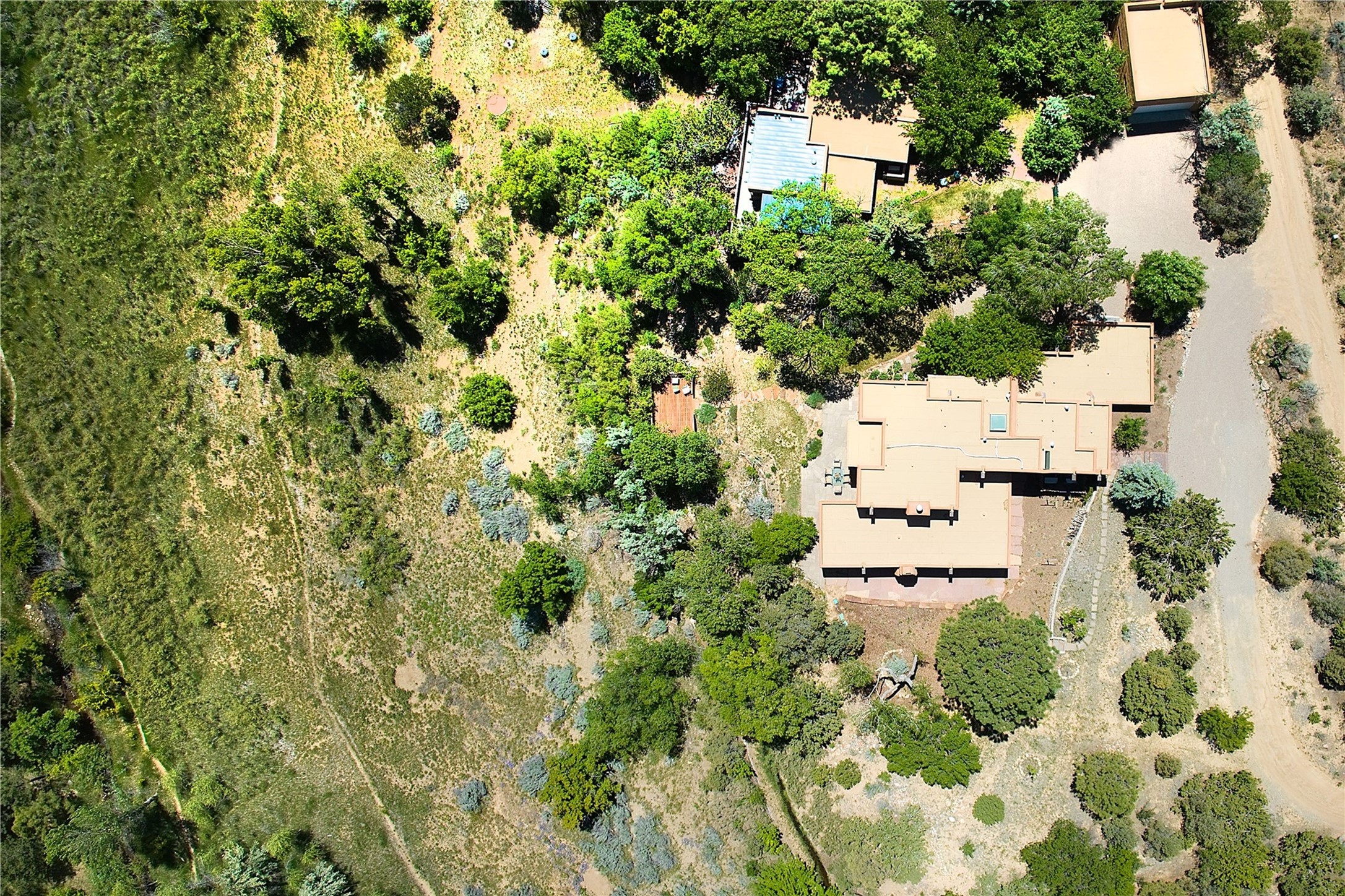1678cerrogordo.com Welcome to a rare and enchanting retreat tucked away in the heart of Santa Fe's Historic Eastside--where riverfront serenity, natural beauty, and timeless adobe architecture come together perfectly. Set on 2.738 acres across two separately deeded parcels, this one-of-a-kind offering includes a spacious 4,000 sq. ft. home and an adjacent .738-acre wooded lot, offering endless possibilities for expansion, privacy, or simply room to breathe. The residence is surrounded by open meadows, mature shade and fruit trees, and lush cottonwoods, with the Santa Fe River gracefully lining the southern edge and the acequia flowing beside the home, adding a soothing soundtrack to this natural sanctuary. Inside, the home features three bedrooms, each with en-suite baths, including a primary suite with a steam sauna, a gourmet kitchen, and wood-burning fireplaces on both levels. The open-concept floor plan is filled with natural light and offers ample wall space--perfect for showcasing art. The upper level can serve as a luxurious primary suite or private guest quarters, complete with its own living and dining spaces, a grand arched picture window, and balcony with views of Picacho Peak in the Sangre de Cristo foothills. Outside, you'll discover a landscape alive with native flora, wildflowers, and birdsong. The adjacent .738-acre lot is a canvas for your imagination--build a future guesthouse, artist studio, or keep it as a peaceful spot to garden, paint, or simply unwind. Direct access to National Forest trails lies just outside the garden gate, yet you're only minutes from Canyon Road and the historic Santa Fe Plaza--a rare blend of seclusion and accessibility. Opportunities to own a riverfront property in Santa Fe are incredibly rare. This is more than a home--it's a retreat, a sanctuary, and an extraordinary chance to own a truly special piece of Santa Fe.