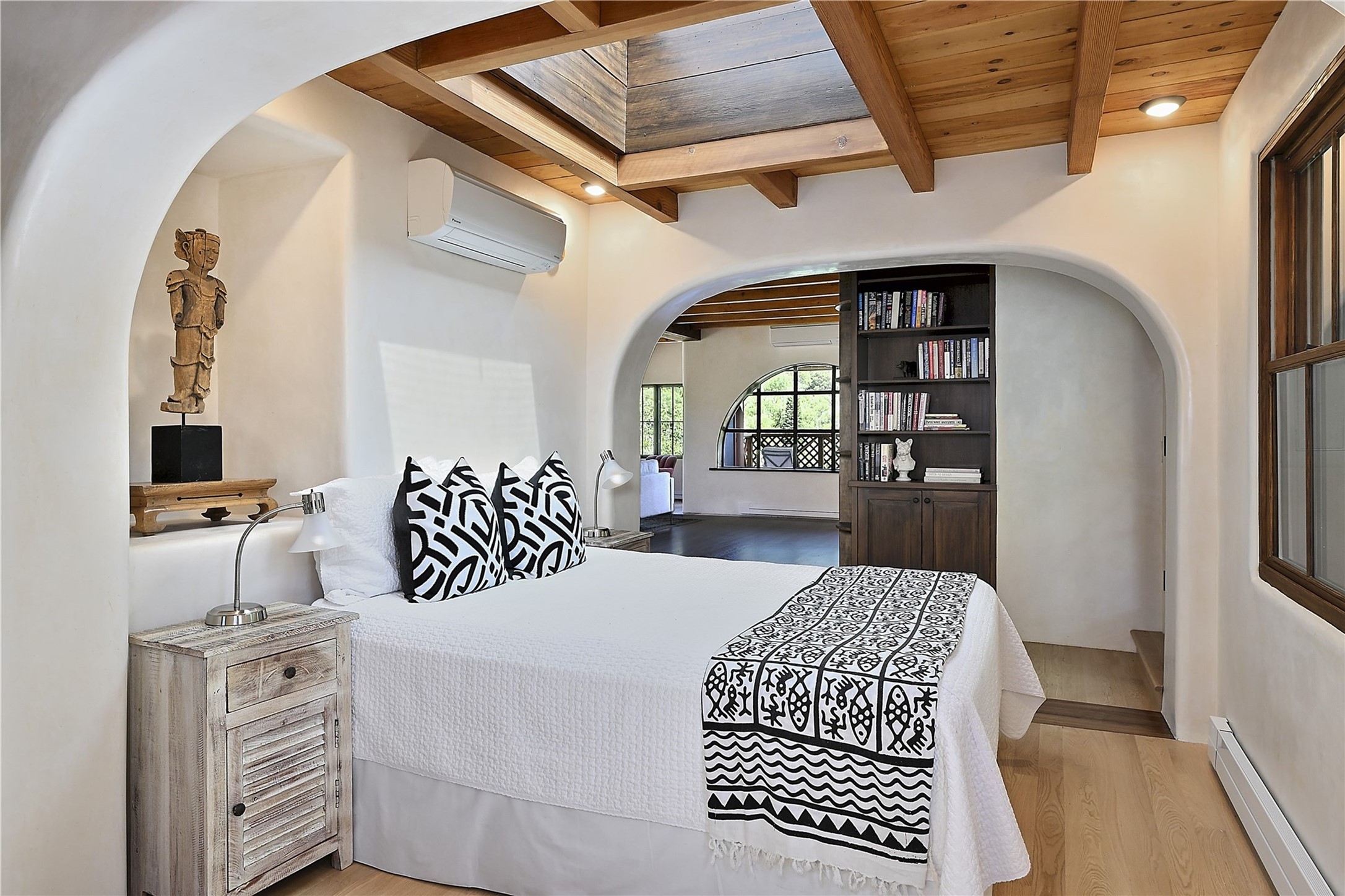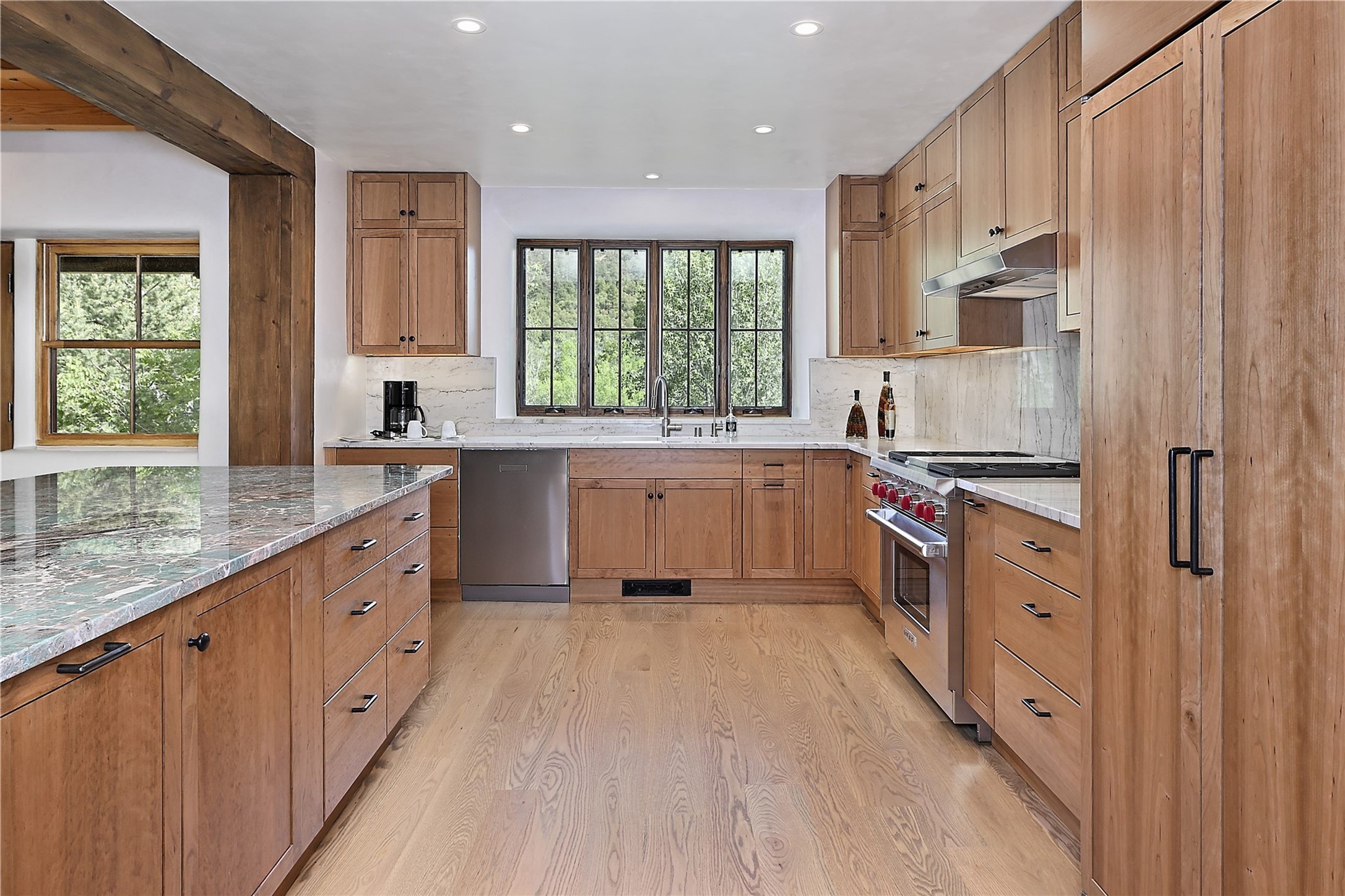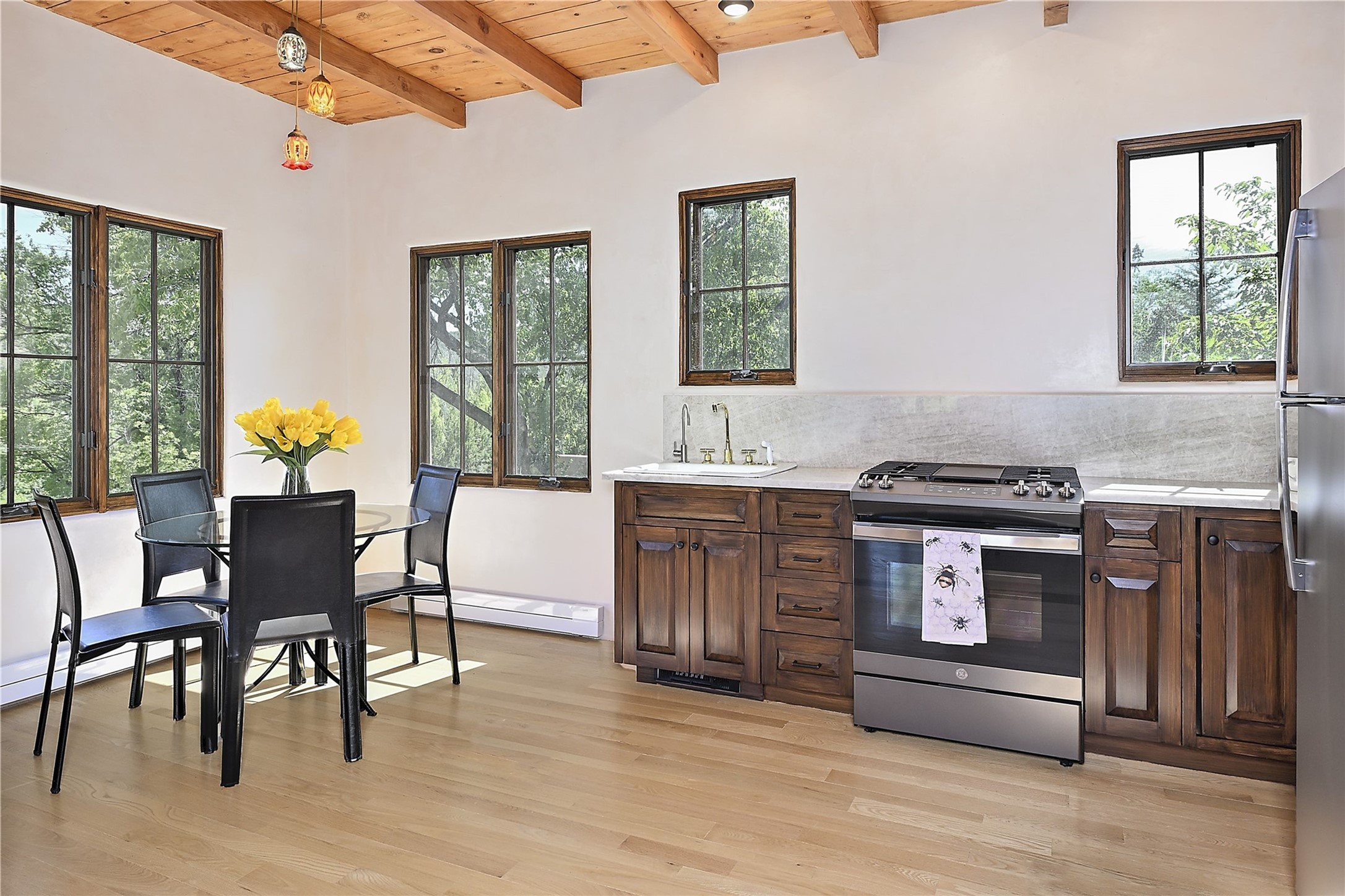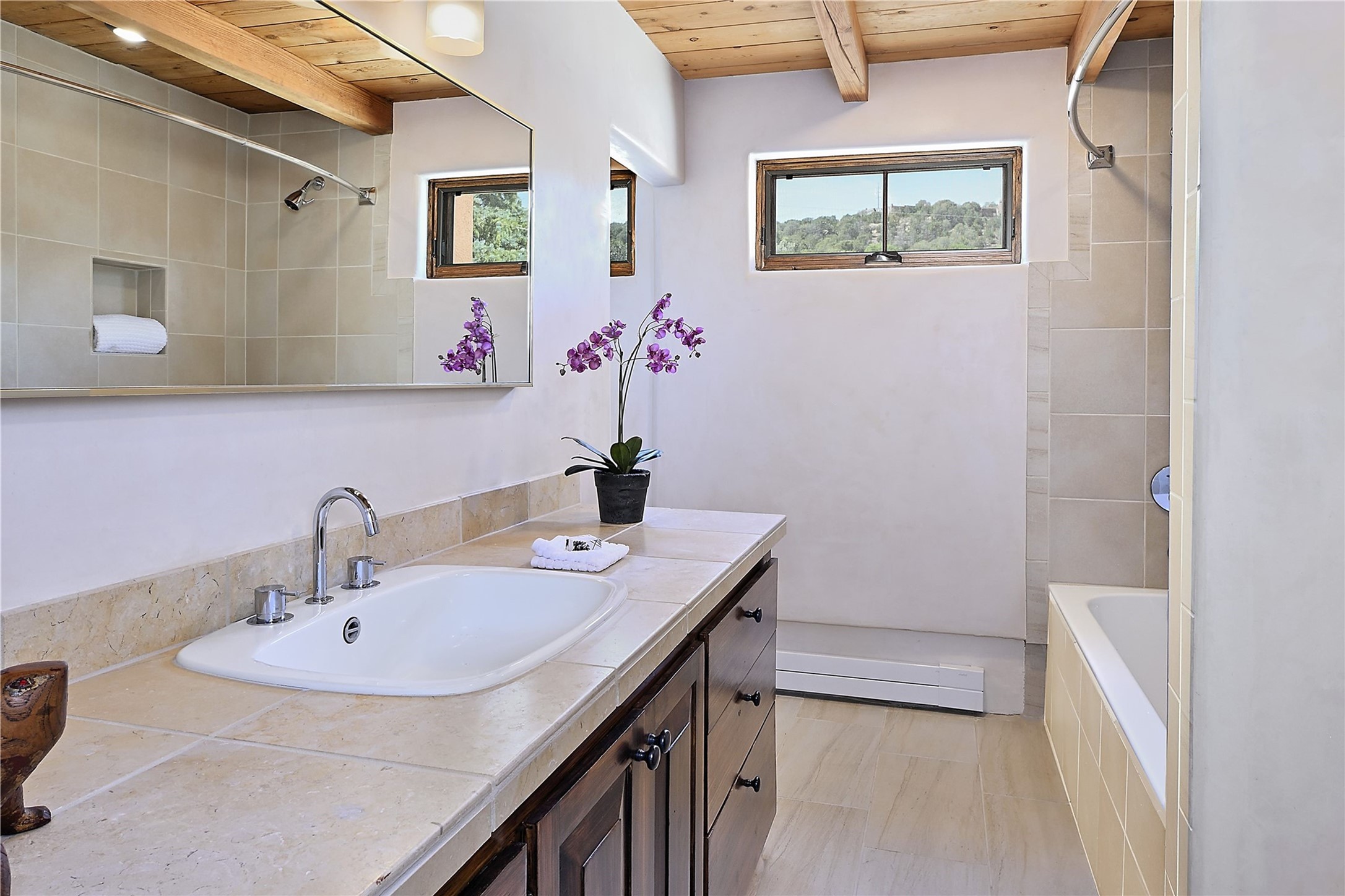 1678cerrogordo.com Welcome to a rare and enchanting retreat tucked away in the heart of Santa Fe's Historic Eastside--where riverfront serenity, natural beauty, and timeless adobe architecture come together perfectly. Set on 2.738 acres across two separately deeded parcels, this one-of-a-kind offering includes a spacious 4,000 sq. ft. home and an adjacent .738-acre wooded lot, offering endless possibilities for expansion, privacy, or simply room to breathe. The residence is surrounded by open meadows, mature shade and fruit trees, and lush cottonwoods, with the Santa Fe River gracefully lining the southern edge and the acequia flowing beside the home, adding a soothing soundtrack to this natural sanctuary. Inside, the home features three bedrooms, each with en-suite baths, including a primary suite with a steam sauna, a gourmet kitchen, and wood-burning fireplaces on both levels. The open-concept floor plan is filled with natural light and offers ample wall space--perfect for showcasing art. The upper level can serve as a luxurious primary suite or private guest quarters, complete with its own living and dining spaces, a grand arched picture window, and balcony with views of Picacho Peak in the Sangre de Cristo foothills. Outside, you'll discover a landscape alive with native flora, wildflowers, and birdsong. The adjacent .738-acre lot is a canvas for your imagination--build a future guesthouse, artist studio, or keep it as a peaceful spot to garden, paint, or simply unwind. Direct access to National Forest trails lies just outside the garden gate, yet you're only minutes from Canyon Road and the historic Santa Fe Plaza--a rare blend of seclusion and accessibility. Opportunities to own a riverfront property in Santa Fe are incredibly rare. This is more than a home--it's a retreat, a sanctuary, and an extraordinary chance to own a truly special piece of Santa Fe.