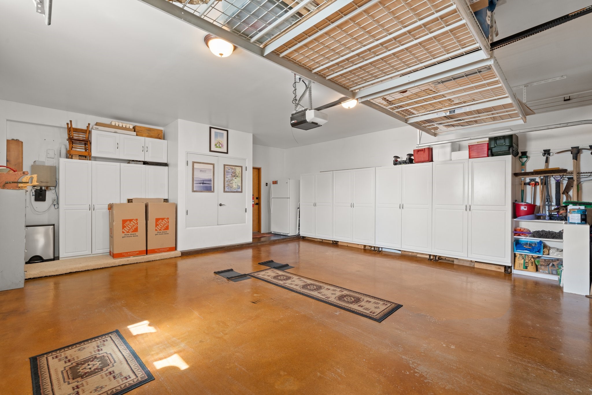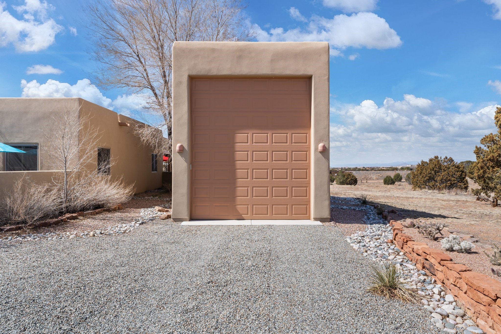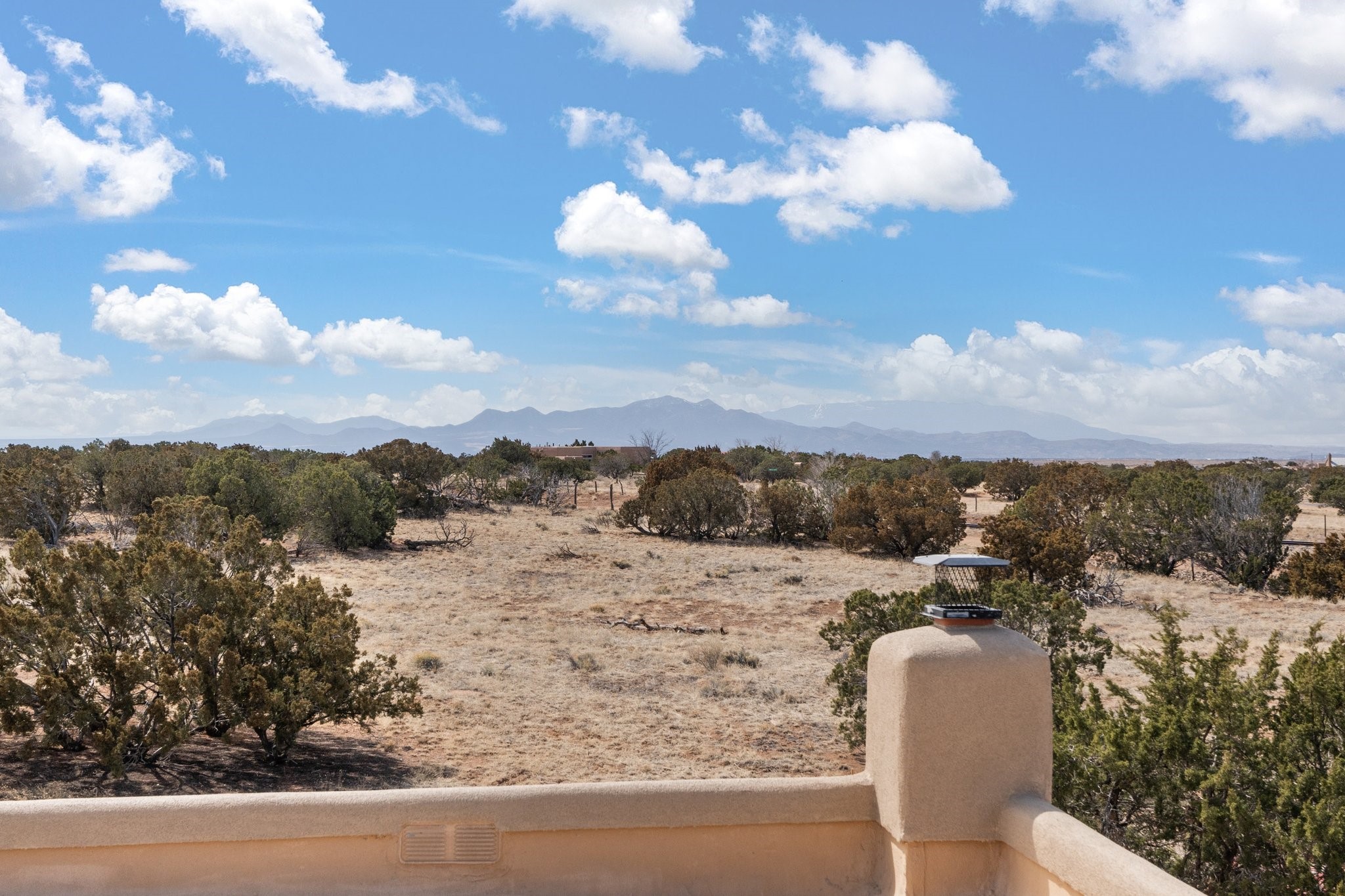TALK ABOUT HAVING IT ALL!! This Eldorado beauty has wonderful mountain views and extraordinary outdoor spaces with hot tub, roof-top deck, built-in bar and BBQ, kiva fireplace, sun shades and a number of entertaining and seating options and a Bocce Ball court!. Kitchen features under cabinet lighting, hickory cabinetry, great storage, stainless appliances (range has never been used) and built-in desk area. Walk-in pantry has exceptional shelving and room for small appliances. Primary bedroom has viga ceilings, kiva fireplace and doors to rear portal and a library/media room/office is attached. A cedar closet and generous walk-in closet with drawers and shelves. Primary bath has double sinks, large jetted tub and separate shower. Silicone coating on roof in 2021 - six years left on the transferrable warranty. Single-level, no interior steps, in-floor natural gas radiant heat and two evaporative coolers. Sellers use Xfinity for internet. Eye On Water leak detection system through the Eldorado Water Dept. Whole house water filtration. Oversized, finished 2-car garage with overhead storage and lots of cabinets. Heated RV garage is 15 x 40 with 16' ceiling. Three kiva fireplaces. Proper laundry room with abundant storage. ADT alarm system is transferrable. Some outdoor furnishings are conveying with the property. LIST OF IMPROVEMENTS IN SUPPLEMENTS.
