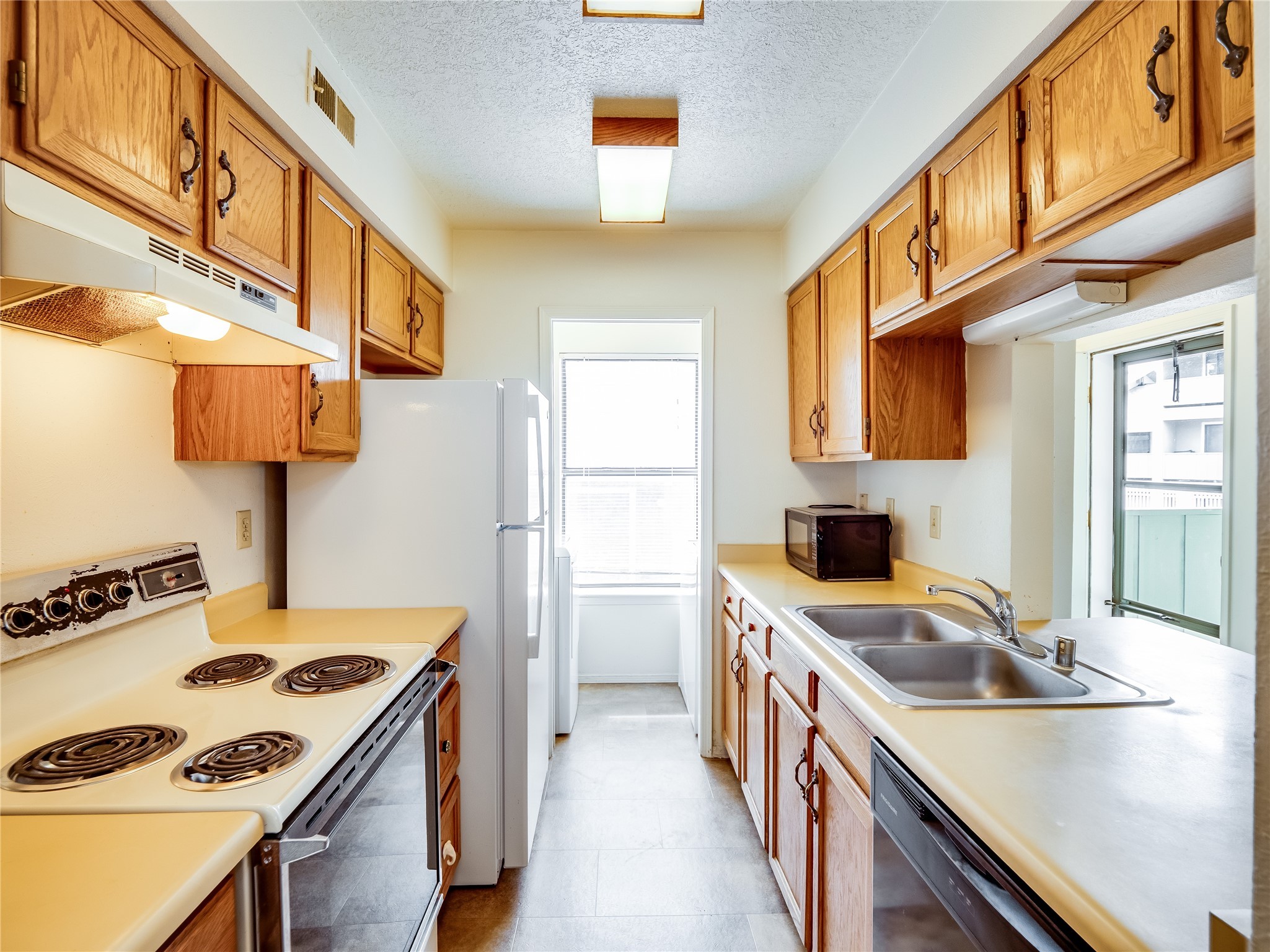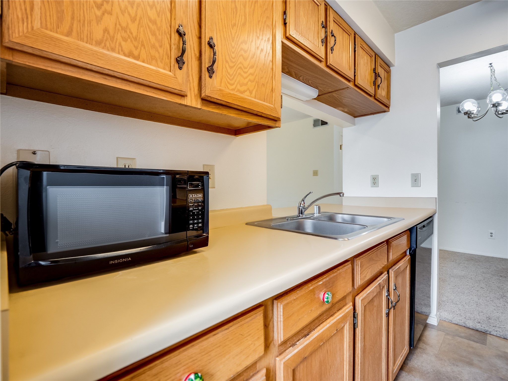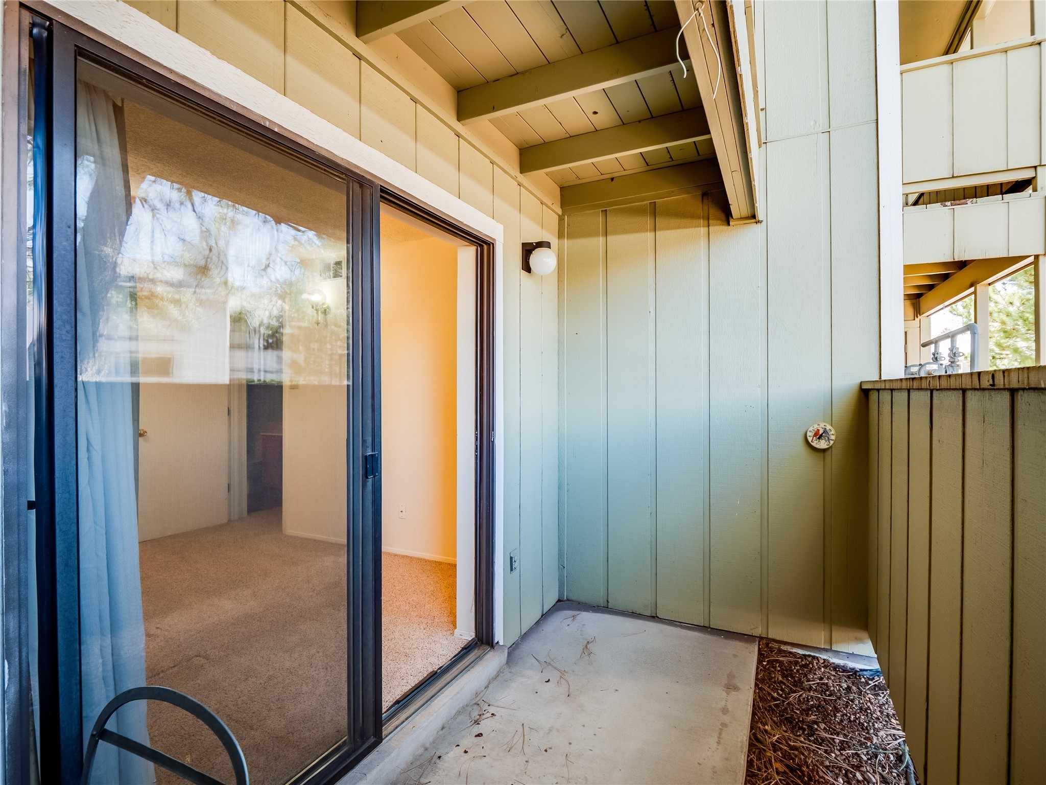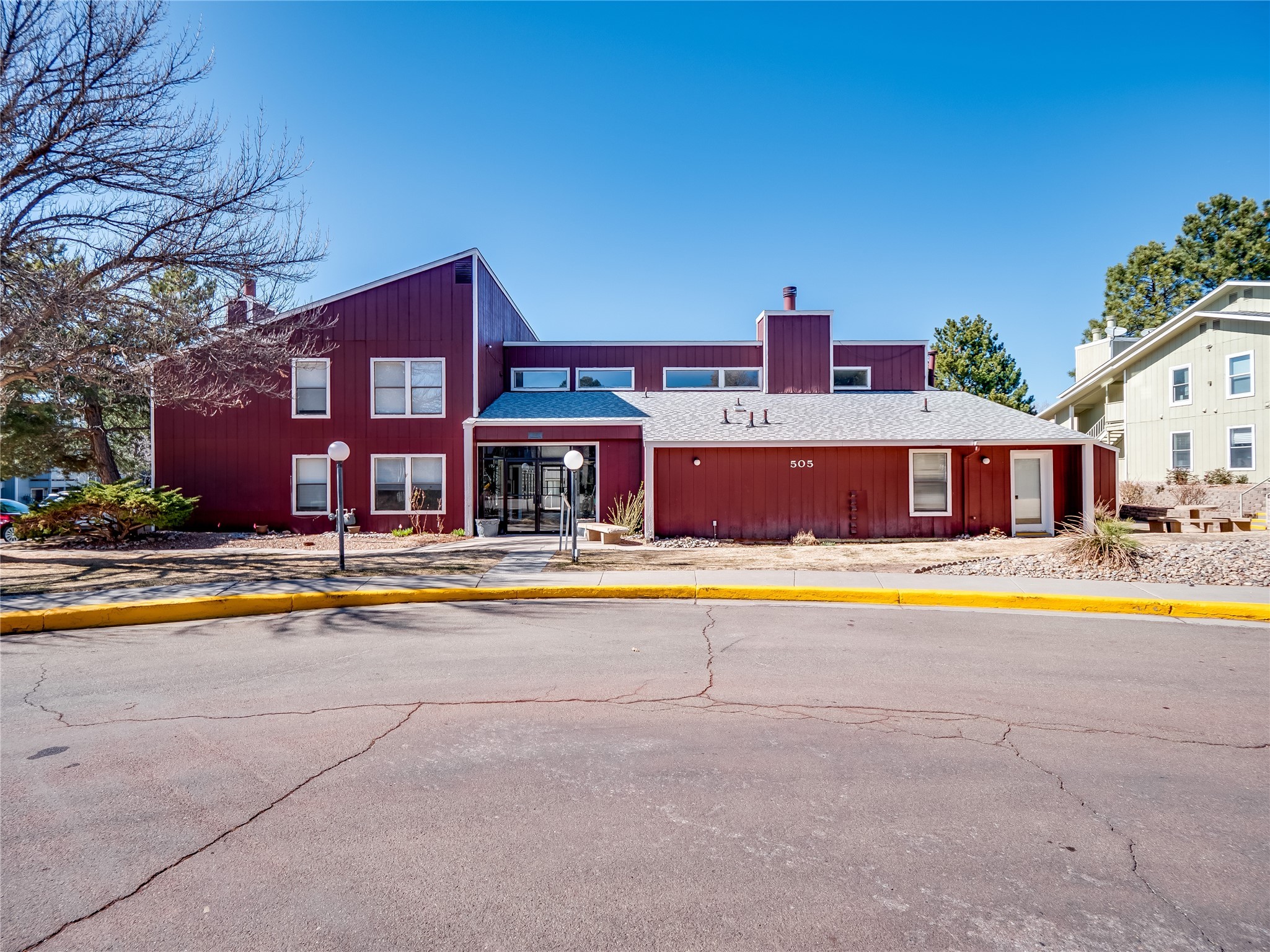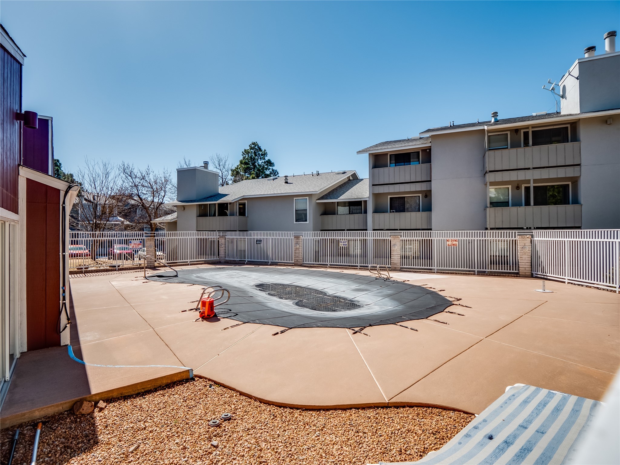 Charming ground-level end unit condo in a prime Eastern Area neighborhood! This delightful condo offers a blend of comfort and convenience. Located near the community center, residents can enjoy access to a pool, common gathering spaces, a grill, and a fire pit--perfect for relaxing or entertaining. Enter a welcoming entryway with a coat closet before entering the open floor plan. The living room is designed for comfort, featuring plush carpeting, a cozy wood burning fireplace with a classic mantel, and glass sliders that fill the space with natural light and leads to a covered, enclosed patio. This private outdoor space is perfect for year-round enjoyment, perfect for a small seating area or potted plants making it an ideal spot for morning coffee or an evening unwind. A convenient storage closet on the patio ensures extra space for seasonal items, outdoor gear, or gardening supplies. Adjacent to the living room is a guest bedroom offering flexibility as a home office. Whether you need a private workspace, a cozy reading nook, or a guest retreat, this space adapts to your lifestyle needs. The dining space flows seamlessly into the kitchen, which boasts warm wood cabinetry with black hardware, a pantry/laundry closet with a washer and dryer, and a convenient pass-through window that doubles as bar seating. Down the hallway, you'll find the spacious primary bedroom, complete with its own private enclosed covered patio, a walk-in closet, and a separate single-sink vanity that connects to the main bathroom. The bathroom features tile flooring, an additional single-sink vanity, and a tiled shower/tub combination. This unit also comes with a covered designated parking spot and is situated near shopping, parks, and restaurants, making it an ideal place to call home. Don't miss the opportunity to tour this inviting condo today!