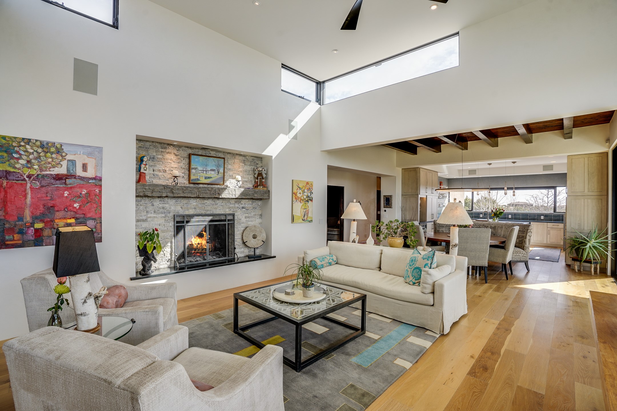 Step into this supremely livable and private, award-winning masterpiece filled with extraordinary features and amazing views just minutes from Las Campanas and town. Modern elegance & comfort await you as you enter this single-level home. Wood, glass & steel blend flawlessly to create an interior space with clean lines & abundant natural light. Amenities of the generous gourmet kitchen include an induction cooktop, dual Fisher & Paykel ovens & refrigerators, 2 dishwashers & 2 sinks, as well as a wine fridge & Scotsman Brilliance nugget ice machine. Remote controlled blinds, Lutron Caseta light switches, a Sonos wired sound system throughout, a Nest temperature system & cameras operated by smartphone or computer enhance further the comfort & livability of this age-in-place home. At the end of the day, enjoy the view as you linger in the luxurious BainUltra soaking tub with air-jet technology. An easily accessible three-car garage with geothermal heating & epoxy floor also houses a woodworking/craft area. Perfectly situated on 2.5 elevated acres with sweeping views of four mountain ranges, the home boasts a gorgeous portal designed for gracious outdoor living & entertaining. Additional charming outdoor areas allow you to relax as you take in the breathtaking vistas & savor the award-winning landscaping that includes two fountains. Winner of the 2021 Parade of Homes Ted Swisher Green Building Award, this stunning home also swept the awards for Best Overall Design, Best Craftsmanship & Best Kitchen. That says it all. Arriving at the magnificent entryway atop the circular drive confirms that this is a smartly designed, luxurious, sophisticated home not to be missed.