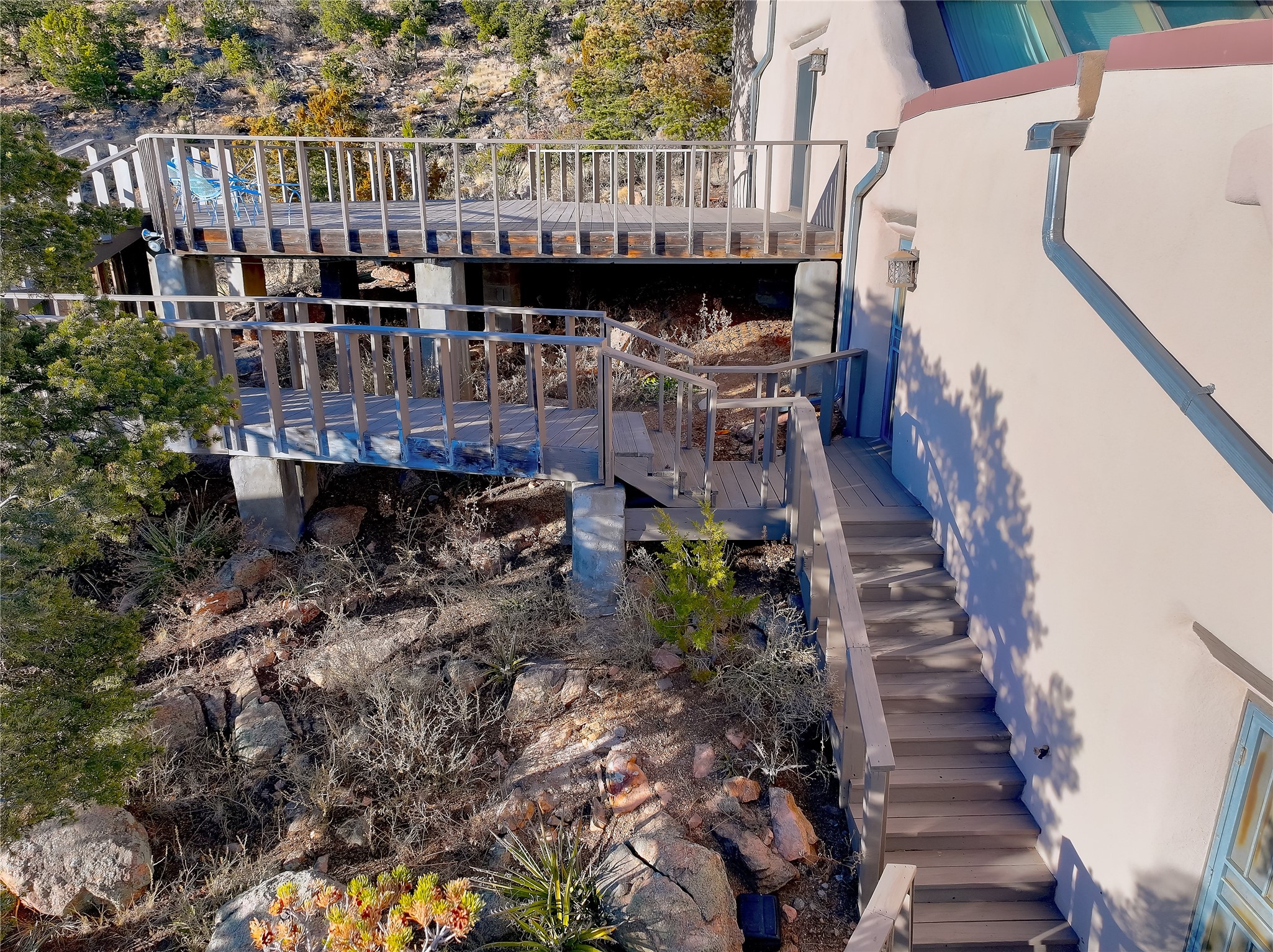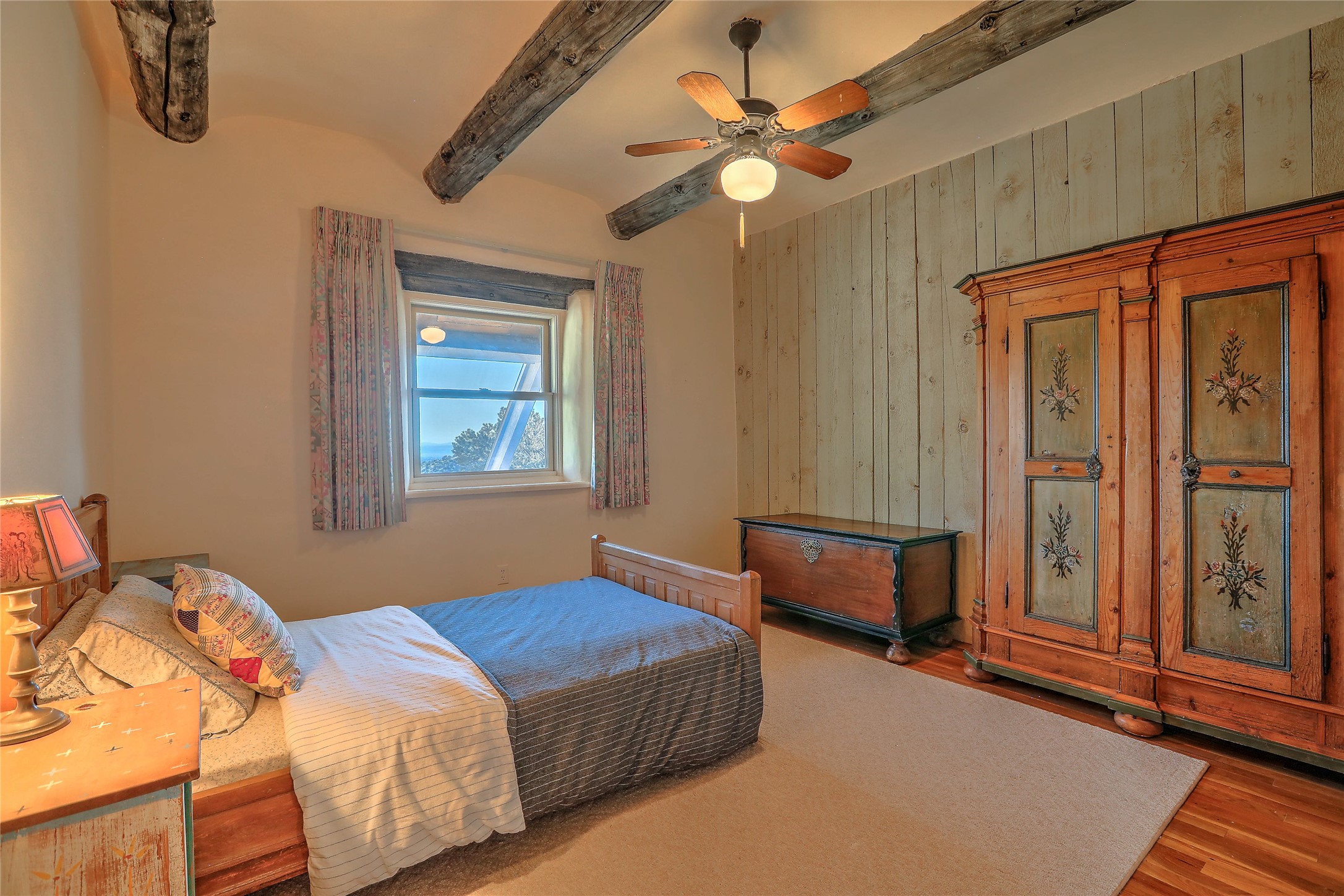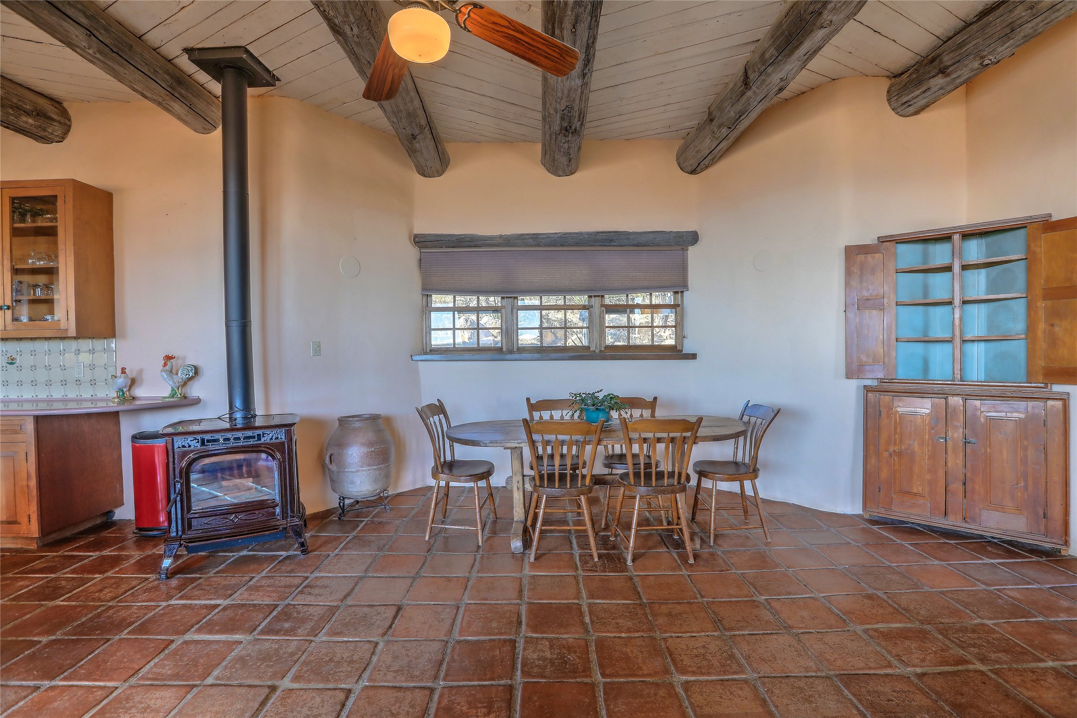 Welcome to your serene sanctuary in Monte De Las Piedras! Immerse yourself in the beauty of this passive solar adobe home, featuring 2-4 bedrooms and 2 full baths. Sitting on 11.85 acres with awe-inspiring mountain views, this split-level residence boasts a charming stone fireplace downstairs and a spacious open kitchen, living, and dining area with an additional fireplace and wood stove for cozy evenings. Step outside onto the view deck, where stunning landscapes unfold before you. The home is adorned with Saltillo tile in the main living areas and wood floors in the bedrooms, creating a warm atmosphere throughout. With a 3-car carport and ample outdoor living space, this property offers the perfect blend of comfort and nature. Make it yours today!