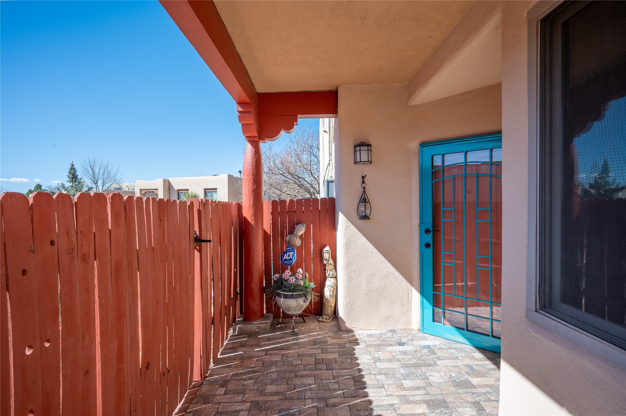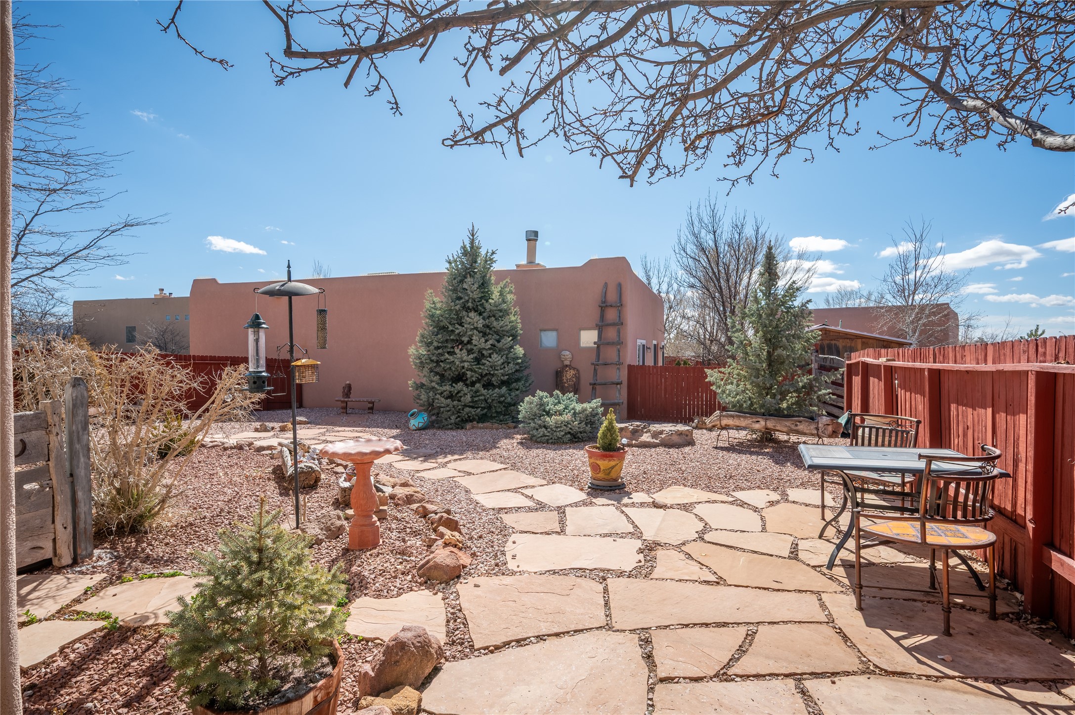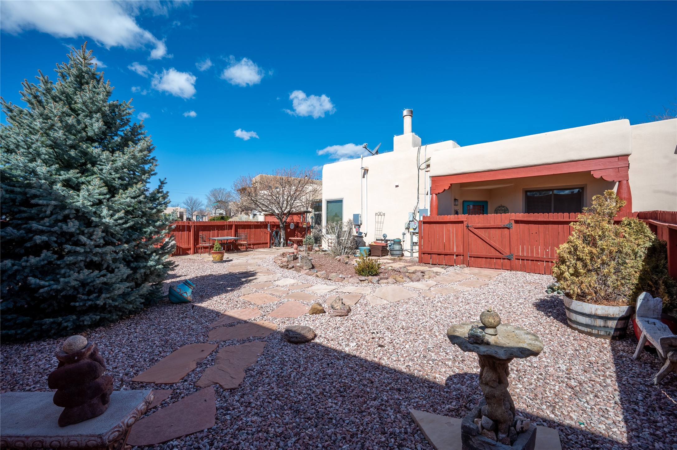 Extrordinary single level home with beautiful custom finishes which includes an open concept floor plan, an enclosed and heated sunroom, large corner windows in the livingroom adding warmth and light with a view of a beautiful and spacious back yard, vigas, a kiva fireplace, custom colors and frontage on two streets for easy back or front entry. Also active solar conveys with the home. Maximum comfort and style in rare affordable home. Make an offer while you can. This will not be available long.