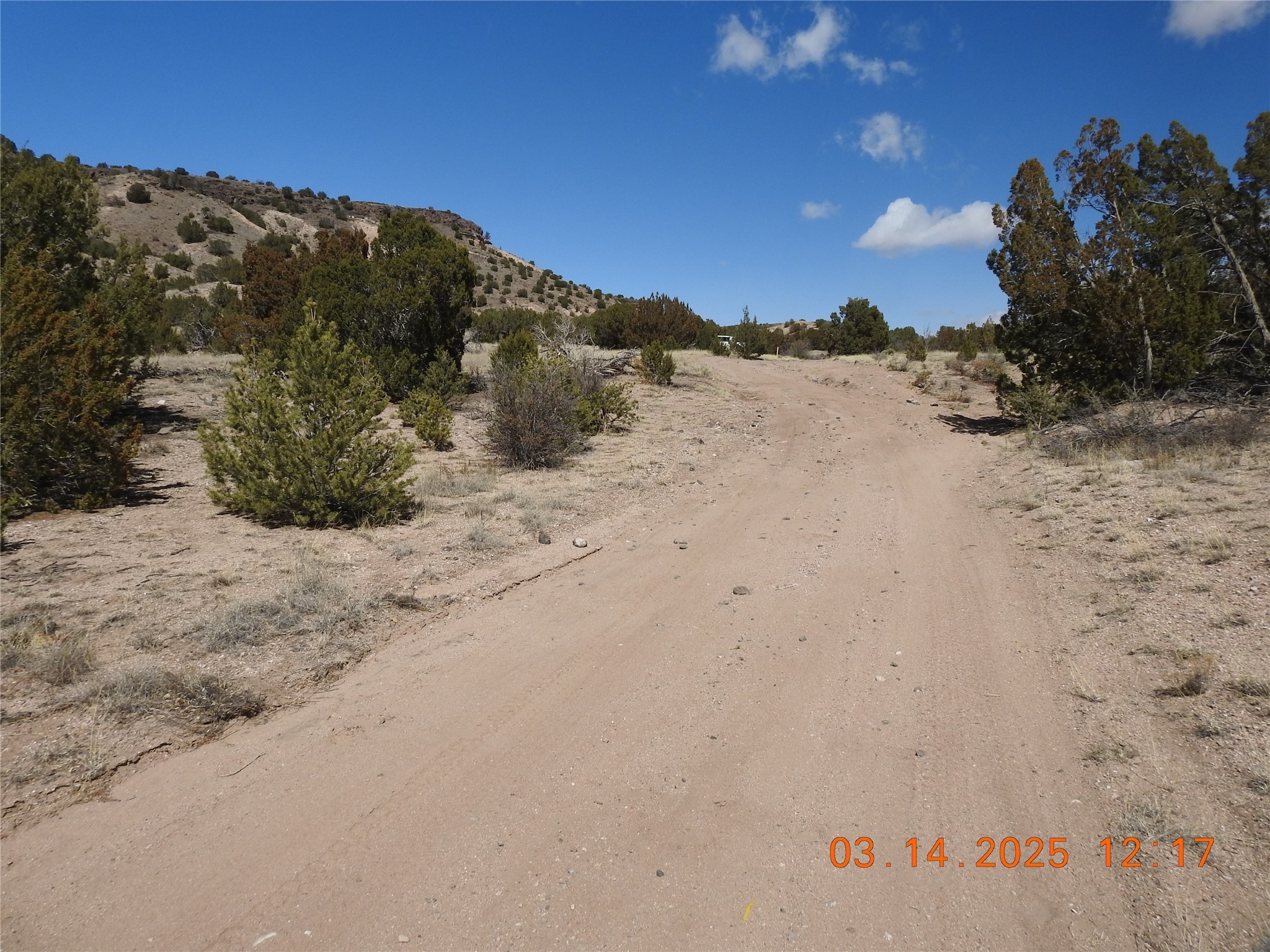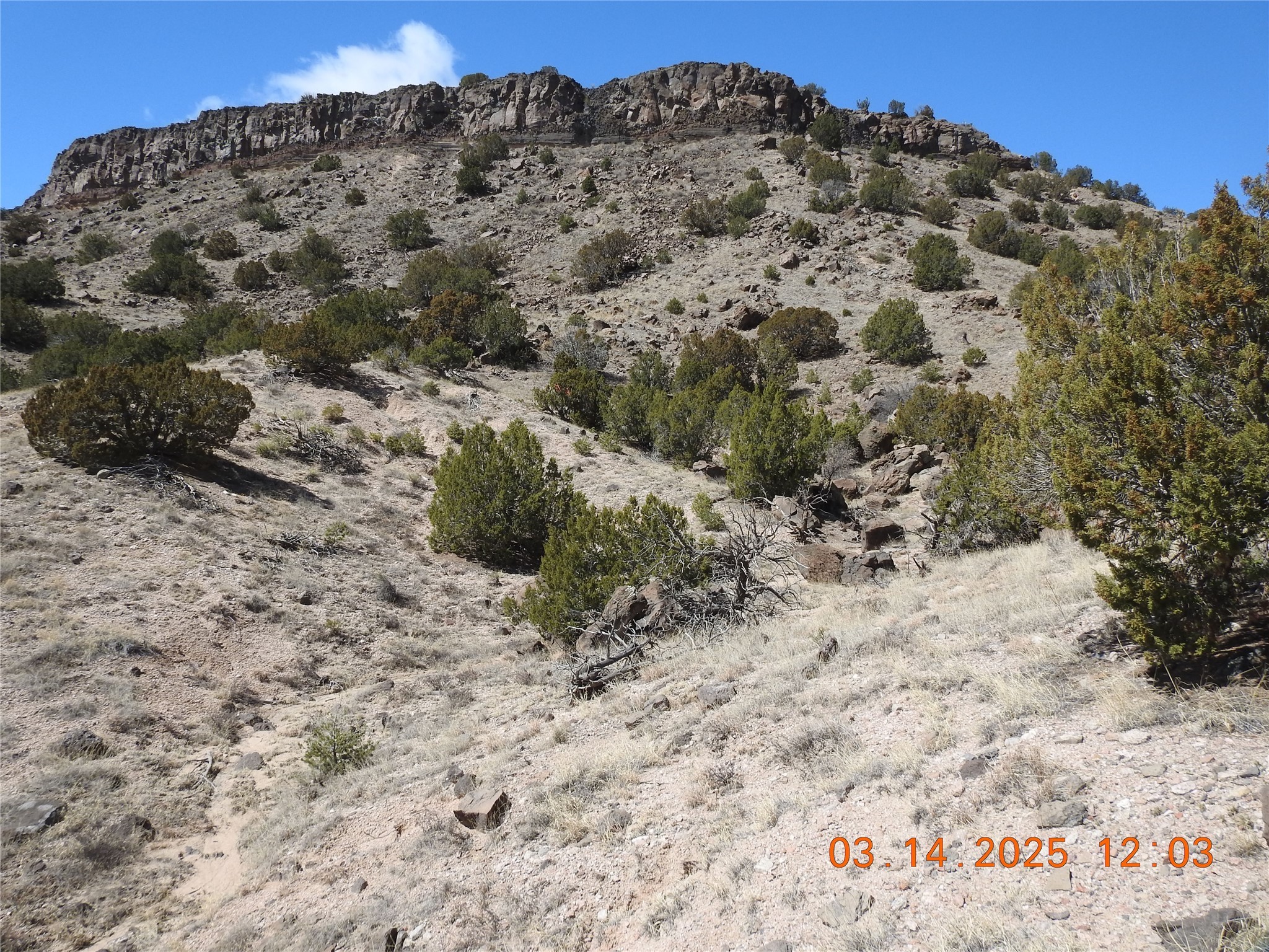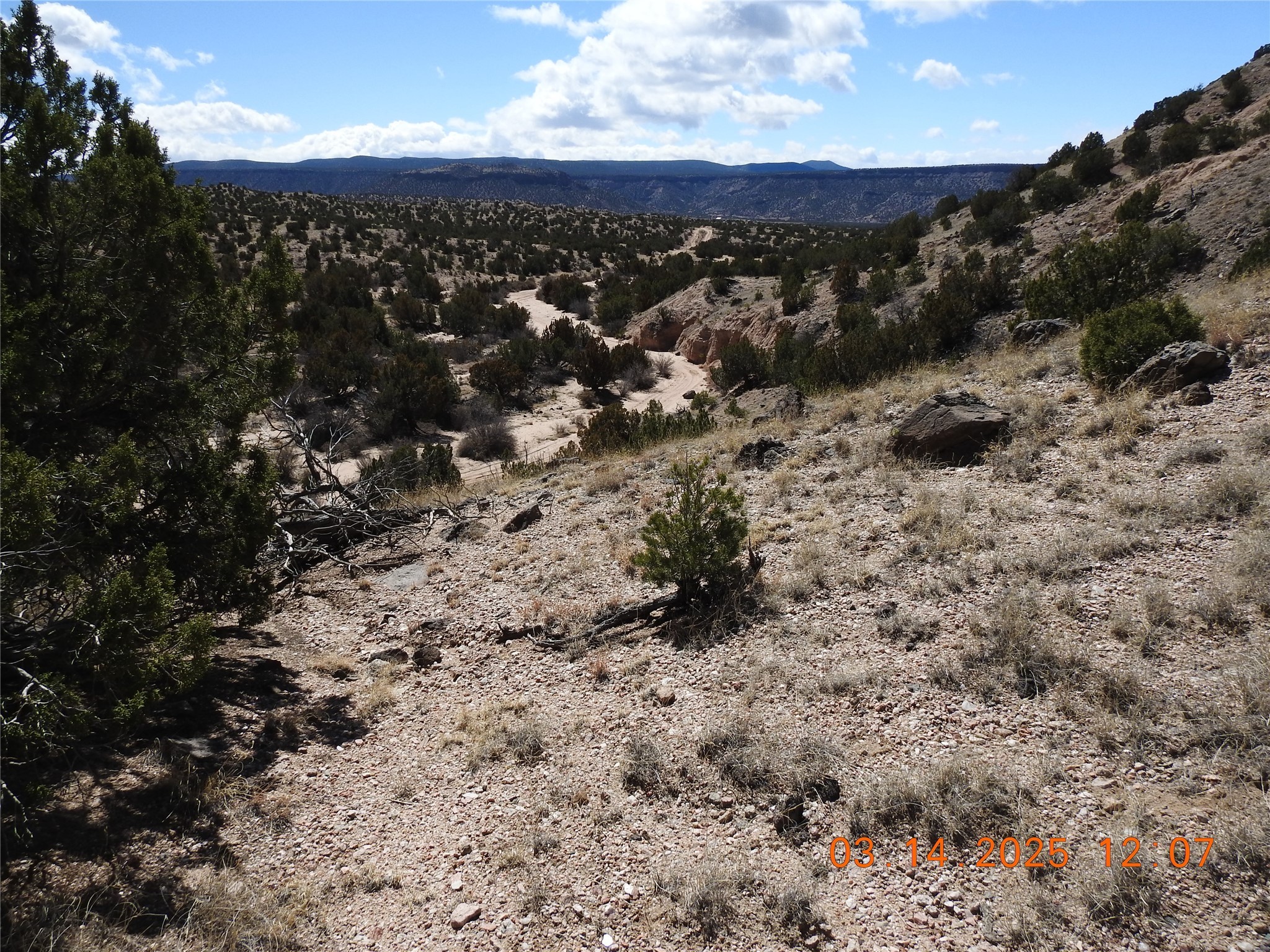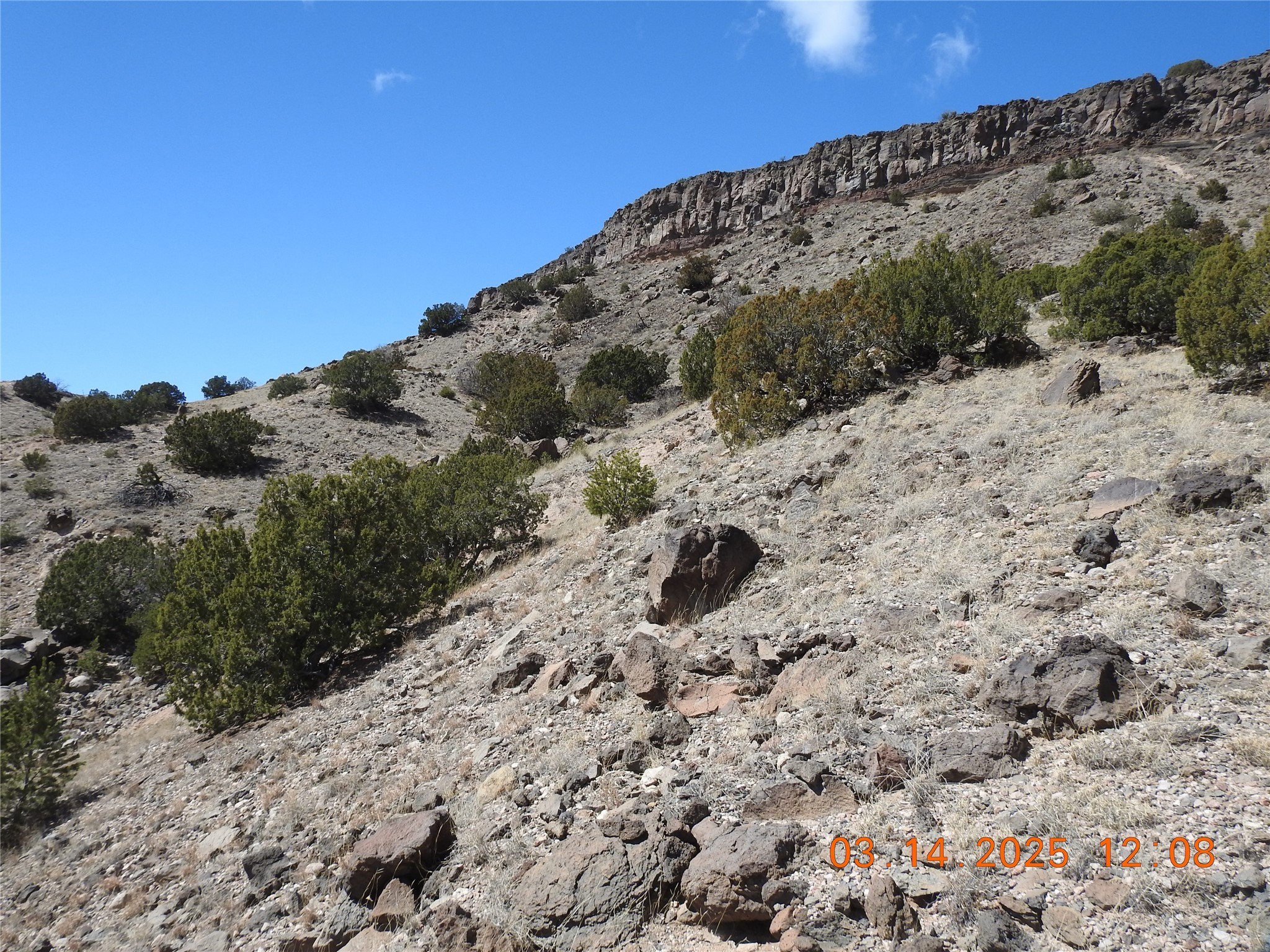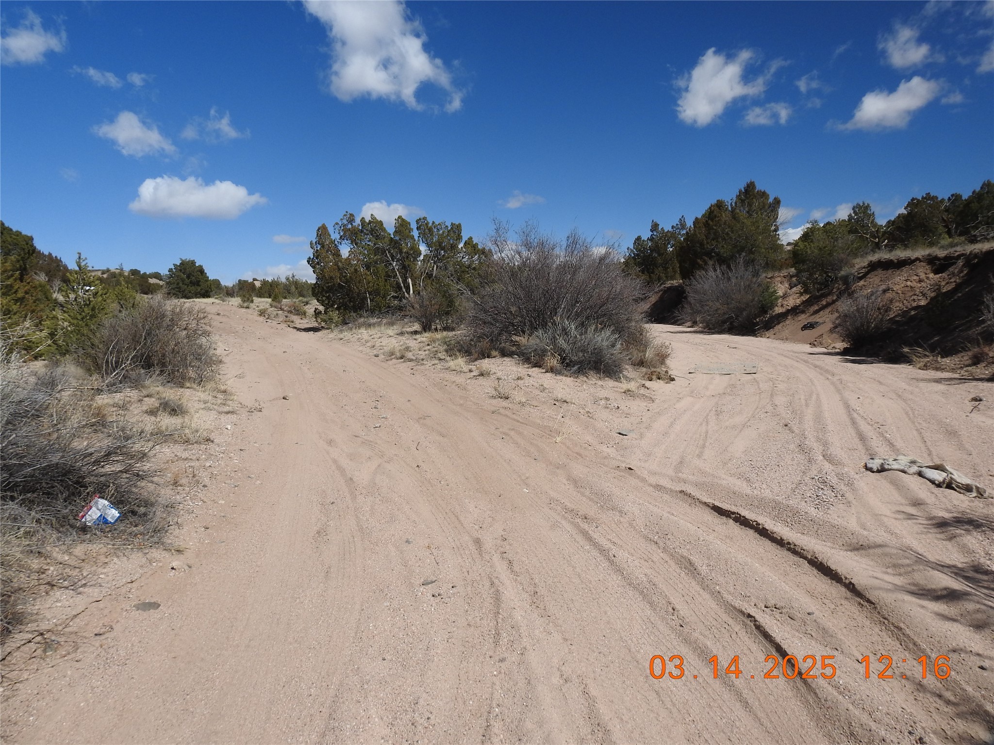 This is a 5 acre get away parcel that is located in the wilds of Santa Fe County. The parcel lies on the west side of Kalitaya Way and runs up the side of Buckman Mesa. It a rectangle lying east & west and has some flat spaces along the access road and then inches up the mesa side almost to the ridge line. You'll find some magnificent views, a petroglyph or two, some cedar tree cover, some incredible geology and native wildlife tracks all around. Its a great camp site with wide open nite skies too. The sandy access road is a challenge, so 4wd and high clearance vehicles are suggested but you can make it in a two wheeler if your careful.
