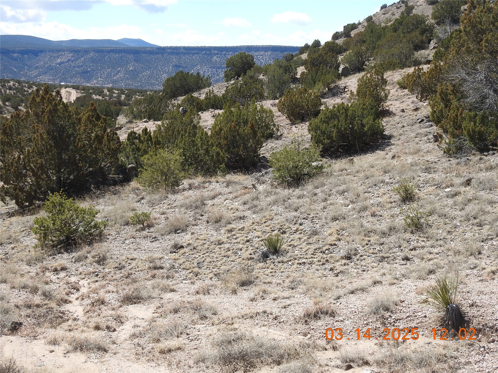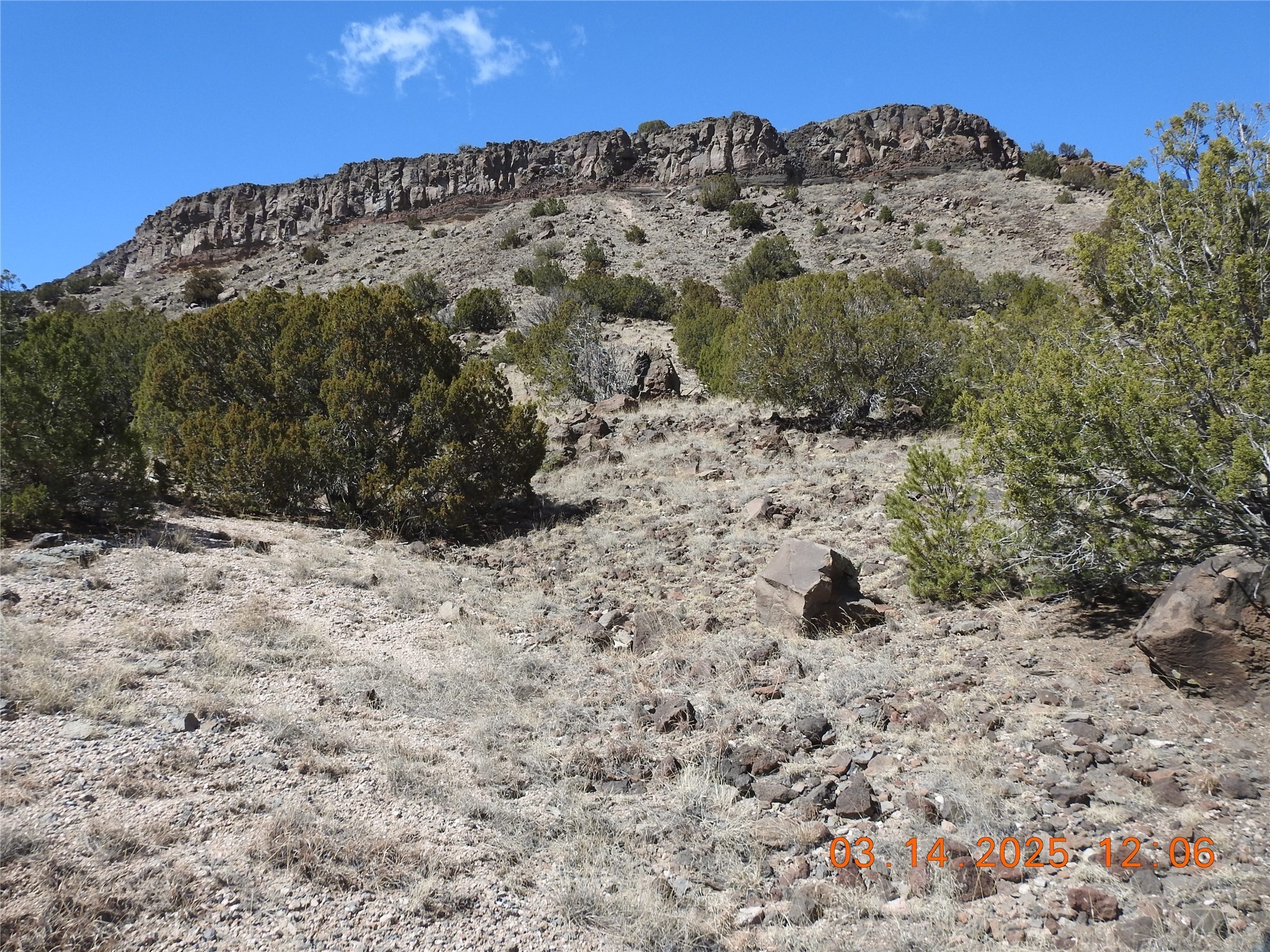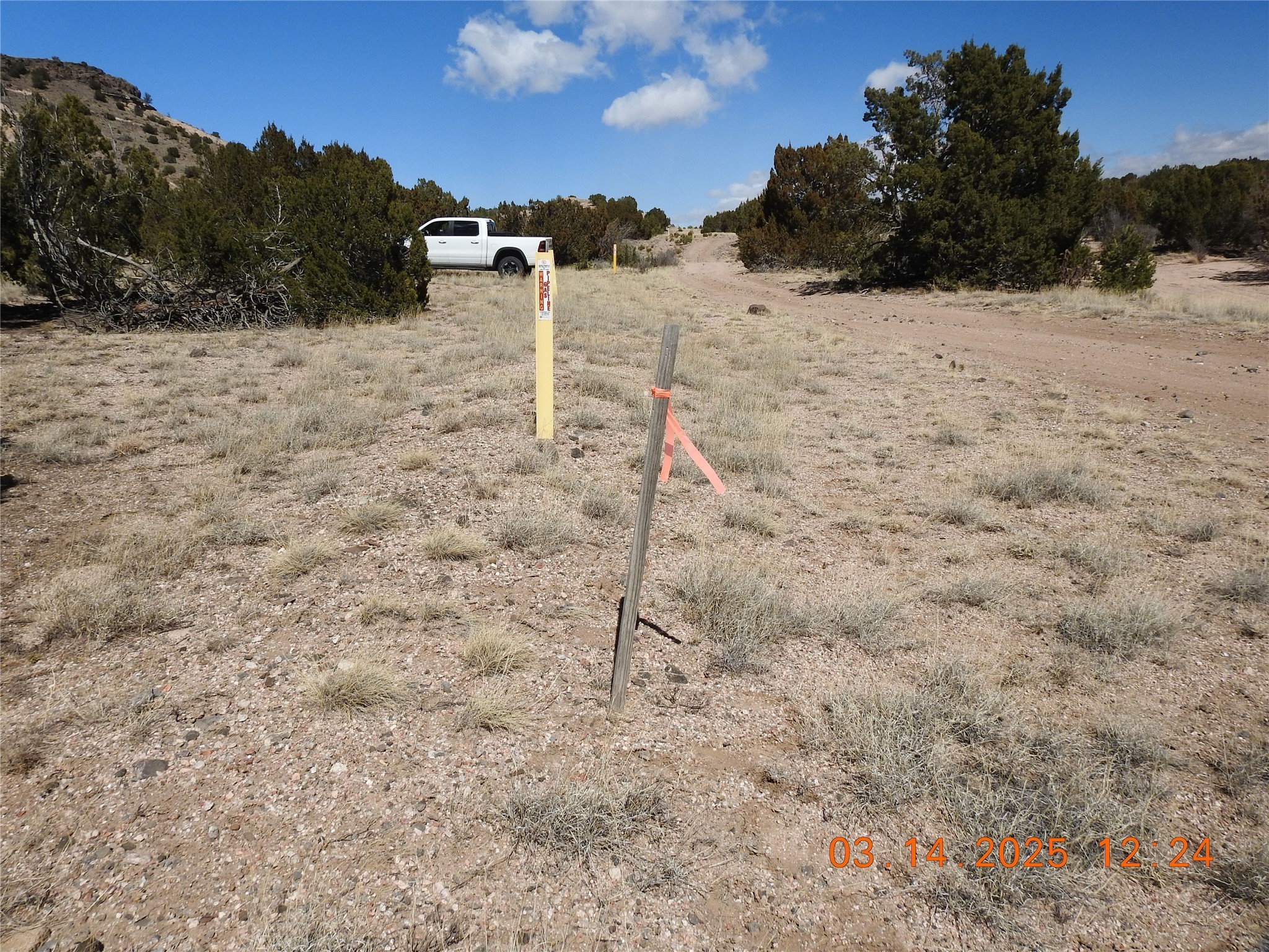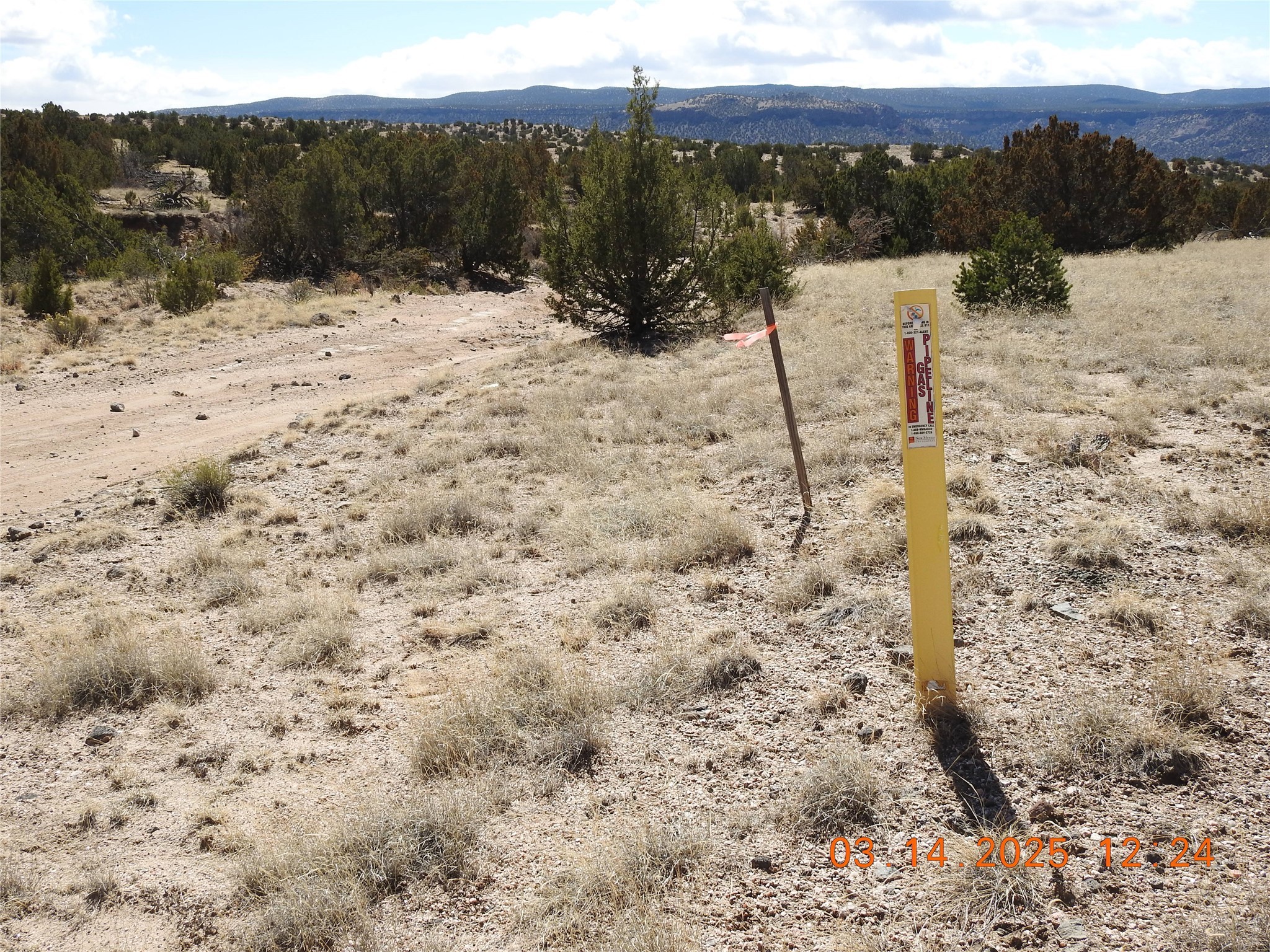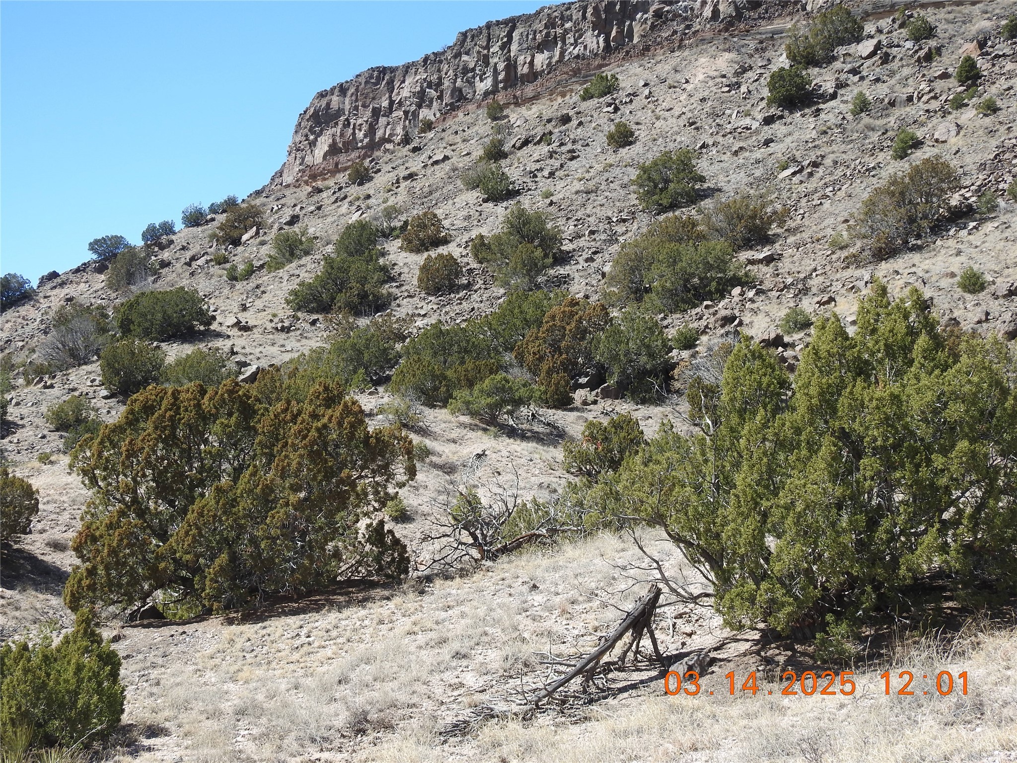 This is a 5 acre get away parcel that is located in the wilds of Santa Fe County. The parcel lies on the west side of Kalitaya Way and runs up the side of Buckman Mesa. It a rectangle lying east & west and has some flat spaces along the access road and then inches up the mesa side almost to the ridge line. You'll find some magnificent views, a petroglyph or two, some cedar tree cover, some incredible geology and native wildlife tracks all around. Its a great camp site with wide open nite skies too. The sandy access road is a challenge, so 4wd and high clearance vehicles are suggested but you can make it in a two wheeler if your careful.