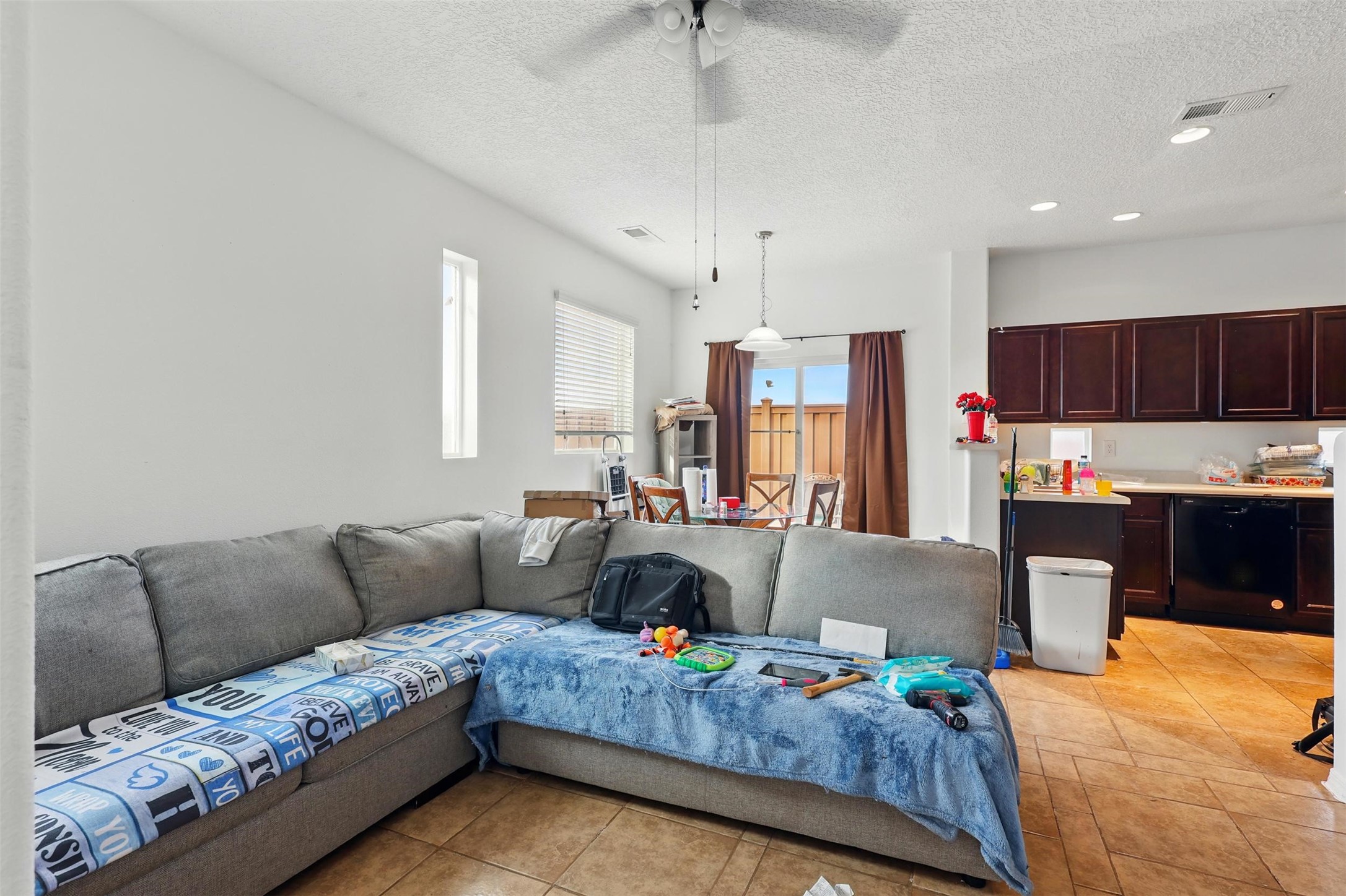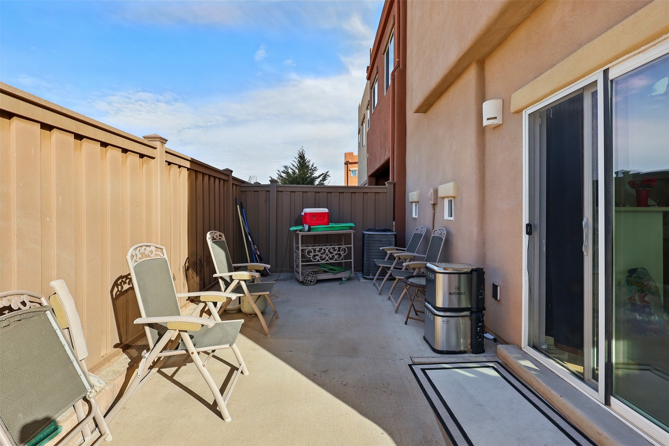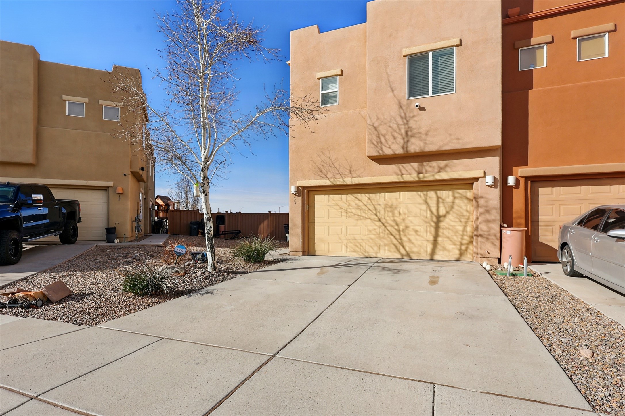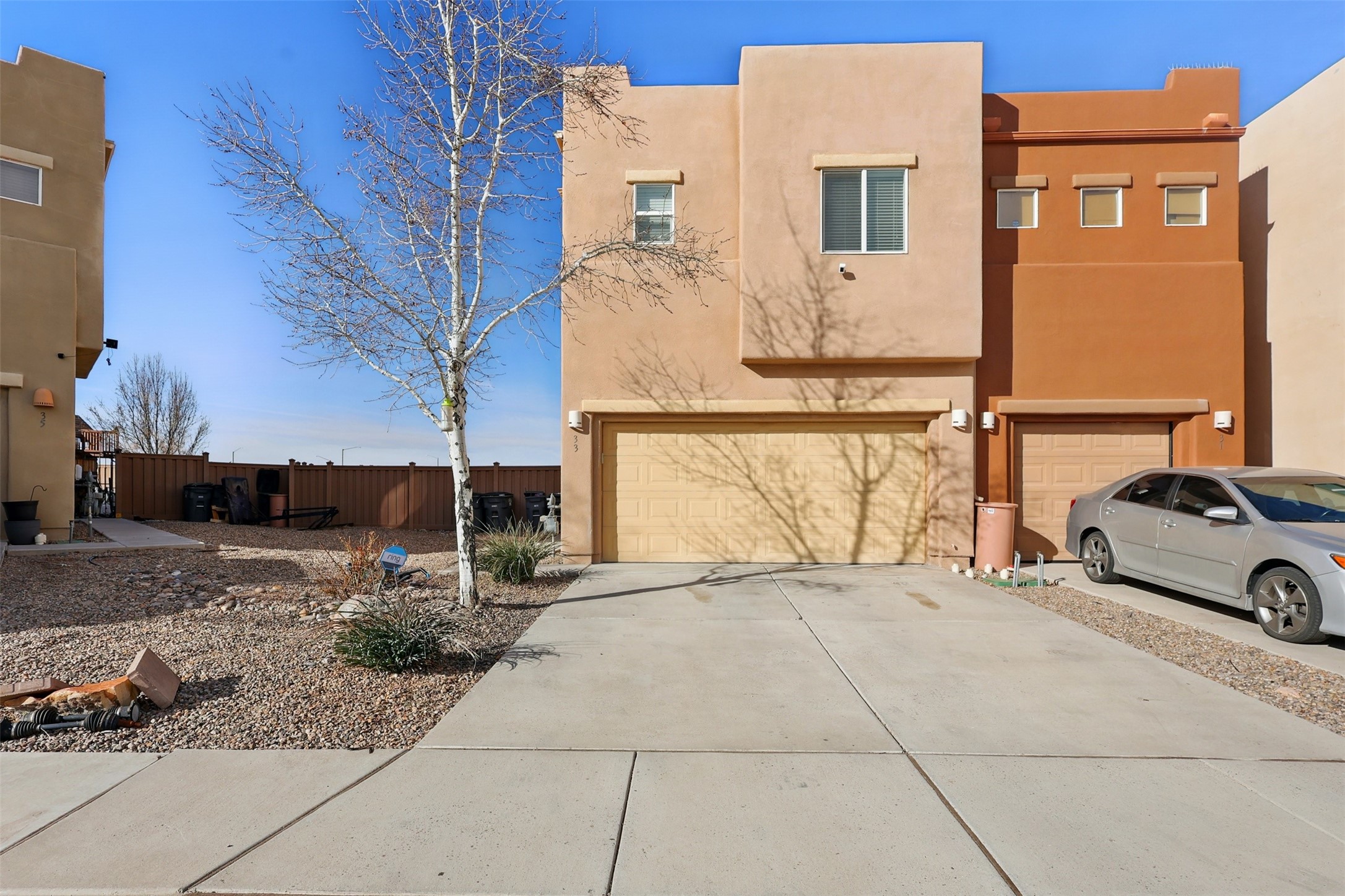 Discover this charming home in Turquoise Trail, Santa Fe! Featuring 3 bedrooms, 2 with en suite baths, plus a convenient downstairs half-bath. Dishwasher and range replaced May 2024. Microwave replaced March 2025. New carpet was installed 4/25/2025. The garage has been temporarily converted into a second living area but can easily be restored. Enjoy a prime location near I-25 and a community with private parks, playgrounds, and ample guest parking. Opportunity knocks. Will you answer?