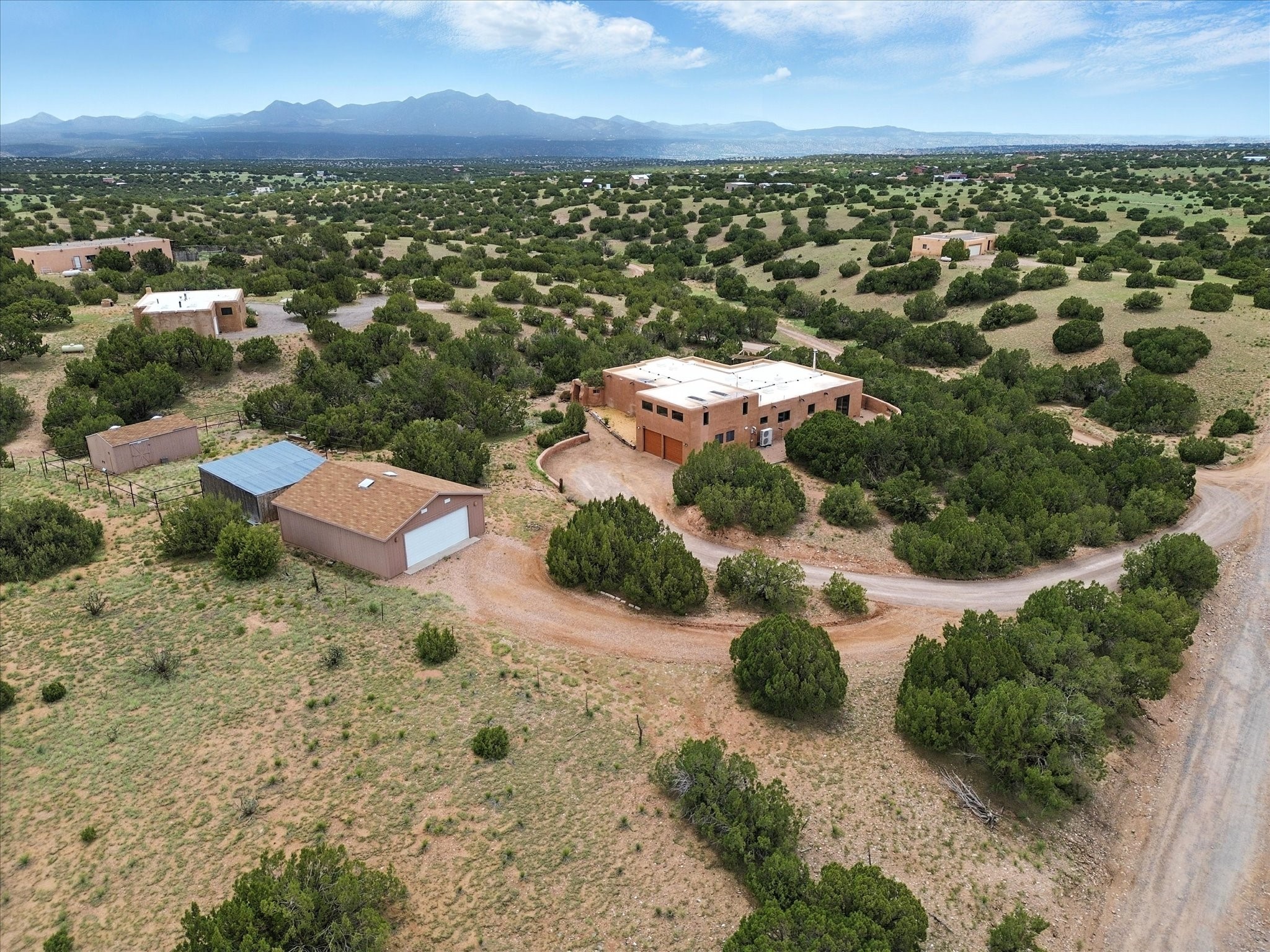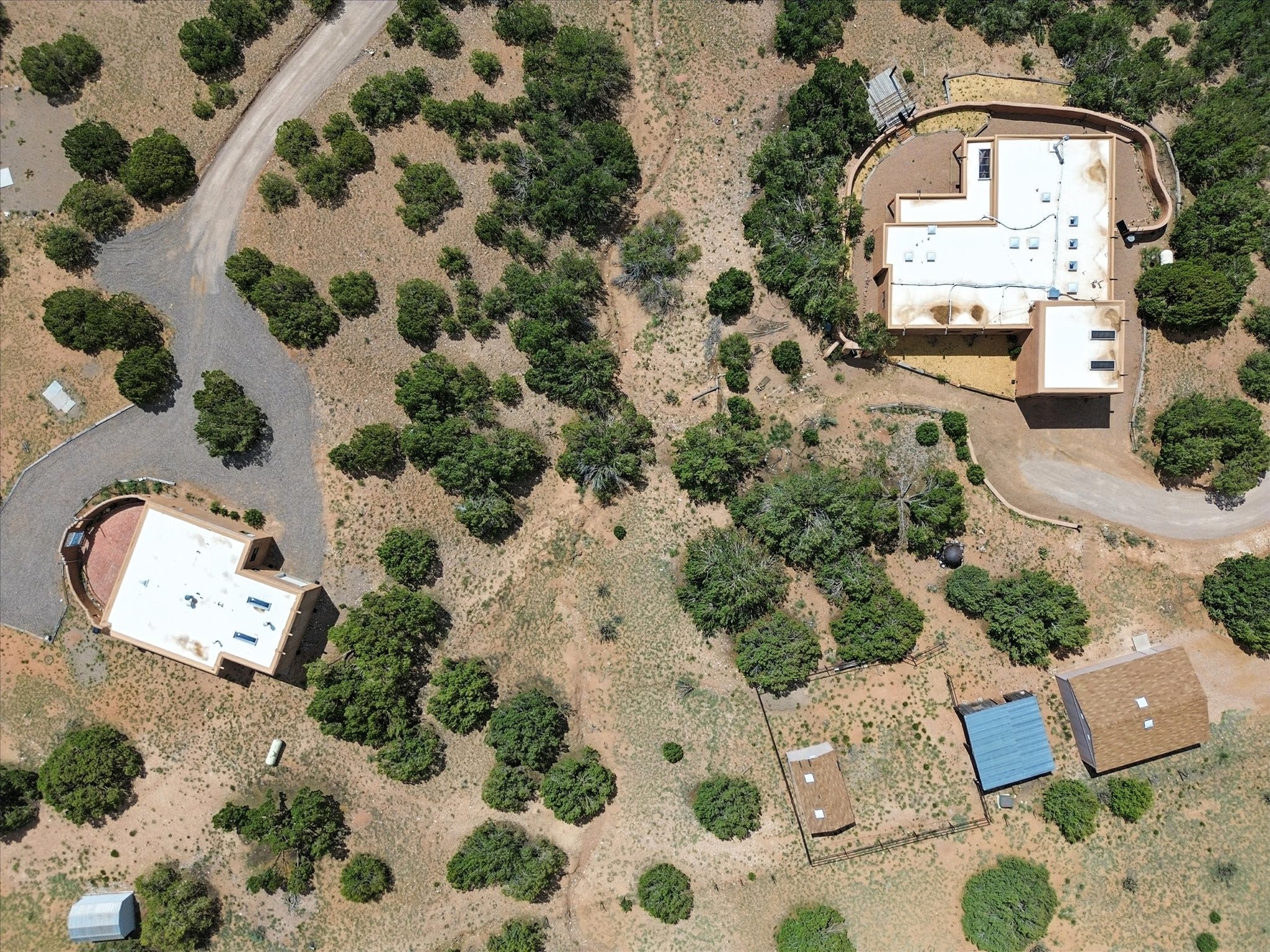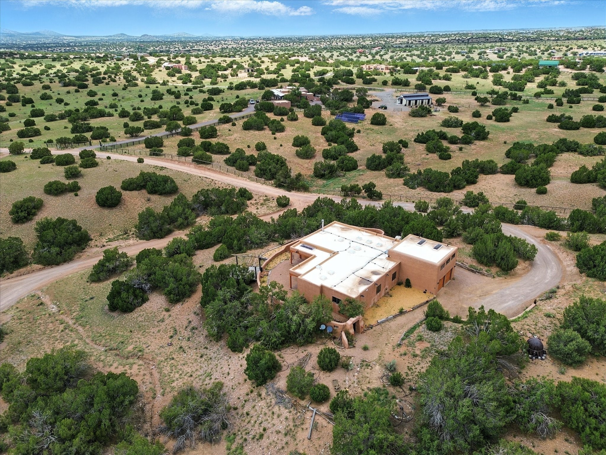 Experience the tranquility and space of rural living just south of Santa Fe and west of the Galisteo area. Set amidst a landscape of large-acreage properties, this private estate offers breathtaking vistas, abundant space, and versatile amenities. The main house welcomes you with a grand portal, perfectly positioned to capture panoramic views to the south and west, along with four bedrooms and three bathrooms. Inside, you'll find generous living areas designed for comfort, connection, and relaxation. A separate Guest House accessed via its own private driveway offers complete independence for guests, extended family, or rental opportunities. The guest house is equipped with two bedrooms and two bathrooms. The expansive property includes multiple outbuildings, including a well-equipped workshop and a corral with shelter, ideal for animals or hobby farming. Whether you're seeking a serene retreat, multigenerational living, or a lifestyle that embraces both nature and functionality, this property delivers. Do not miss this rare opportunity to own a peaceful and private haven. Imagine the possibilities and schedule your private showing today.