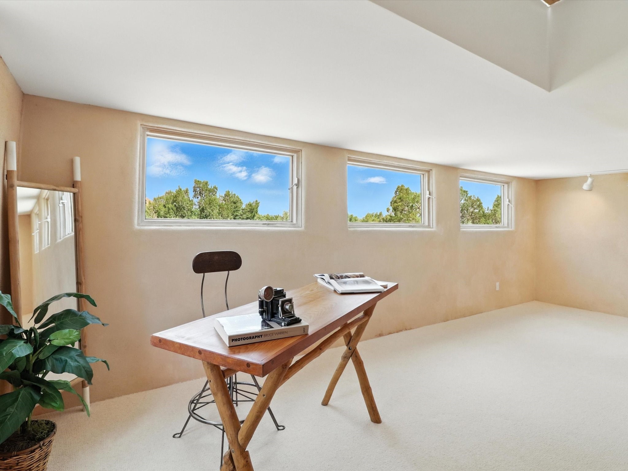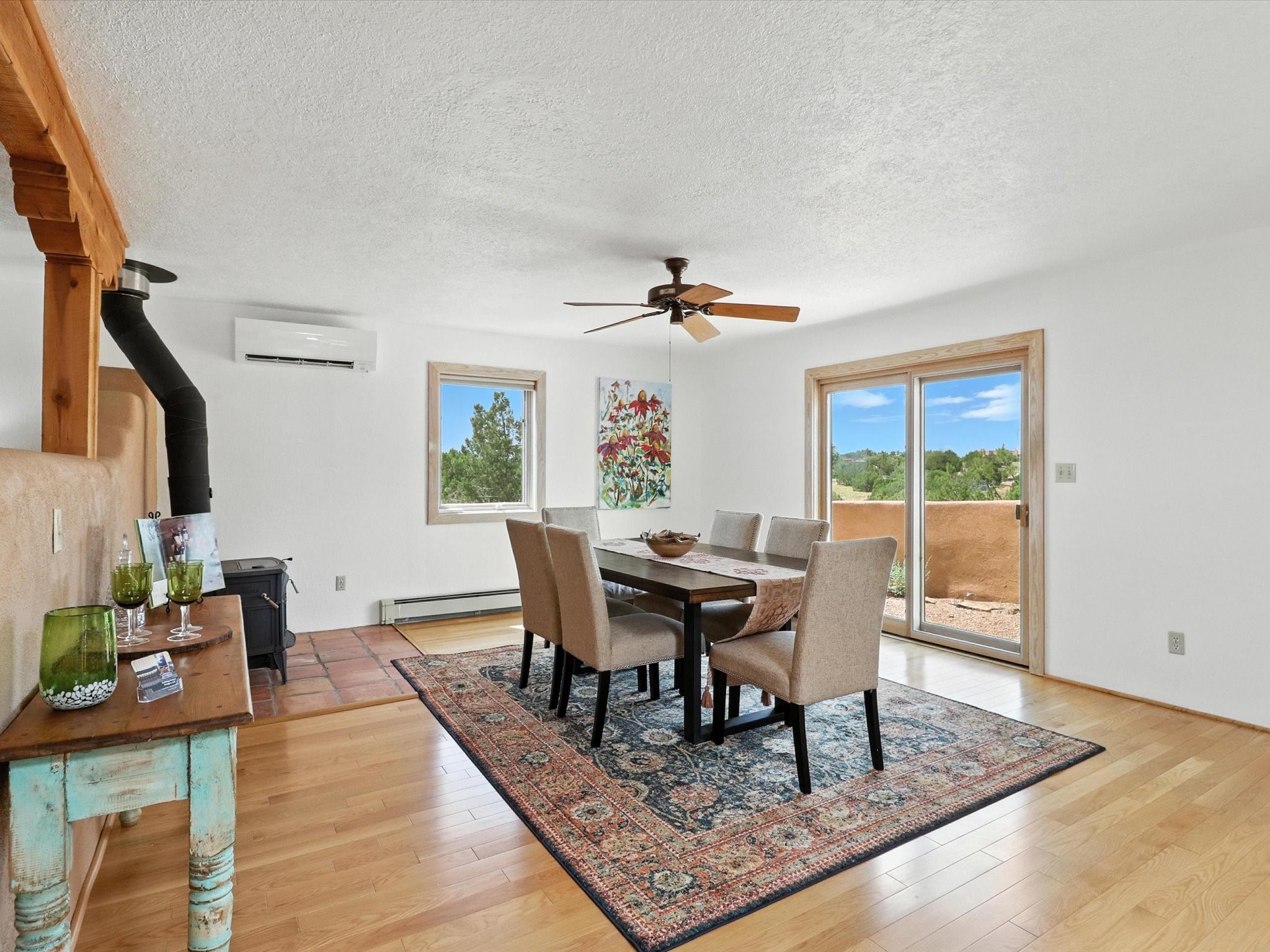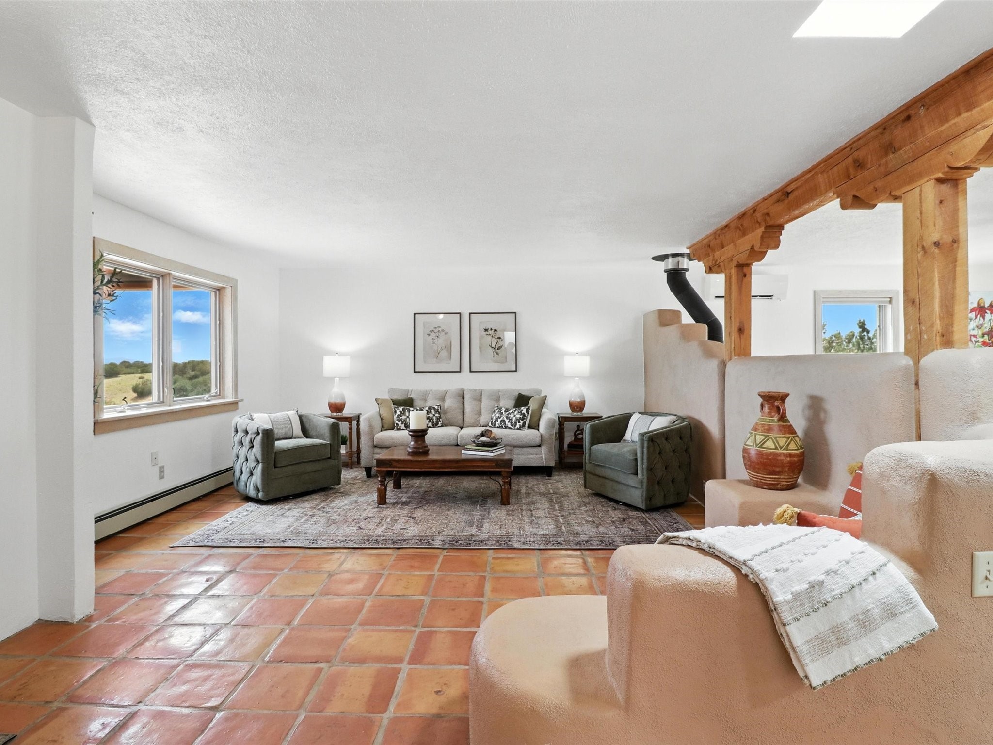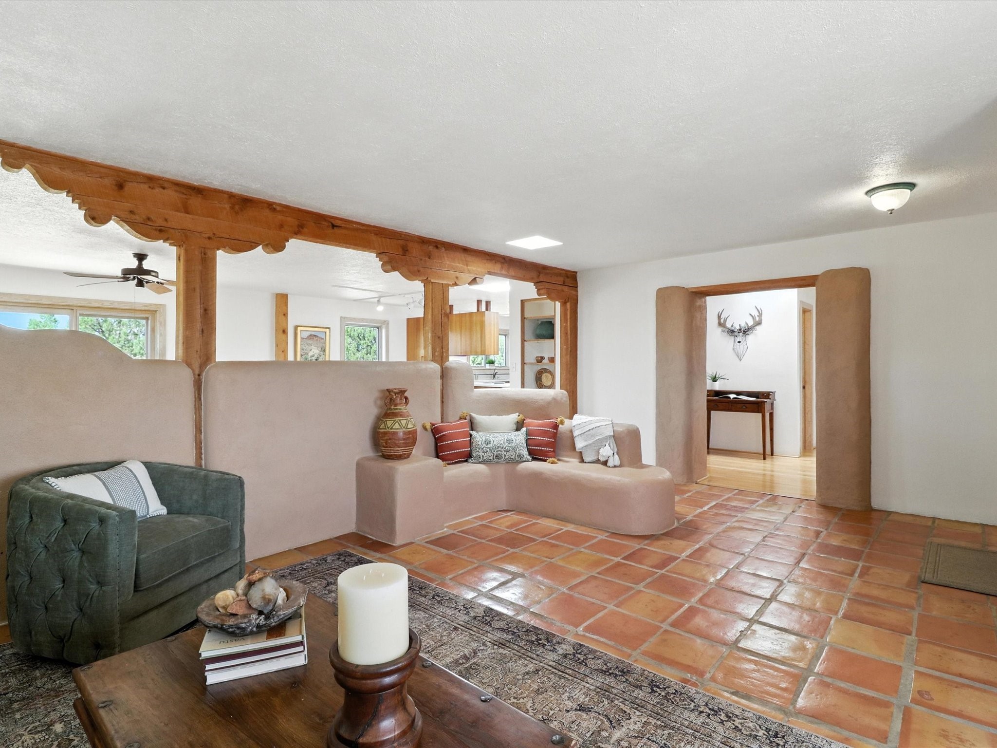 Experience the tranquility and space of rural living just south of Santa Fe and west of the Galisteo area. Set amidst a landscape of large-acreage properties, this private estate offers breathtaking vistas, abundant space, and versatile amenities. The main house welcomes you with a grand portal, perfectly positioned to capture panoramic views to the south and west, along with four bedrooms and three bathrooms. Inside, you'll find generous living areas designed for comfort, connection, and relaxation. A separate Guest House accessed via its own private driveway offers complete independence for guests, extended family, or rental opportunities. The guest house is equipped with two bedrooms and two bathrooms. The expansive property includes multiple outbuildings, including a well-equipped workshop and a corral with shelter, ideal for animals or hobby farming. Whether you're seeking a serene retreat, multigenerational living, or a lifestyle that embraces both nature and functionality, this property delivers. Do not miss this rare opportunity to own a peaceful and private haven. Imagine the possibilities and schedule your private showing today.