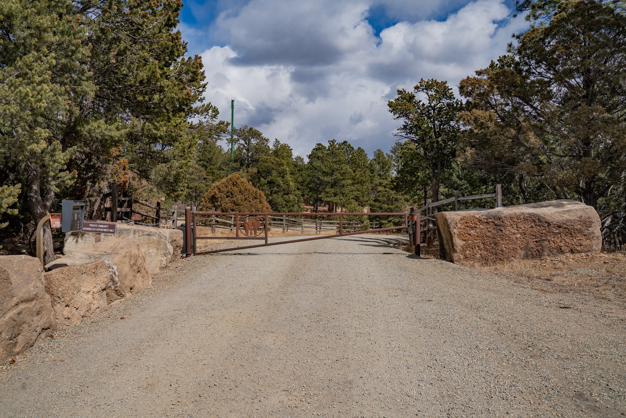 5 Colibri Court offers a serene and picturesque setting just 3 miles from the historic Village of Pecos and about 30 minutes from Santa Fe. This 0.29-acre lot features an open-cleared area surrounded by mature pine trees and offers peaceful meadow views, creating the perfect backdrop for your dream home. The lot is fully equipped with underground utilities, including a shared well, electricity, telephone lines, and a shared nitrate wastewater septic treatment system. Wireless internet is available, and DSL. Zoned Rural Residential, the lot offers flexibility for various residential options. The community features custom street signs, landscape lighting, split-rail fencing, and electronic gated access, enhancing security and charm. With its natural beauty and prime location, this vibrant community provides a tranquil and secure environment where you can enjoy the best of both nature and modern living. DIAGRAM IS PART OF THE PARTIAL BUILDING PLANS AVAILABLE. SELLER FINANCING OPTION