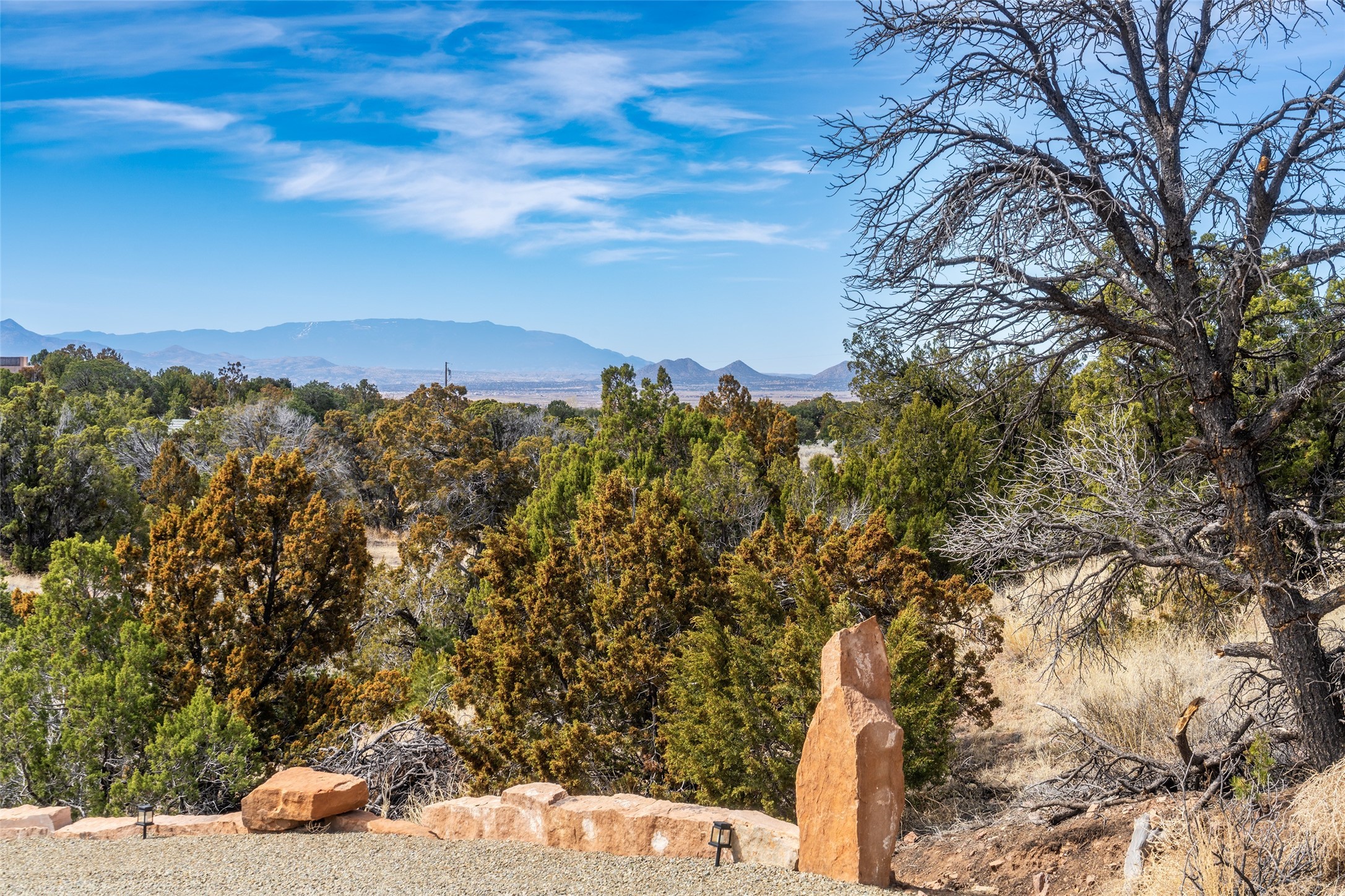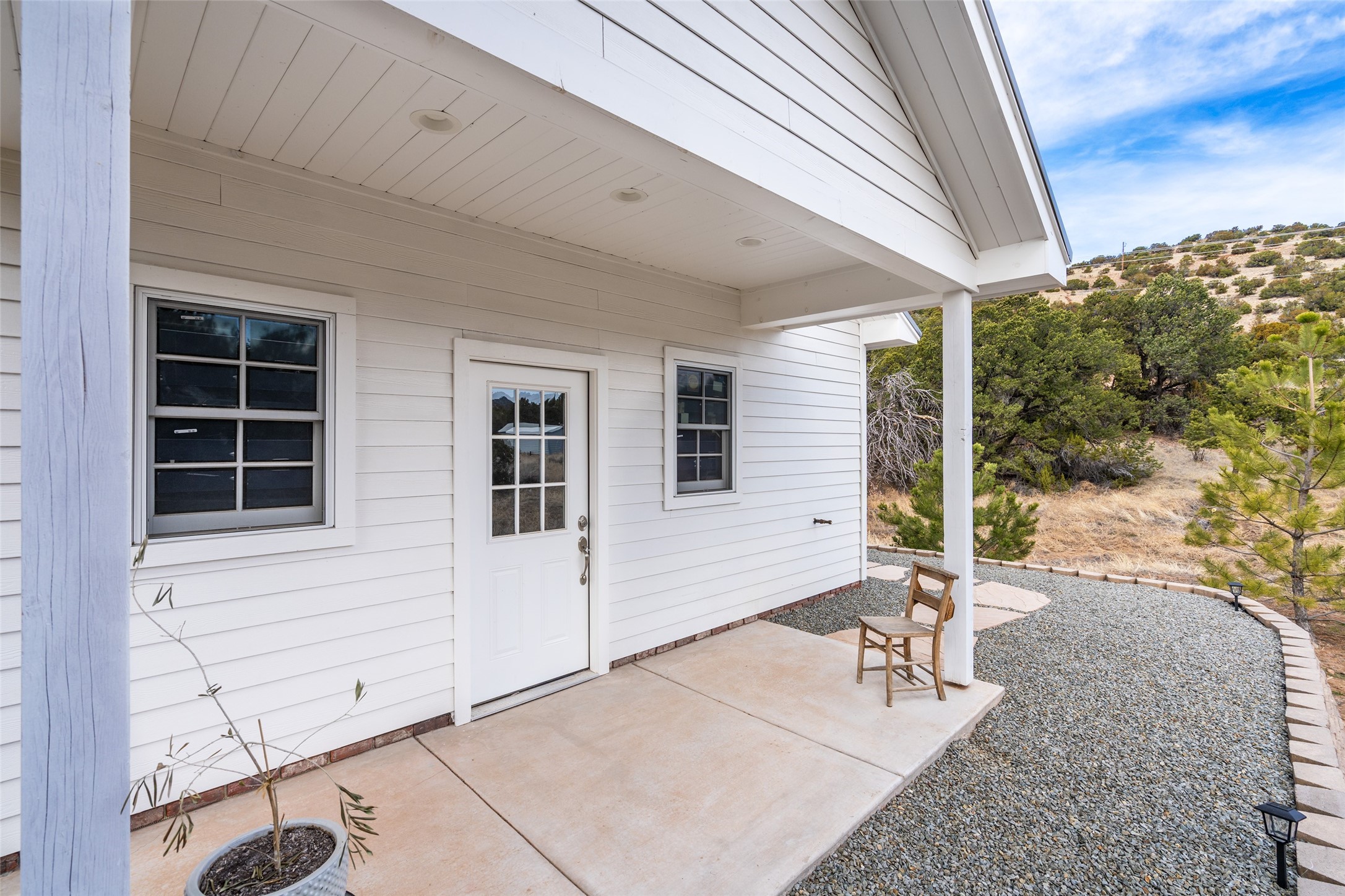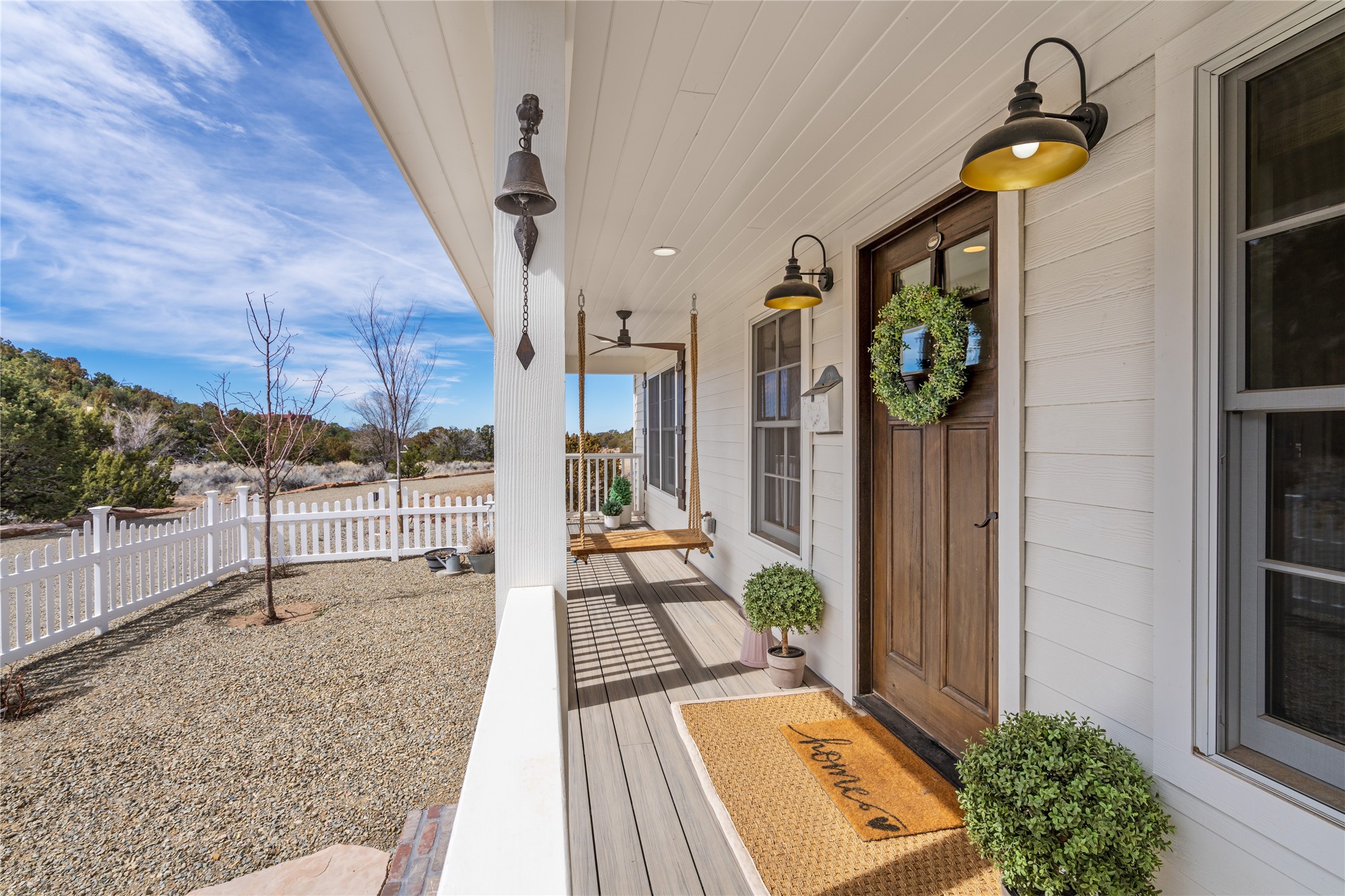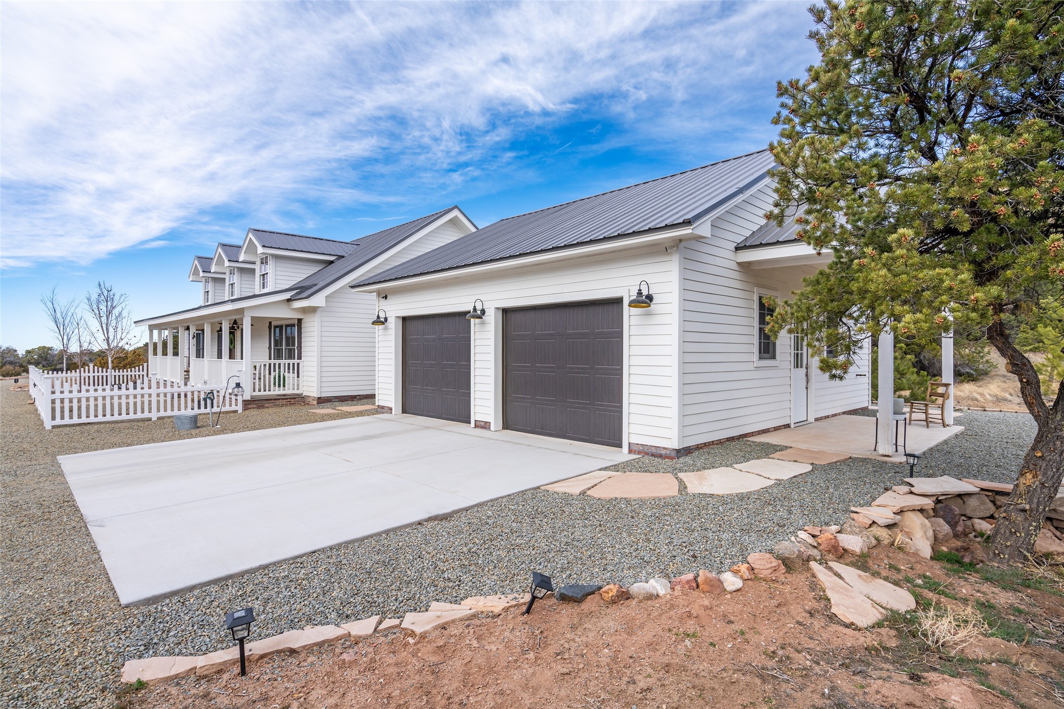 PRICED TO SELL!!!!!!!! (UNDER APPRAISED VALUE) This NEWLY CUSTOM BUILT Northern New Mexico farmhouse, offering 2,213 sq. ft. of beautifully designed living space. Nestled on a serene 5.06-acre private lot, this newly constructed home features 3 bedrooms, 2 baths on the main level, and a spacious upstairs loft--ideal for an artist's studio, yoga retreat, or home office. High-end finishes are found throughout, including stainless steel appliances, a farmhouse sink, a classic clawfoot tub, and quartz and marble countertops. The open-concept living space is warm and inviting, with ample natural light streaming in. The charming front porch is designed for relaxation. A place where you can savor your morning coffee as deer wander by or take in breathtaking sunset views. The spacious back patio, surrounded by pion trees, offers a tranquil retreat where you can soak up the sun, enjoy a sunset barbeque, or stargaze. The heated 1238 sq. ft. garage includes a private entrance, making it perfect for a workshop, guest suite, or home business. Additional features include RV parking and a private driveway that enhances the secluded feel. For peace of mind, a security system with strategically placed cameras and motion-sensing lights illuminate pathways, while a smart monitoring system ensures the property remains secure. The beautifully landscaped yard features lush trees, vibrant flowers, and neatly trimmed shrubs, connected by a charming flagstone pathway that surrounds the property. A drip irrigation system keeps the landscaping effortlessly maintained. With custom craftsmanship and attention to detail throughout, this home is a true masterpiece--just 8 miles from the historic Santa Fe Plaza. Don't miss your chance to own this exceptional modern farmhouse. Neither the listing broker/seller guarantees the square footage of property. Buyers should independently verify all information, including but not limited to square footage and building materials.Owner/Broker Property