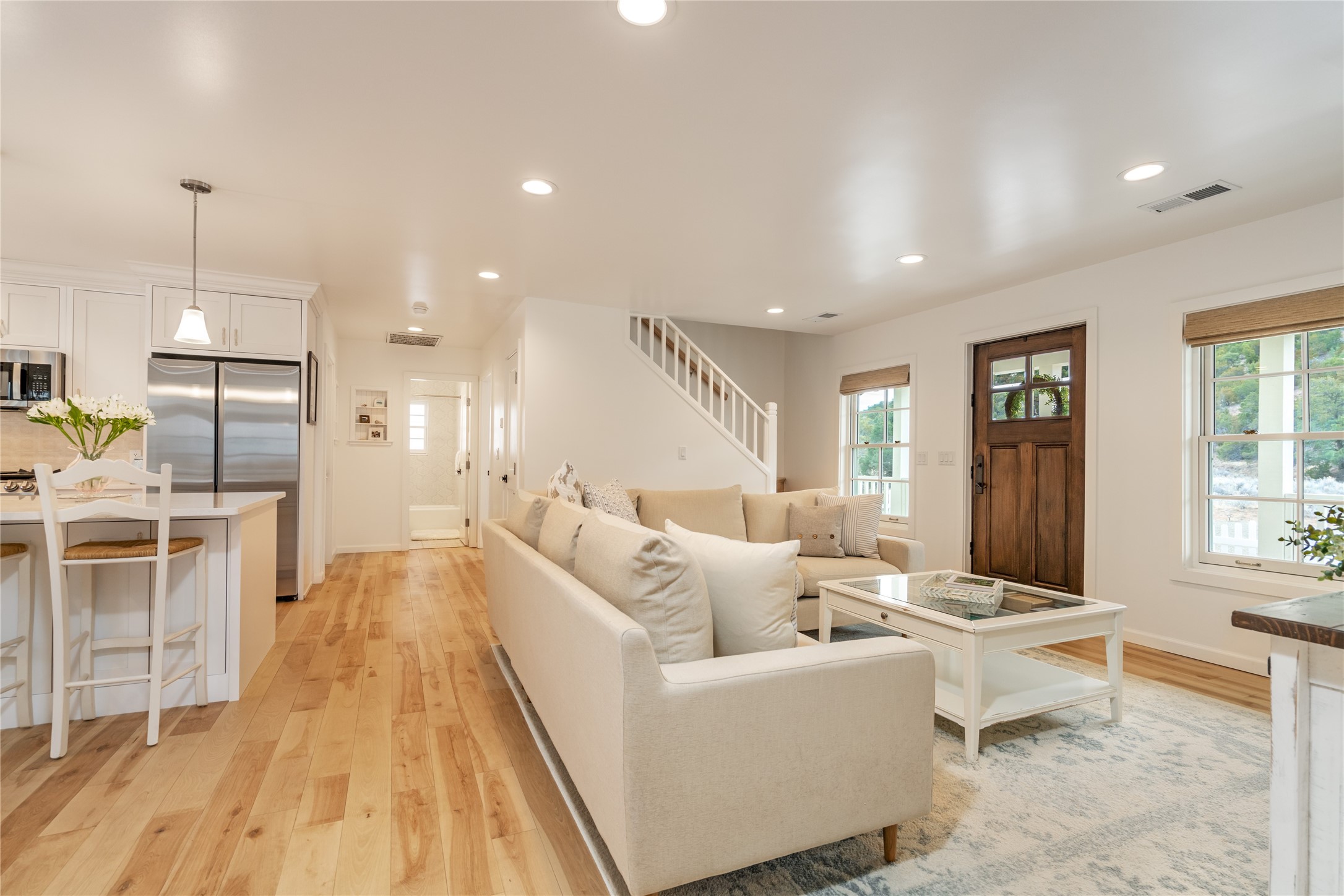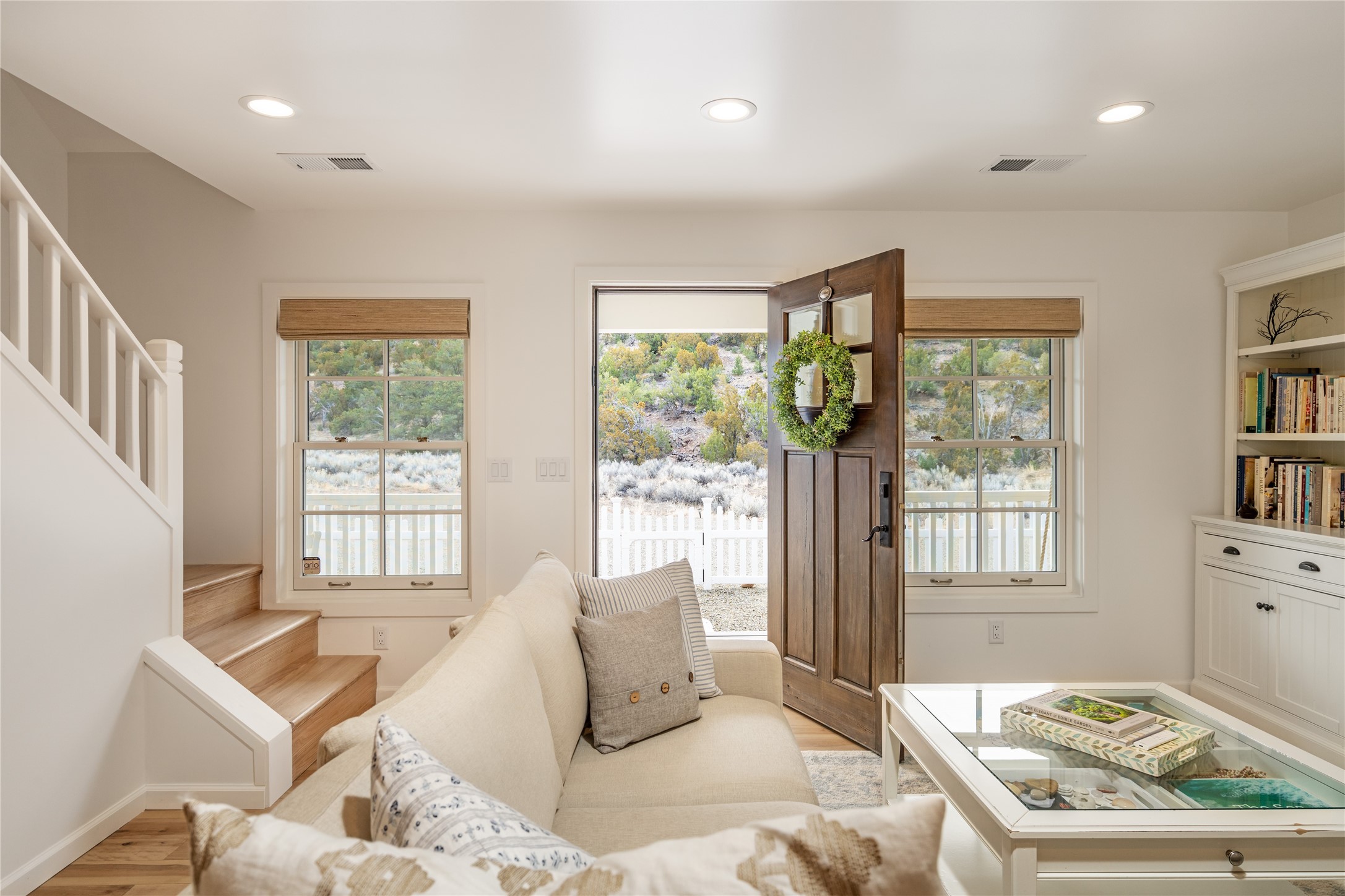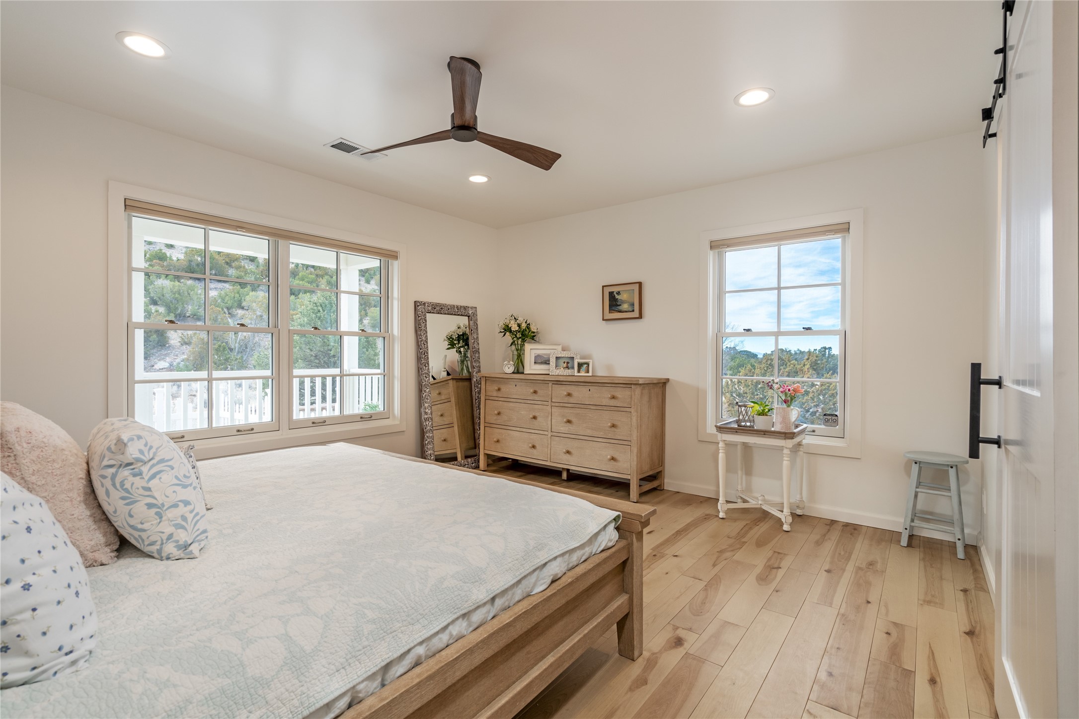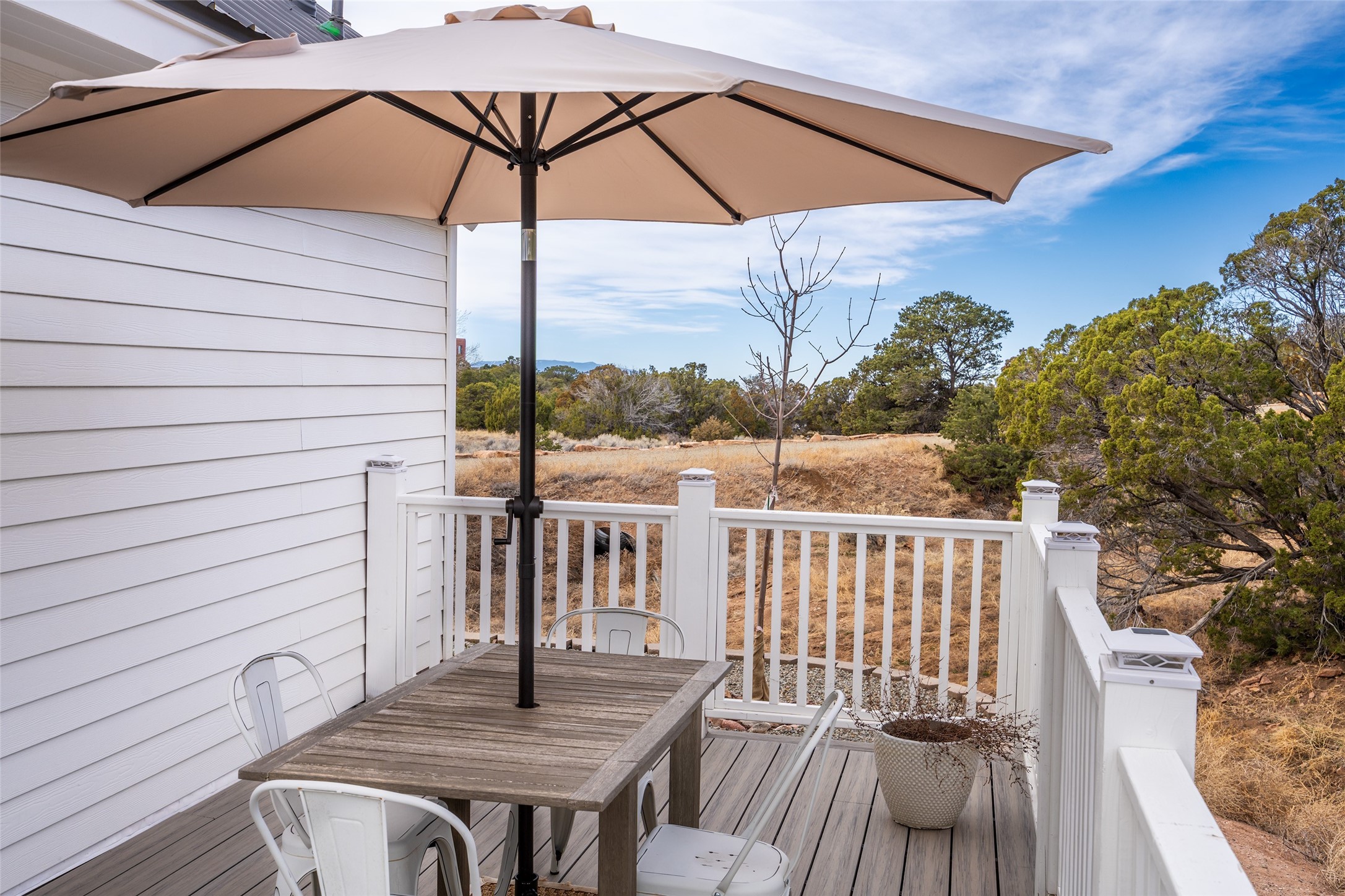PRICED TO SELL!!!!!!!! (UNDER APPRAISED VALUE) This NEWLY CUSTOM BUILT Northern New Mexico farmhouse, offering 2,213 sq. ft. of beautifully designed living space. Nestled on a serene 5.06-acre private lot, this newly constructed home features 3 bedrooms, 2 baths on the main level, and a spacious upstairs loft--ideal for an artist's studio, yoga retreat, or home office. High-end finishes are found throughout, including stainless steel appliances, a farmhouse sink, a classic clawfoot tub, and quartz and marble countertops. The open-concept living space is warm and inviting, with ample natural light streaming in. The charming front porch is designed for relaxation. A place where you can savor your morning coffee as deer wander by or take in breathtaking sunset views. The spacious back patio, surrounded by pion trees, offers a tranquil retreat where you can soak up the sun, enjoy a sunset barbeque, or stargaze. The heated 1238 sq. ft. garage includes a private entrance, making it perfect for a workshop, guest suite, or home business. Additional features include RV parking and a private driveway that enhances the secluded feel. For peace of mind, a security system with strategically placed cameras and motion-sensing lights illuminate pathways, while a smart monitoring system ensures the property remains secure. The beautifully landscaped yard features lush trees, vibrant flowers, and neatly trimmed shrubs, connected by a charming flagstone pathway that surrounds the property. A drip irrigation system keeps the landscaping effortlessly maintained. With custom craftsmanship and attention to detail throughout, this home is a true masterpiece--just 8 miles from the historic Santa Fe Plaza. Don't miss your chance to own this exceptional modern farmhouse. Neither the listing broker/seller guarantees the square footage of property. Buyers should independently verify all information, including but not limited to square footage and building materials.Owner/Broker Property