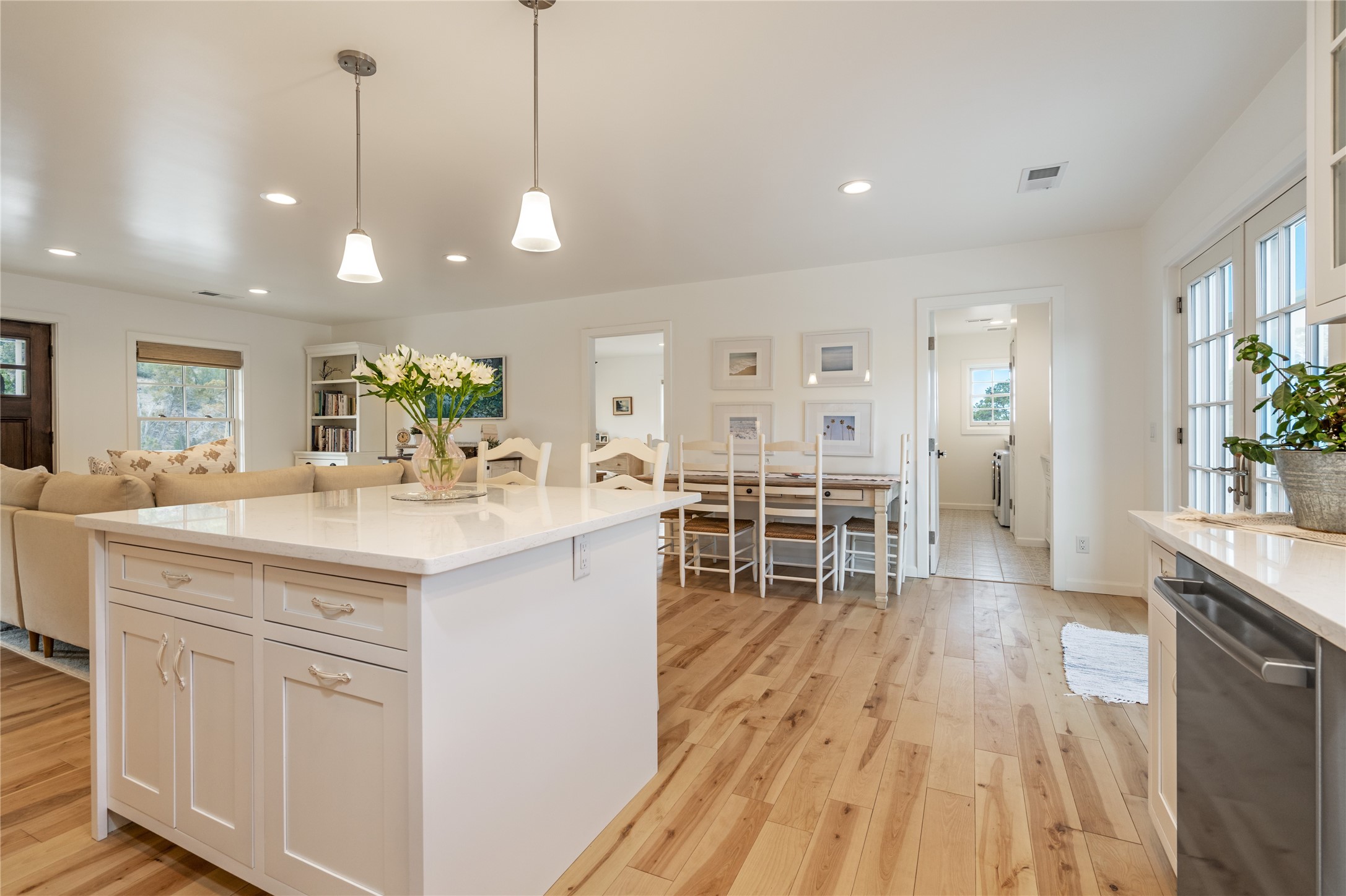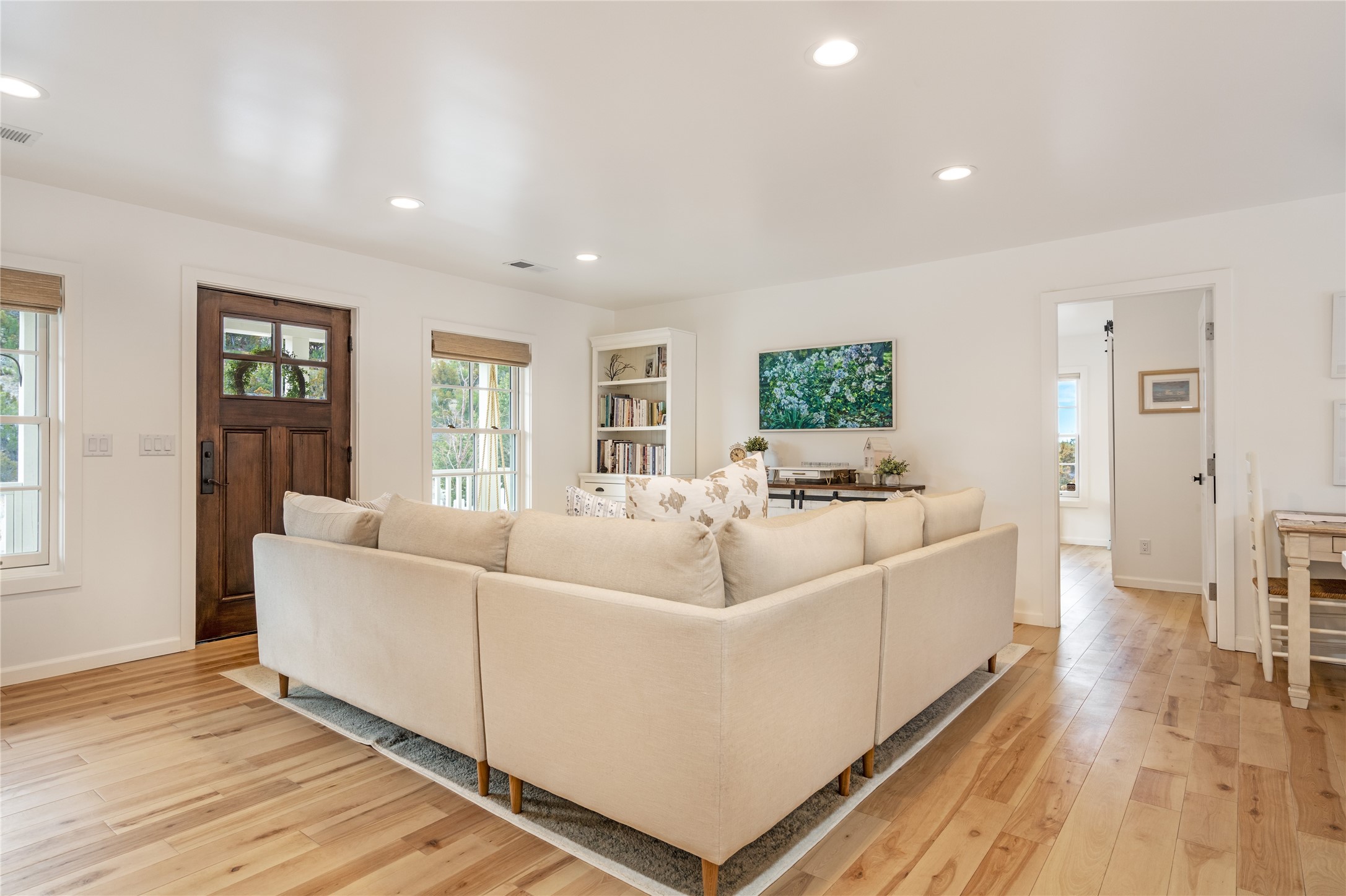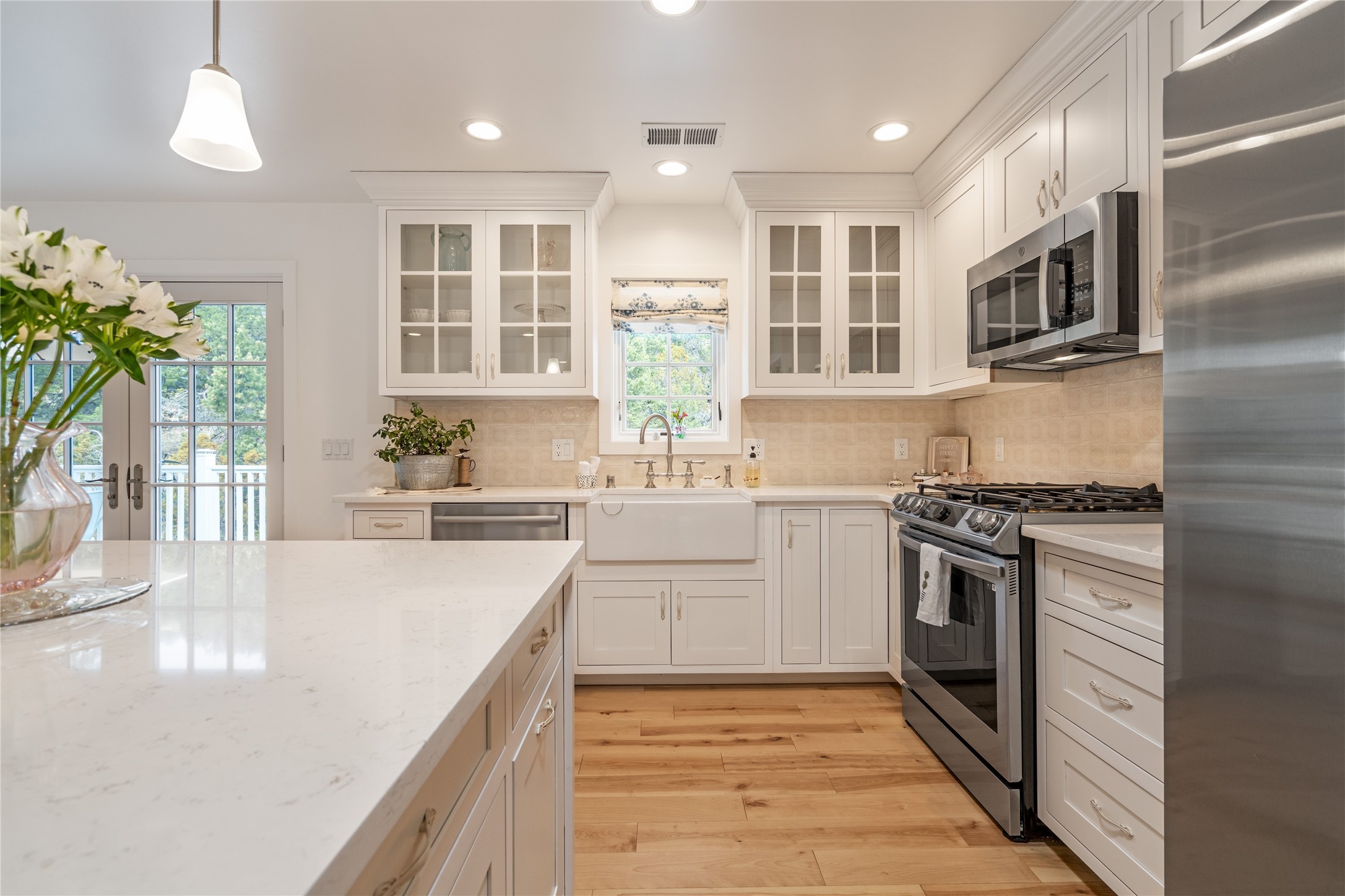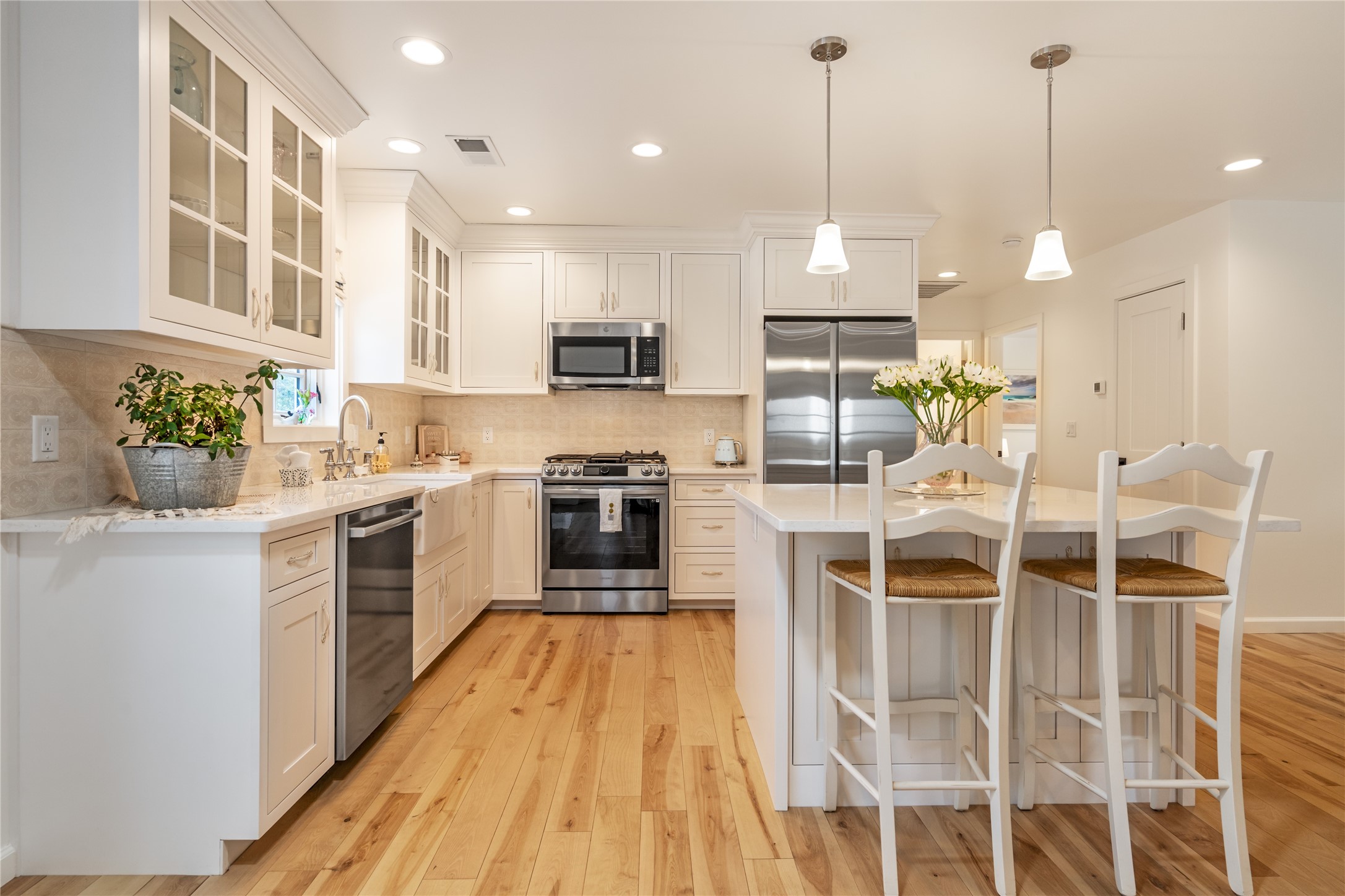 PRICED TO SELL!!!!!!!! (UNDER APPRAISED VALUE) This NEWLY CUSTOM BUILT Northern New Mexico farmhouse, offering 2,213 sq. ft. of beautifully designed living space. Nestled on a serene 5.06-acre private lot, this newly constructed home features 3 bedrooms, 2 baths on the main level, and a spacious upstairs loft--ideal for an artist's studio, yoga retreat, or home office. High-end finishes are found throughout, including stainless steel appliances, a farmhouse sink, a classic clawfoot tub, and quartz and marble countertops. The open-concept living space is warm and inviting, with ample natural light streaming in. The charming front porch is designed for relaxation. A place where you can savor your morning coffee as deer wander by or take in breathtaking sunset views. The spacious back patio, surrounded by pion trees, offers a tranquil retreat where you can soak up the sun, enjoy a sunset barbeque, or stargaze. The heated 1238 sq. ft. garage includes a private entrance, making it perfect for a workshop, guest suite, or home business. Additional features include RV parking and a private driveway that enhances the secluded feel. For peace of mind, a security system with strategically placed cameras and motion-sensing lights illuminate pathways, while a smart monitoring system ensures the property remains secure. The beautifully landscaped yard features lush trees, vibrant flowers, and neatly trimmed shrubs, connected by a charming flagstone pathway that surrounds the property. A drip irrigation system keeps the landscaping effortlessly maintained. With custom craftsmanship and attention to detail throughout, this home is a true masterpiece--just 8 miles from the historic Santa Fe Plaza. Don't miss your chance to own this exceptional modern farmhouse. Neither the listing broker/seller guarantees the square footage of property. Buyers should independently verify all information, including but not limited to square footage and building materials.Owner/Broker Property