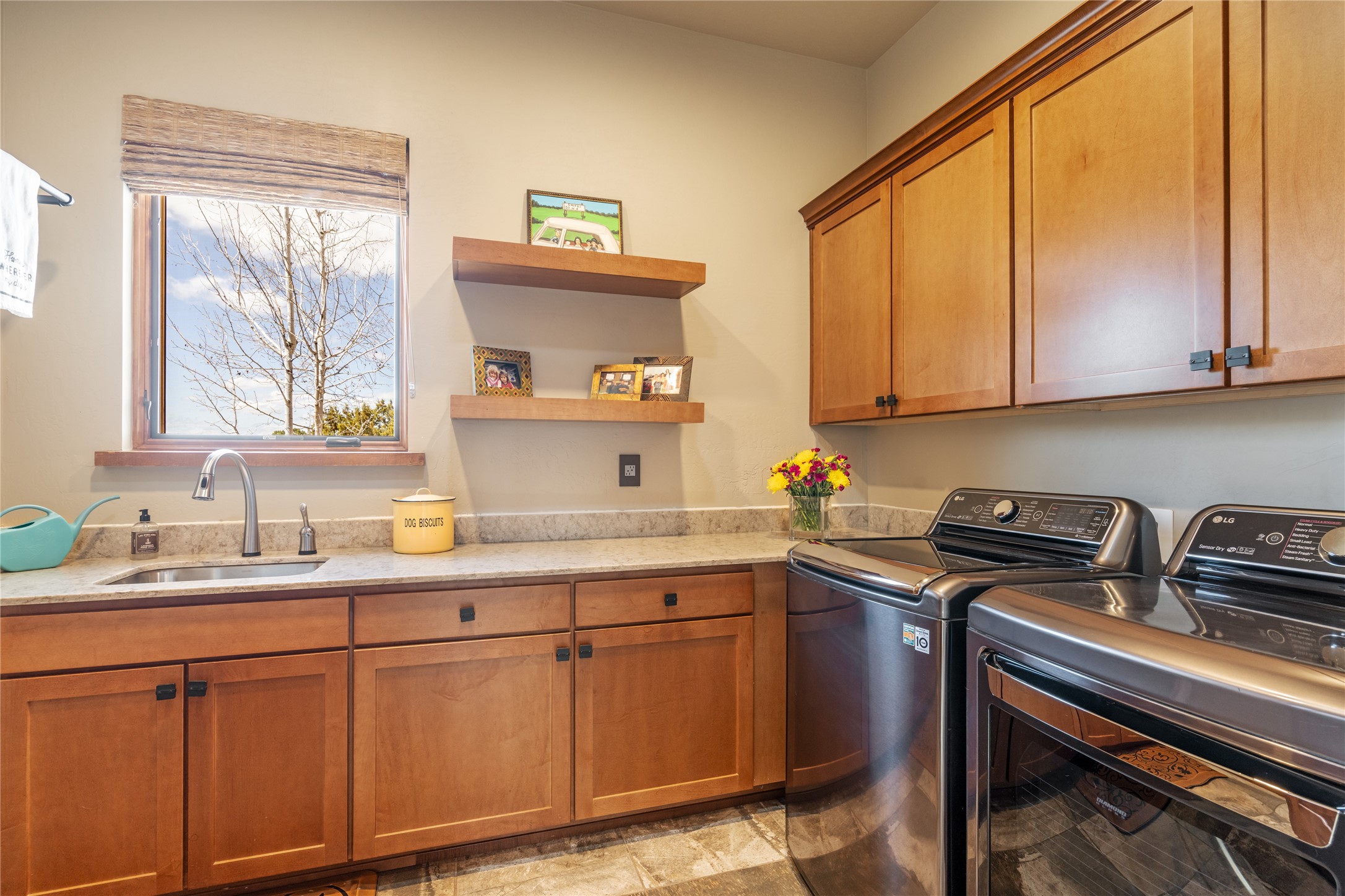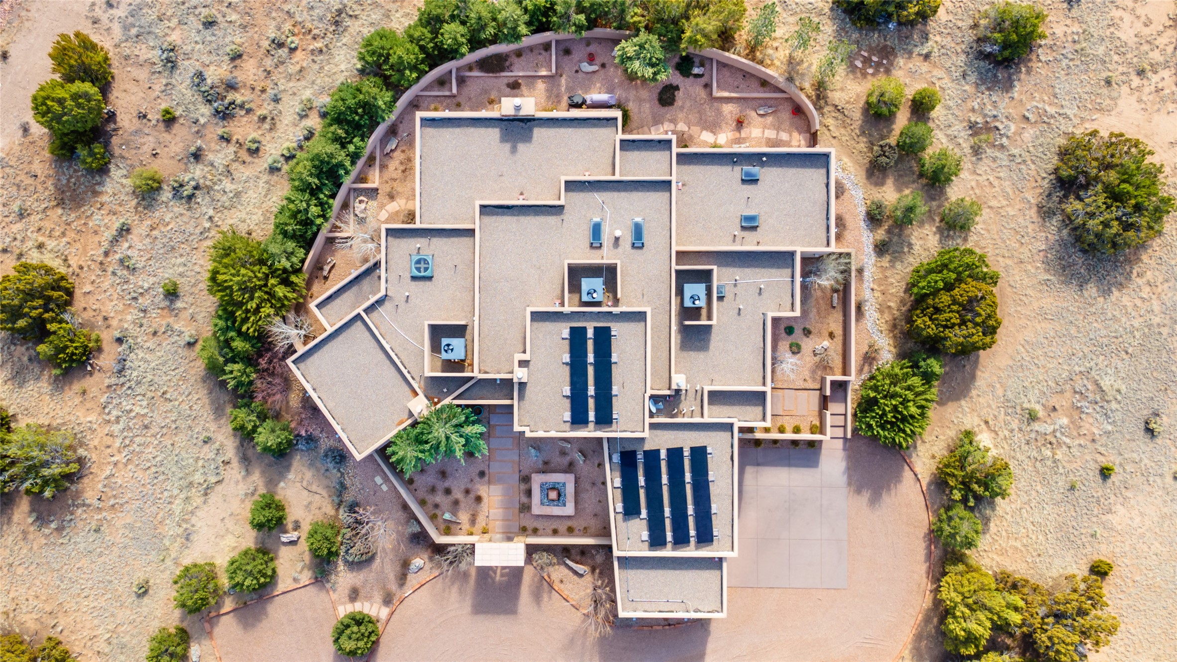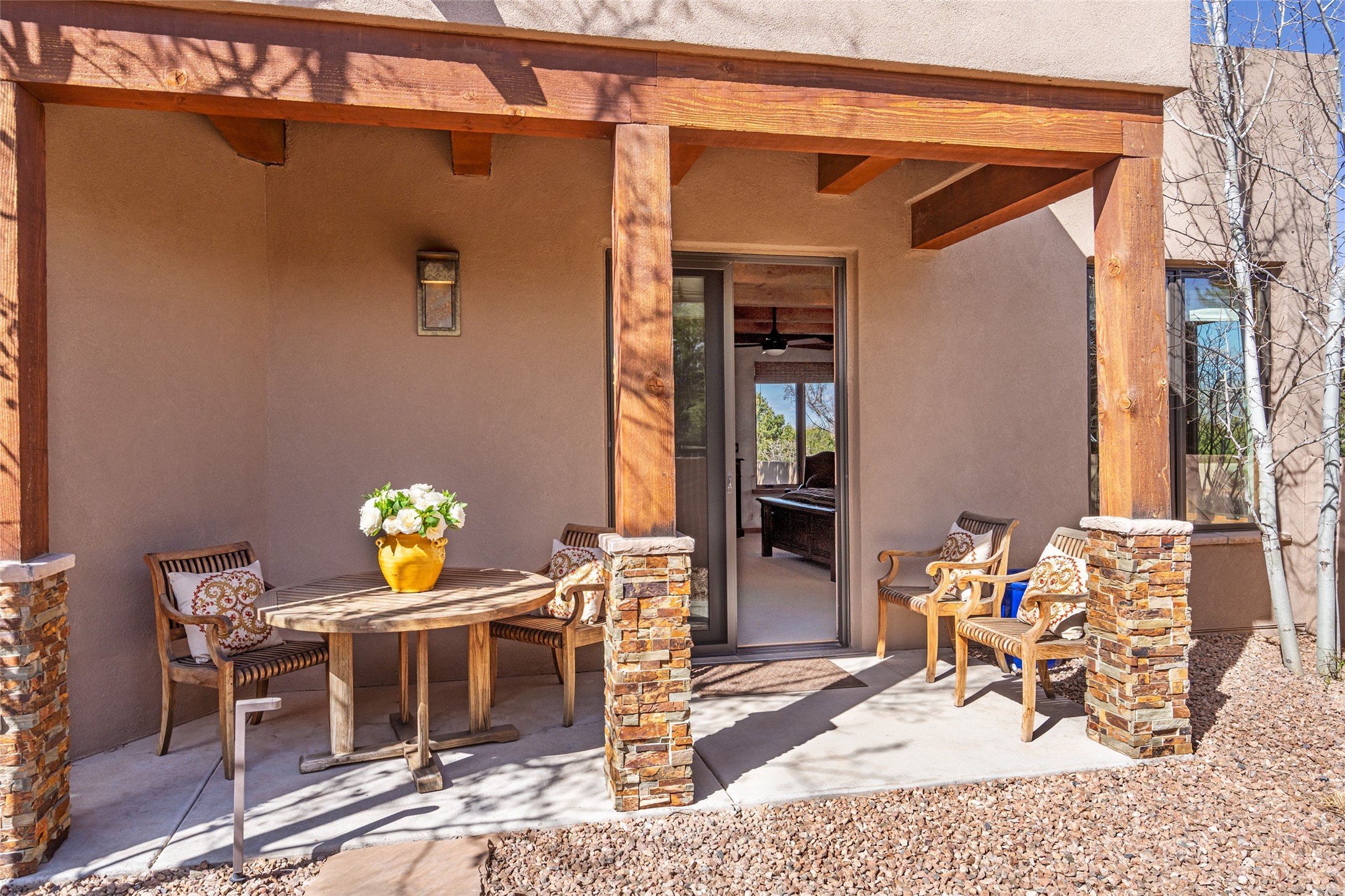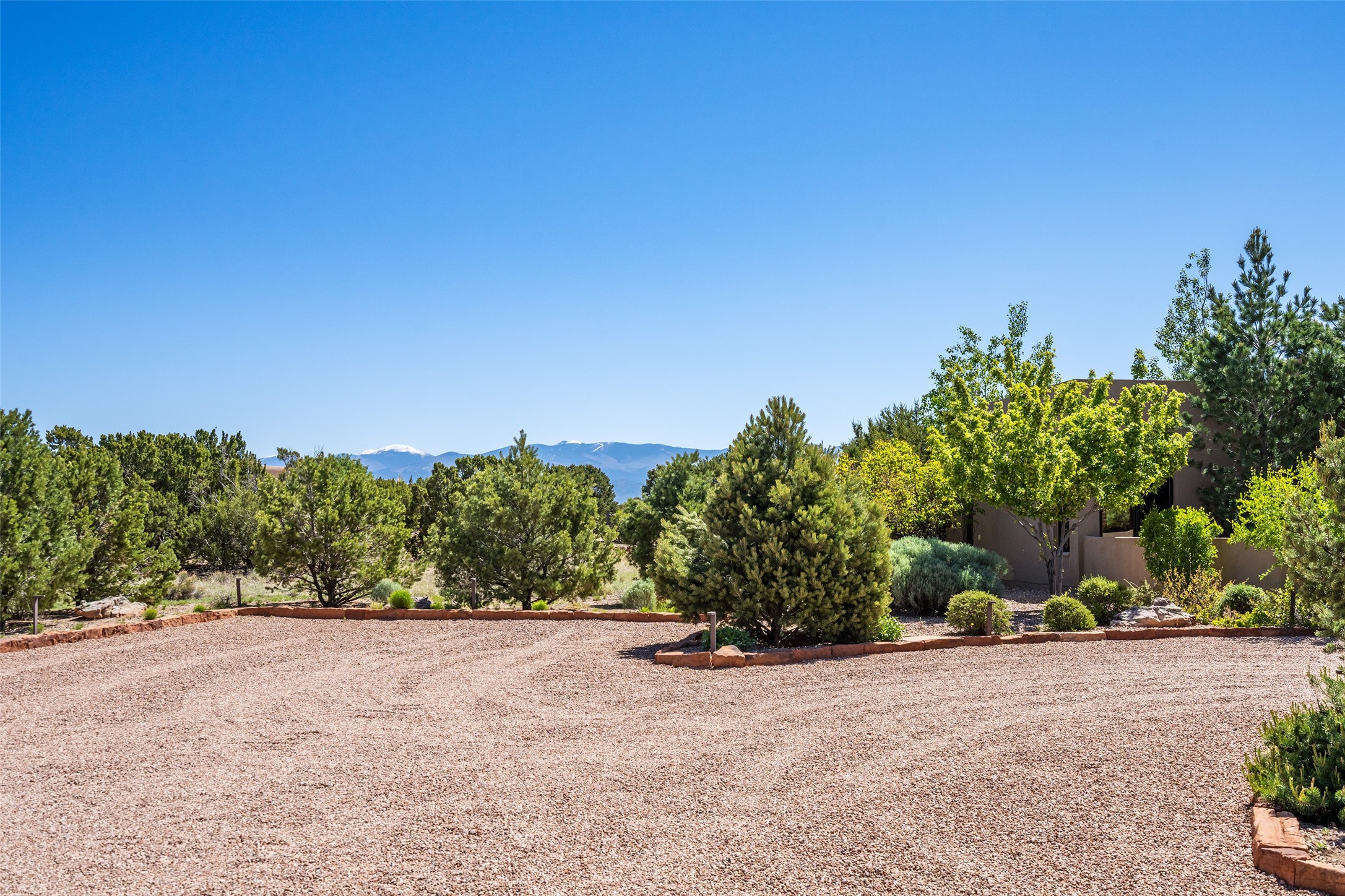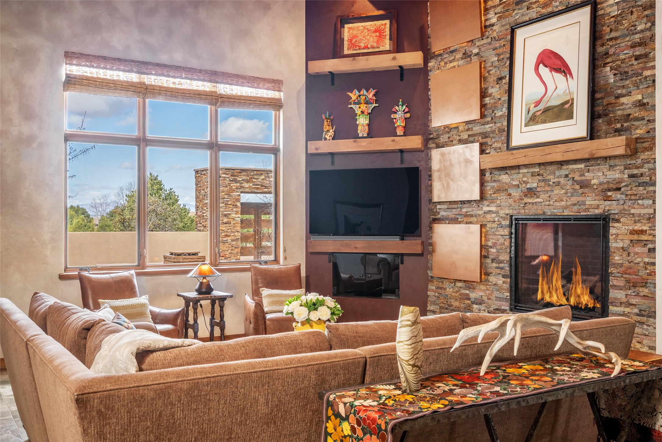 Embrace the beauty of contemporary Pueblo-style architecture in this exquisite 3-bedroom, 3.5-bath home, thoughtfully designed with sophisticated finishes throughout. Nestled on 1.8 acres, this stunning residence is perfectly positioned for privacy and tranquility, offering elegant indoor and outdoor living spaces with Jemez Mountain views.A private entry courtyard with a serene stone water feature sets the tone for the refined interiors. At the heart of the home, the grand chef's kitchen boasts top-tier appliances, custom cabinetry, and an inviting layout ideal for entertaining. The generous primary suite is a true retreat, featuring a cozy gas fireplace, two walk-in closets, office space, a spa-inspired bath, and private portal. The guest wing contains two spacious guest rooms, each with an ensuite bath, providing exceptional comfort and privacy. A large office/den with a separate entrance and its own portal offers the perfect space for work or creative pursuitsOutdoor living is just as inviting, with a spacious rear portal with a large fireplace, built-in gas grill, a second water feature, and plenty of space for dining al fresco while taking in the tranquil surroundings. A three-car direct-entry garage adds to the exceptional features of this property. This home seamlessly blends timeless Southwestern charm with modern sophistication -- an unparalleled sanctuary just waiting to be enjoyed.