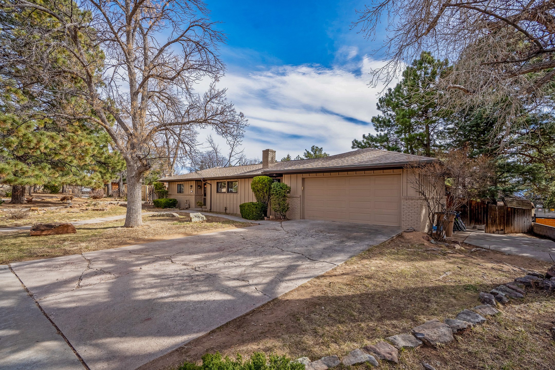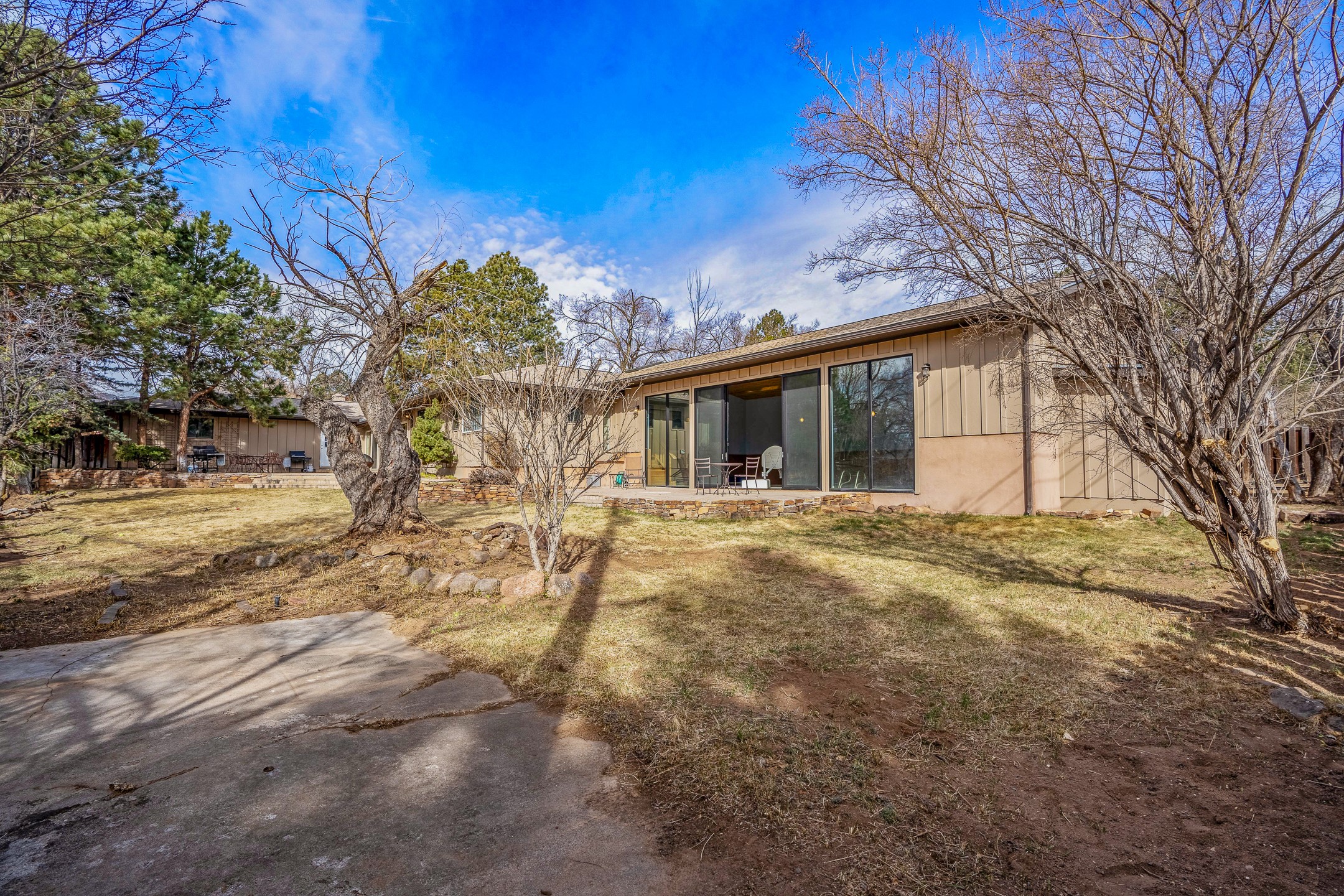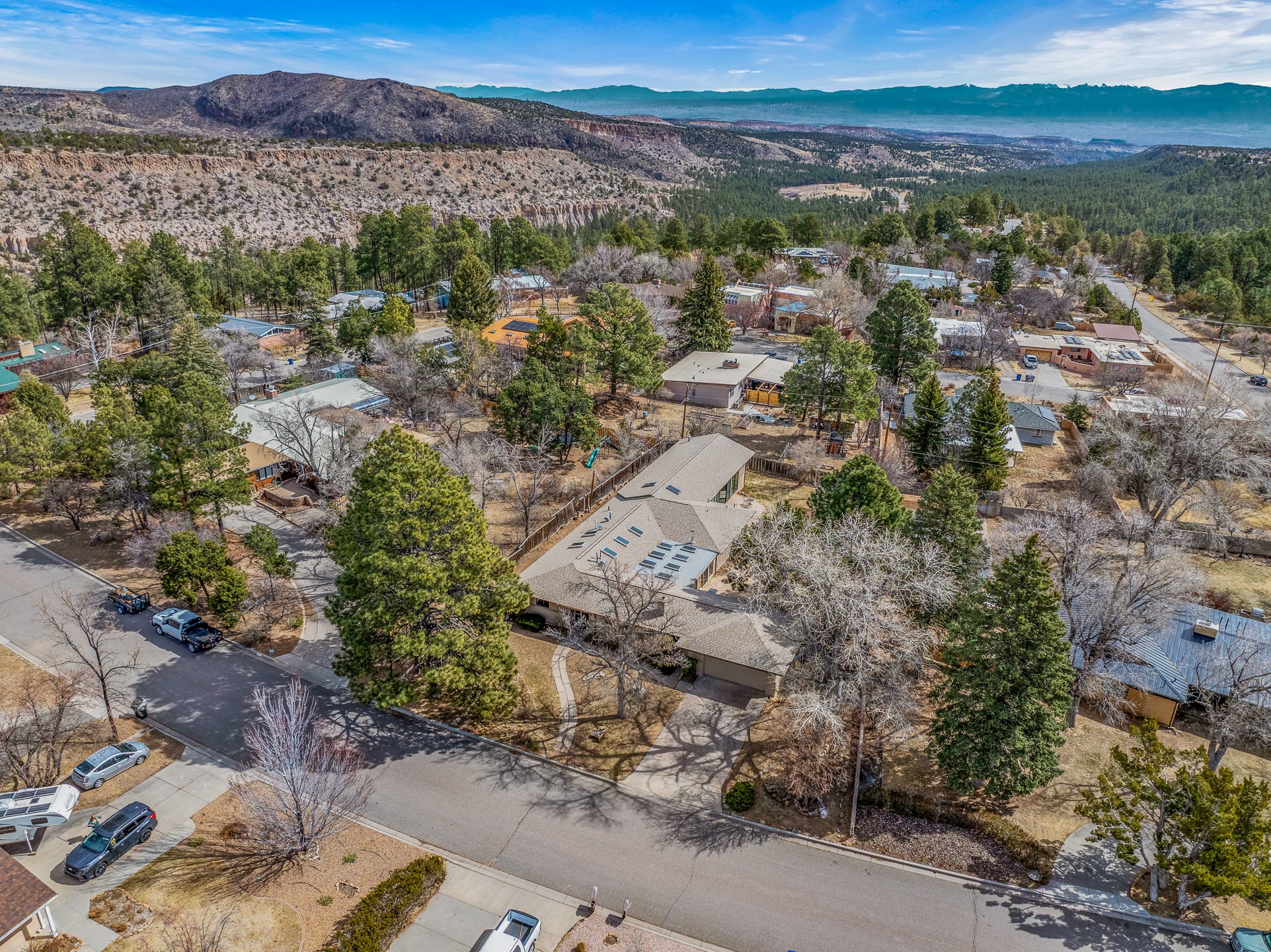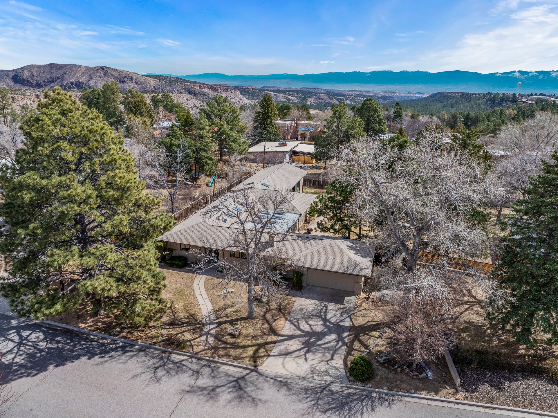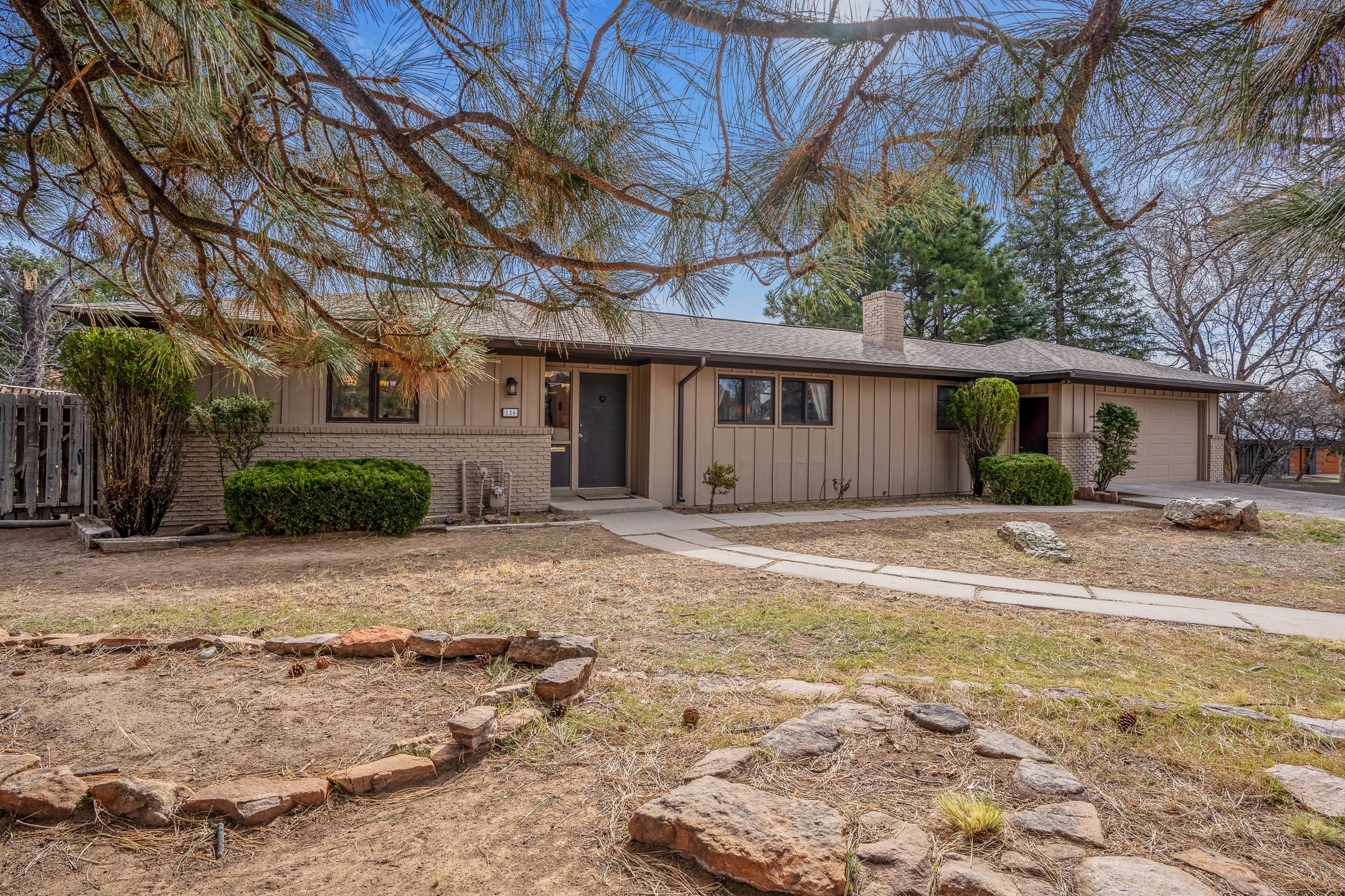 Updated Barranca Mesa Gem with Indoor Pool, Large 0.39 Acre Lot, 4 Bedrooms, Gourmet French Kitchen, Open Floor Plan, Game Room, Flagstone Patio with Views, and More! Welcome to 126 Andanada! This ranch-style home is located amongst the pines on a large 0.39 acre lot on Barranca Mesa, features a rare indoor pool, and is perfect for entertaining guests and enjoying life! As you enter, you are greeted by wood floors, natural light, and an open floor plan. To the left awaits a spacious dining room easily accommodates a ten-seat table and flows into the kitchen, making holiday meals a breeze. The custom kitchen is reminiscent of a Parisian holiday and serves as the hub of this home. It features a large L-shaped island with barstool seating for six, a built-in refrigerator, a high-end Wolf gas range, double ovens, a pedal-operated sink faucet, and four skylights for great lighting. The white cabinets provide ample storage and there is counter space for hosting and cooking in harmony! The living room features a stylish wood stove and provides access to a large flagstone patio in the backyard, with great views of the Sangre de Cristo Mountains. A second living area can serve as a game room or a home office, includes a brick fireplace to keep you warm on those cool evenings. The bedroom wing features three guest bedrooms, a full bathroom, and a spacious laundry room. The primary suite includes an en-suite bathroom that features a quartz-topped double vanity and walk-in shower. The indoor pool is housed in the eastern part of the home in a separate room with lofted ceilings and a wall of south-facing windows. The pool house opens to the landscaped back yard to maximize your summer fun! This home is truly an entertainer's dream! Schedule your showing today before this one is gone!