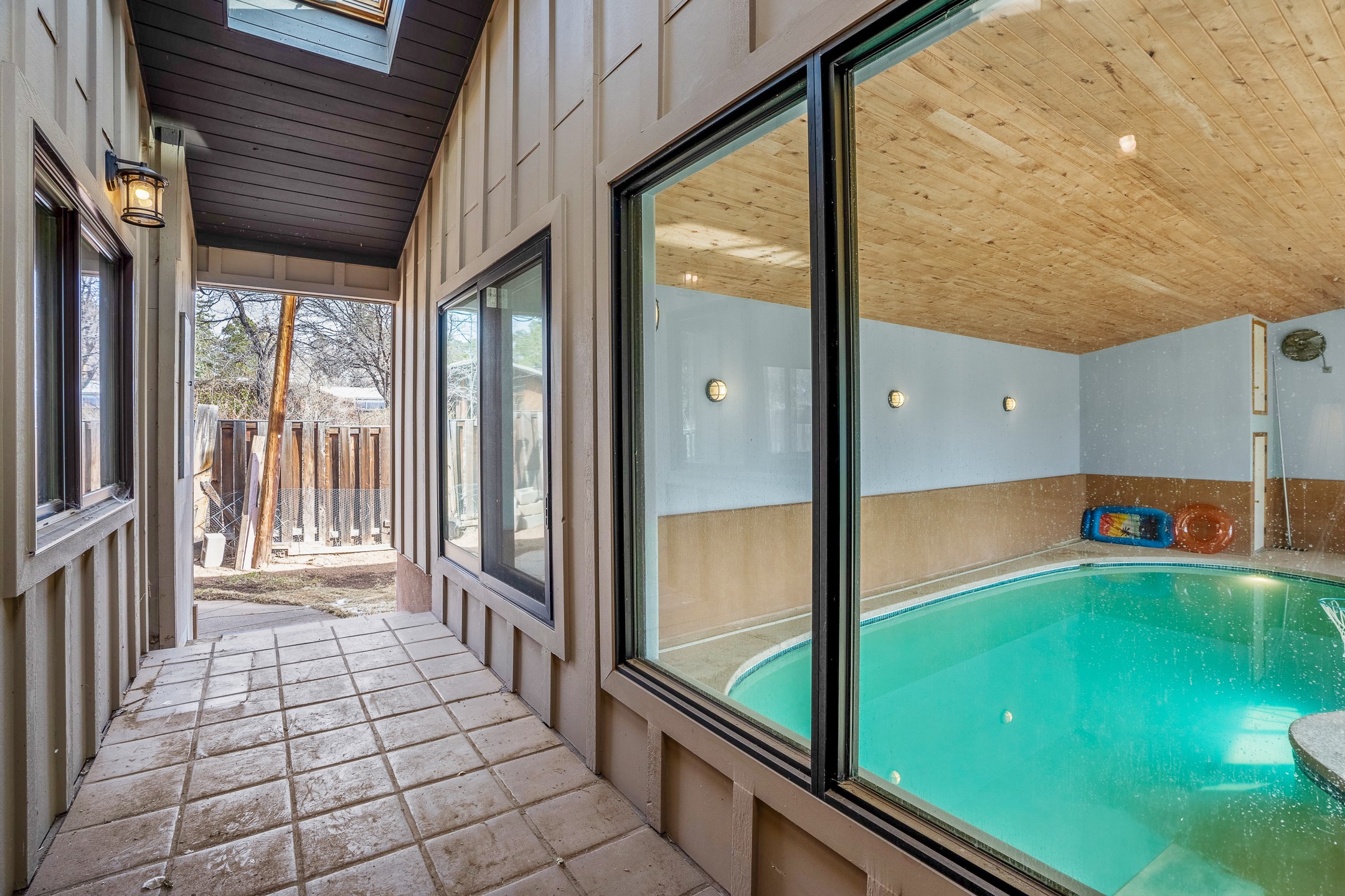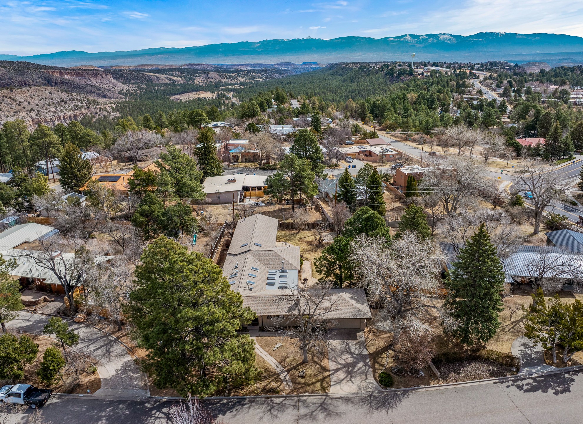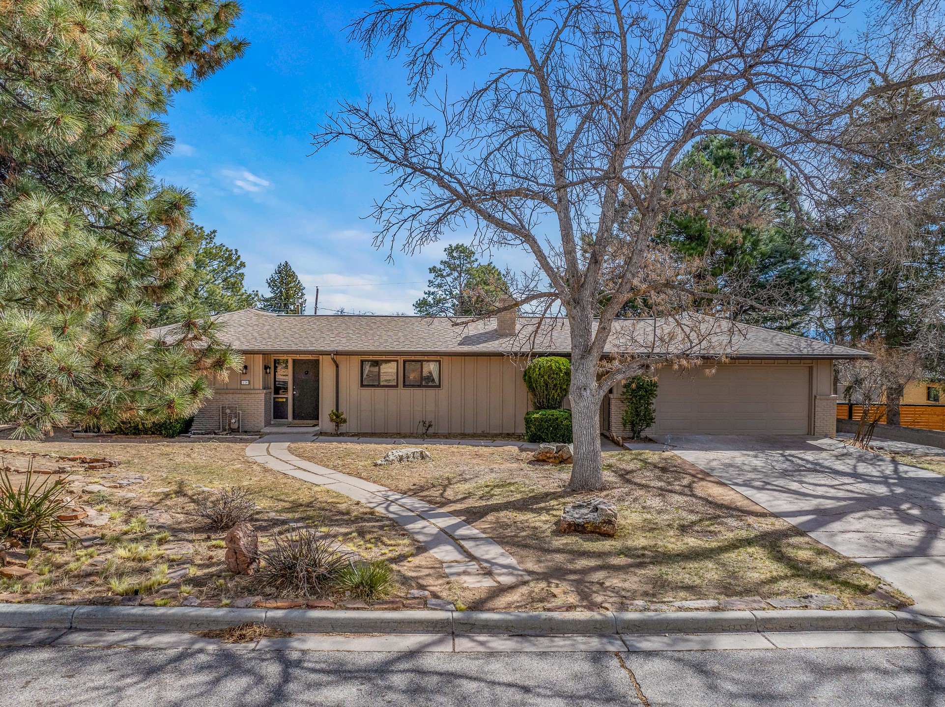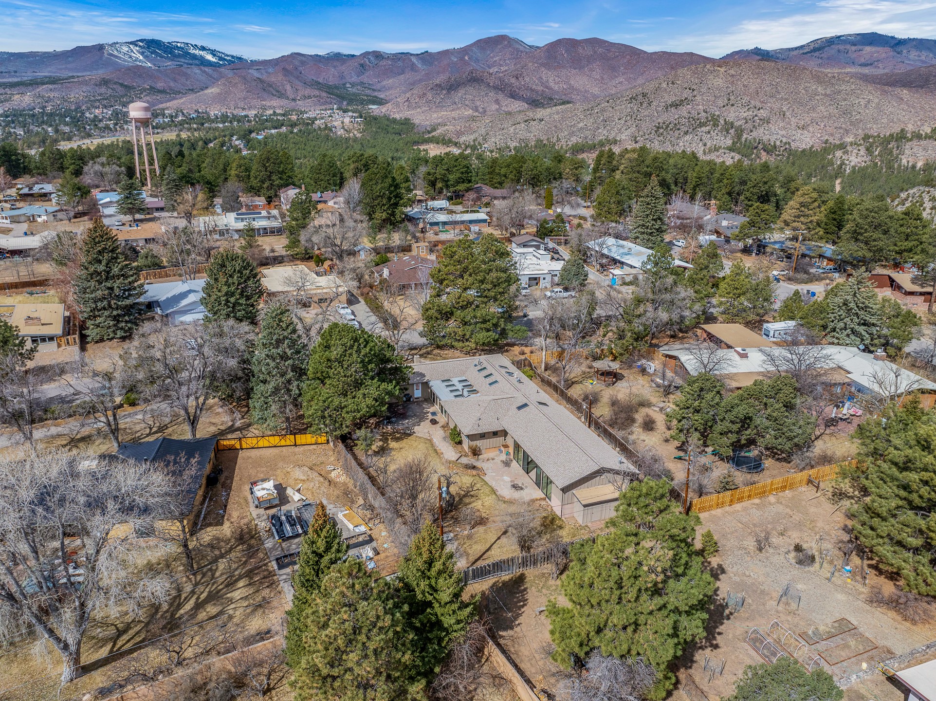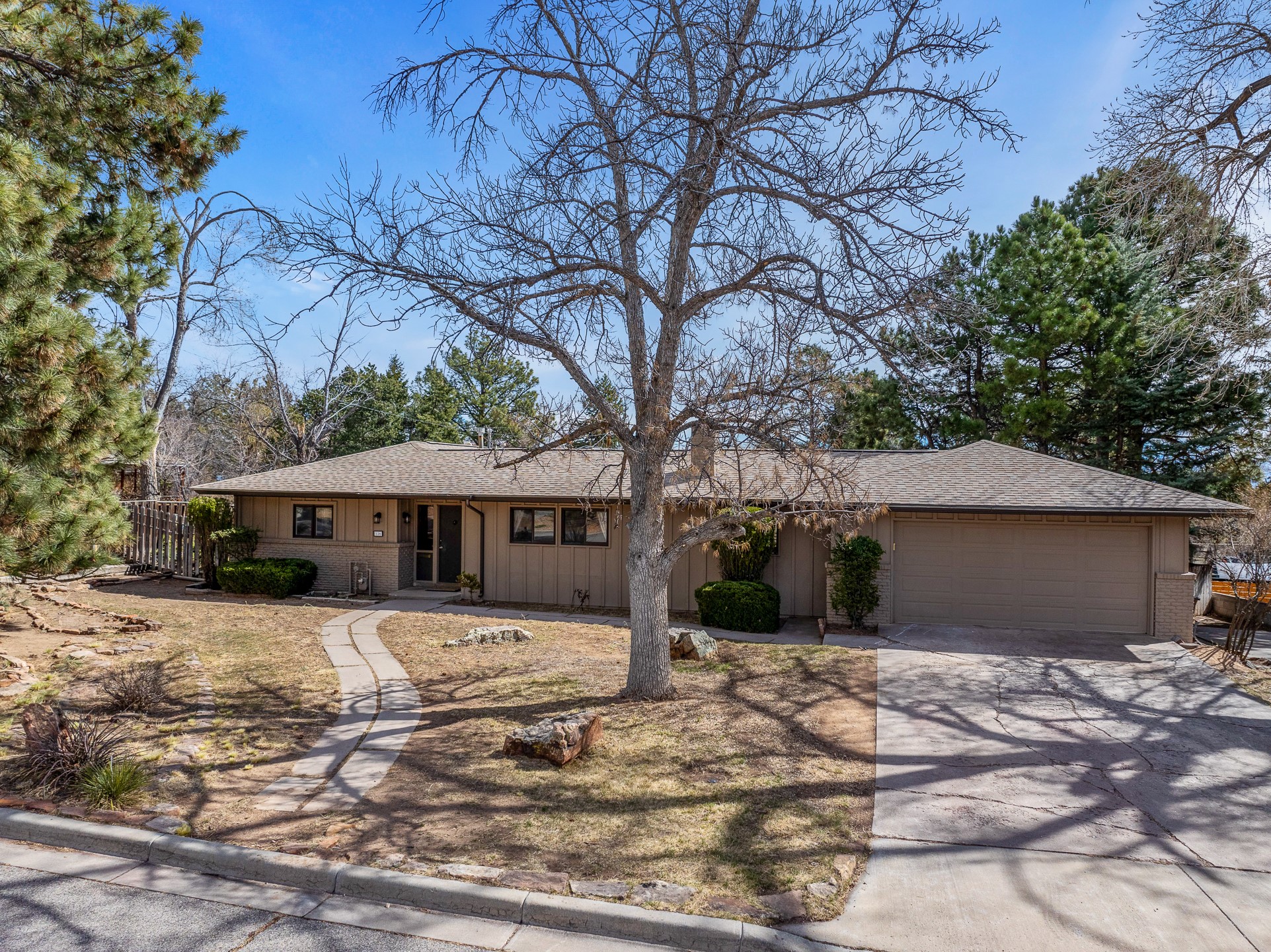 Updated Barranca Mesa Gem with Indoor Pool, Large 0.39 Acre Lot, 4 Bedrooms, Gourmet French Kitchen, Open Floor Plan, Game Room, Flagstone Patio with Views, and More! Welcome to 126 Andanada! This ranch-style home is located amongst the pines on a large 0.39 acre lot on Barranca Mesa, features a rare indoor pool, and is perfect for entertaining guests and enjoying life! As you enter, you are greeted by wood floors, natural light, and an open floor plan. To the left awaits a spacious dining room easily accommodates a ten-seat table and flows into the kitchen, making holiday meals a breeze. The custom kitchen is reminiscent of a Parisian holiday and serves as the hub of this home. It features a large L-shaped island with barstool seating for six, a built-in refrigerator, a high-end Wolf gas range, double ovens, a pedal-operated sink faucet, and four skylights for great lighting. The white cabinets provide ample storage and there is counter space for hosting and cooking in harmony! The living room features a stylish wood stove and provides access to a large flagstone patio in the backyard, with great views of the Sangre de Cristo Mountains. A second living area can serve as a game room or a home office, includes a brick fireplace to keep you warm on those cool evenings. The bedroom wing features three guest bedrooms, a full bathroom, and a spacious laundry room. The primary suite includes an en-suite bathroom that features a quartz-topped double vanity and walk-in shower. The indoor pool is housed in the eastern part of the home in a separate room with lofted ceilings and a wall of south-facing windows. The pool house opens to the landscaped back yard to maximize your summer fun! This home is truly an entertainer's dream! Schedule your showing today before this one is gone!