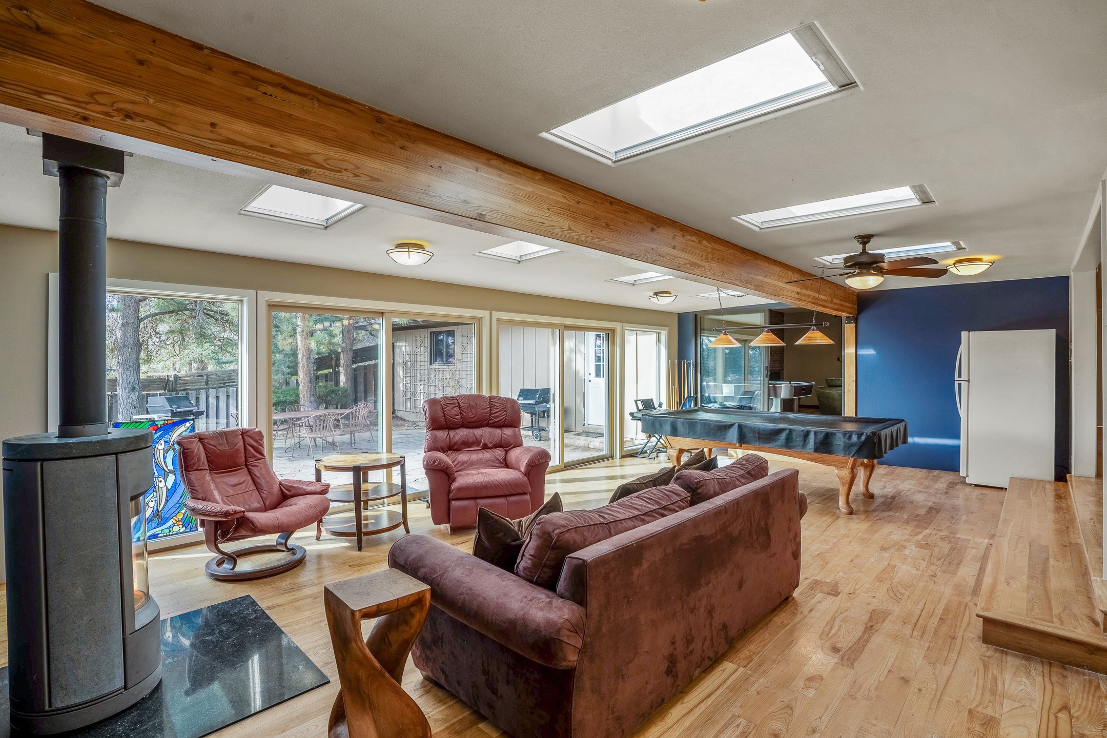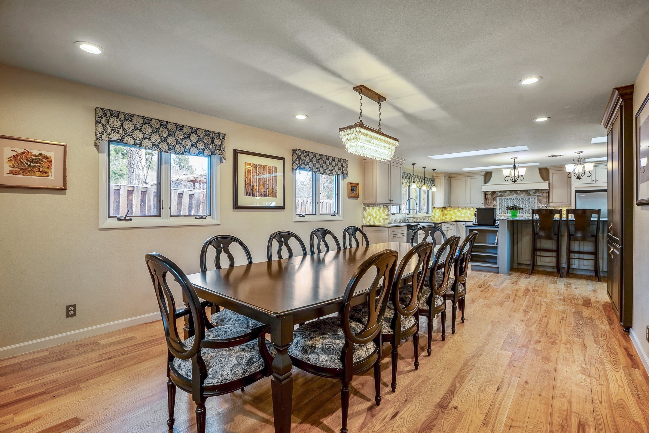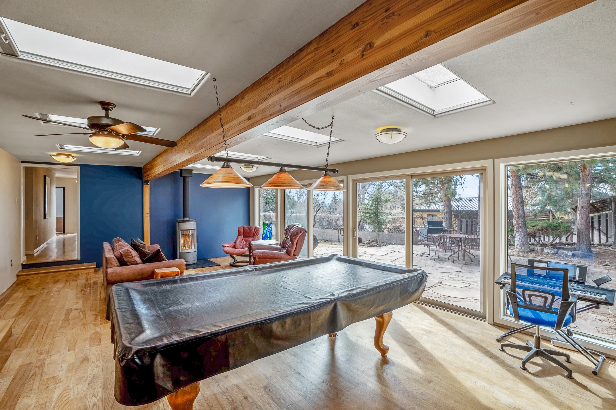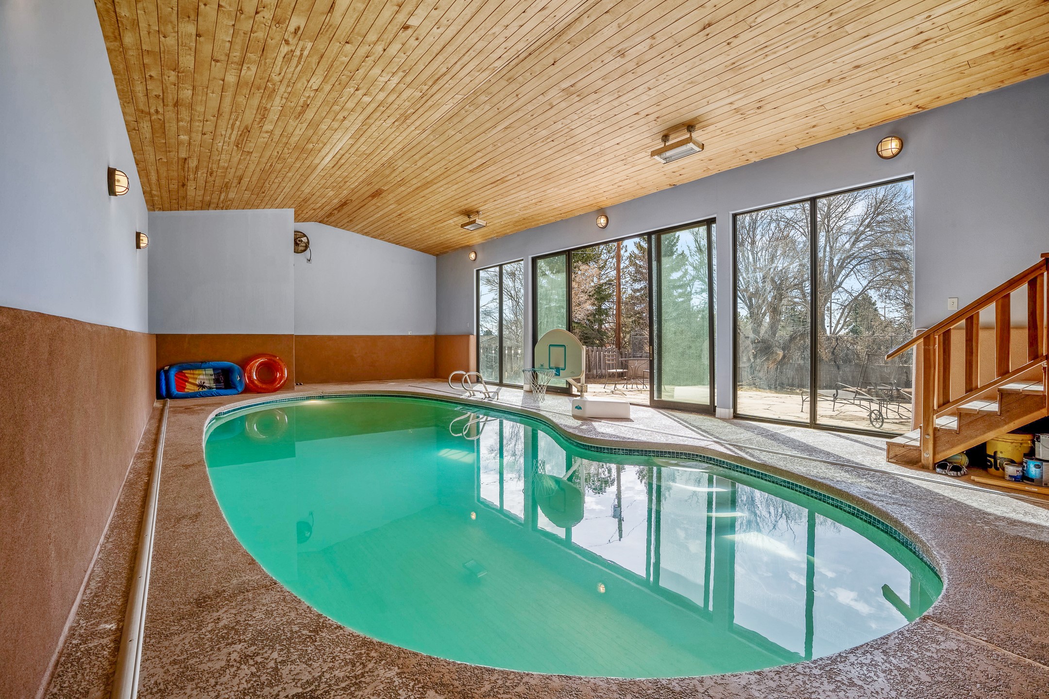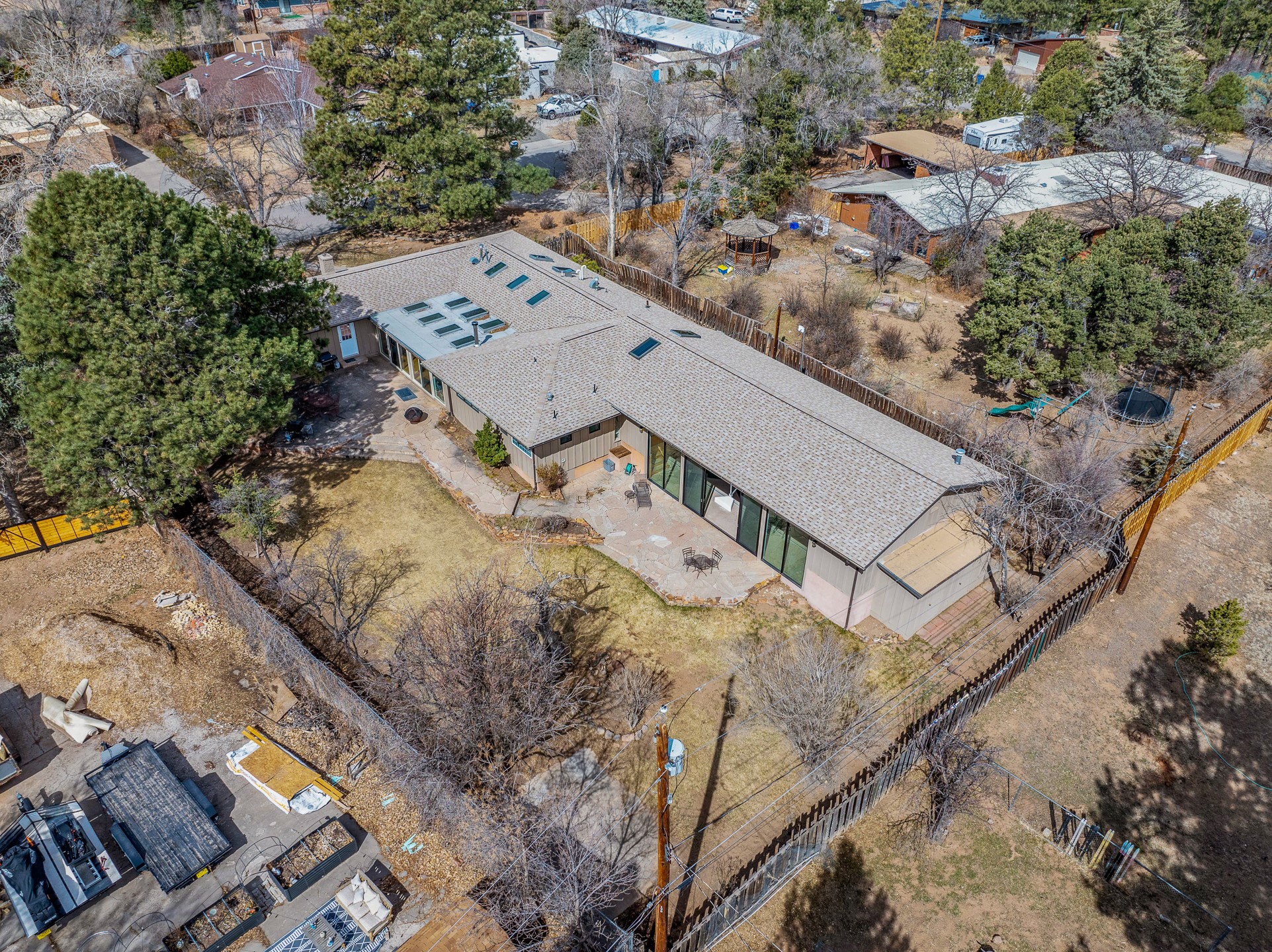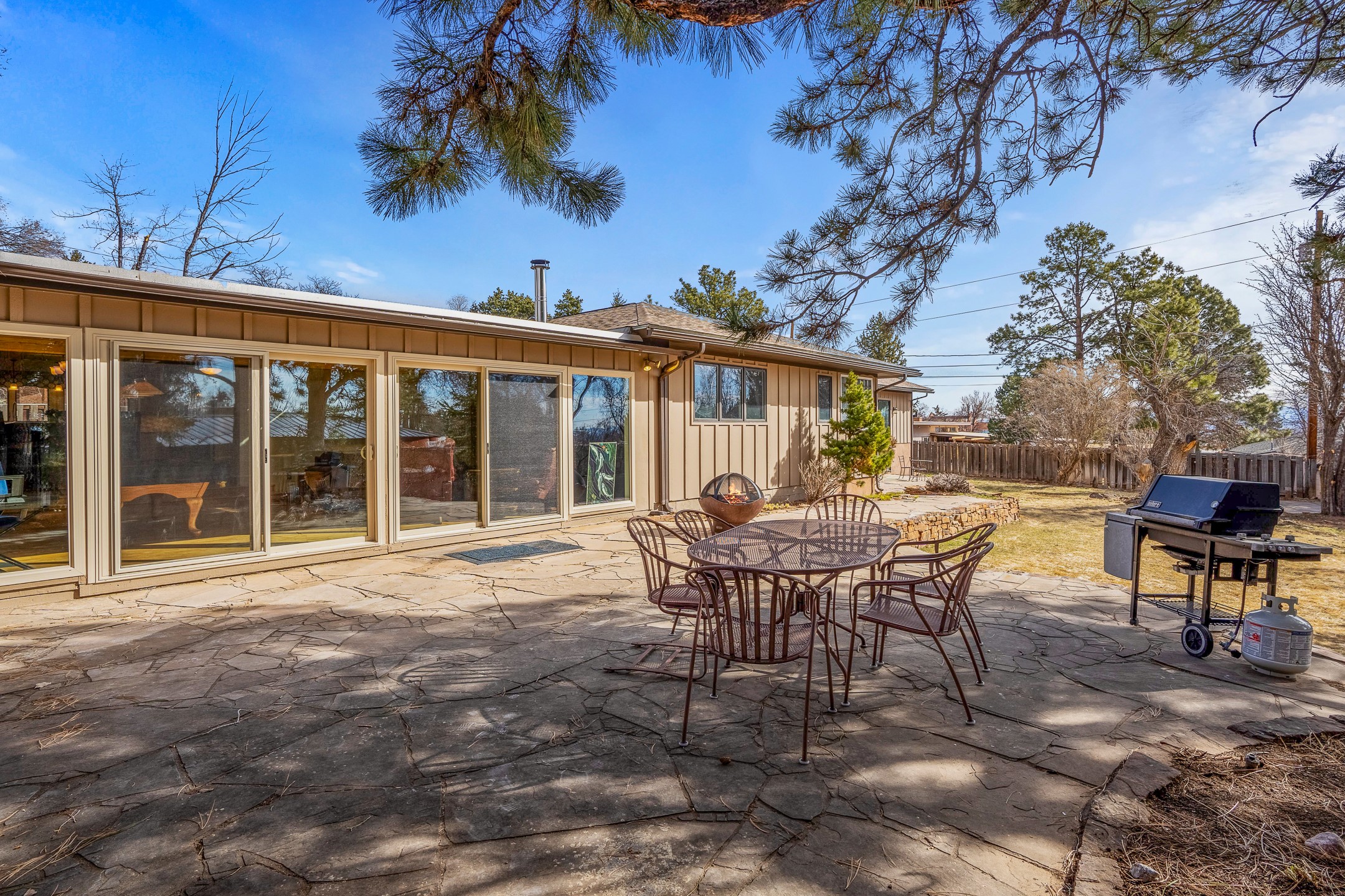Updated Barranca Mesa Gem with Indoor Pool, Large 0.39 Acre Lot, 4 Bedrooms, Gourmet French Kitchen, Open Floor Plan, Game Room, Flagstone Patio with Views, and More! Welcome to 126 Andanada! This ranch-style home is located amongst the pines on a large 0.39 acre lot on Barranca Mesa, features a rare indoor pool, and is perfect for entertaining guests and enjoying life! As you enter, you are greeted by wood floors, natural light, and an open floor plan. To the left awaits a spacious dining room easily accommodates a ten-seat table and flows into the kitchen, making holiday meals a breeze. The custom kitchen is reminiscent of a Parisian holiday and serves as the hub of this home. It features a large L-shaped island with barstool seating for six, a built-in refrigerator, a high-end Wolf gas range, double ovens, a pedal-operated sink faucet, and four skylights for great lighting. The white cabinets provide ample storage and there is counter space for hosting and cooking in harmony! The living room features a stylish wood stove and provides access to a large flagstone patio in the backyard, with great views of the Sangre de Cristo Mountains. A second living area can serve as a game room or a home office, includes a brick fireplace to keep you warm on those cool evenings. The bedroom wing features three guest bedrooms, a full bathroom, and a spacious laundry room. The primary suite includes an en-suite bathroom that features a quartz-topped double vanity and walk-in shower. The indoor pool is housed in the eastern part of the home in a separate room with lofted ceilings and a wall of south-facing windows. The pool house opens to the landscaped back yard to maximize your summer fun! This home is truly an entertainer's dream! Schedule your showing today before this one is gone!