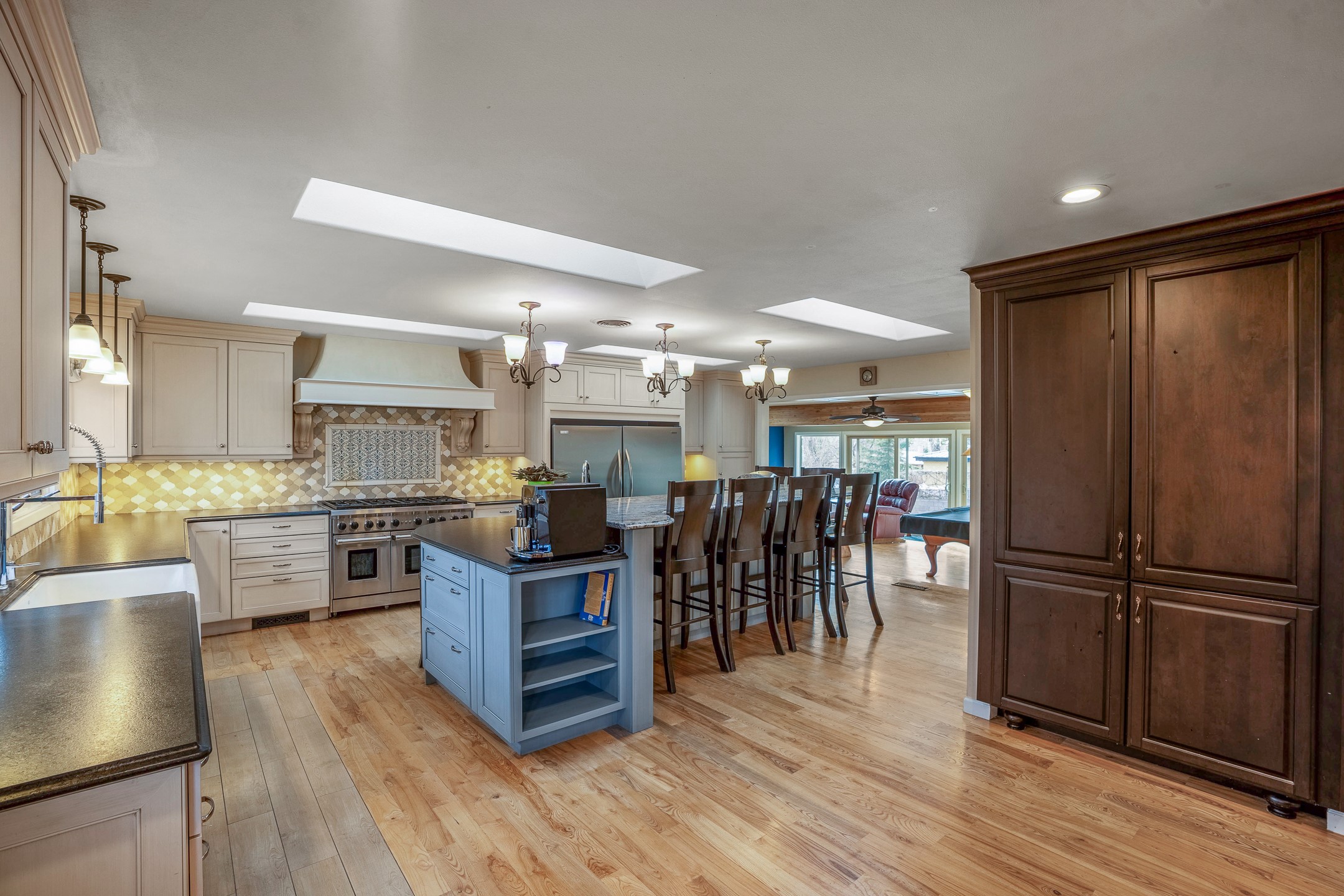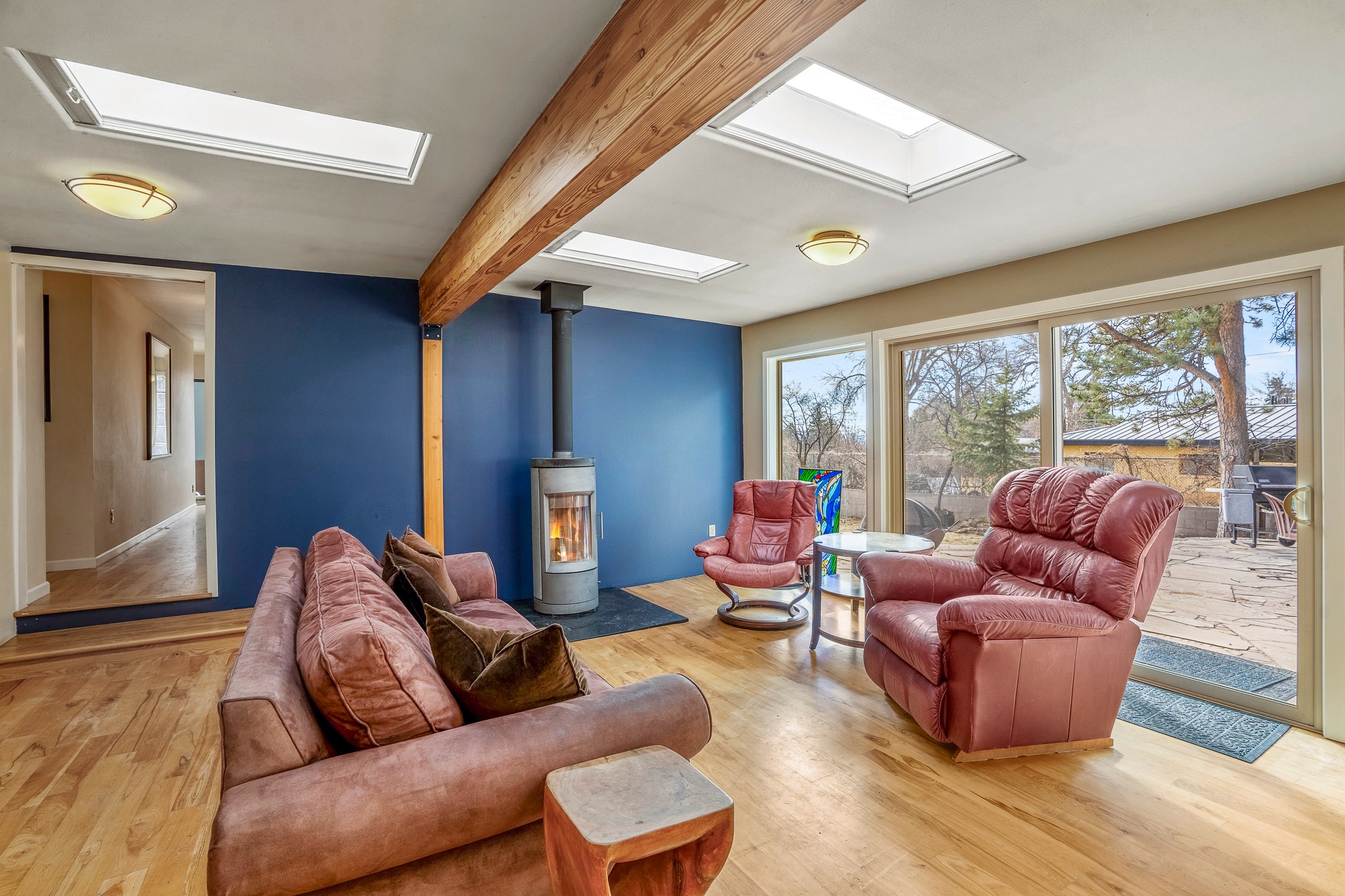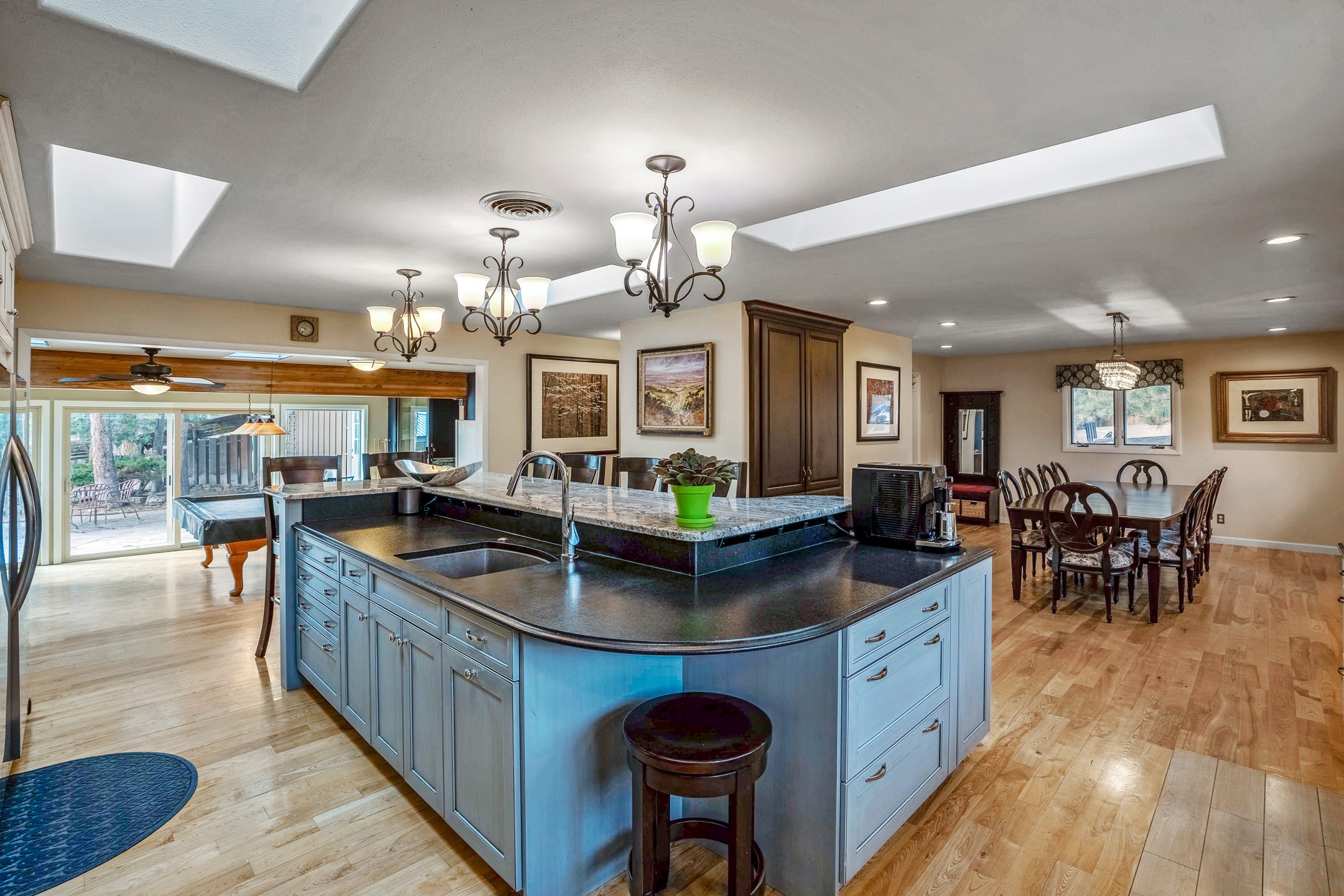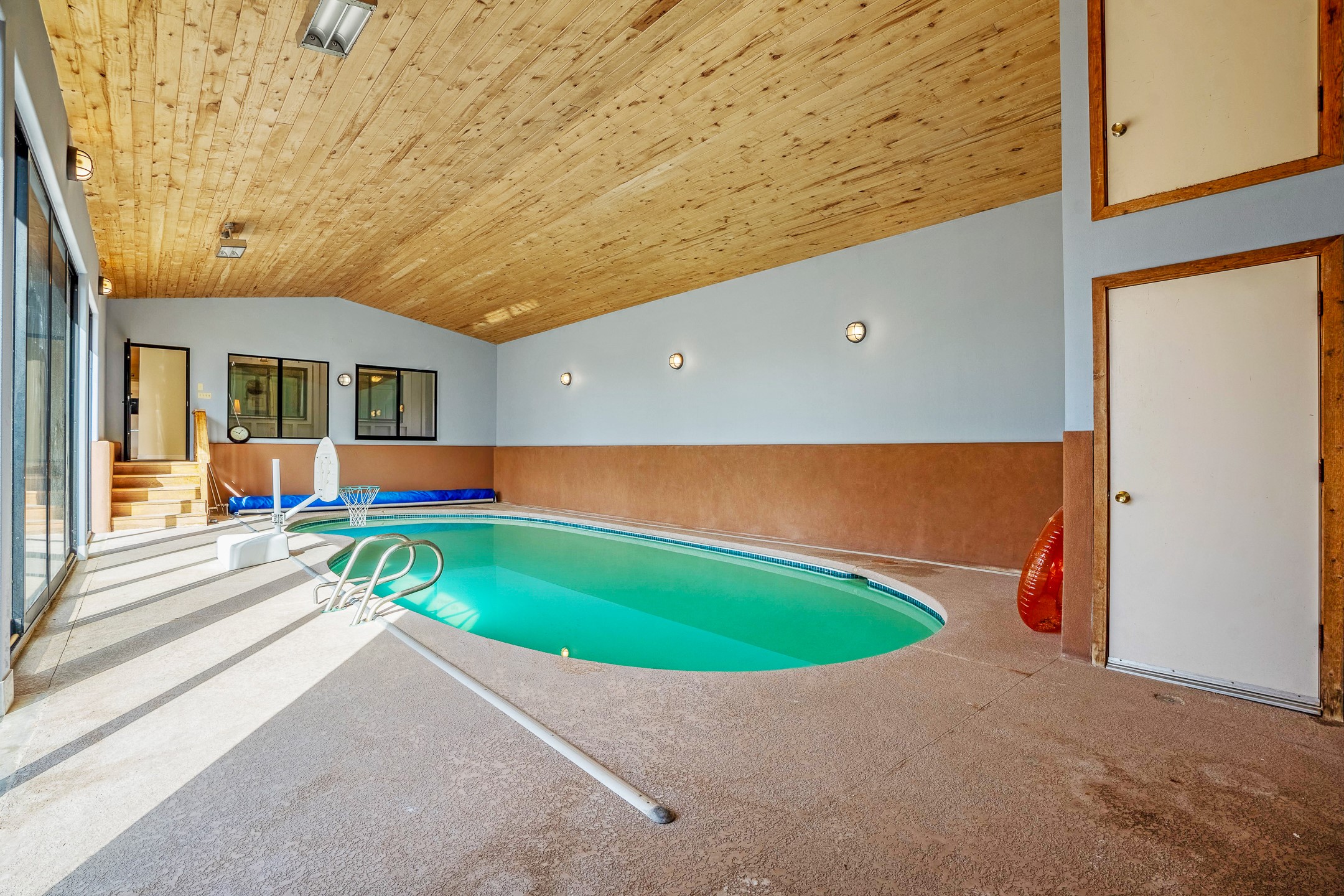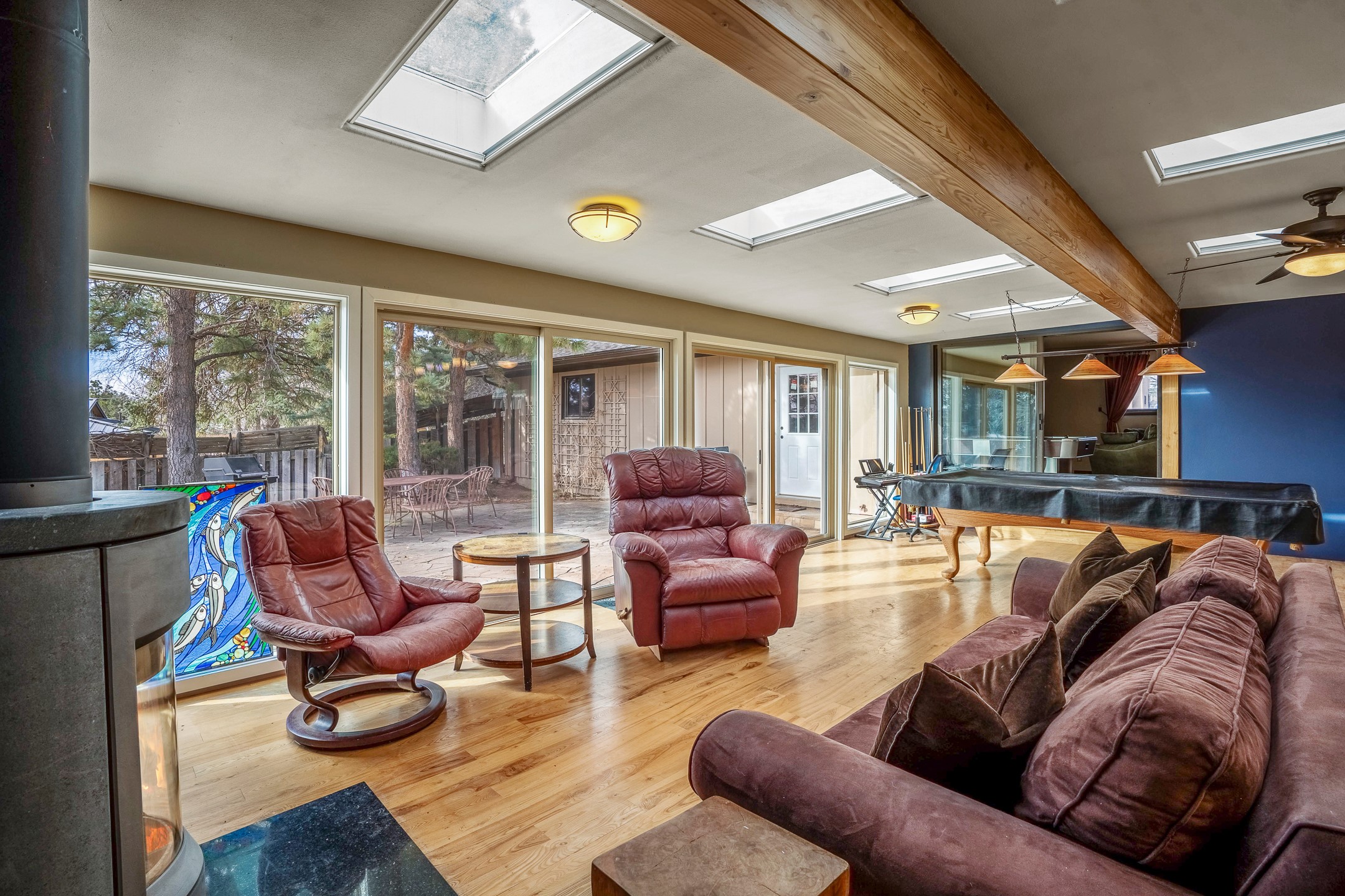 Updated Barranca Mesa Gem with Indoor Pool, Large 0.39 Acre Lot, 4 Bedrooms, Gourmet French Kitchen, Open Floor Plan, Game Room, Flagstone Patio with Views, and More! Welcome to 126 Andanada! This ranch-style home is located amongst the pines on a large 0.39 acre lot on Barranca Mesa, features a rare indoor pool, and is perfect for entertaining guests and enjoying life! As you enter, you are greeted by wood floors, natural light, and an open floor plan. To the left awaits a spacious dining room easily accommodates a ten-seat table and flows into the kitchen, making holiday meals a breeze. The custom kitchen is reminiscent of a Parisian holiday and serves as the hub of this home. It features a large L-shaped island with barstool seating for six, a built-in refrigerator, a high-end Wolf gas range, double ovens, a pedal-operated sink faucet, and four skylights for great lighting. The white cabinets provide ample storage and there is counter space for hosting and cooking in harmony! The living room features a stylish wood stove and provides access to a large flagstone patio in the backyard, with great views of the Sangre de Cristo Mountains. A second living area can serve as a game room or a home office, includes a brick fireplace to keep you warm on those cool evenings. The bedroom wing features three guest bedrooms, a full bathroom, and a spacious laundry room. The primary suite includes an en-suite bathroom that features a quartz-topped double vanity and walk-in shower. The indoor pool is housed in the eastern part of the home in a separate room with lofted ceilings and a wall of south-facing windows. The pool house opens to the landscaped back yard to maximize your summer fun! This home is truly an entertainer's dream! Schedule your showing today before this one is gone!