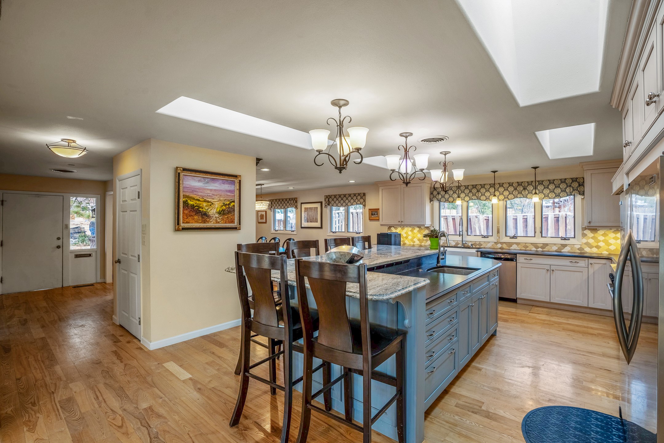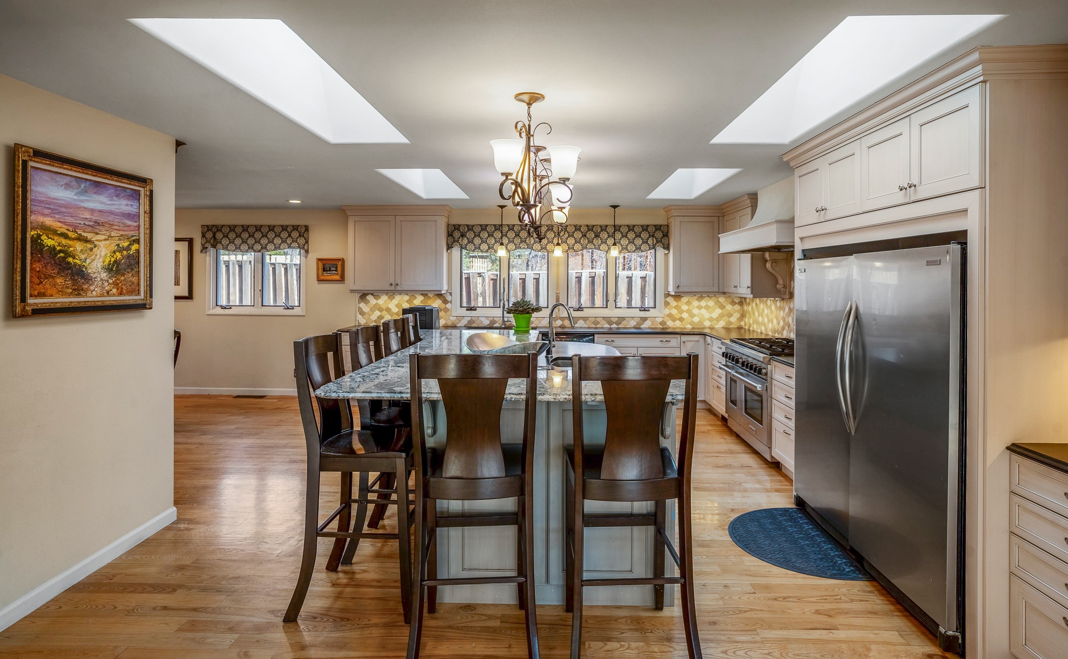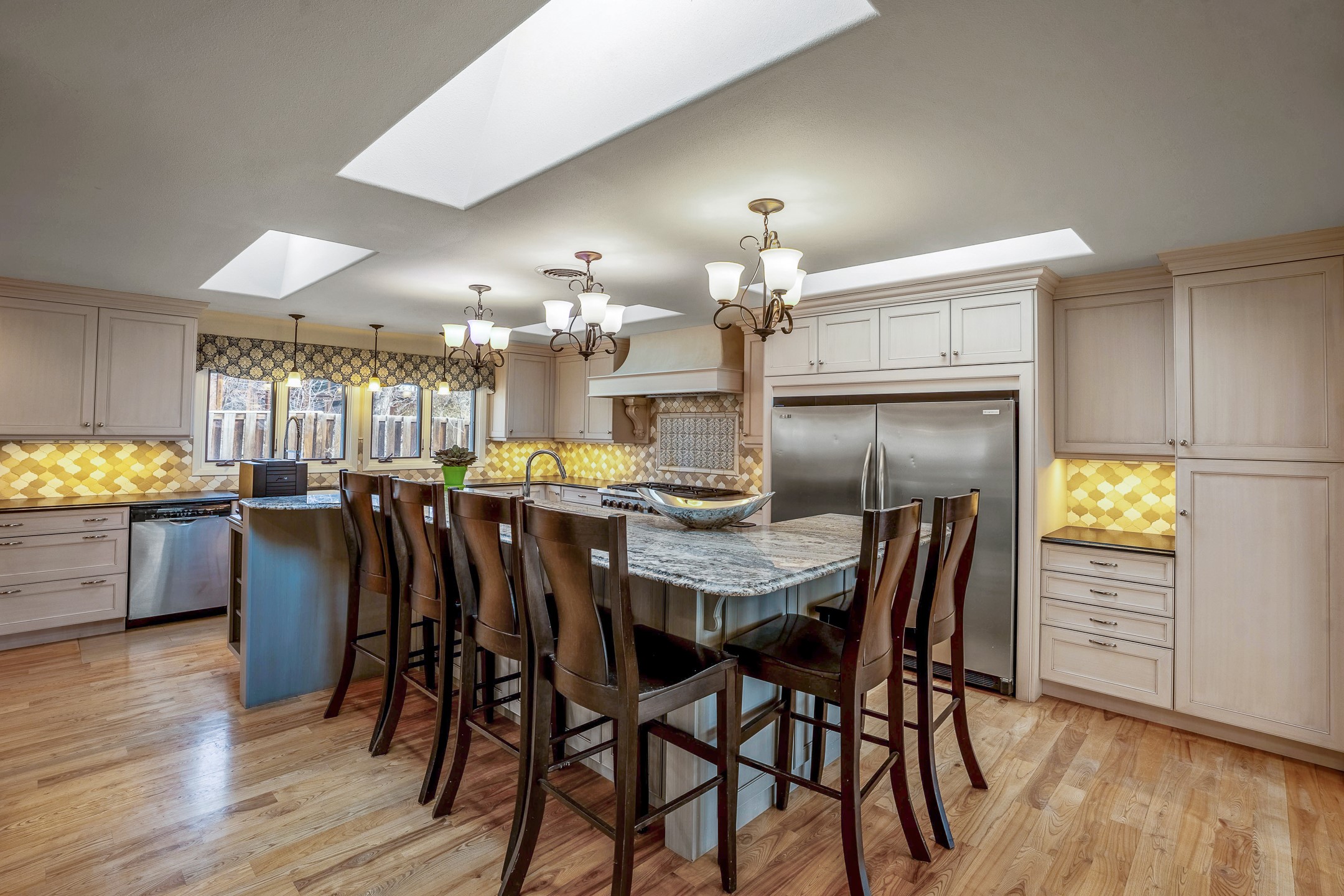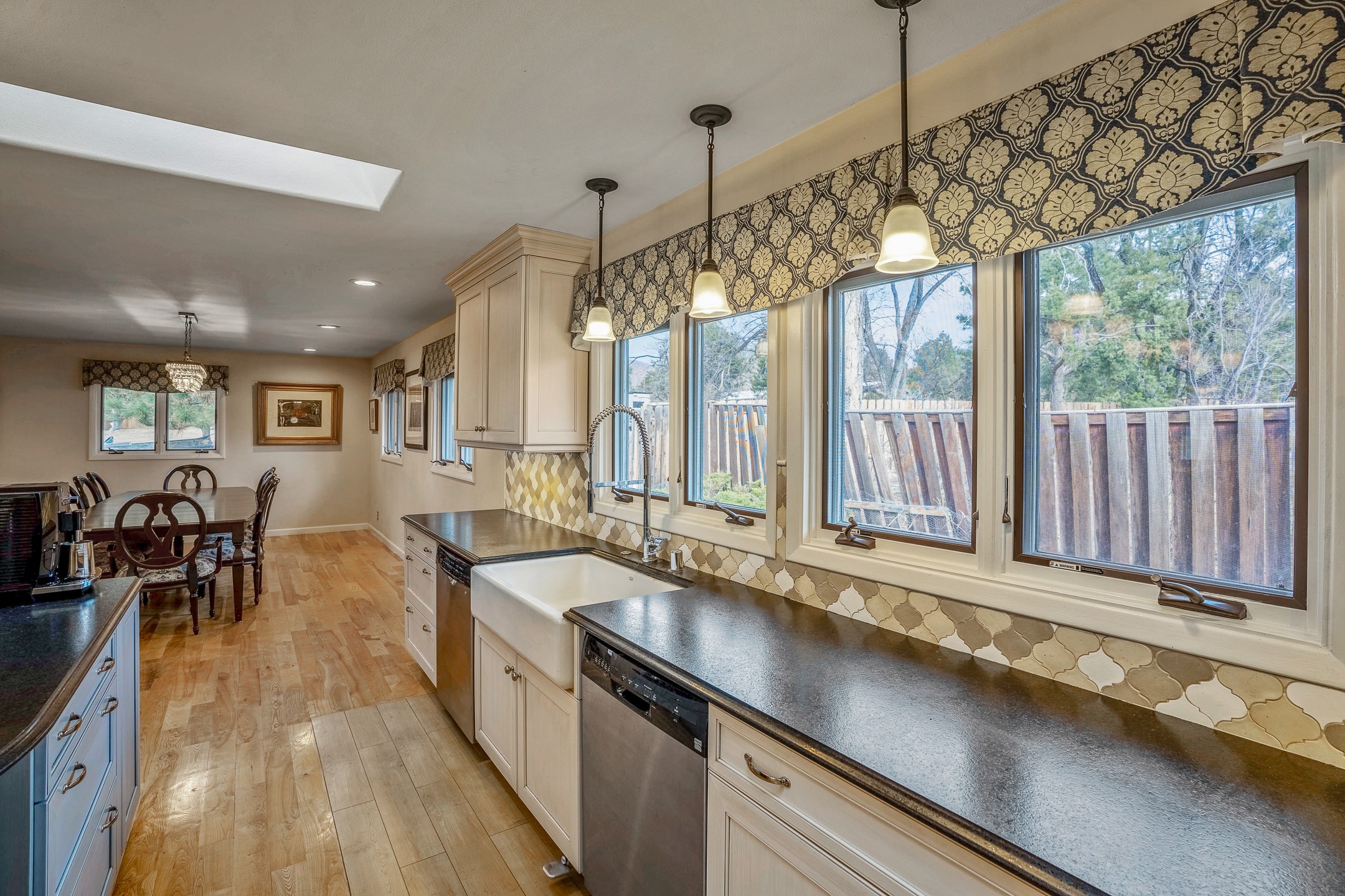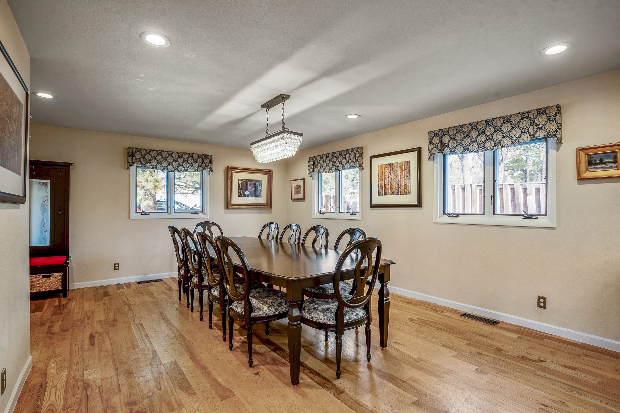 Updated Barranca Mesa Gem with Indoor Pool, Large 0.39 Acre Lot, 4 Bedrooms, Gourmet French Kitchen, Open Floor Plan, Game Room, Flagstone Patio with Views, and More! Welcome to 126 Andanada! This ranch-style home is located amongst the pines on a large 0.39 acre lot on Barranca Mesa, features a rare indoor pool, and is perfect for entertaining guests and enjoying life! As you enter, you are greeted by wood floors, natural light, and an open floor plan. To the left awaits a spacious dining room easily accommodates a ten-seat table and flows into the kitchen, making holiday meals a breeze. The custom kitchen is reminiscent of a Parisian holiday and serves as the hub of this home. It features a large L-shaped island with barstool seating for six, a built-in refrigerator, a high-end Wolf gas range, double ovens, a pedal-operated sink faucet, and four skylights for great lighting. The white cabinets provide ample storage and there is counter space for hosting and cooking in harmony! The living room features a stylish wood stove and provides access to a large flagstone patio in the backyard, with great views of the Sangre de Cristo Mountains. A second living area can serve as a game room or a home office, includes a brick fireplace to keep you warm on those cool evenings. The bedroom wing features three guest bedrooms, a full bathroom, and a spacious laundry room. The primary suite includes an en-suite bathroom that features a quartz-topped double vanity and walk-in shower. The indoor pool is housed in the eastern part of the home in a separate room with lofted ceilings and a wall of south-facing windows. The pool house opens to the landscaped back yard to maximize your summer fun! This home is truly an entertainer's dream! Schedule your showing today before this one is gone!