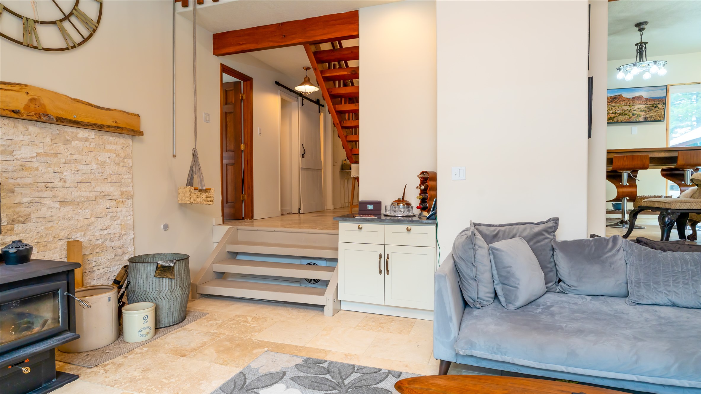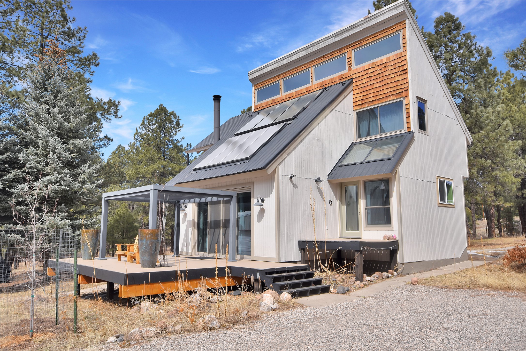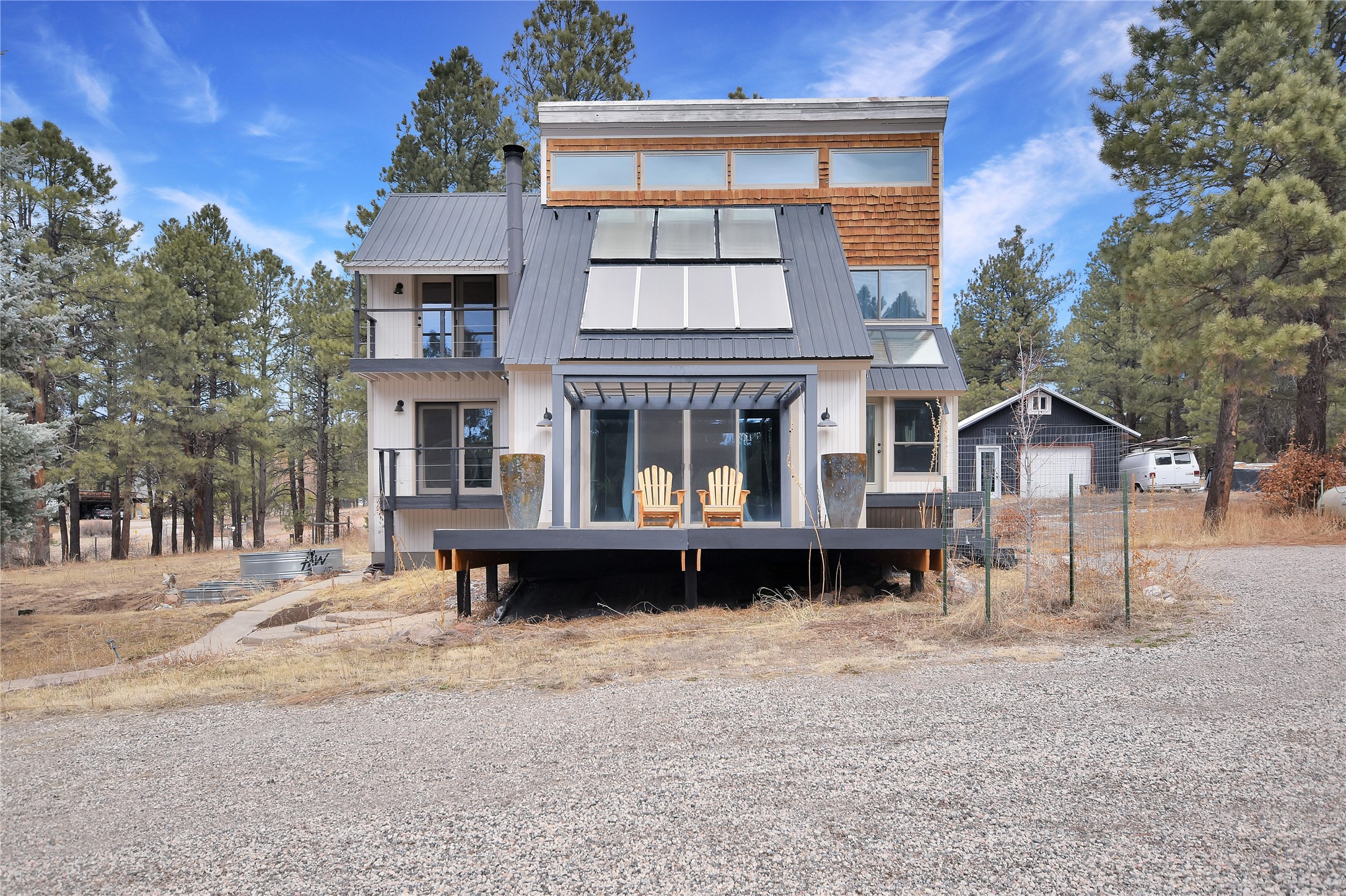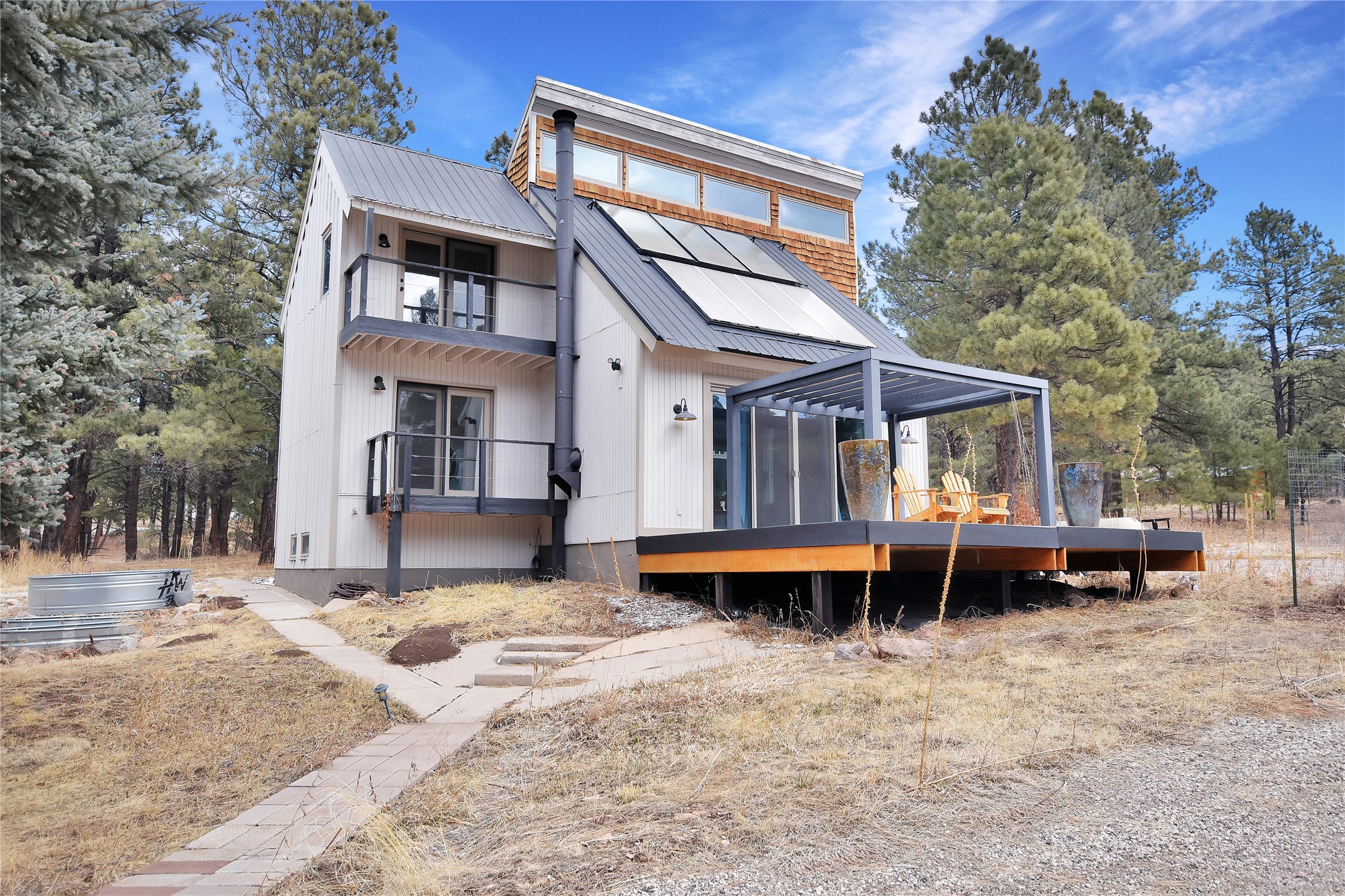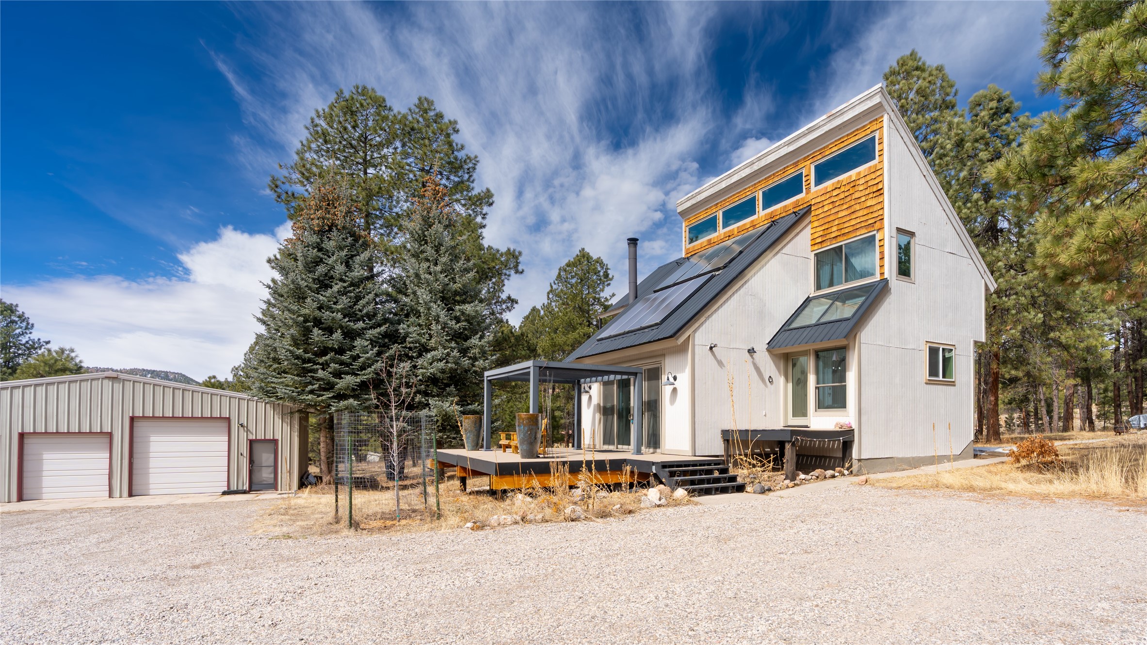 Bright, Beautiful and IMMACULATE! This one has most everything on your list! 1750 sq. ft. of pure, blissful, homey, and modern living space! Passive solar home with an open flow living space that includes 3 bedrooms and 2 baths, a lovely living area with woodstove and sweet modern kitchen with updated appliances and cabinetry. Anderson windows and doors, updated lighting, reverse osmosis water filtration, water softener, solar hot water heater, roomy basement that includes a space for crafting with ample storage...the list just goes on and on!! Front and back decks with balconies off two bedrooms for enjoying the outdoors every-which-way!1200 sq. ft. spacious 3 bay shop with an RV bay perfect for working on all your projects and storing all your toys and cars! A separate 500 square foot garage with work shop area that could easily be turned into a she-shed! Step out the front yard into the Santa Fe National Forest! A few steps further, you're on the western edge of the Valles Caldera National Preserve. Tucked in a nice neighborhood on a 1-acre lot off a county-maintained road. Reasonable year-round commute to Los Alamos. You're gonna wanna see this one SOON!