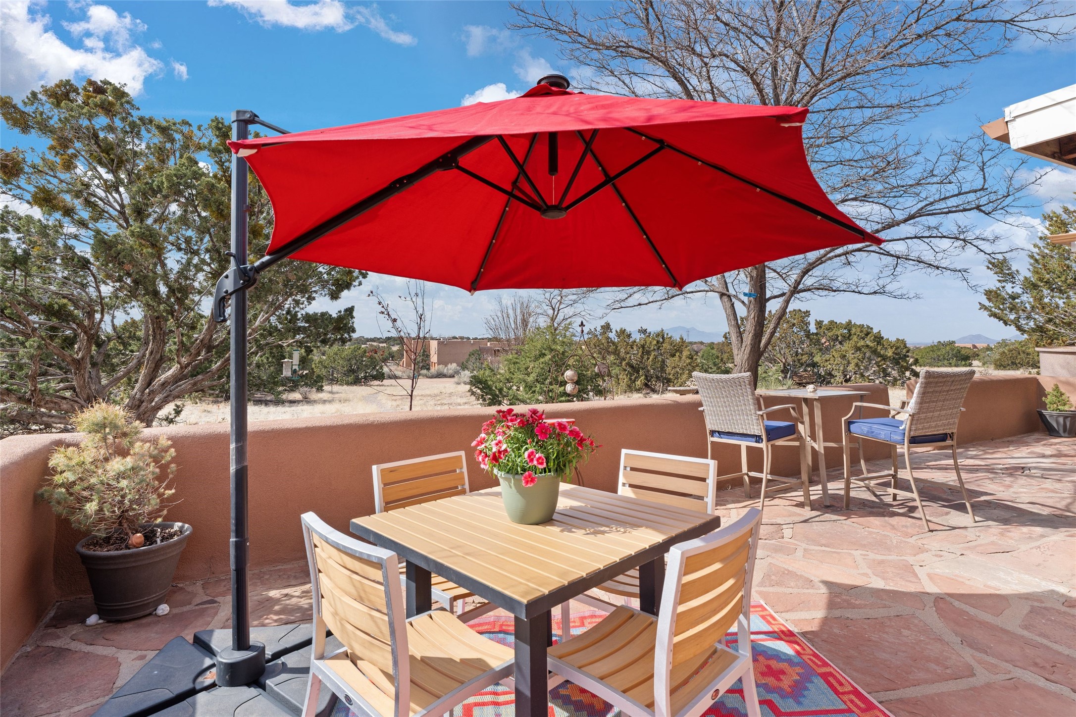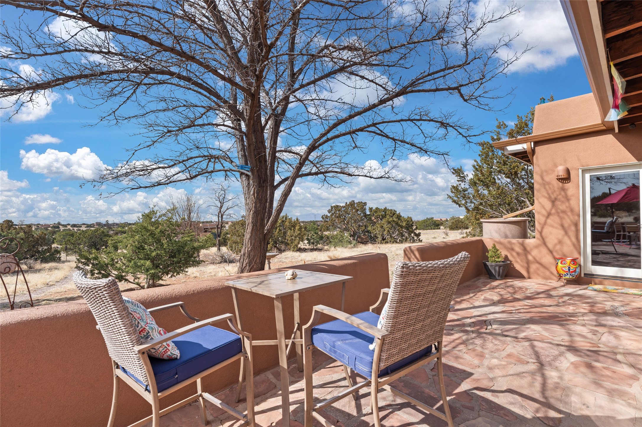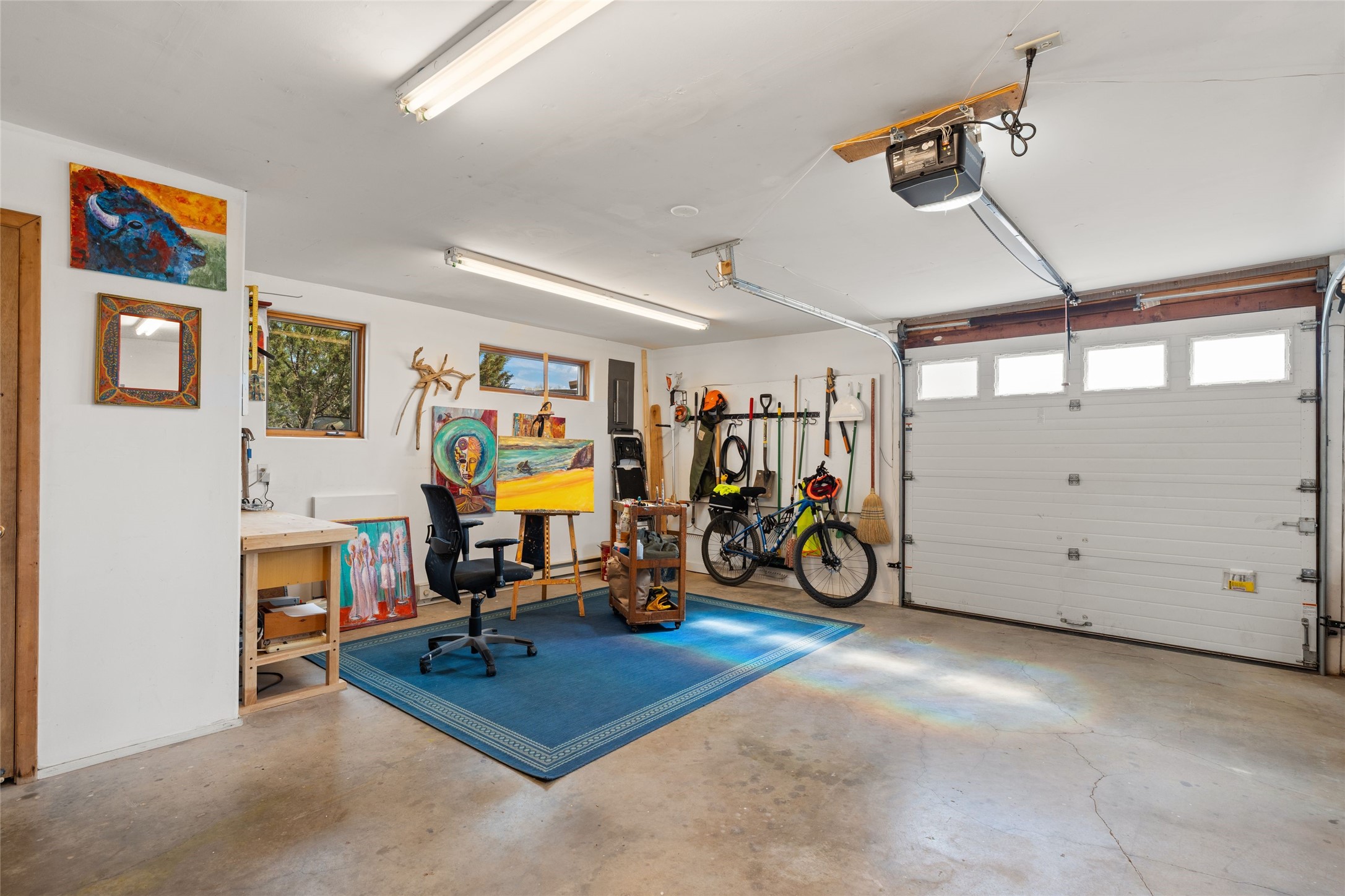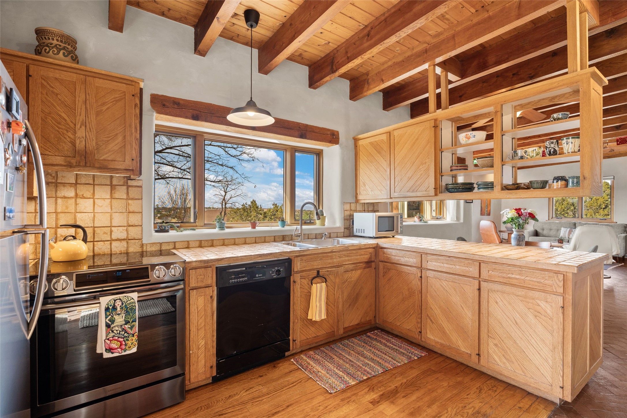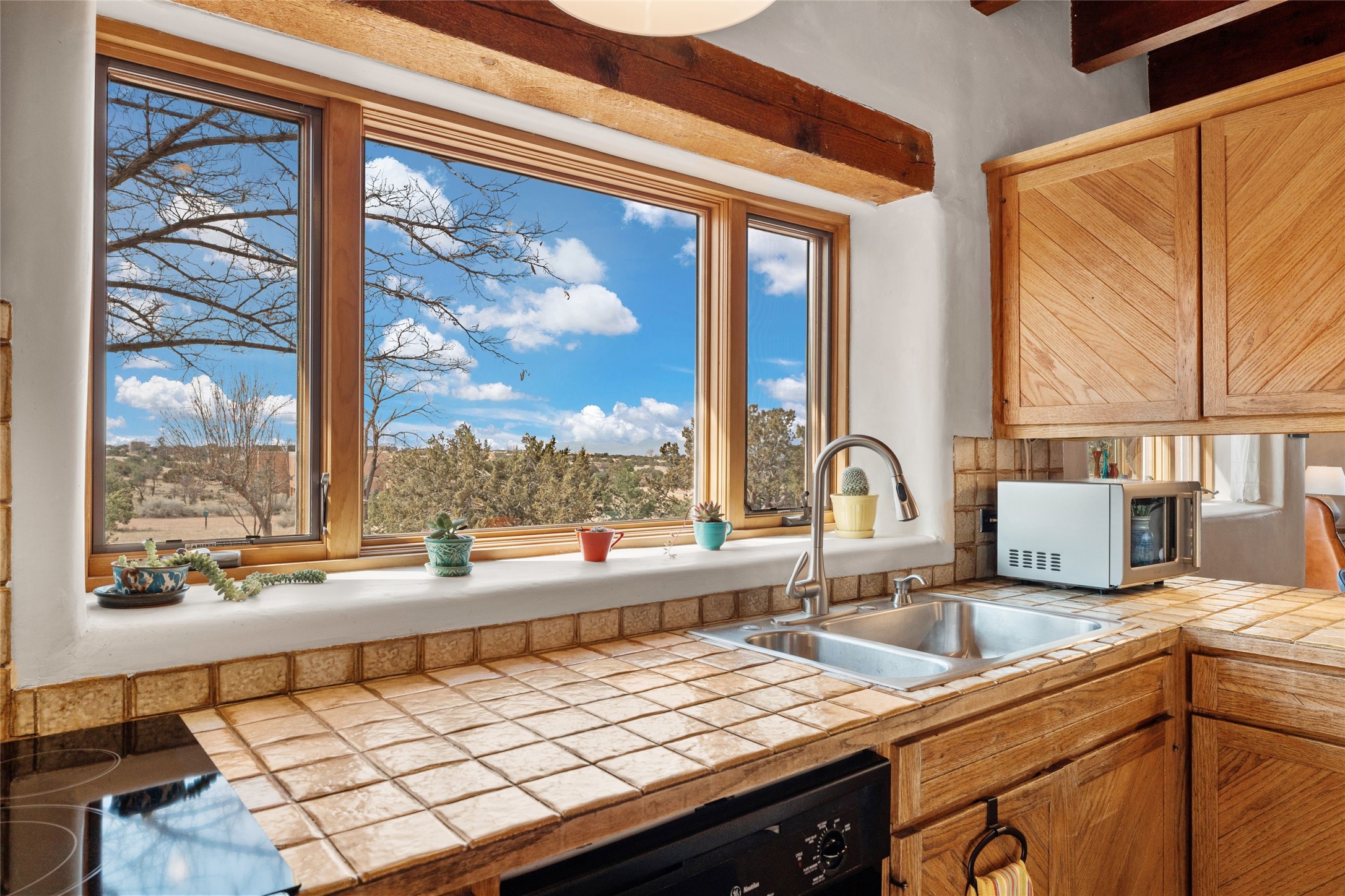 Happy, light and bright adobe designed by award-winning architect Beverley Spears and built by Rational Alternatives. This darling traditional passive solar home has trombe walls, deep window sills and charm galore! Bedrooms have vaulted, planked ceilings with clerestory windows. Mostly brick floors with some hardwood. Oversized heated one-car garage has studio/workshop space and a generous closet for storage. Three splits provide heating and air conditioning. Sited high on a cul-de-sac to maximize the wonderful mountain views. Two steps up to bedrooms. Walled front courtyard and generous and fully fenced backyard. NO CARPET. Radon mitigation in place. Super sweet and ready to go!