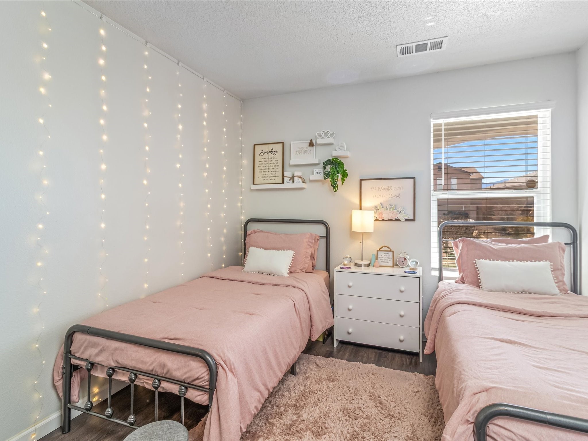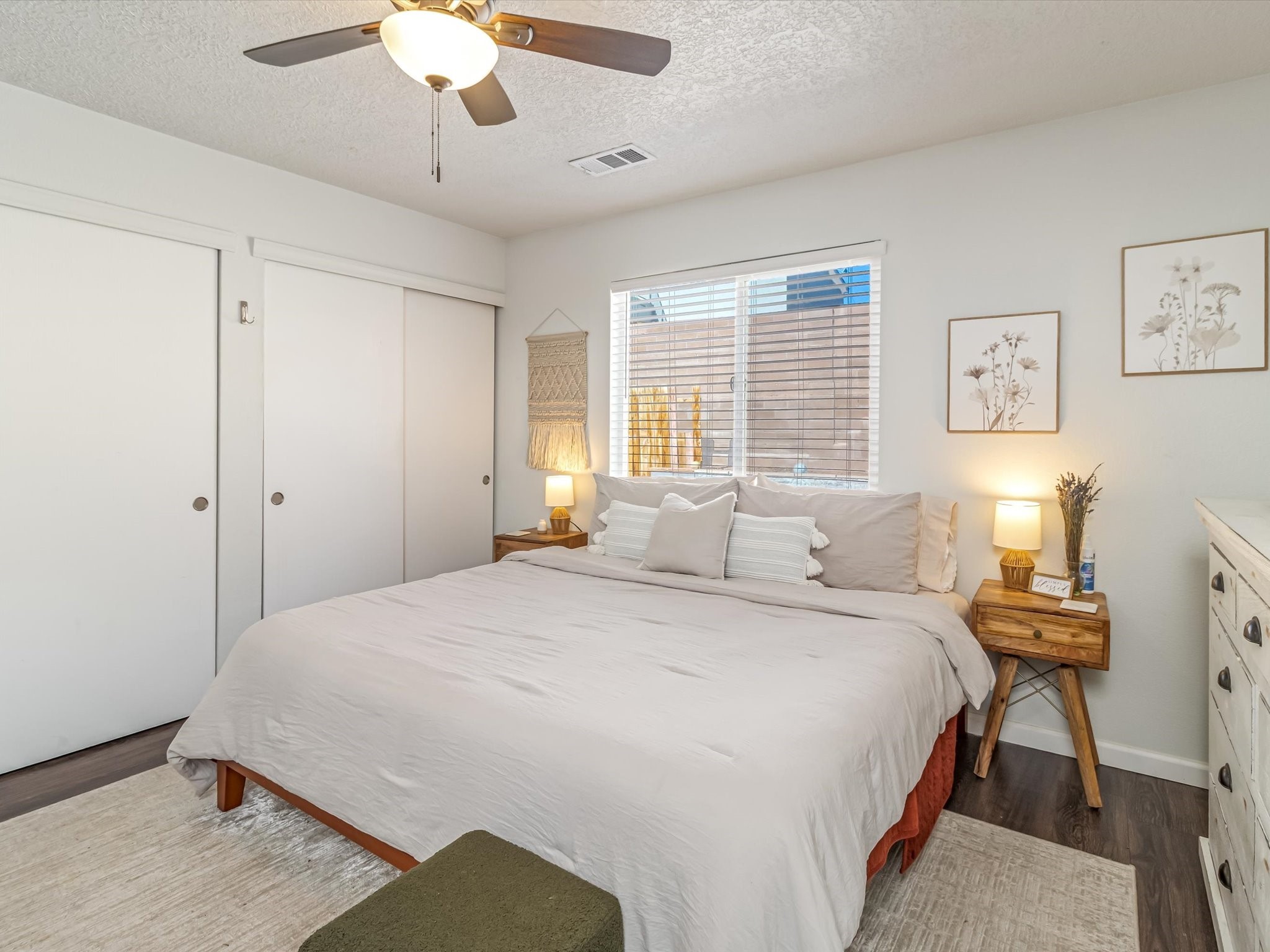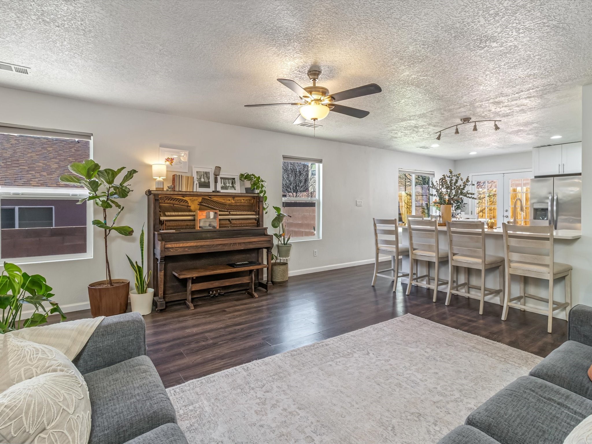 Charming 3-bedroom, 2-bathroom home located in the peaceful Enchanted Hills neighborhood of Rio Rancho. Perfectly situated for convenient commuting with easy access to I-25, offering a quick drive to both Santa Fe and Albuquerque. Recent upgrades in 2021 include a brand-new water heater, AC and heating units, and a completely remodeled roof. Featuring stylish laminate and tile flooring throughout, this home offers both comfort and modern appeal -- all at an unbeatable price. Don't miss this fantastic opportunity!