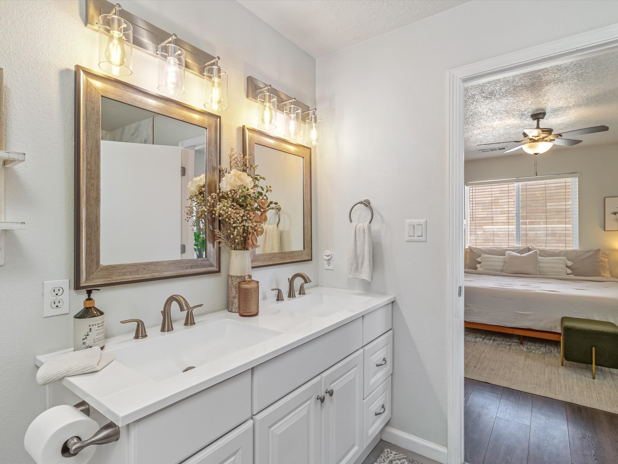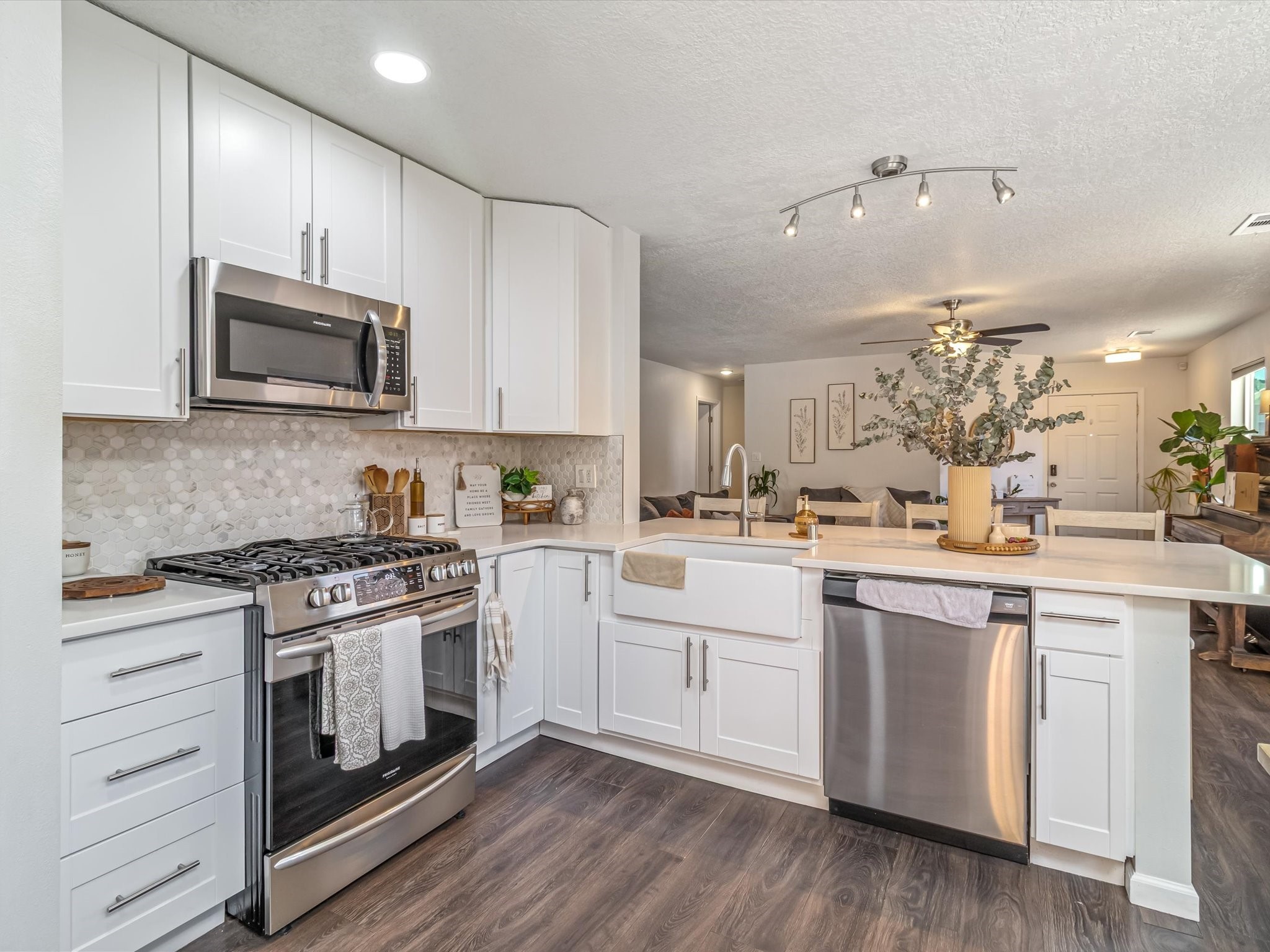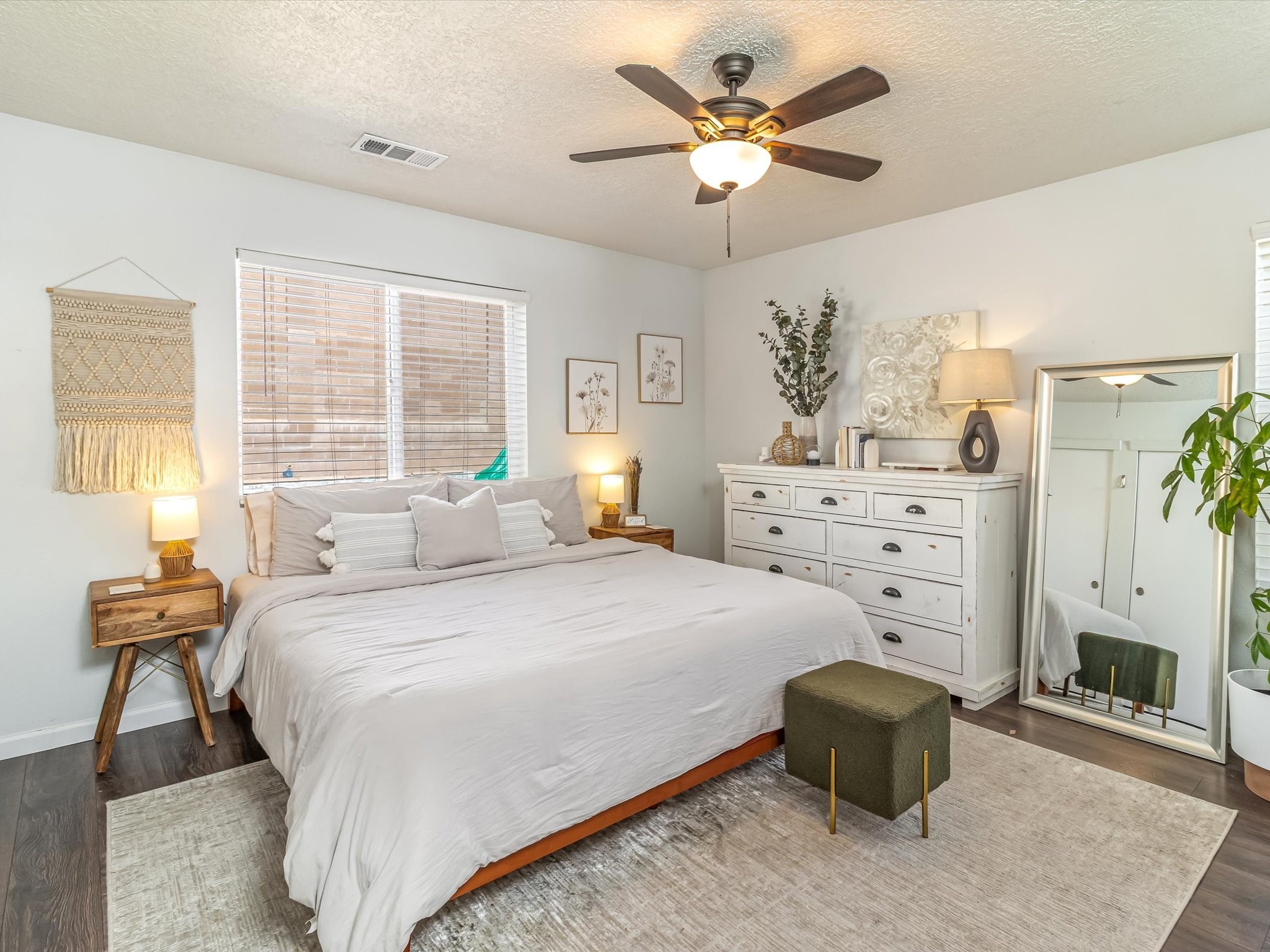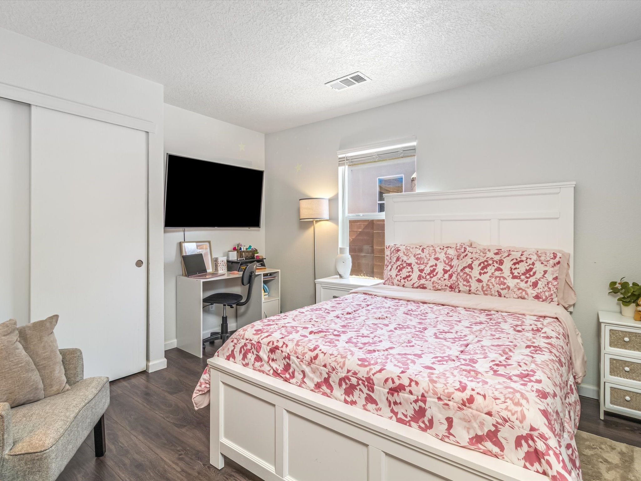Charming 3-bedroom, 2-bathroom home located in the peaceful Enchanted Hills neighborhood of Rio Rancho. Perfectly situated for convenient commuting with easy access to I-25, offering a quick drive to both Santa Fe and Albuquerque. Recent upgrades in 2021 include a brand-new water heater, AC and heating units, and a completely remodeled roof. Featuring stylish laminate and tile flooring throughout, this home offers both comfort and modern appeal -- all at an unbeatable price. Don't miss this fantastic opportunity!