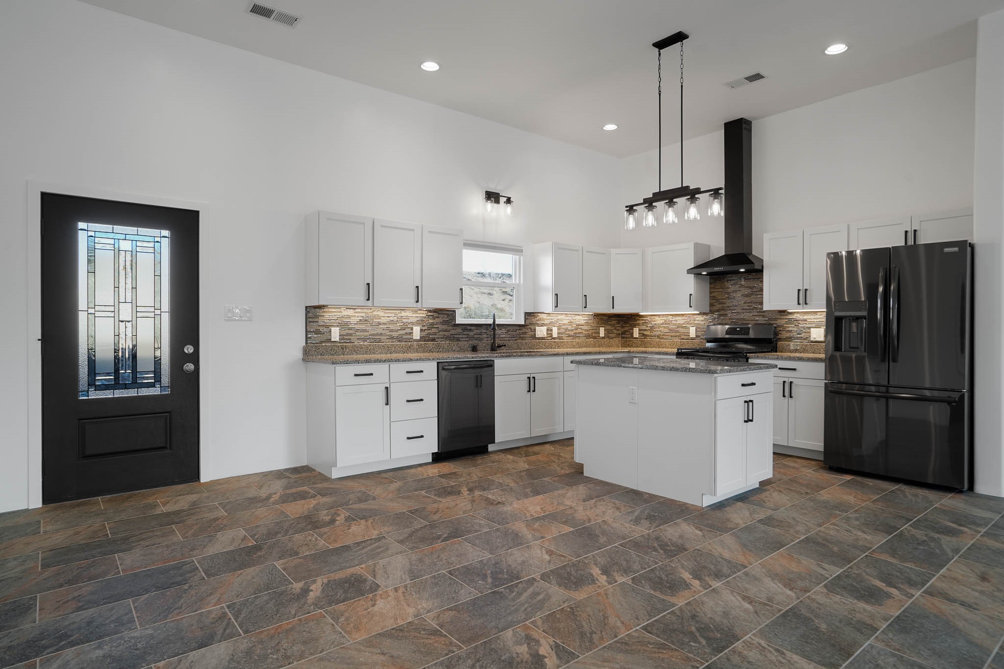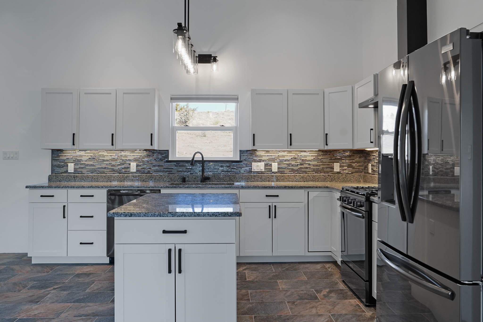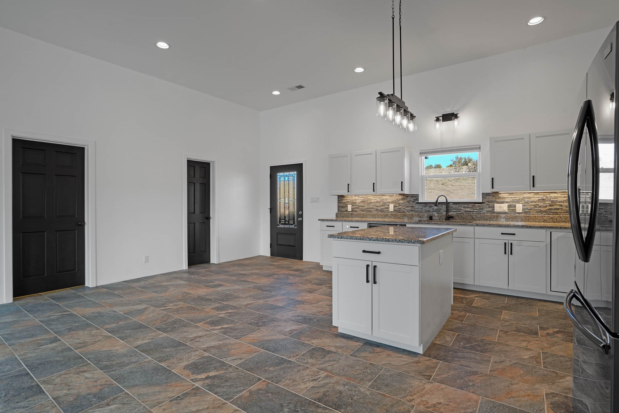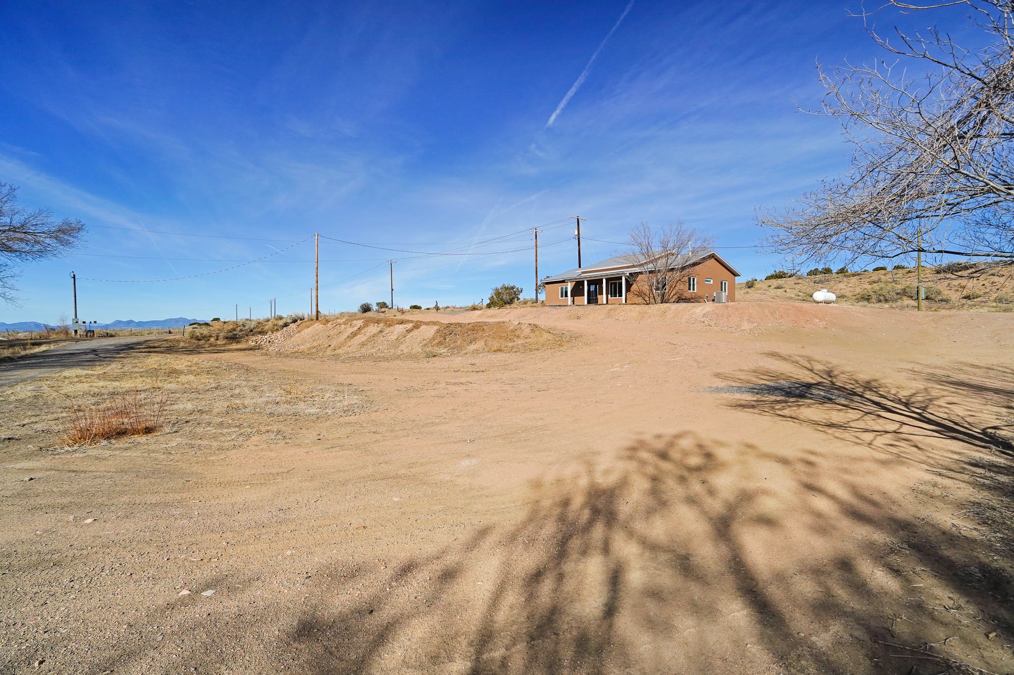 Come see this house, NOW BELOW APPRAISAL! Charming new construction home in Lamy, NM, set on 1.3 acres with 3 bedrooms and 2 bathrooms. This thoughtfully designed home boasts granite countertops tile floors throughout (no steps or carpet), and a pitched Propanel roof. The stained-glass front door with matching sidelights adds a beautiful touch of character. The property is horse-friendly, offering ample space for outdoor activities, gardening, or simply enjoying the serene surroundings. You also have the option of building a garage, horse facilities or studio on the property. With modern finishes and a peaceful setting, this home is the perfect retreat!