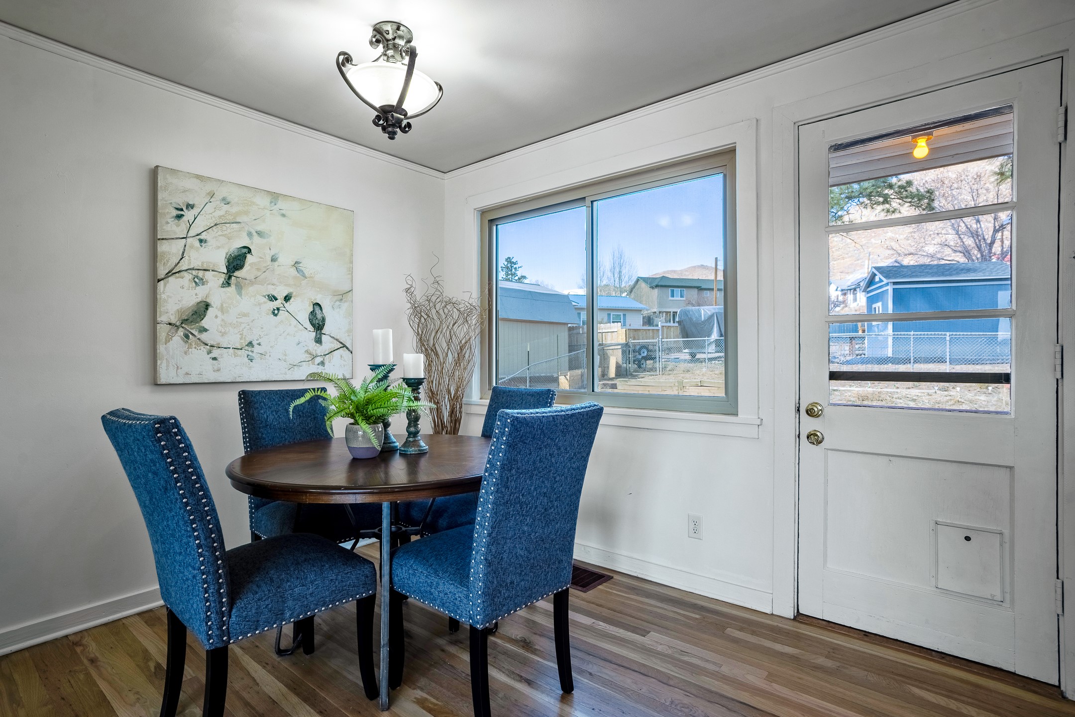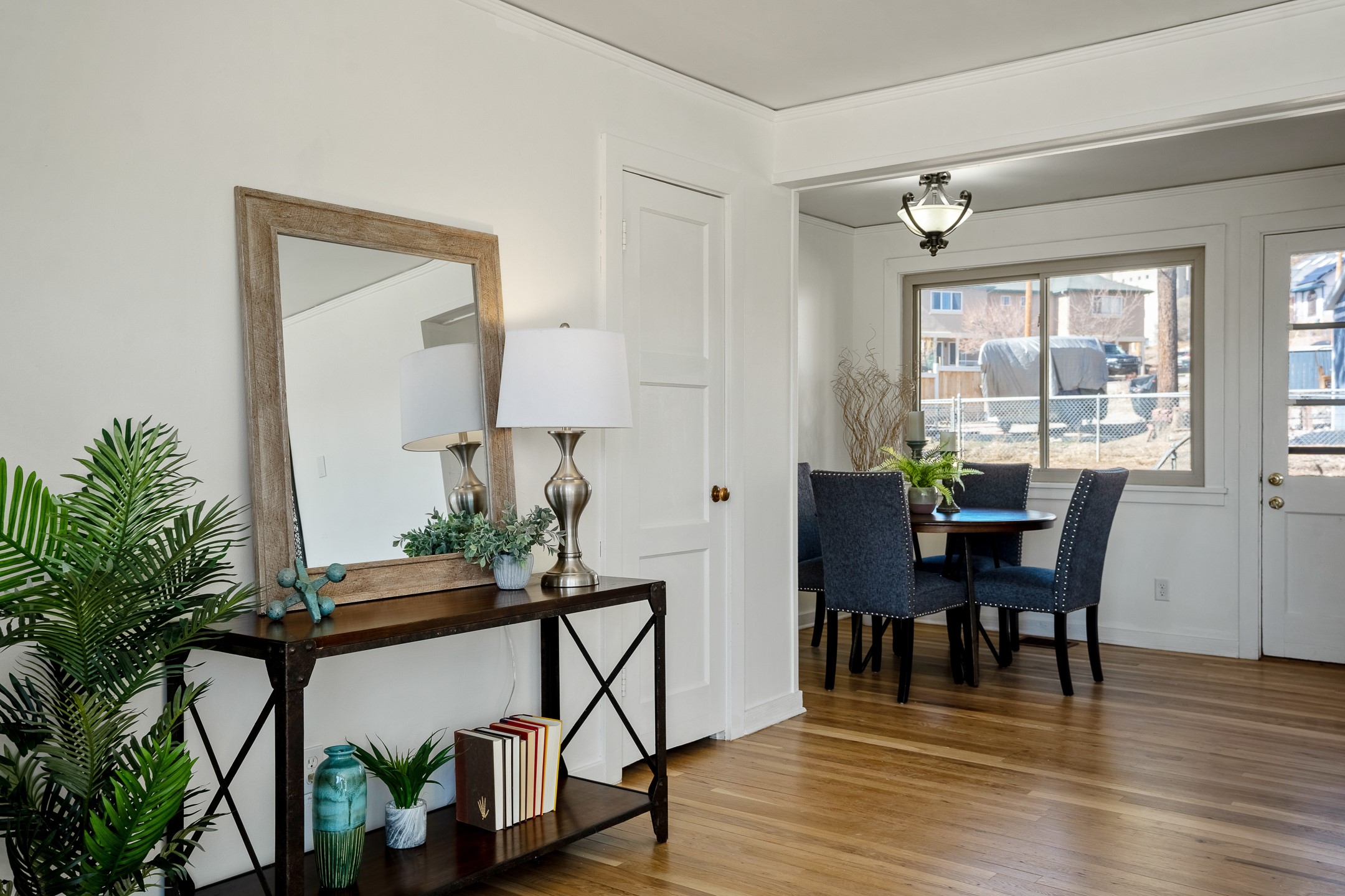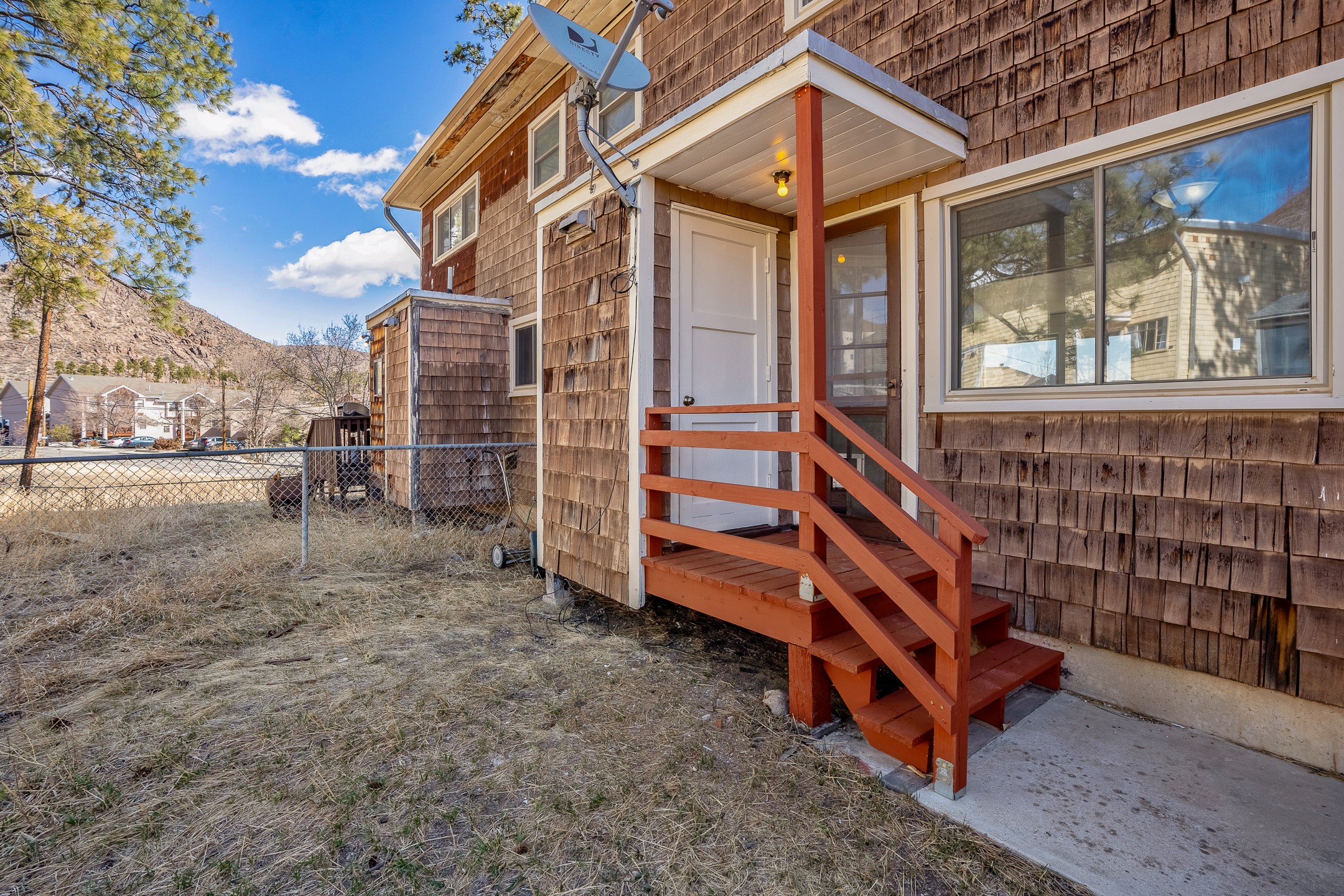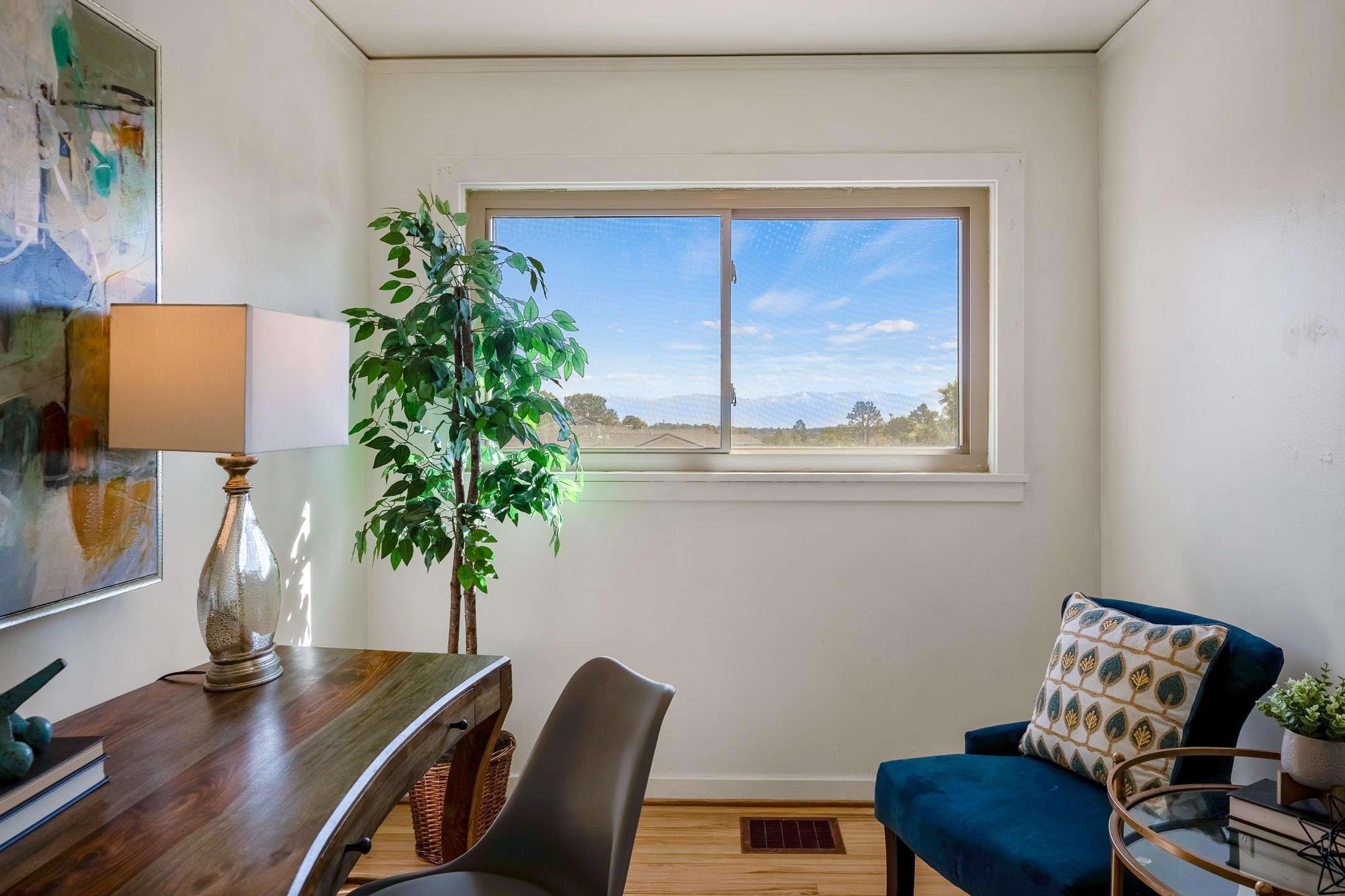 Affordable Quad, 3 Bedrooms, Fenced Yard, Refinished Hardwood Floors, Fresh Paint, Abundant Natural Light, Great Views of the Sangres, and More! Welcome to 2439-C 46th Street! As you enter this property, you are greeted by a wall of east-facing windows and a comfortable living room with refinished hardwood floors. The dining room features built-in cabinets and a west-facing window that provides great sunset views. This unit has a galley-style kitchen with white cabinets, a gas stove, and views of the backyard. Upstairs, you'll find three bedrooms and a full bathroom. Each spacious bedroom features large windows, refinished floors, and a closet, and both east-facing bedrooms have great views of the Sangre de Cristos to enjoy the sunrise. The bathroom has a new vanity and toilet and updated shower tile. Outside, you will find a fully-fenced backyard with a tiered landscape ready for your four-legged friends. Schedule your showing today to see all that this condo has to offer!
