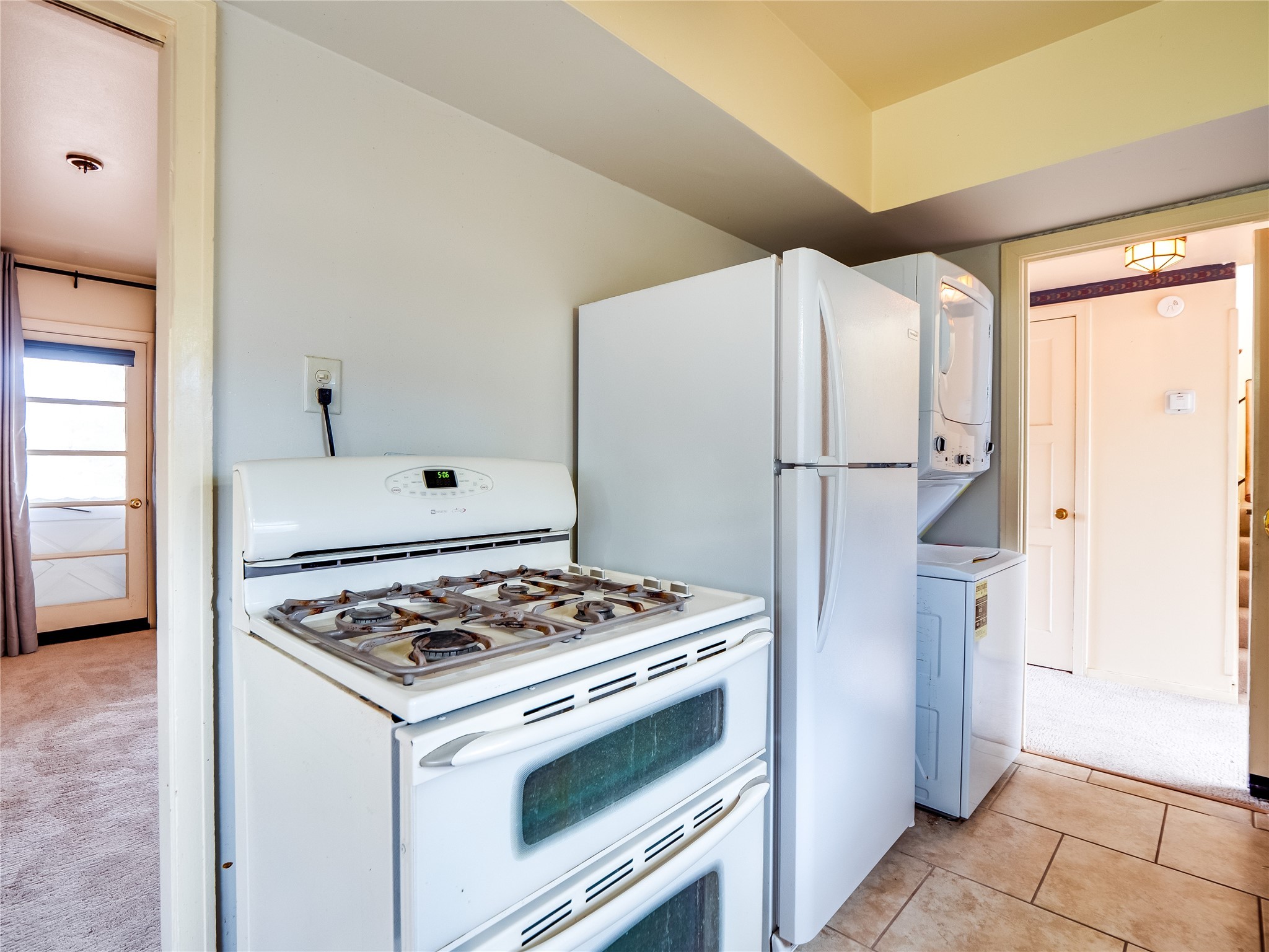 Located in a desirable West Area-East neighborhood, this charming two-story condo offers a perfect blend of comfort, and natural beauty. From the street-level designated parking spot, descend the stairs to a spacious front grass lawn, mature trees and shrubs, creating a welcoming atmosphere. Head inside through the bright enclosed porch/sunroom, an ideal space for plants and protection from the elements before entering the cozy interior. The front entryway features carpet flooring that extends throughout the living spaces, along with a convenient storage coat closet. Straight ahead, the inviting living room is filled with natural light from a wall of windows adorned with half shutters and a door leading to the backyard. Galley-style kitchen with tile flooring, warm wood cabinets with black hardware, and a pantry closet. Included appliances--refrigerator, gas stove, and a washer-dryer combo. A side door leads to the yard and an additional storage closet. Upstairs, there's three bedrooms. Two well-sized guest bedrooms, with one offering a double closet. And a spacious primary bedroom with treeline views, complete with a generous walk-in closet. A shared bath has a single sink vanity, tile flooring, and a tiled shower/tub with a sliding door enclosure. The fenced backyard offers a blend of open space and natural scenery. A covered porch off the living room provides a shaded retreat. The yard slopes gently down to the canyon, where mature trees and native vegetation create a picturesque, private setting. To the side, a spacious wood deck with built-in seating and a pergola serves as the ideal spot for outdoor gatherings. Whether you're hosting a summer barbecue, relaxing with a book, or savoring your favorite beverage under the stars, this inviting space is perfect for year-round enjoyment. The yard also offers plenty of room for gardening and pets. Just a short drive to downtown, parks, trails, shopping, and restaurants, this fantastic property is a must-see.