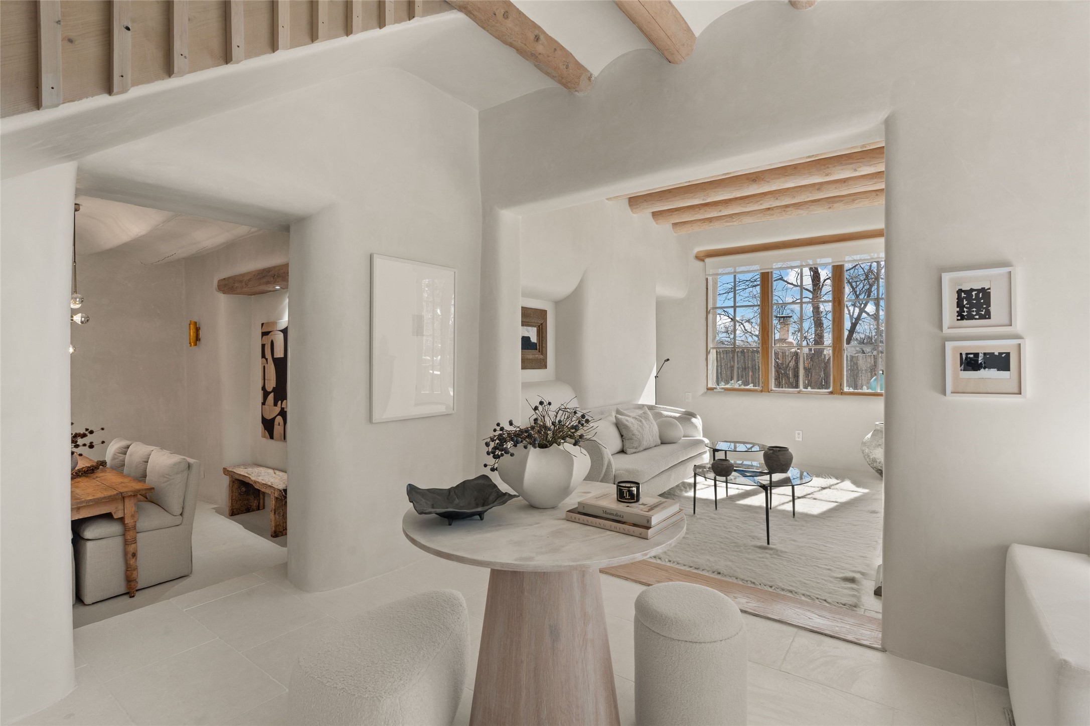This exquisite 3-bedroom, 2 bathroom home is truly one of the prettiest we've seen. Located in the highly sought-after historic East side of Santa Fe, it boasts luxurious finishes including a La Cornue stove, built in Sub Zero refrigerator, Dolomite marble counter tops, tumbled honed Limestone flooring and an immaculate but charming professionally landscaped yard. Thoughtfully designed by Andrea McLaughlin of Austin, no detail has been overlooked in creating this stunning property. A true gem not to be missed!