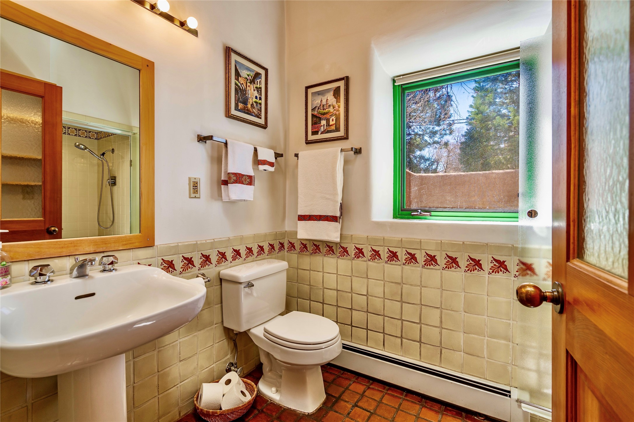 Sensational Acequia Madre Condo in the heart of the historic Eastside. Tucked down a long, private drive in a small 6 unit compound, lies a beautiful, single level, double adobe home featuring specialized features including old Mexican doors, along with the perfect blend of saltillo tile and brick floors. The living room features tall 14 ft coved ceiling with plaster walls, ideal for that very special Santa Fe art collection! This quintessential, corner unit, is fully gated and surrounded by tall walls, patios, portals and gardens. Welcoming bricked, walled and gated entry courtyard along with a rear, West-facing courtyard and portal, trees and private gate to Acequia Madre which is featured in the book Santa Fe Style! Delightful kitchen with center island breakfast bar and plenty of cabinetry. Two spacious bedrooms, one with office nook, and steam shower in the ensuite bathroom. Dedicated laundry room with sink and office area. Oversized 2 car garage with extra storage cabinets + designated guest parking. Mini-splits provide AC and heat along with whole house baseboard heating and water softener. An added, unexpected bonus is the compound water well-each owner shares for outdoor irrigation. Needless to say, Acequia Compound Condos lies in the most fabulous Acequia Madre location surrounded by grand estate-type properties and is close to iconic Canyon Road with the finest of art galleries and restaurants, along with Downtown Subscription for your morning coffee and communal gatherings. Rarely do any units in this compound come available. Truly a five star home in a five star, compound in an A+location!